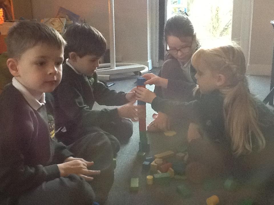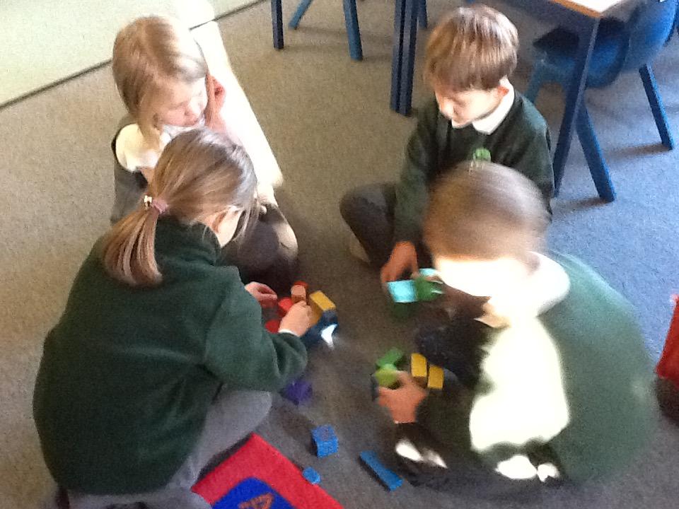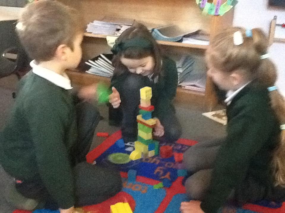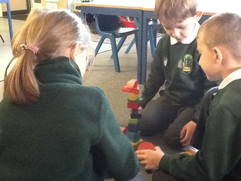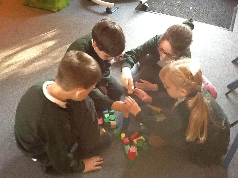In Maths this week we have started looking at 3D Shapes. The children are learning the shape names and the key features of each 3D shape. The children were set a challenge in small groups to see who could make the tallest tower. We soon realised that some 3D shapes are not suitable to use at the bottom or in the middle of towers as it makes them very unsteady!