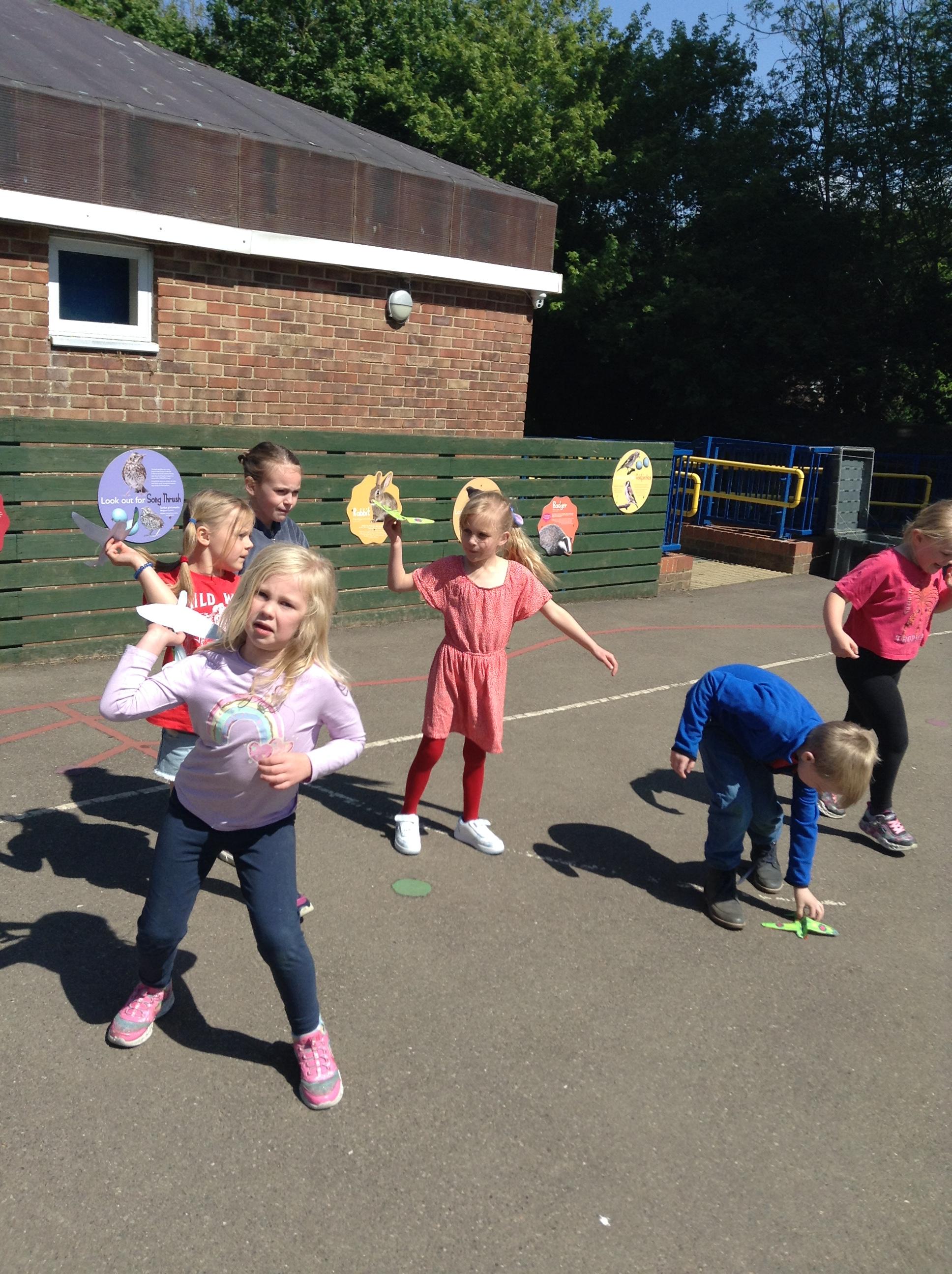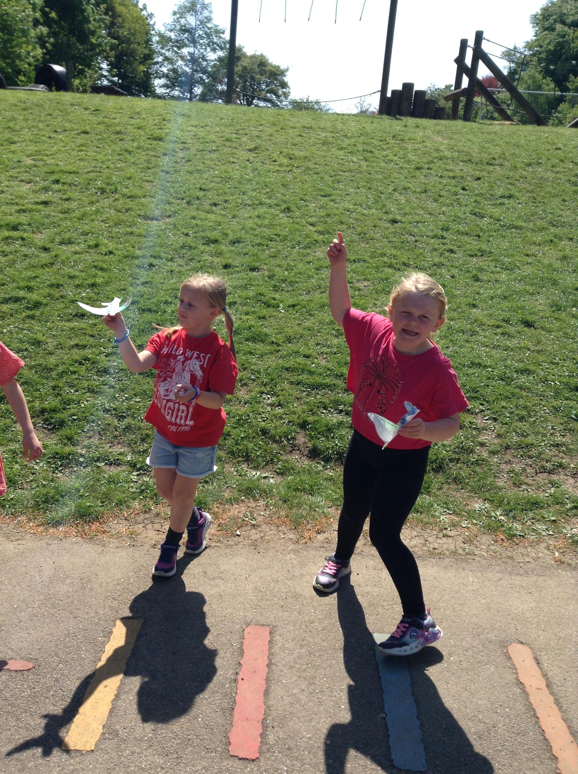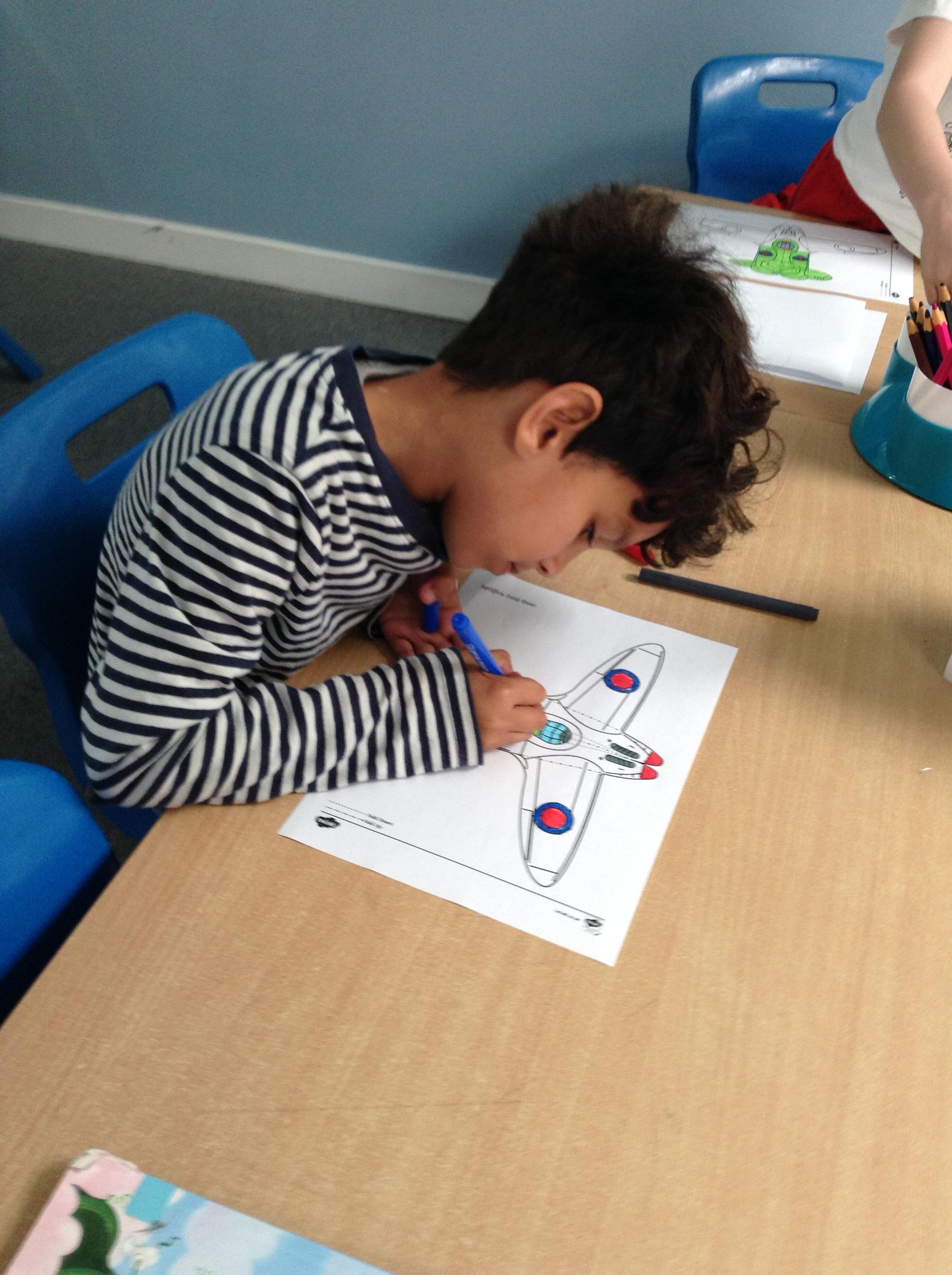 We started the morning observing a one minute silence on the playground whilst a special VE Day flag was raised. We then listened to Elizabeth talking in the hall about her memories of life as a child during the war. This afternoon the children made their own Spitfire plane and had fun flying them outside.