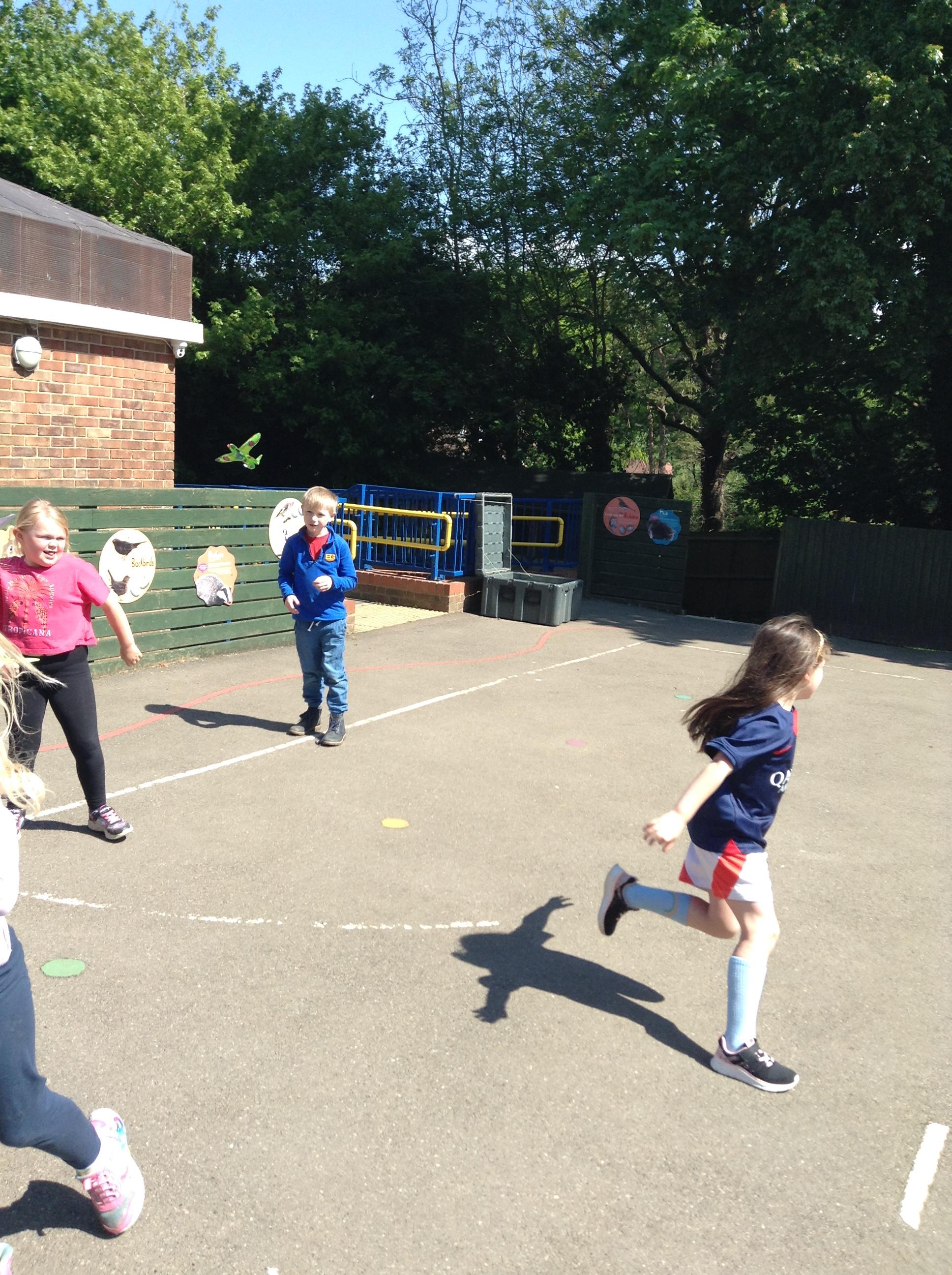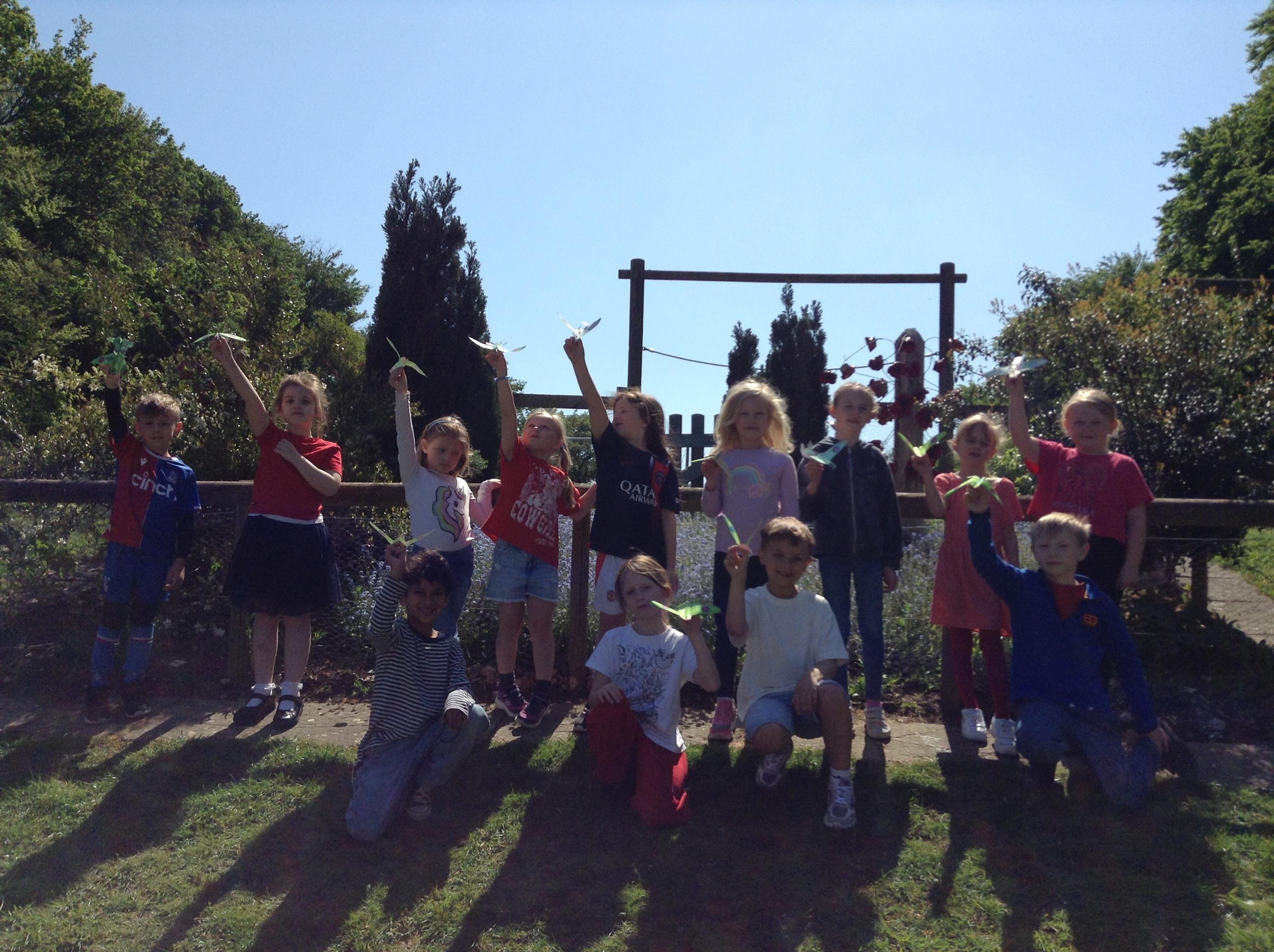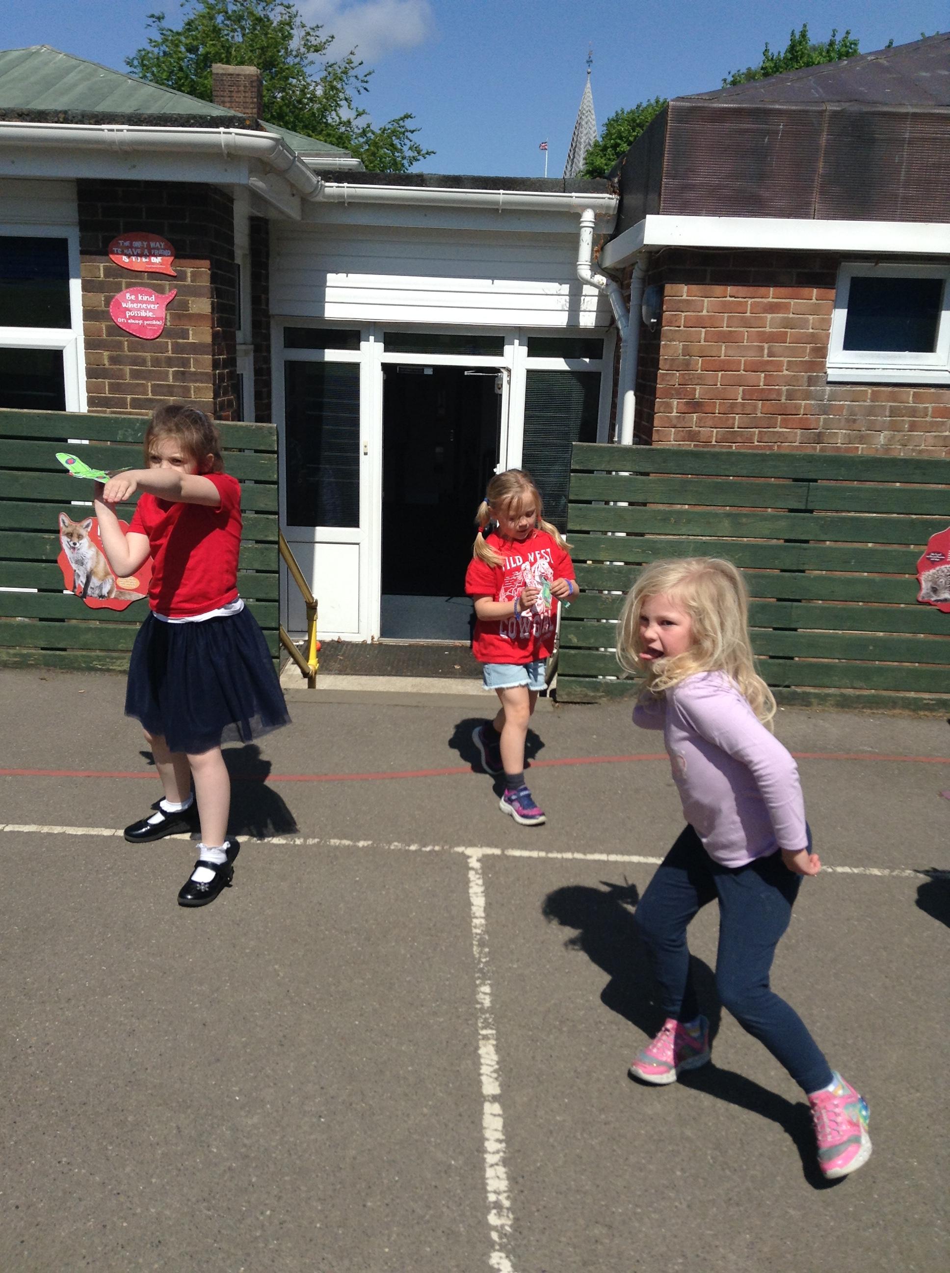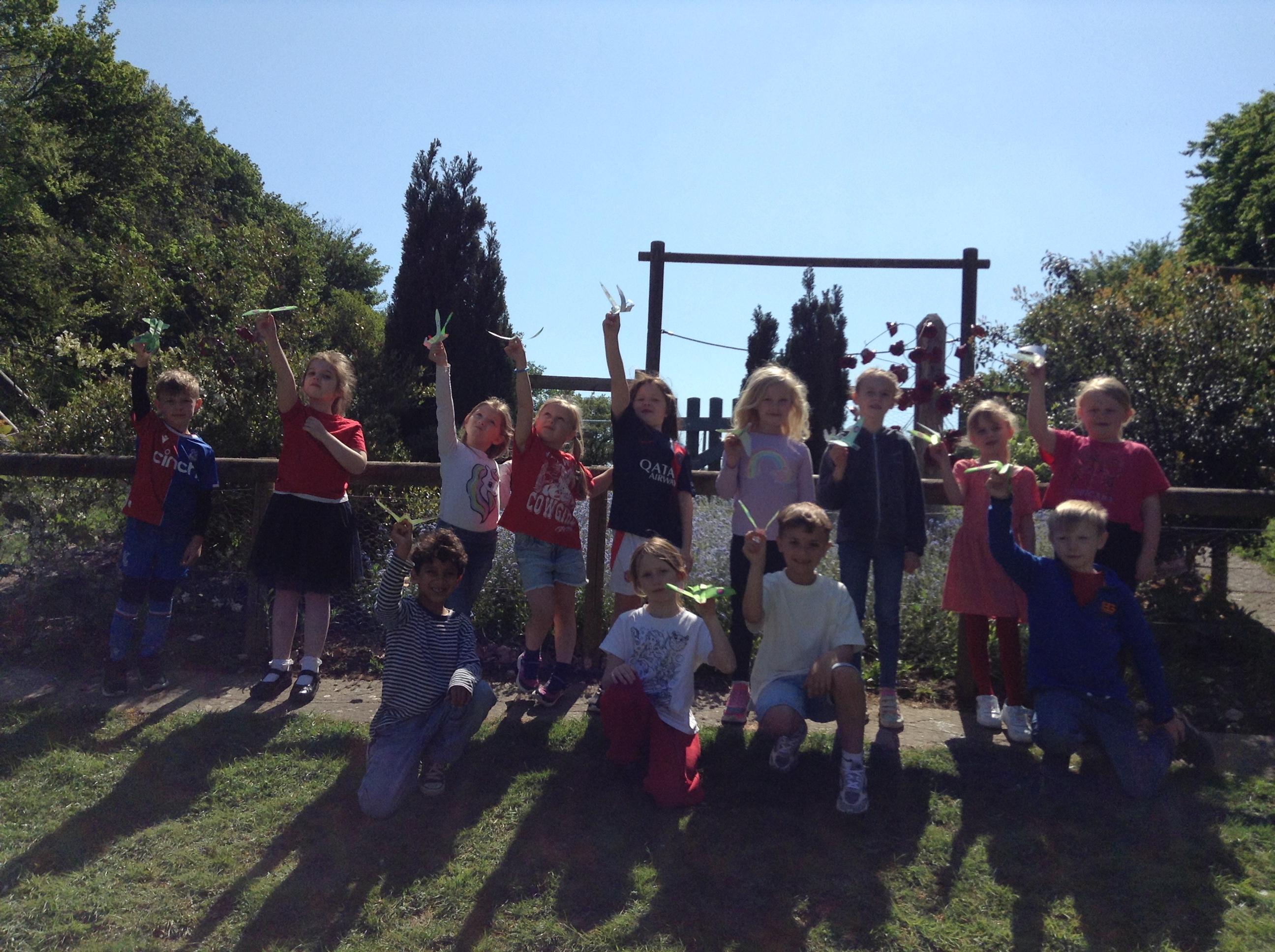 We started the morning observing a one minute silence on the playground whilst a special VE Day flag was raised. We then listened to Elizabeth talking in the hall about her memories of life as a child during the war. This afternoon the children made their own Spitfire plane and had fun flying them outside.