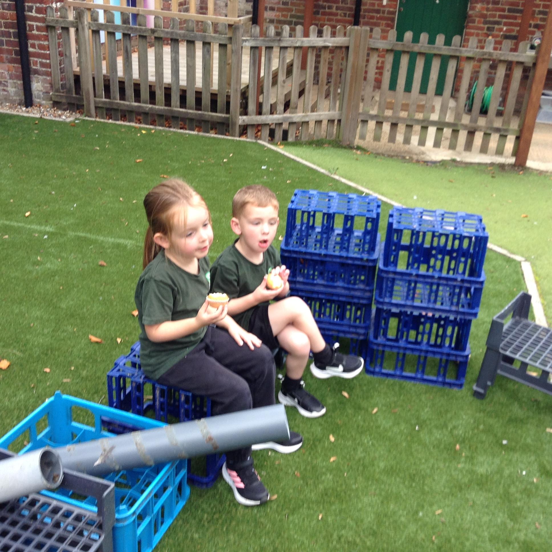 The children have been enjoying our maths activities this week and exploring the characters on Kapiti Plain. Our Year R children made a den to eat Teddy's birthday cakes in!
