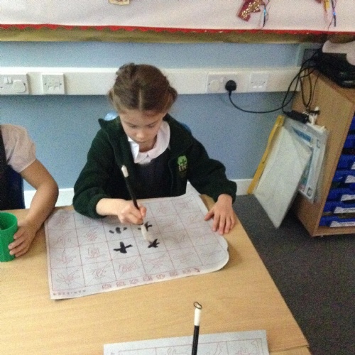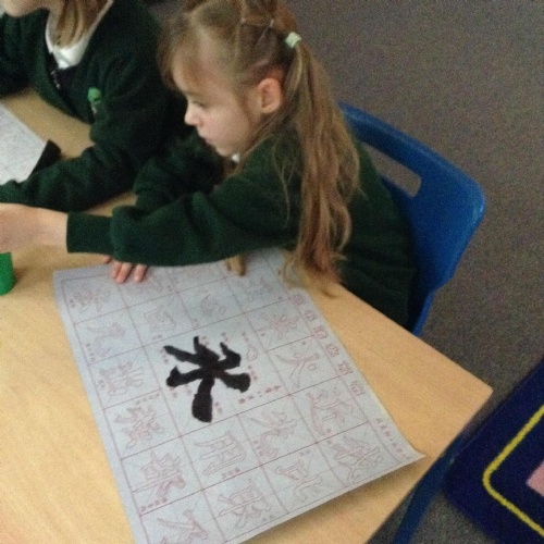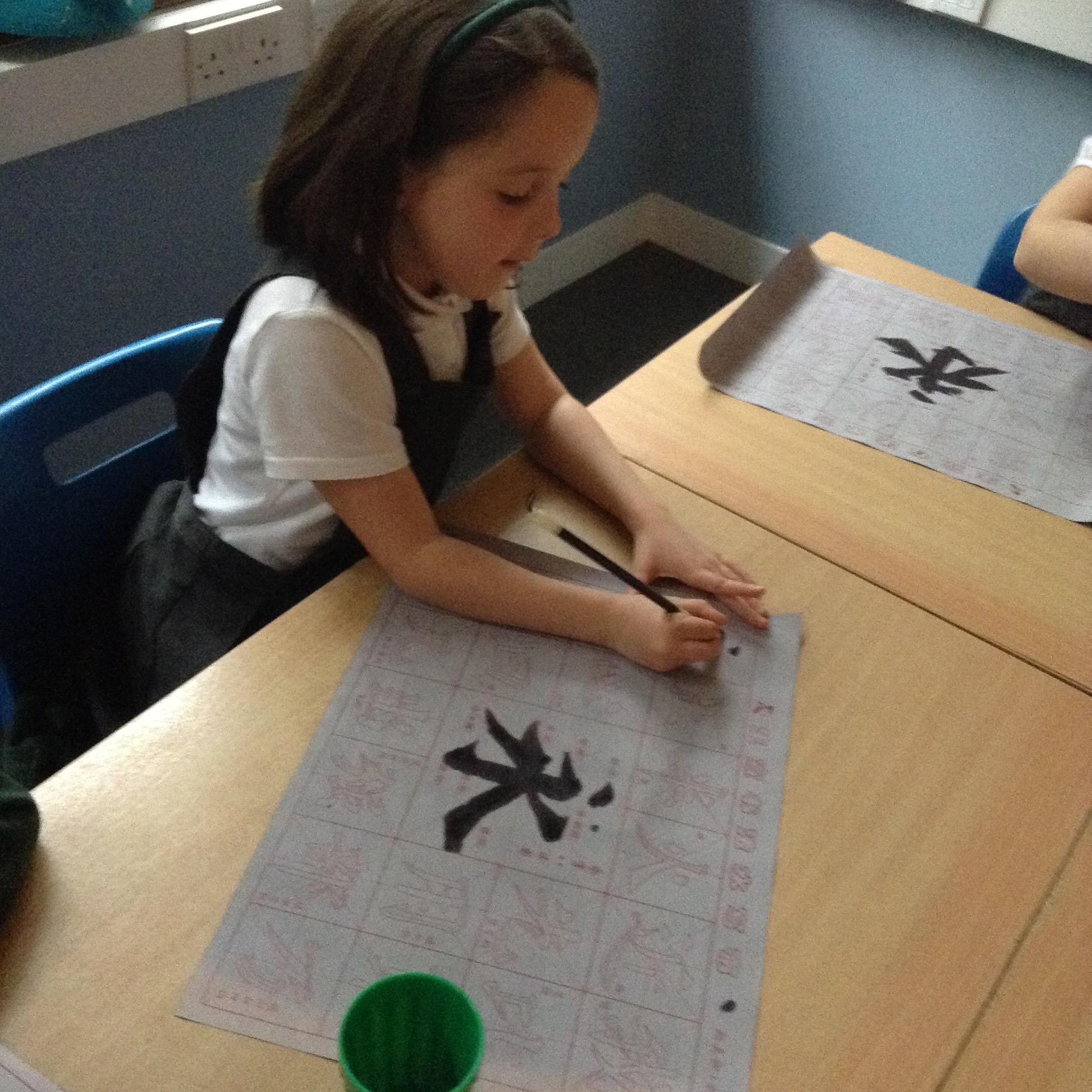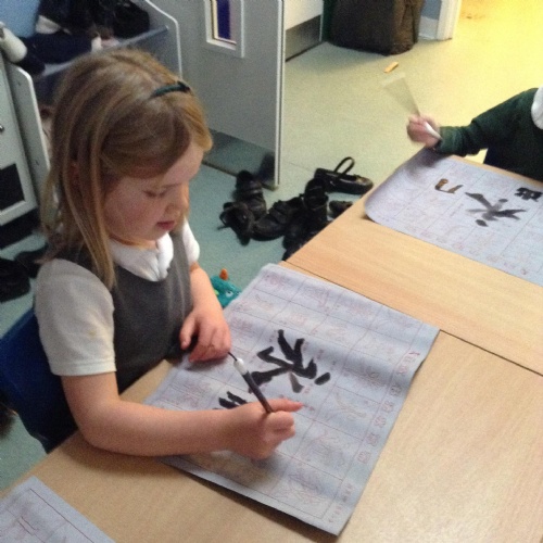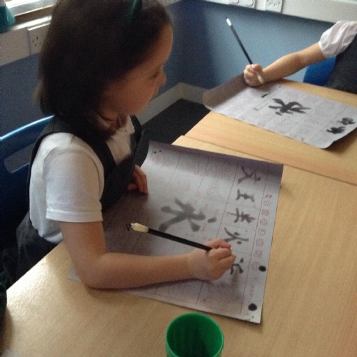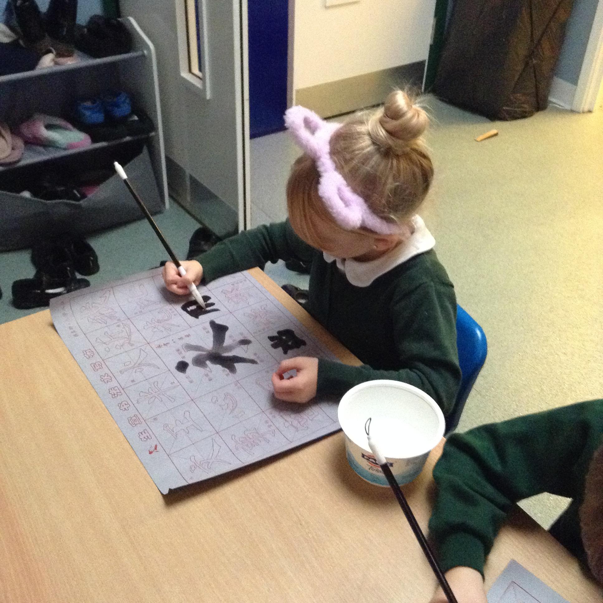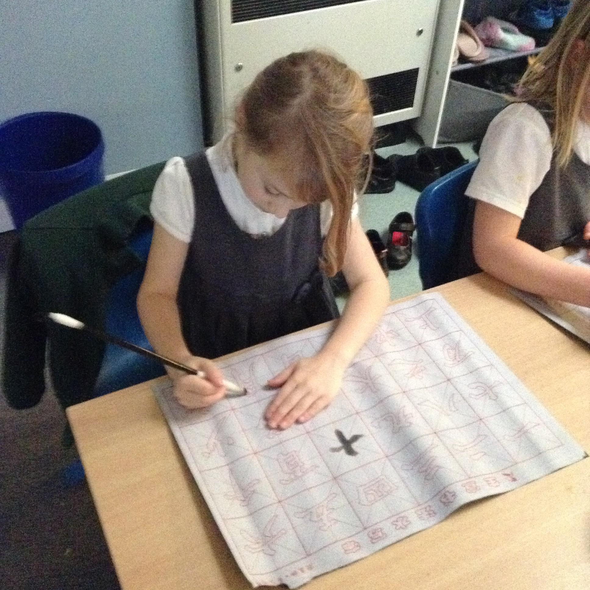 The children have been using a special type of paintbrush to have a go at writing some Chinese characters.