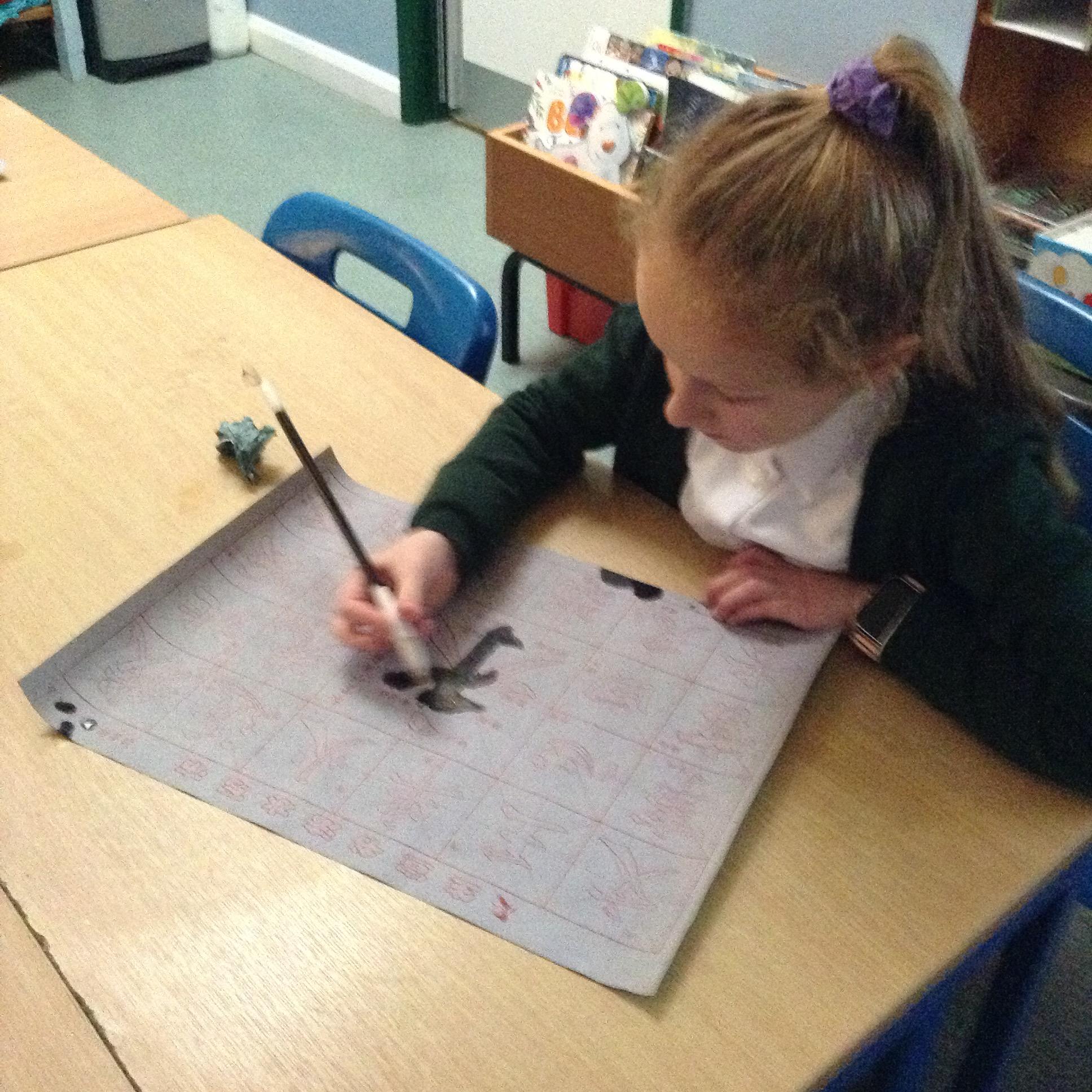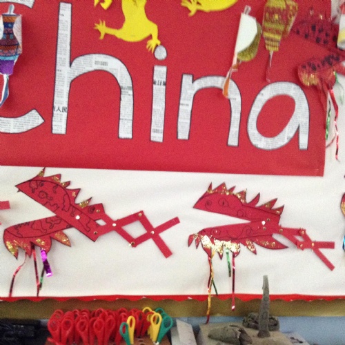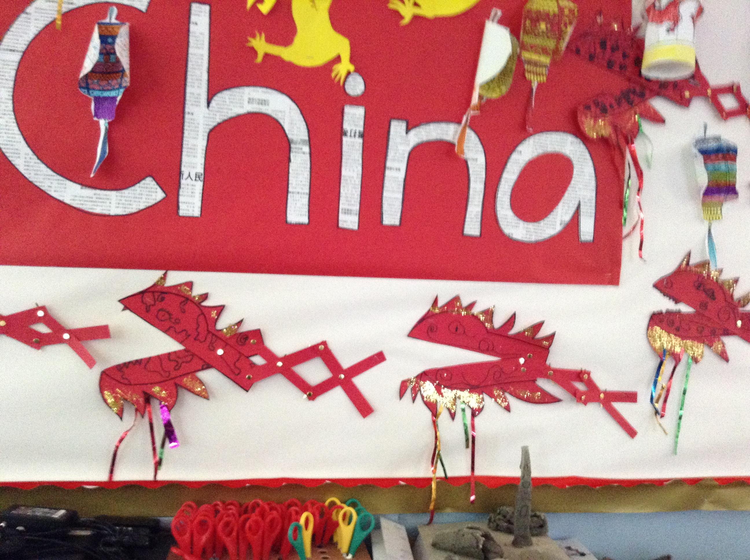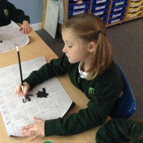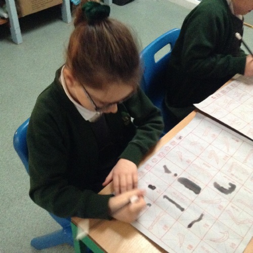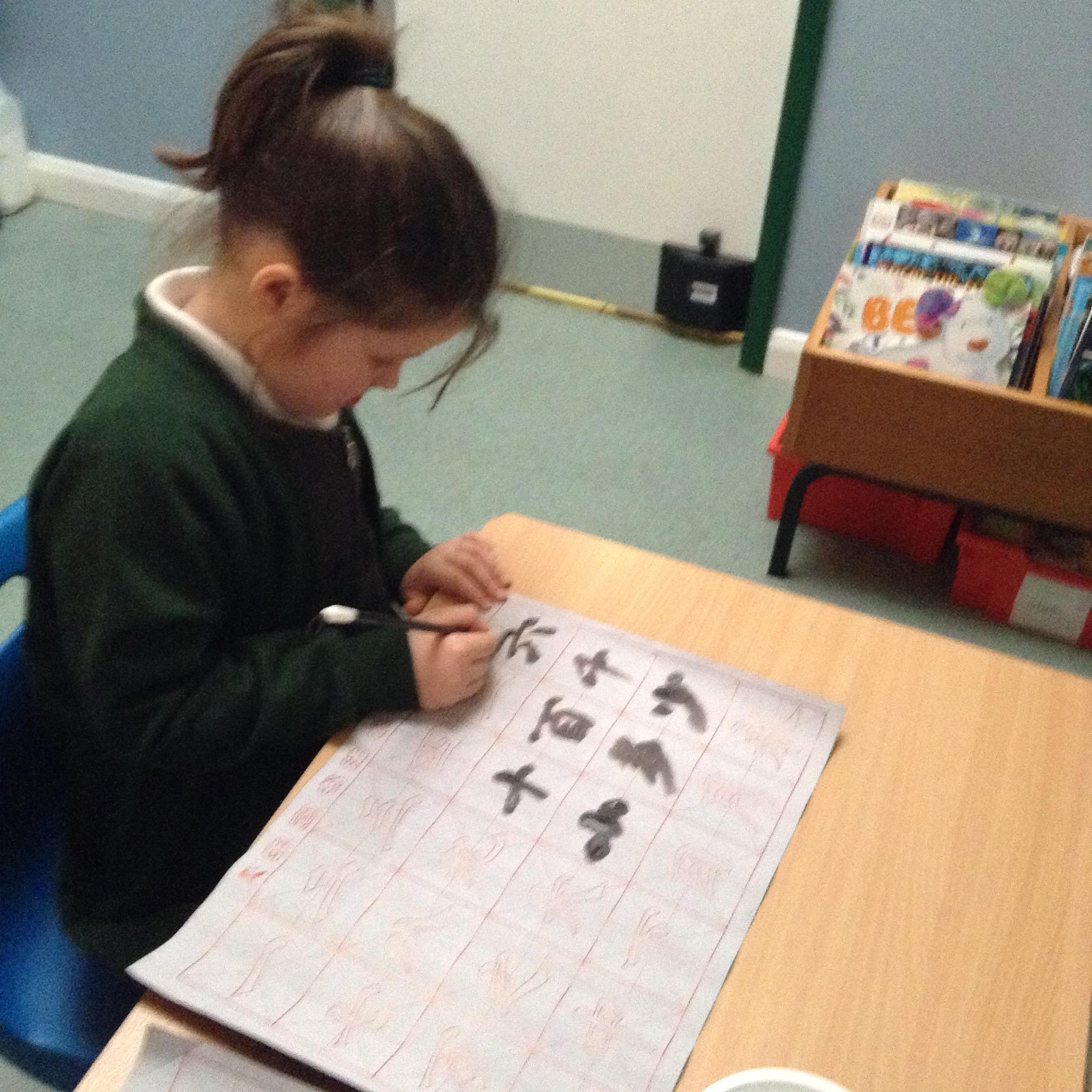 The children have been using a special type of paintbrush to have a go at writing some Chinese characters.
