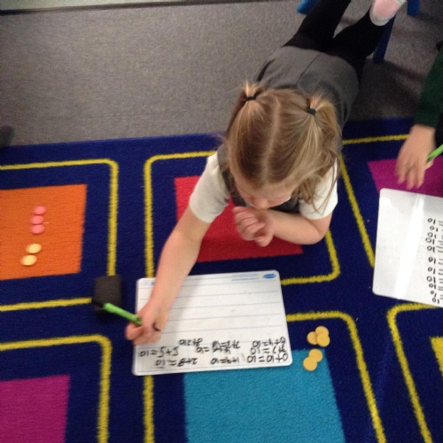 In Maths we have been looking at number bonds within 10 and related facts.