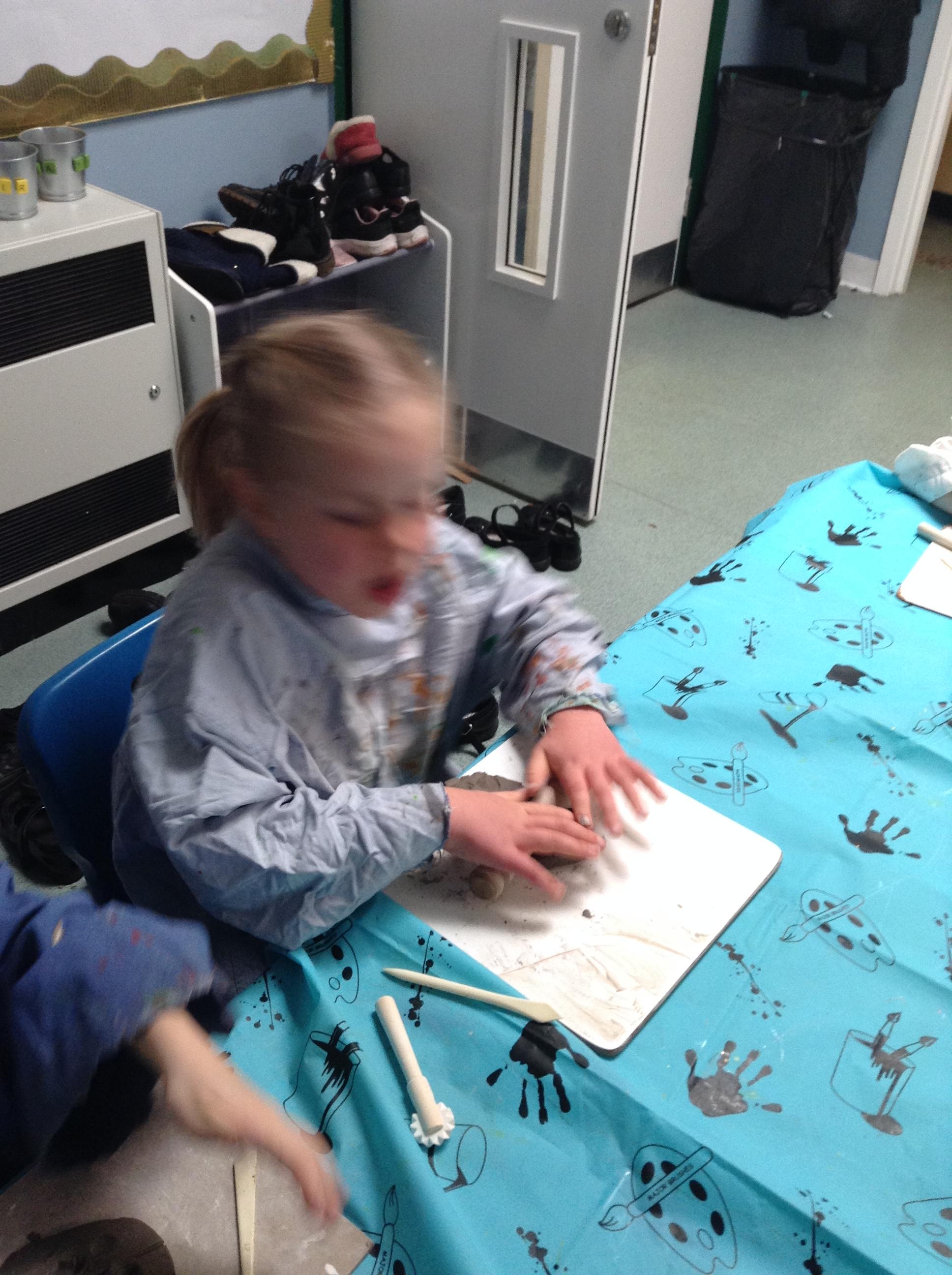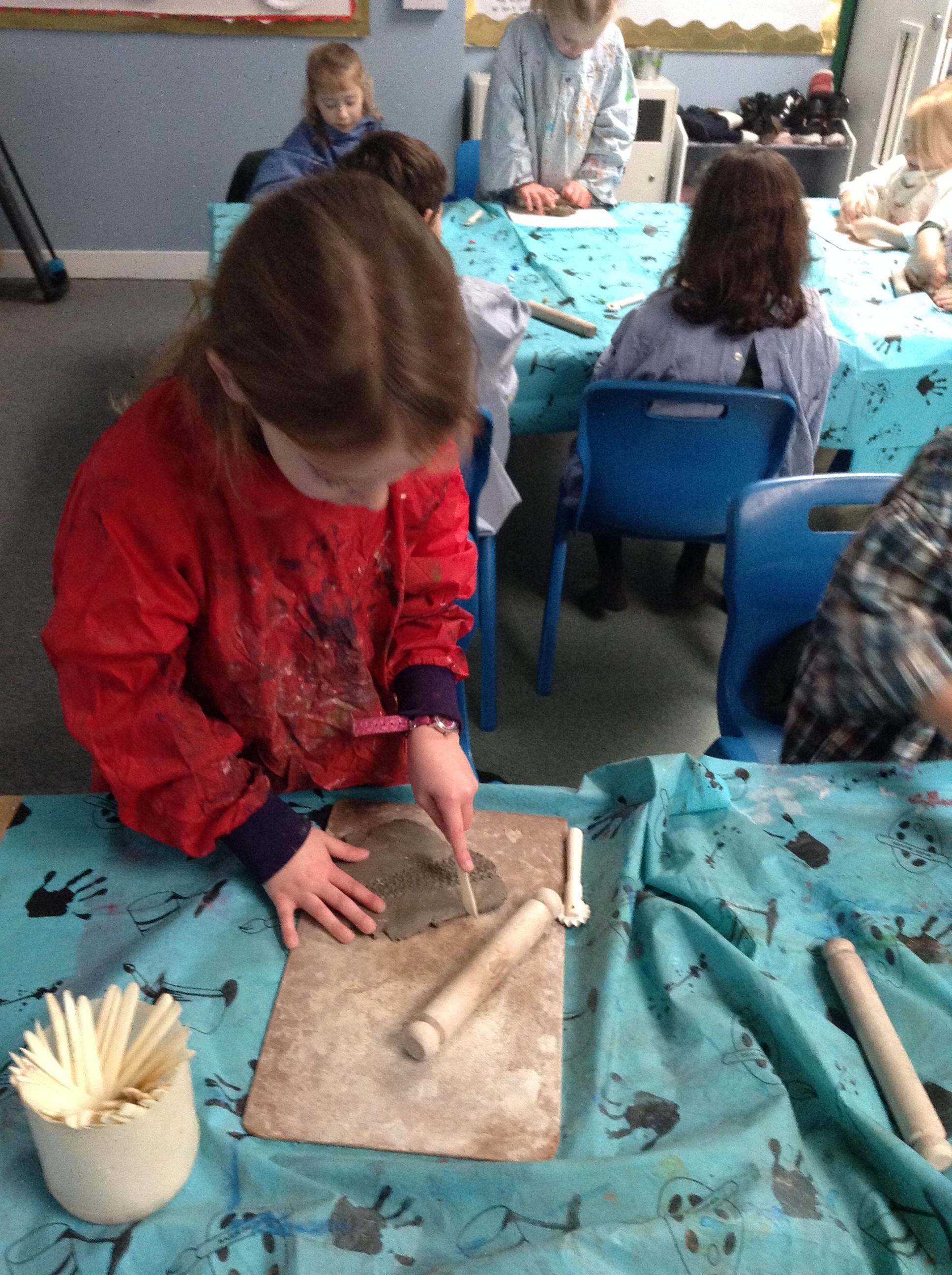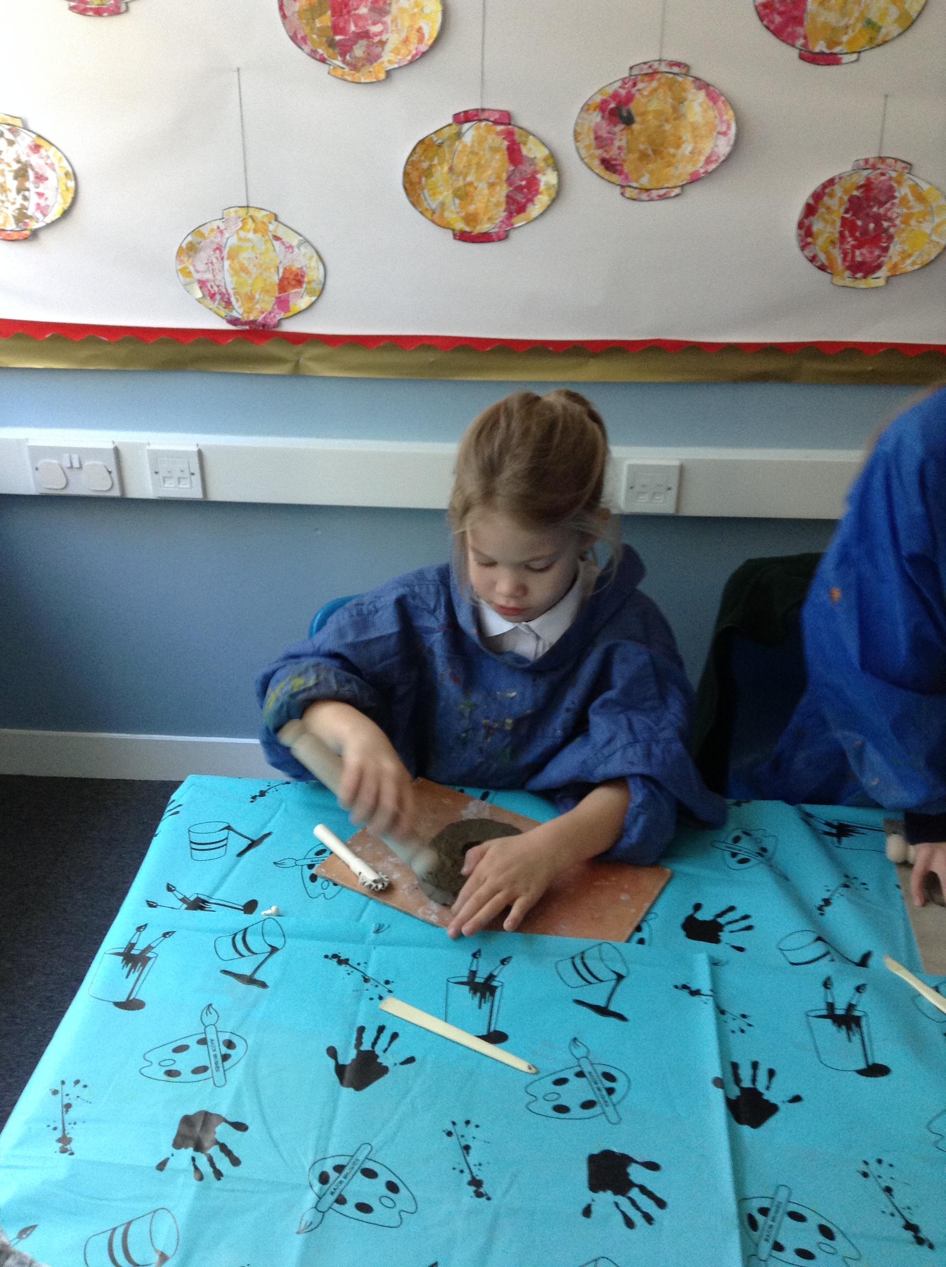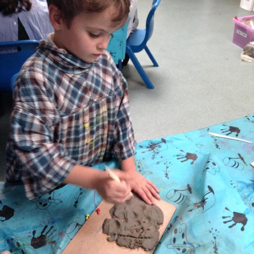 In Art the children have been using their hands as a tool to shape clay. They explored flattening, shaping and making marks in the clay and then had a go shaping the clay to make a model.