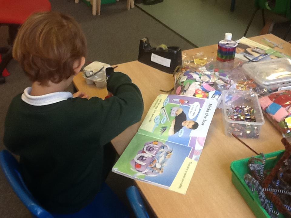 This term we have changed our guided reading activities to better suit the children's needs, so our activities are handwriting, a role play area (this term it is a bakery), prayer writing and guided reading. In guided reading this week one group have been making ring boxes, based on the book we have just read.