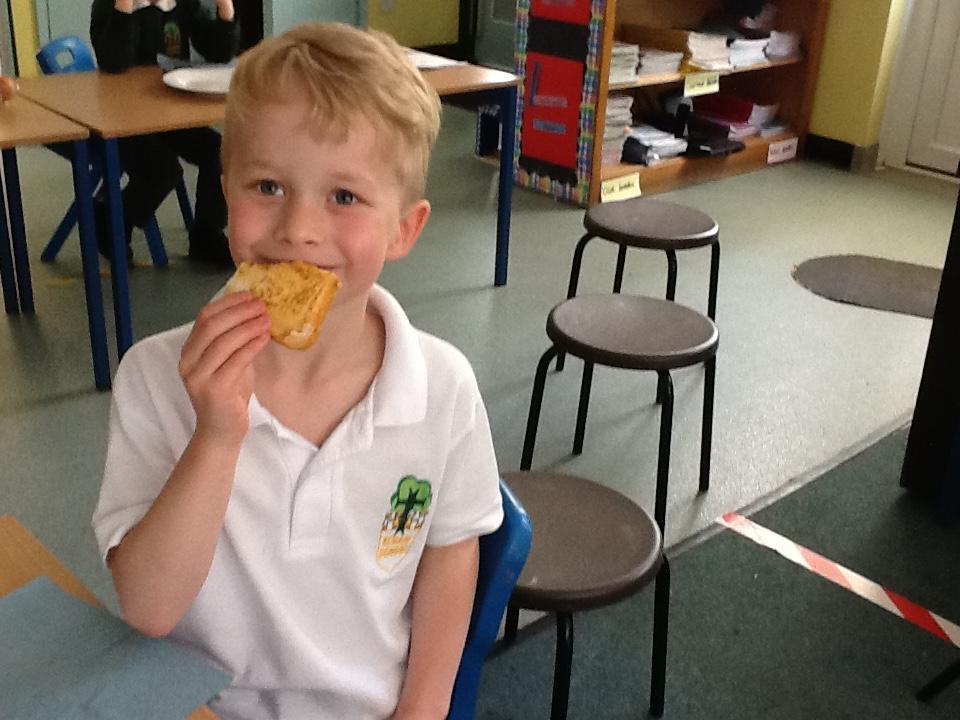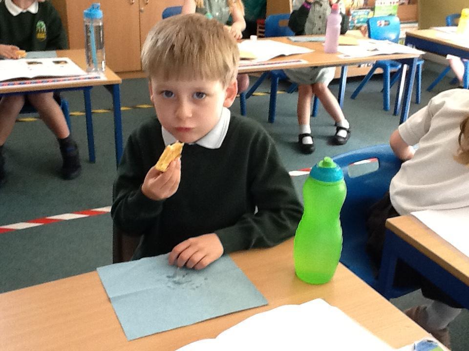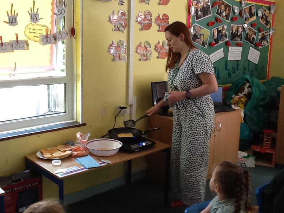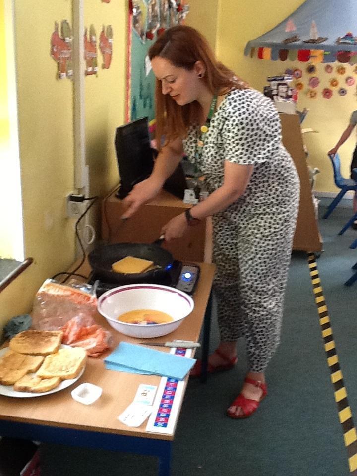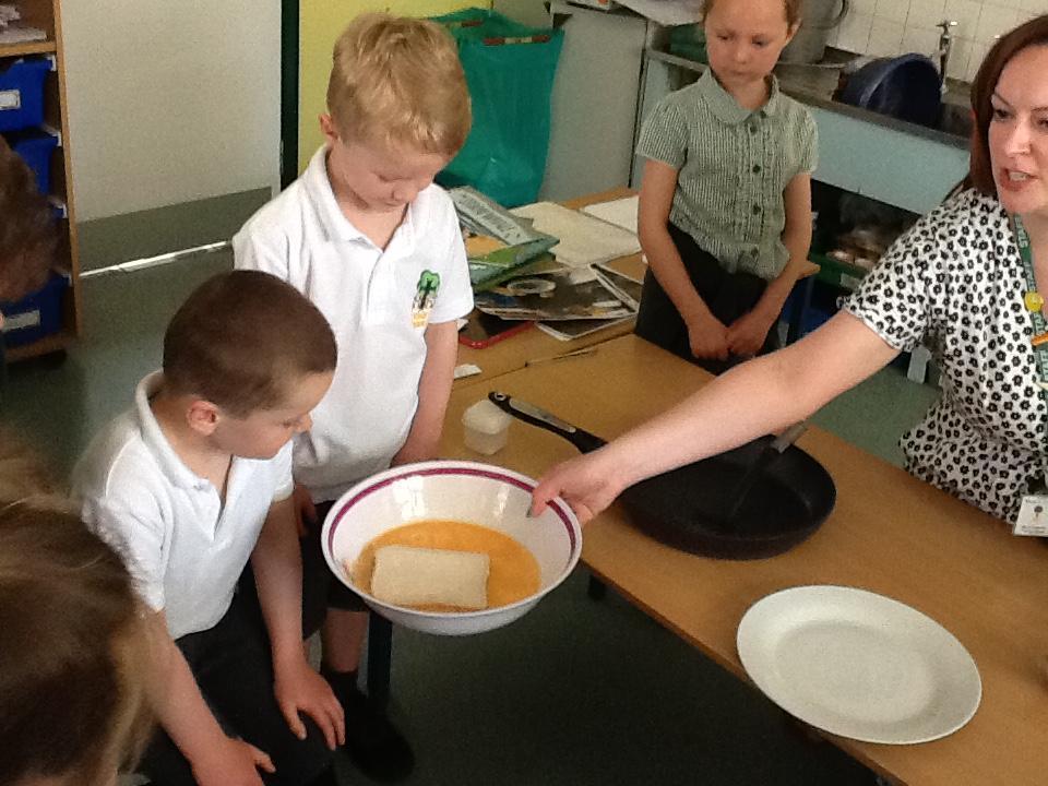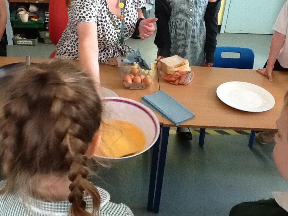 We were looking at a book about camping this week and there was a recipe about how to make Eggy Bread, so we made some! The children really enjoyed eating it afterwards. In fact the whole morning was spent eating because in Maths we had bags of sweets and were trying to work out what a quarter and half of the total number of sweets was. It was tricky because there were over eighty sweets in the packet!