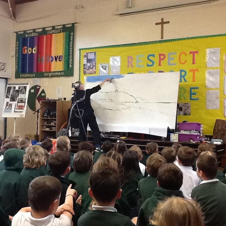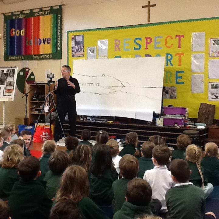 Shane Record came to school this morning! It was fascinating watching him work!
