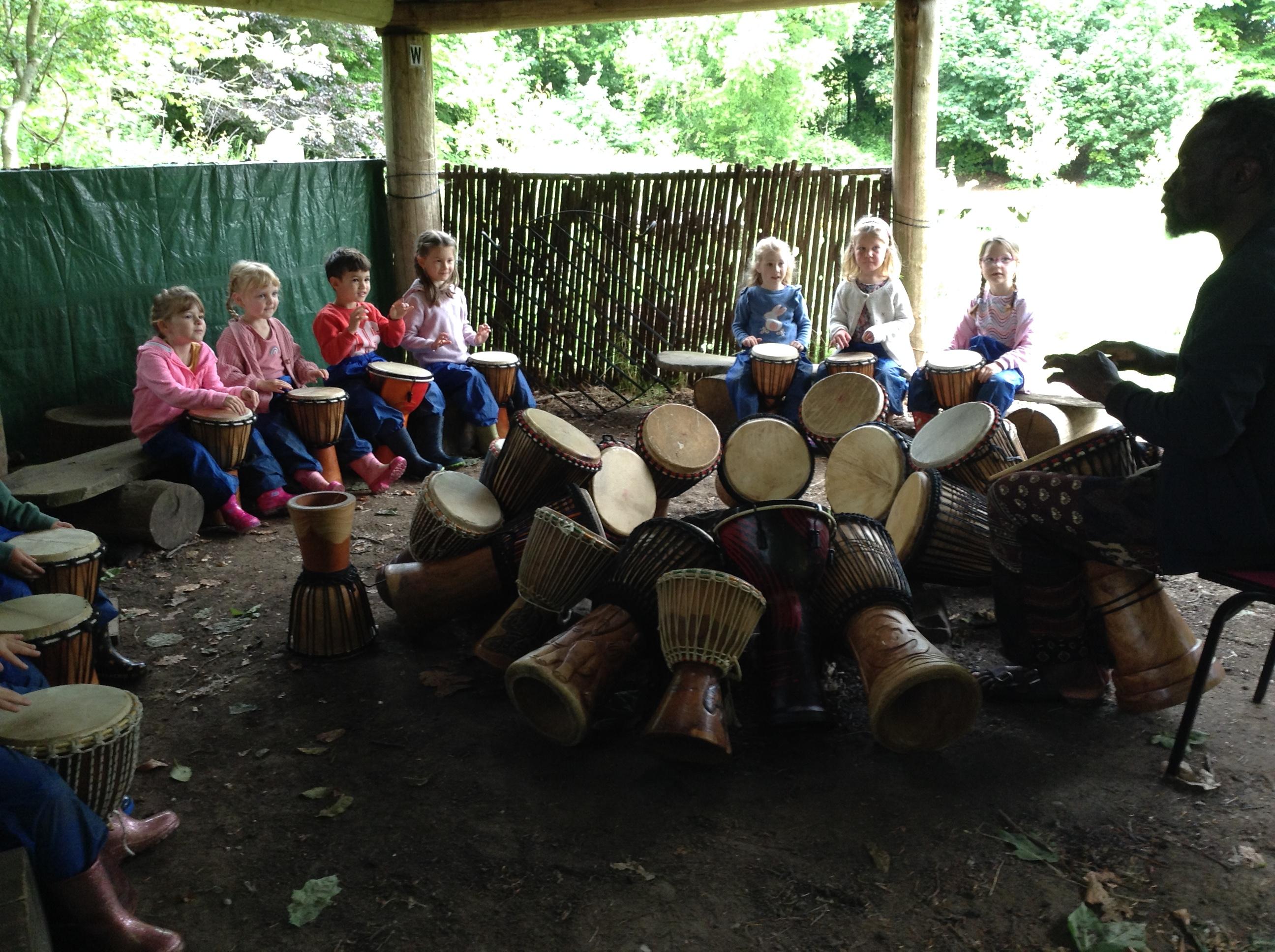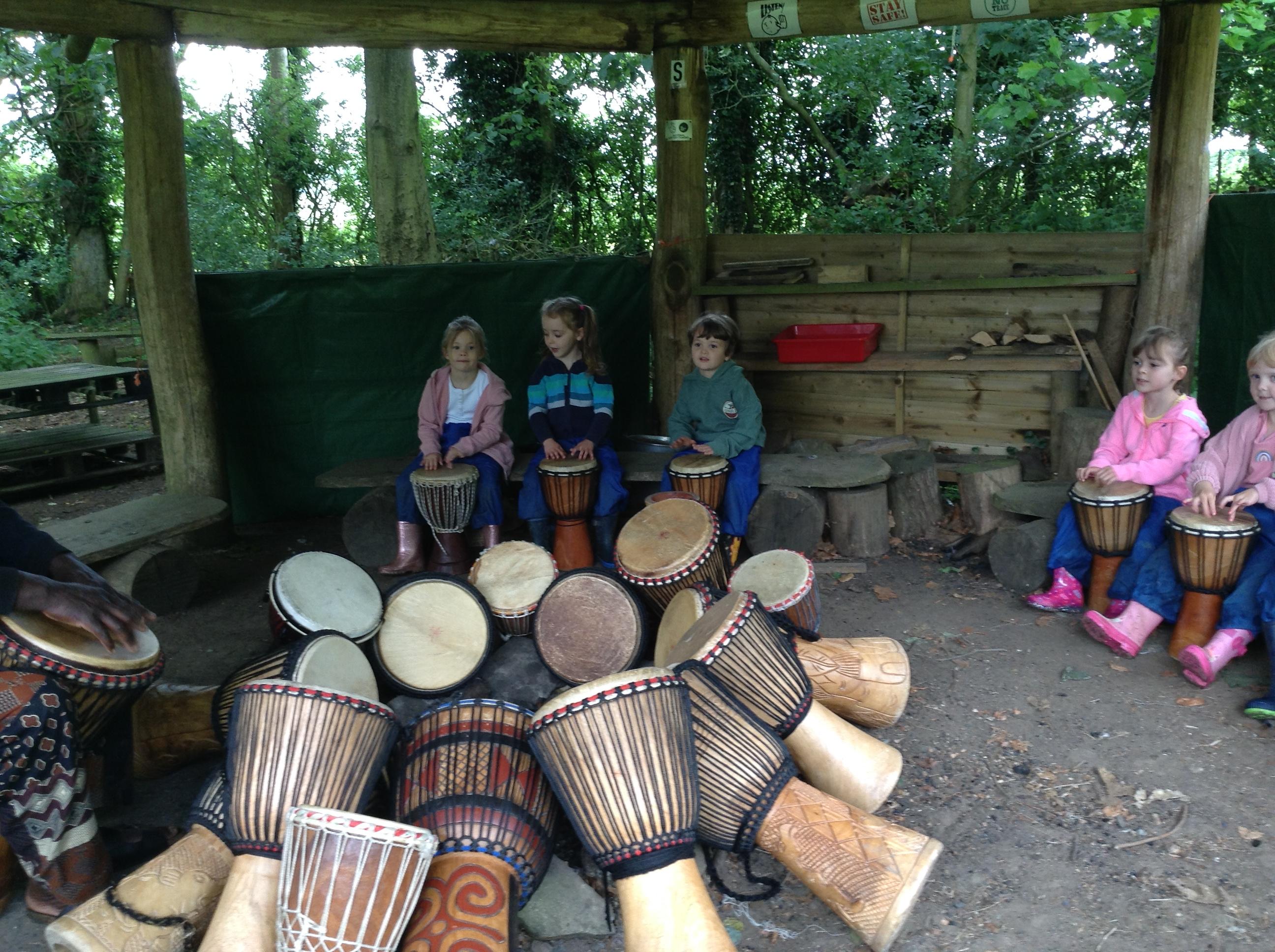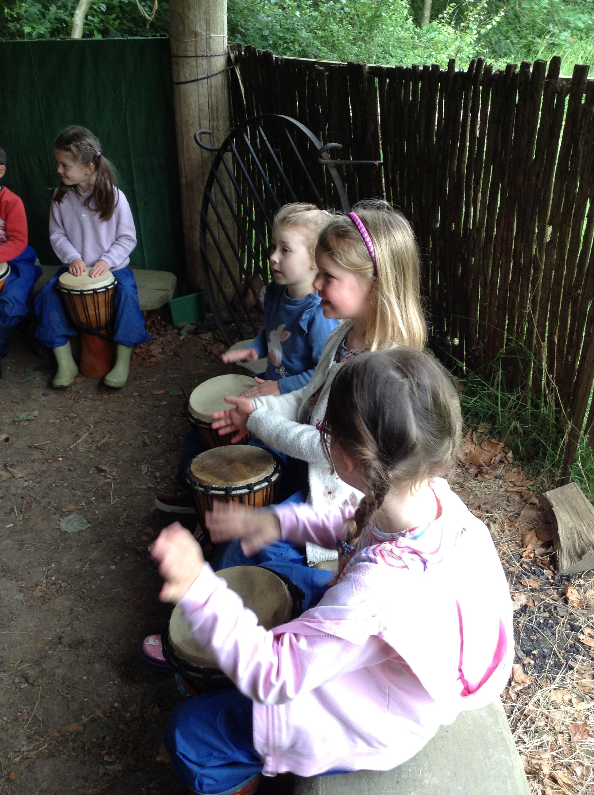 African drumming at forest school was fabulous. The children could repeat and follow a beat and drum in time. Their listening to instructions was great and really helped them to learn.