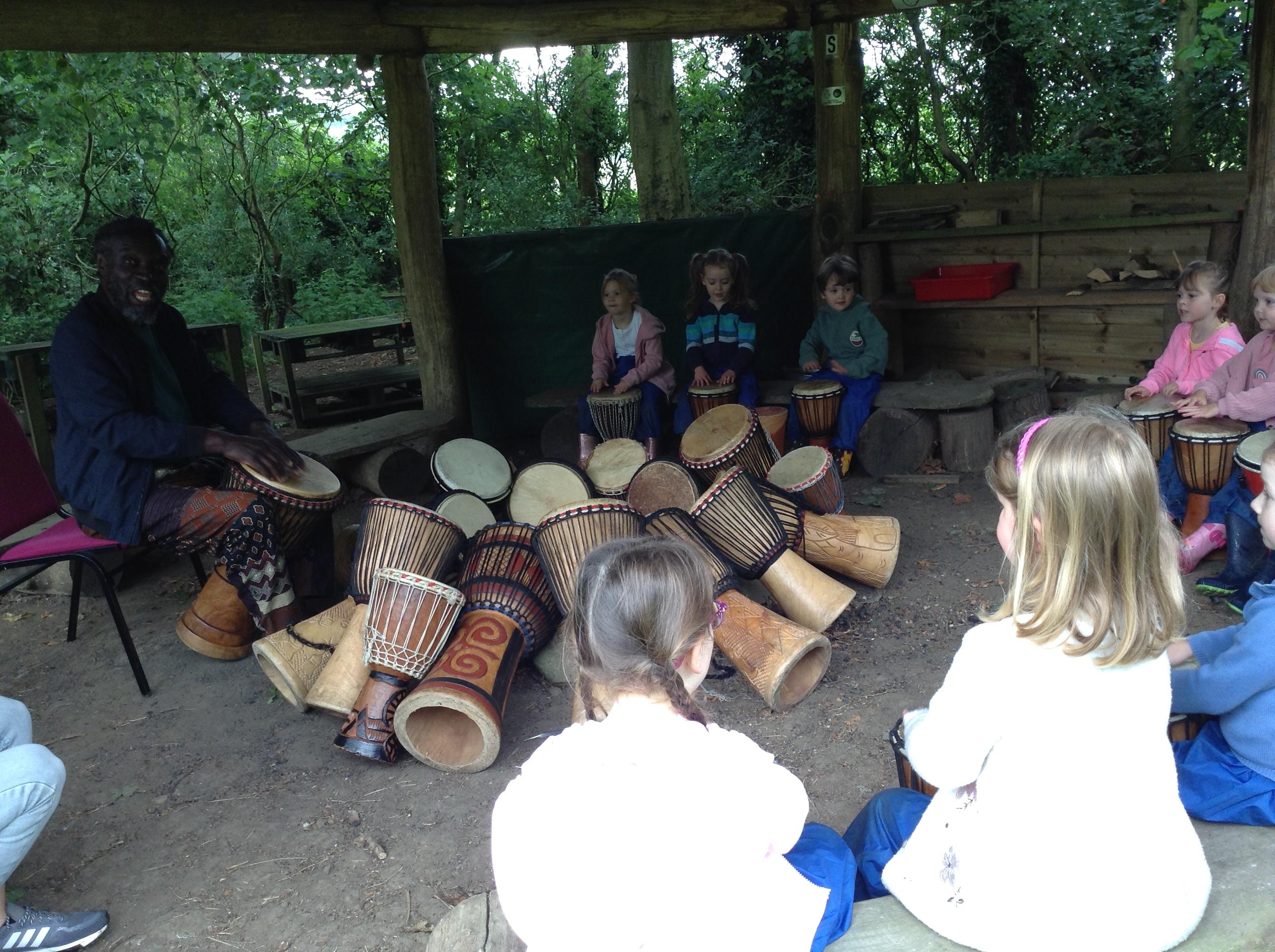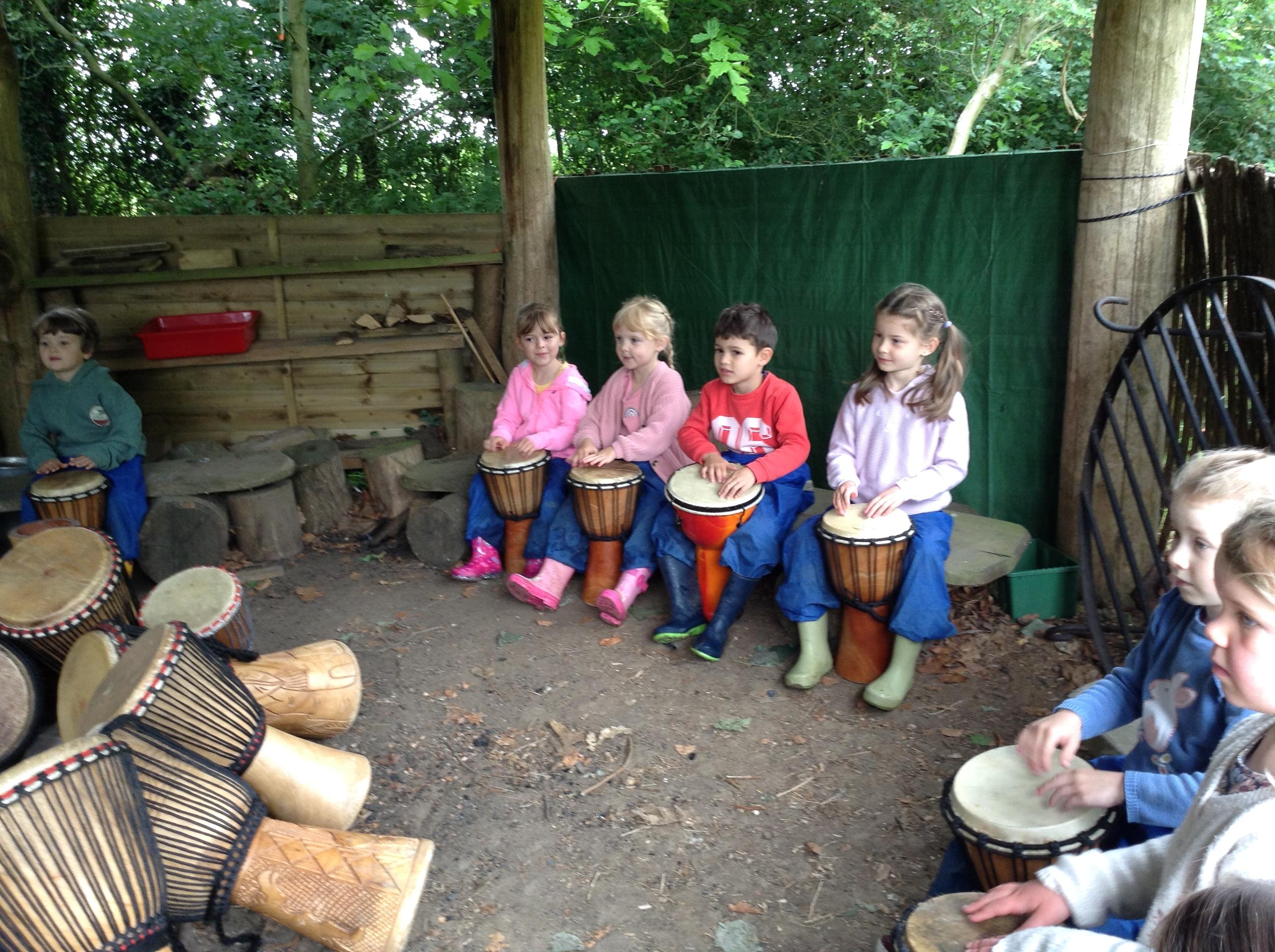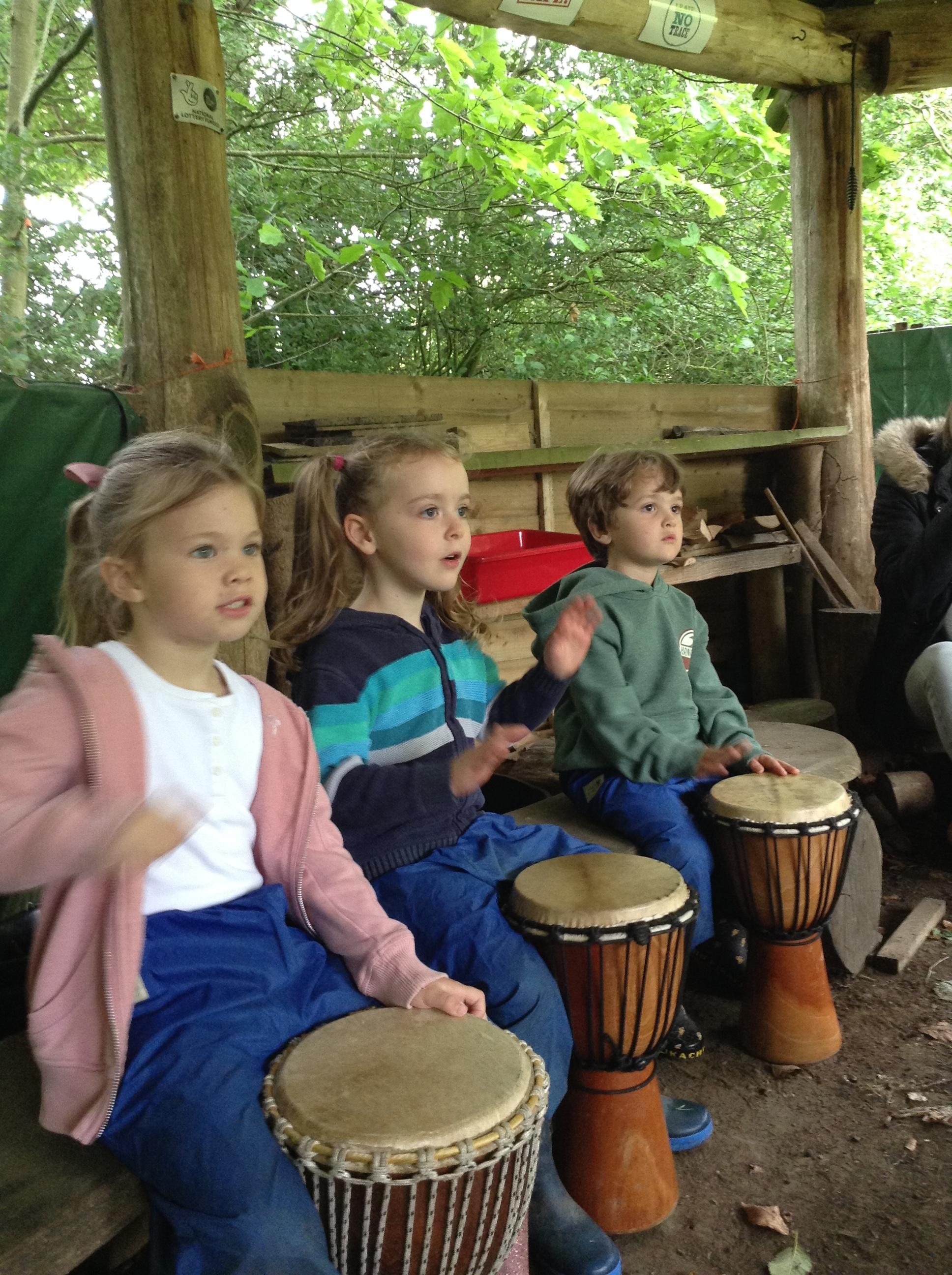 African drumming at forest school was fabulous. The children could repeat and follow a beat and drum in time. Their listening to instructions was great and really helped them to learn.
