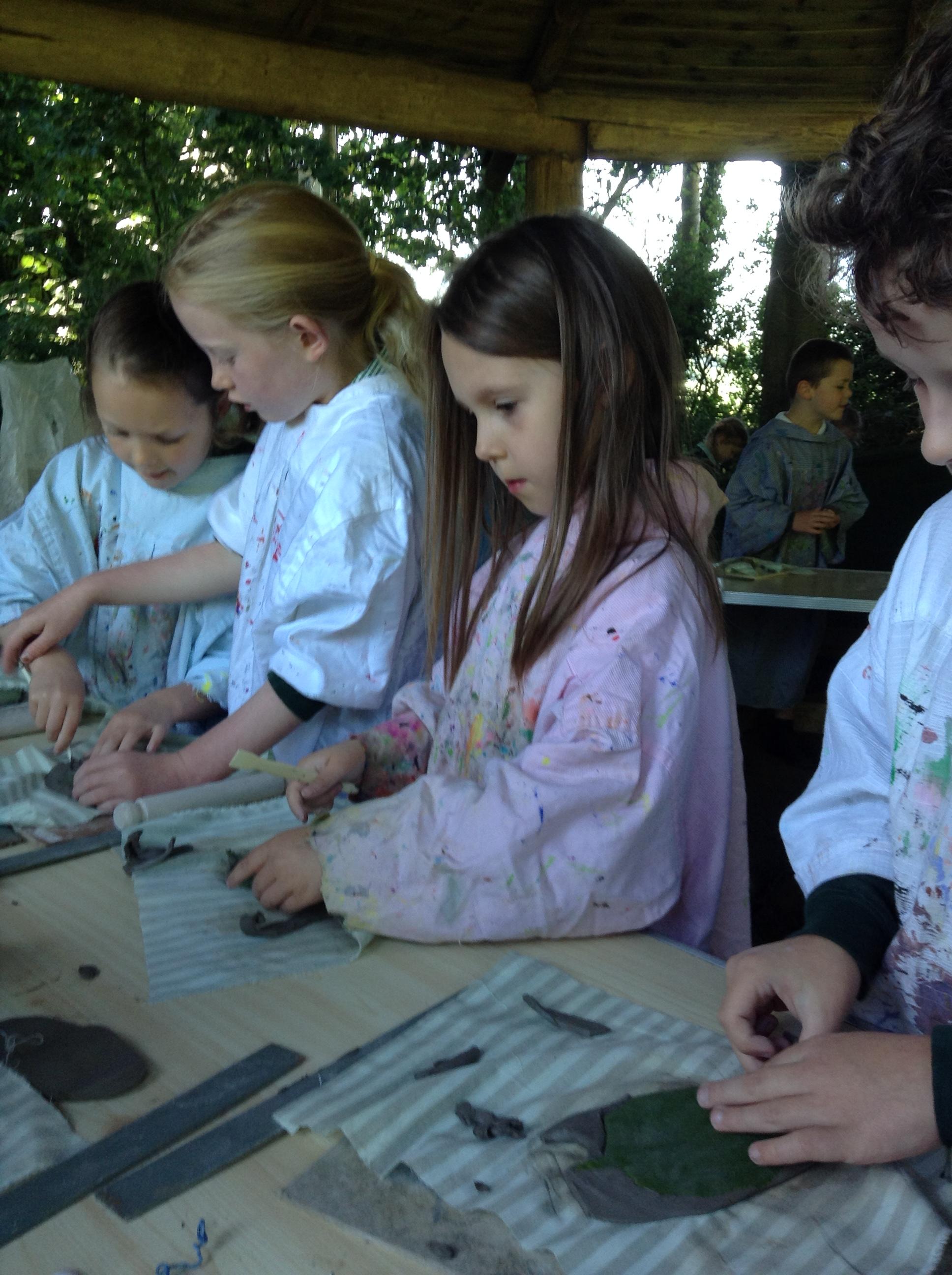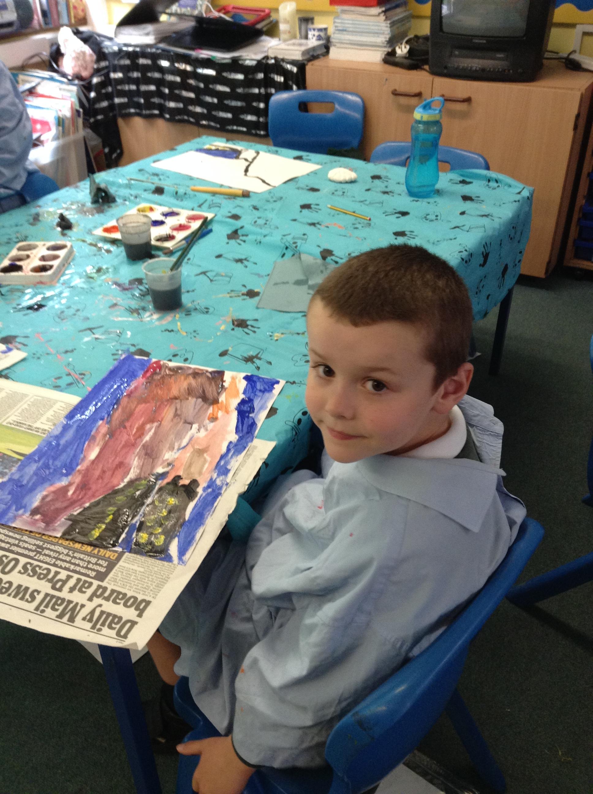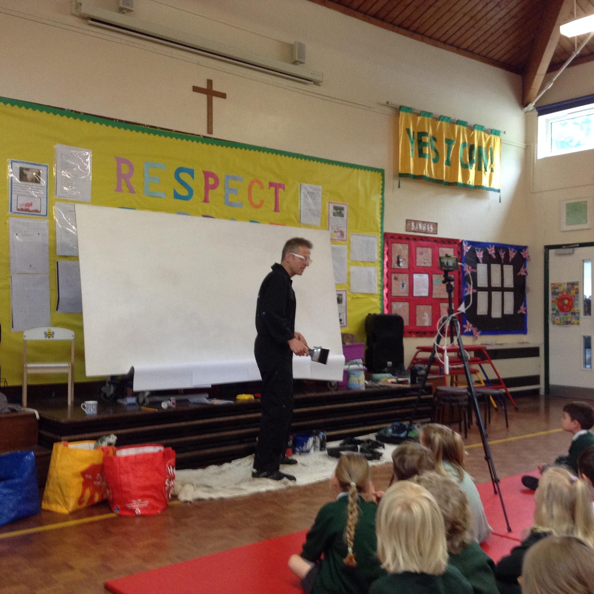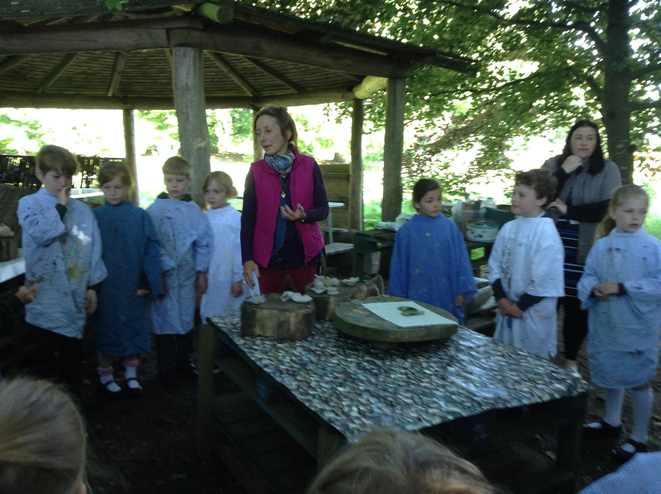 What a fun week we have had! It was SKY Arts Week, with lots of really interesting resources to download, from 2D print making to drama, dance and poetry. We were also fortunate to have Annie Begley doing pottery workshops in the Forest School hut, on Thursday and Kevin teaching the children djembe drumming and Laura teaching modern dance on Friday. On Tuesday, Shane Record painted a huge landscape mural of Sunny Sands in the hall. It was incredible to see the picture emerge before our eyes and the children and teachers were enthralled!