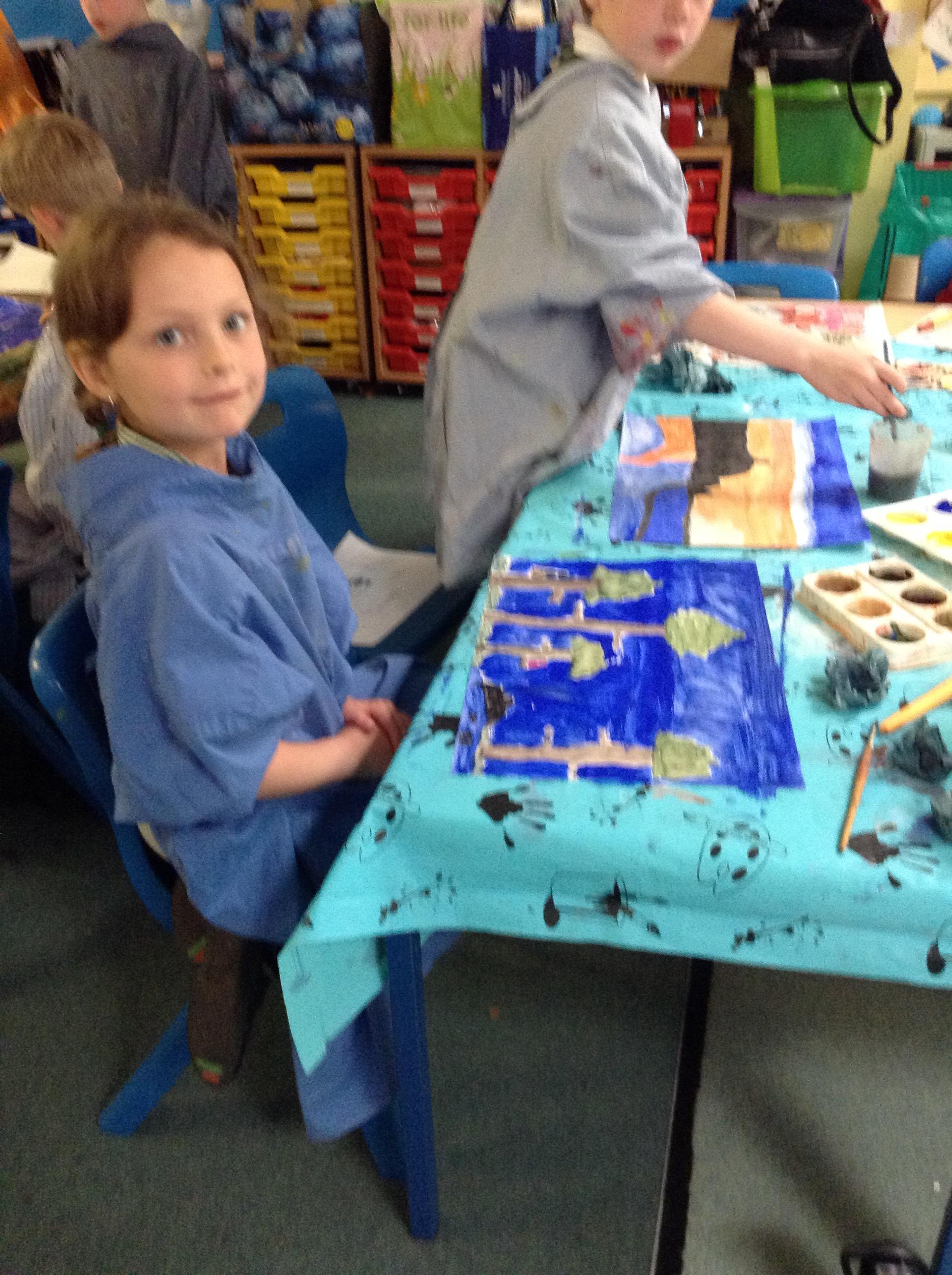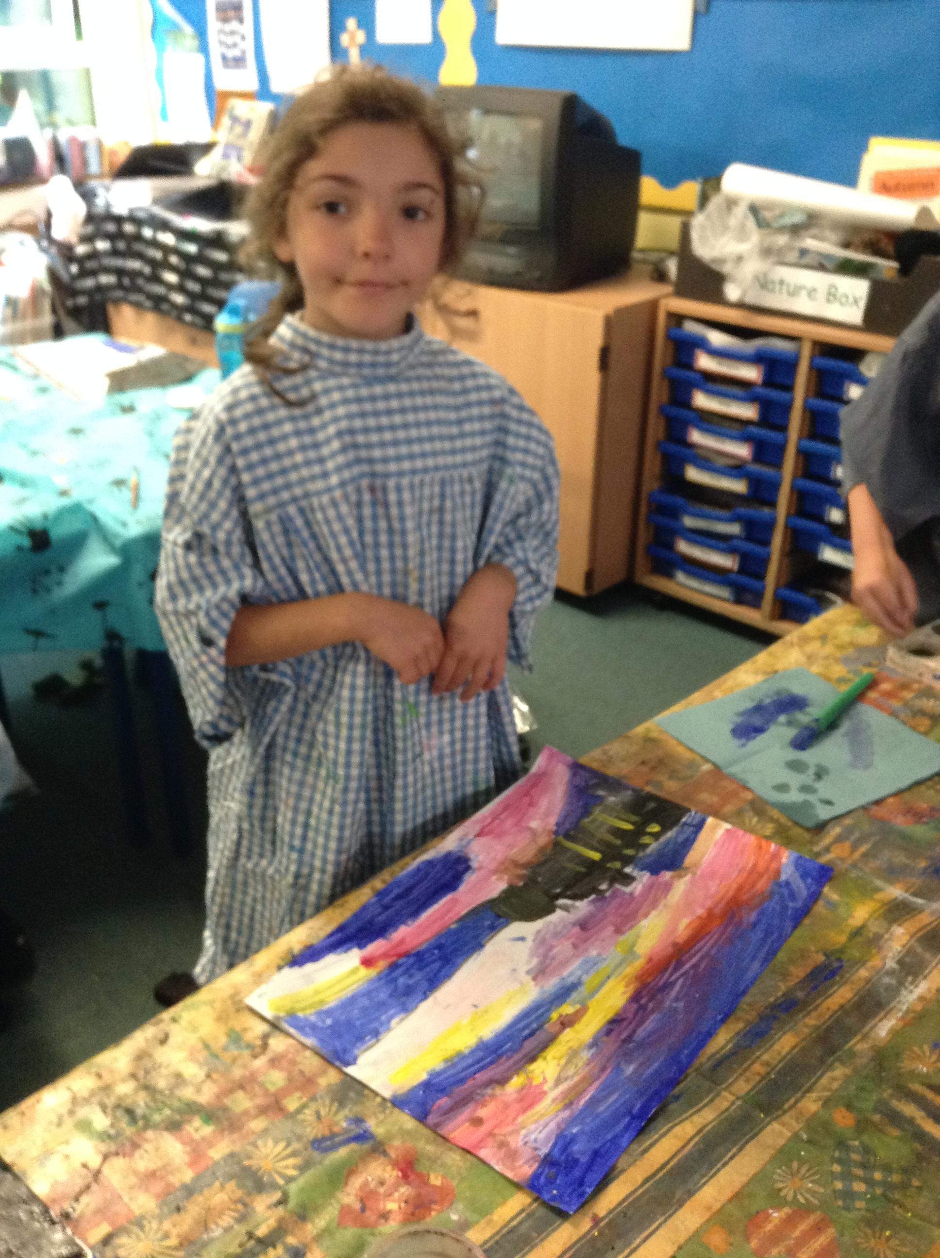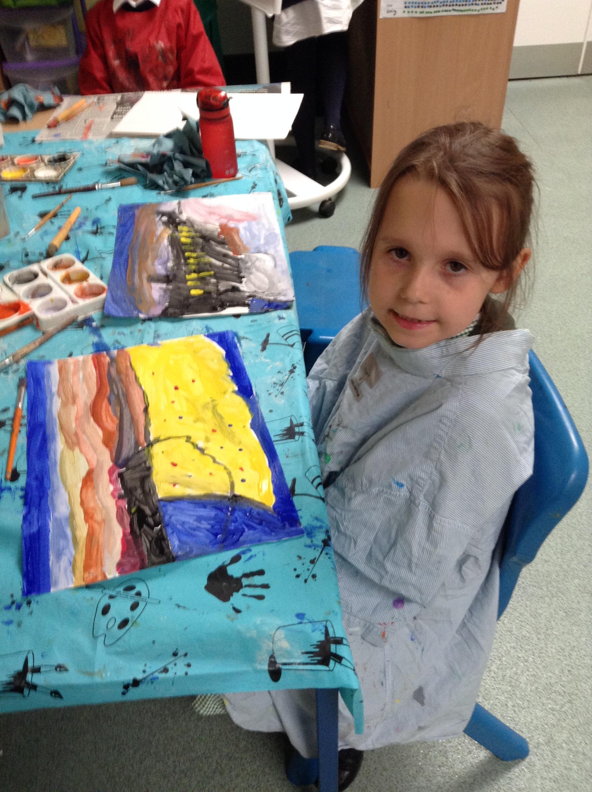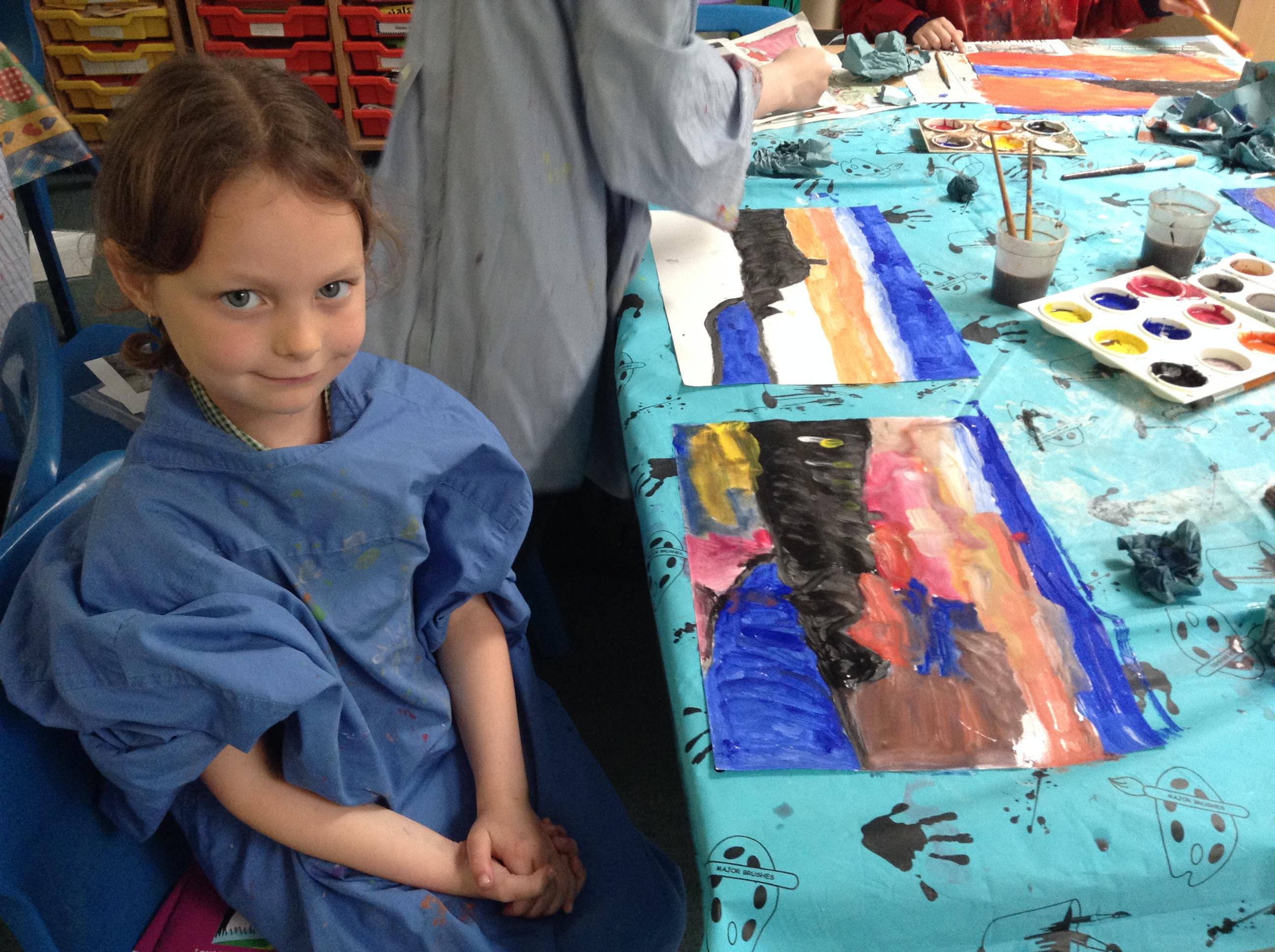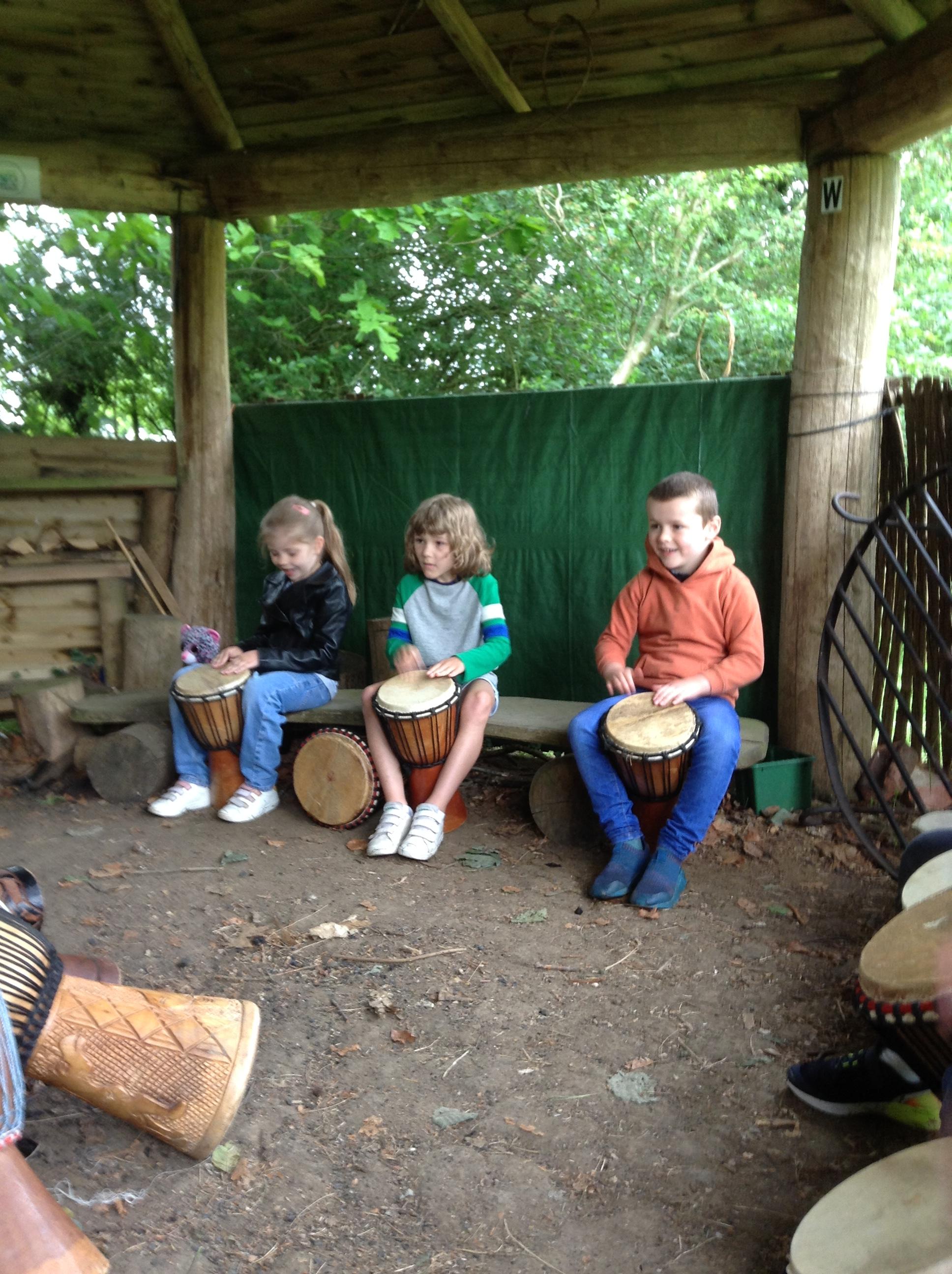 What a fun week we have had! It was SKY Arts Week, with lots of really interesting resources to download, from 2D print making to drama, dance and poetry. We were also fortunate to have Annie Begley doing pottery workshops in the Forest School hut, on Thursday and Kevin teaching the children djembe drumming and Laura teaching modern dance on Friday. On Tuesday, Shane Record painted a huge landscape mural of Sunny Sands in the hall. It was incredible to see the picture emerge before our eyes and the children and teachers were enthralled!