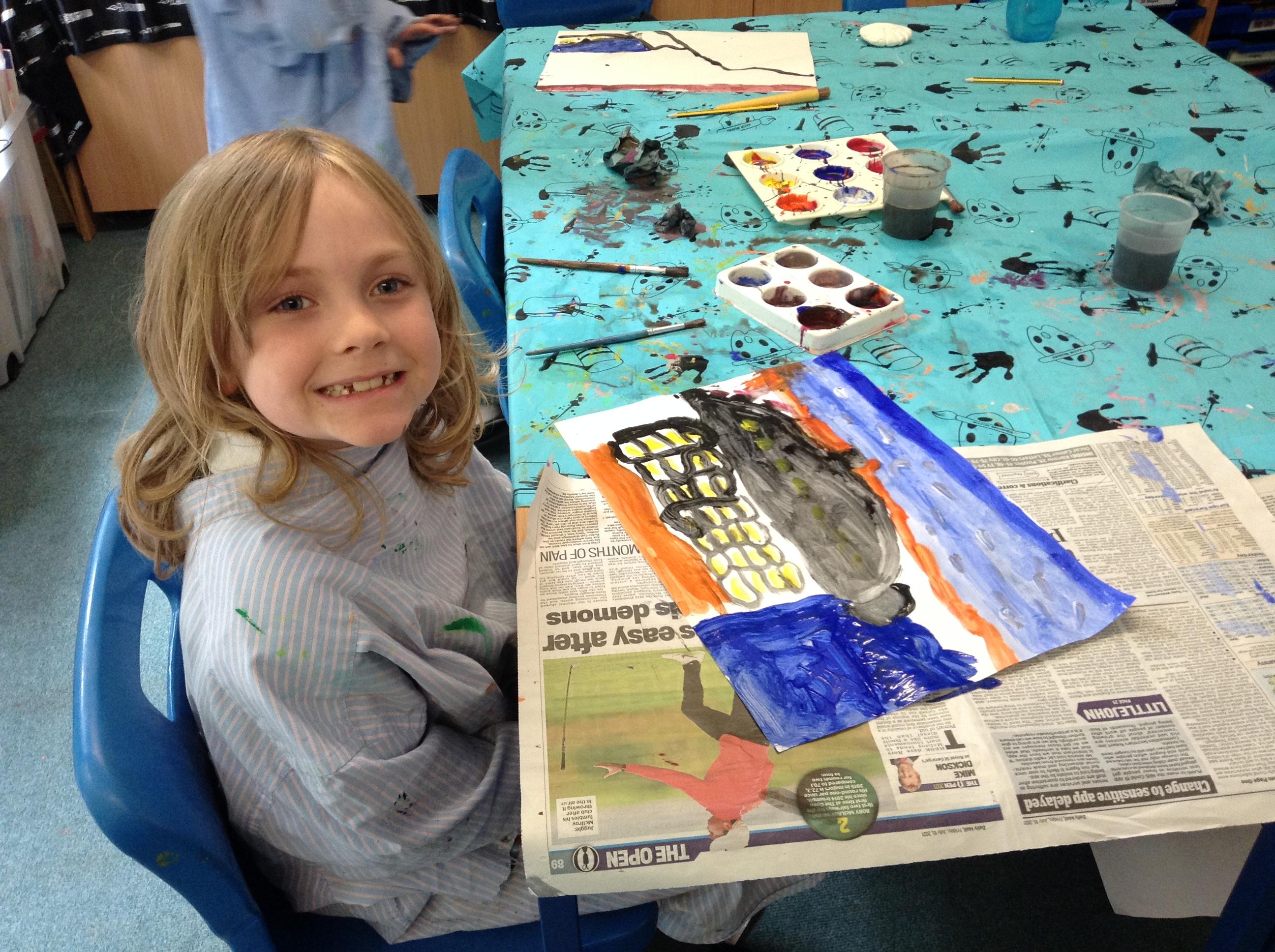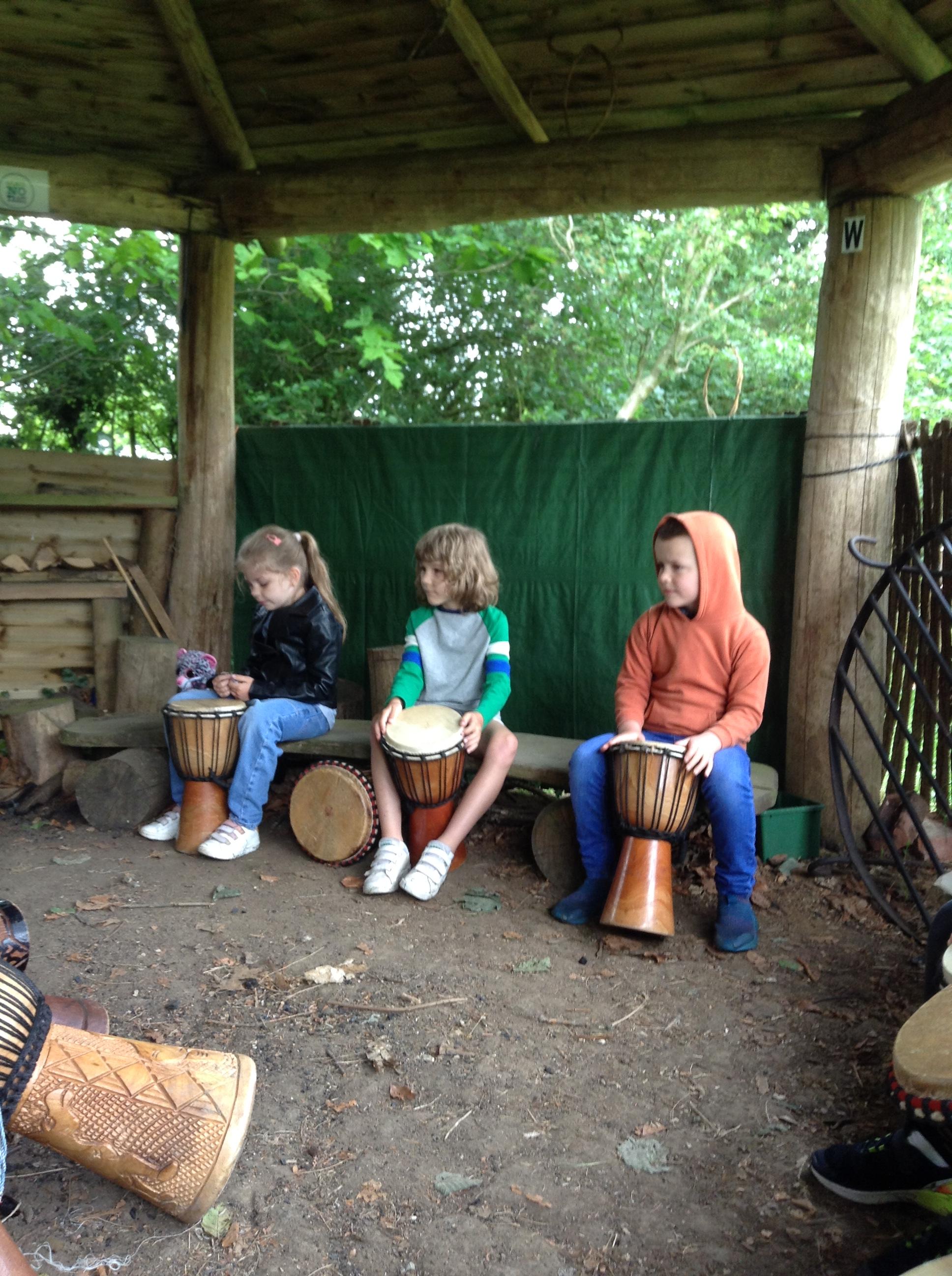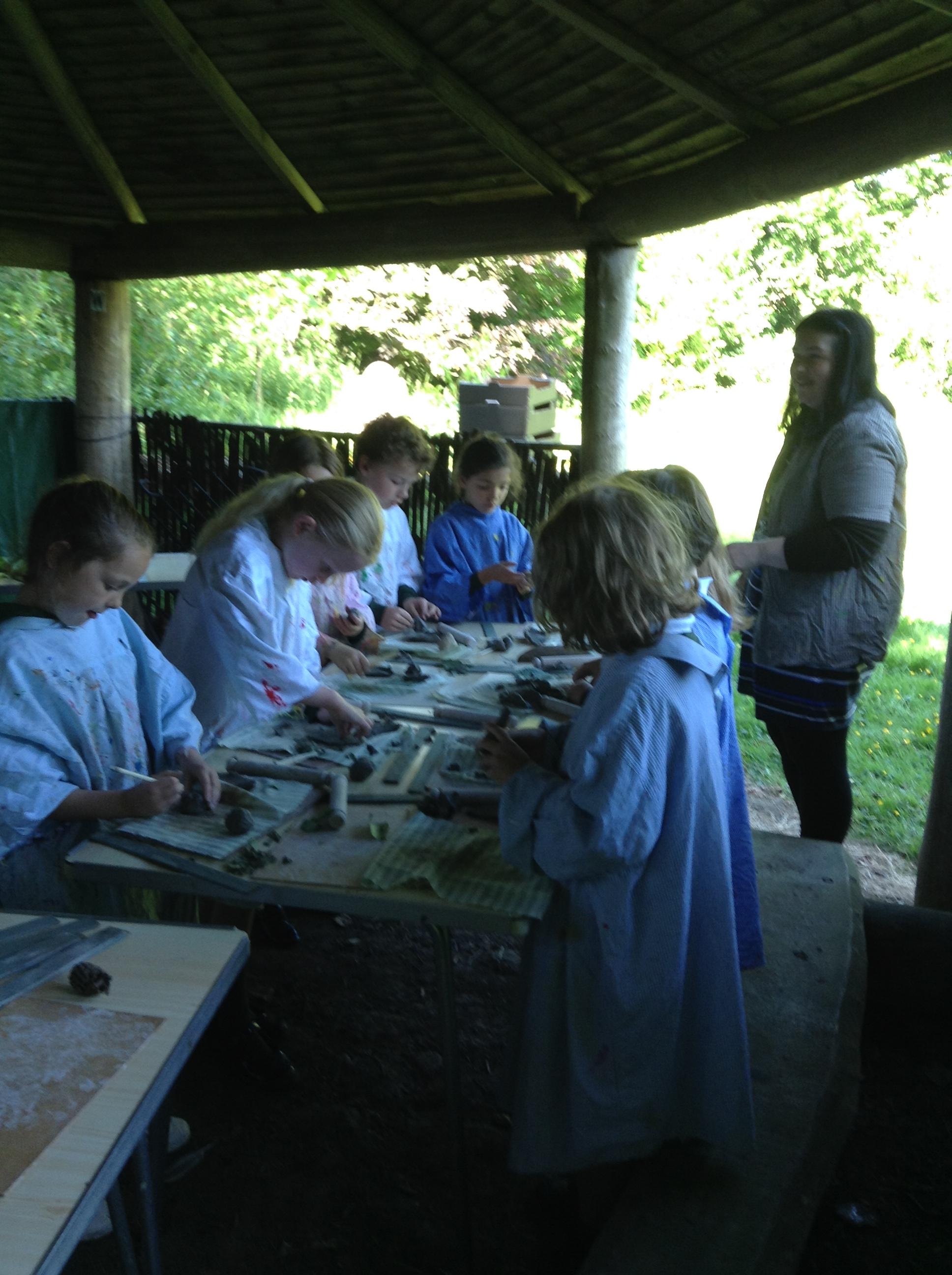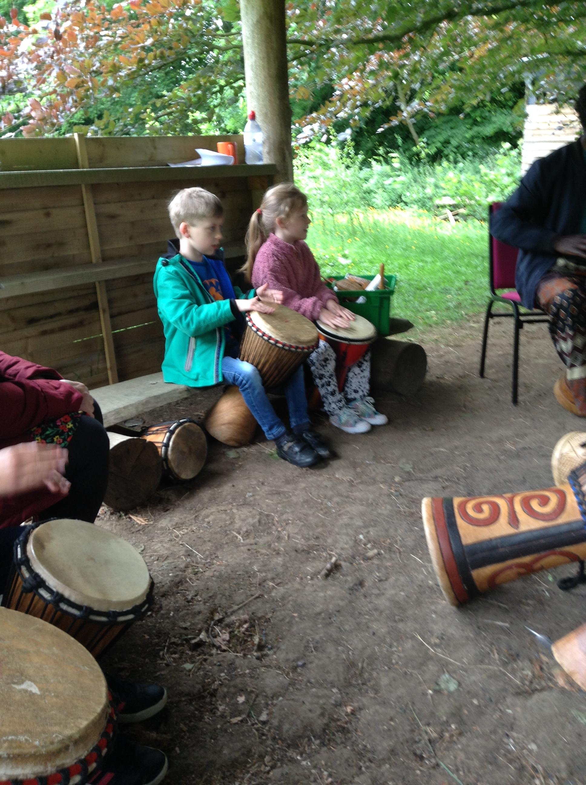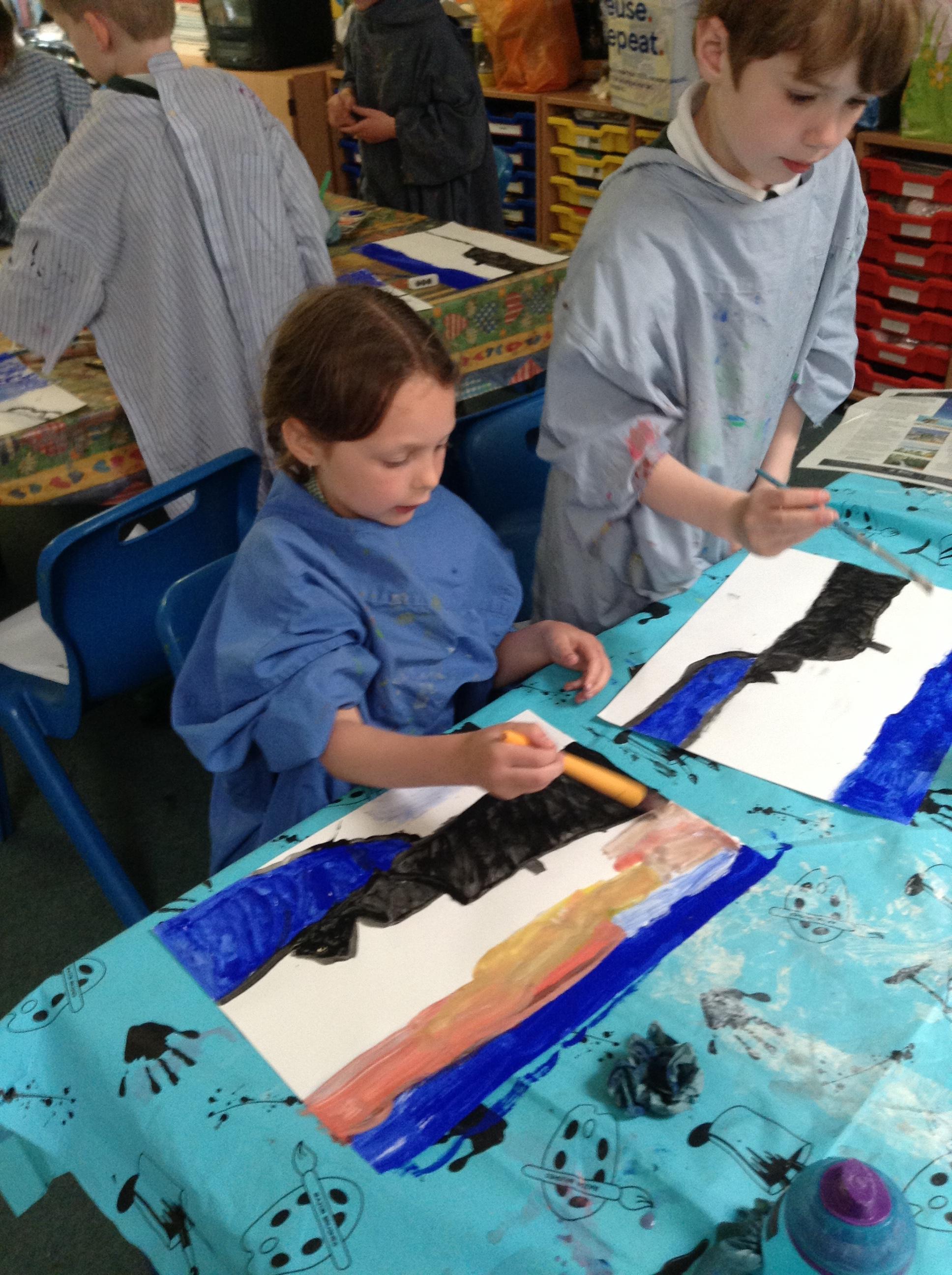 What a fun week we have had! It was SKY Arts Week, with lots of really interesting resources to download, from 2D print making to drama, dance and poetry. We were also fortunate to have Annie Begley doing pottery workshops in the Forest School hut, on Thursday and Kevin teaching the children djembe drumming and Laura teaching modern dance on Friday. On Tuesday, Shane Record painted a huge landscape mural of Sunny Sands in the hall. It was incredible to see the picture emerge before our eyes and the children and teachers were enthralled!