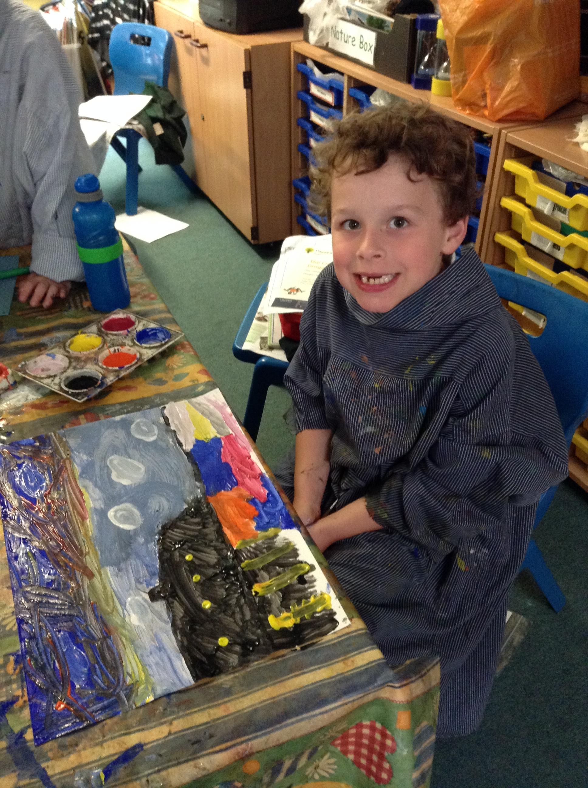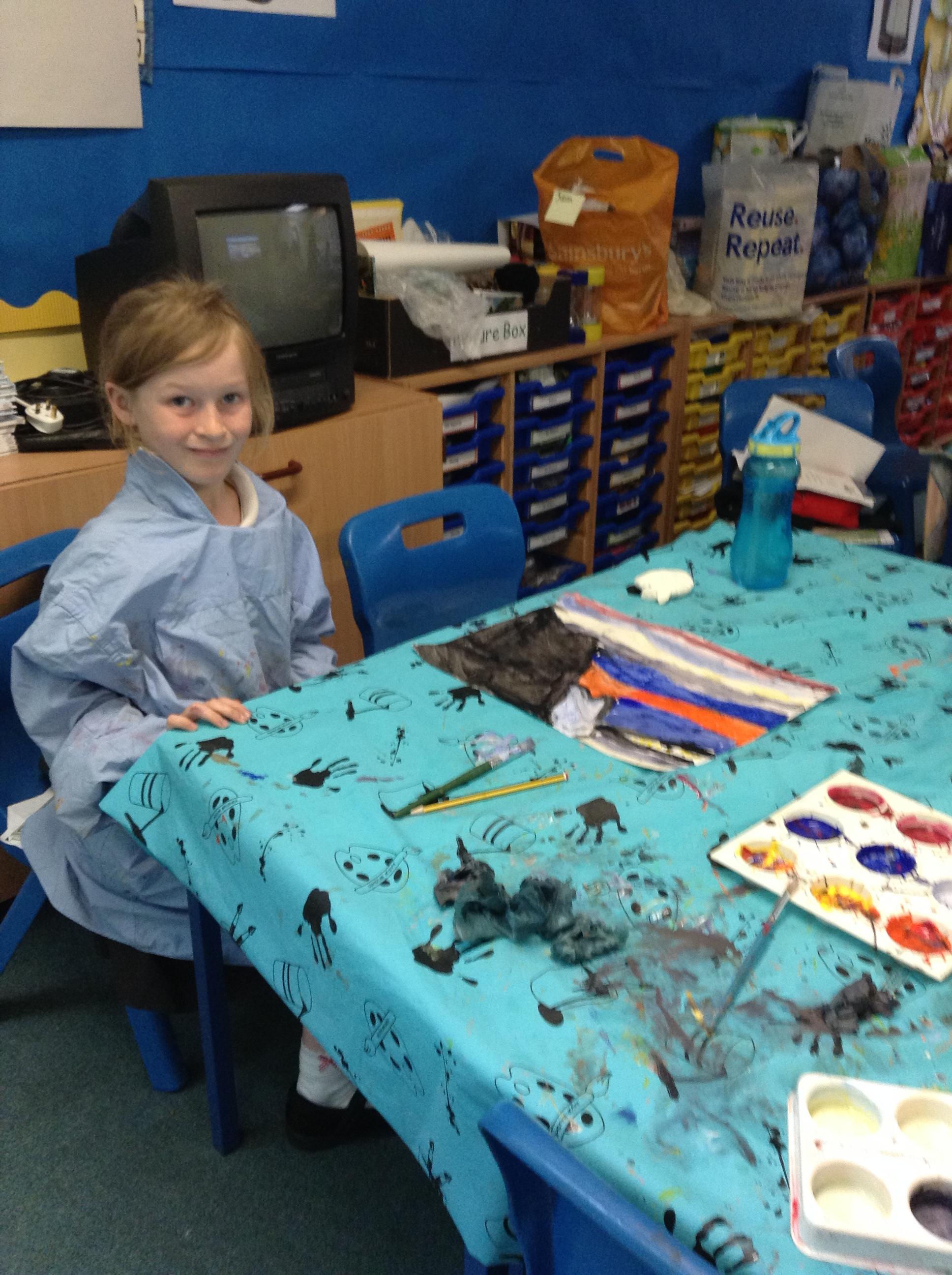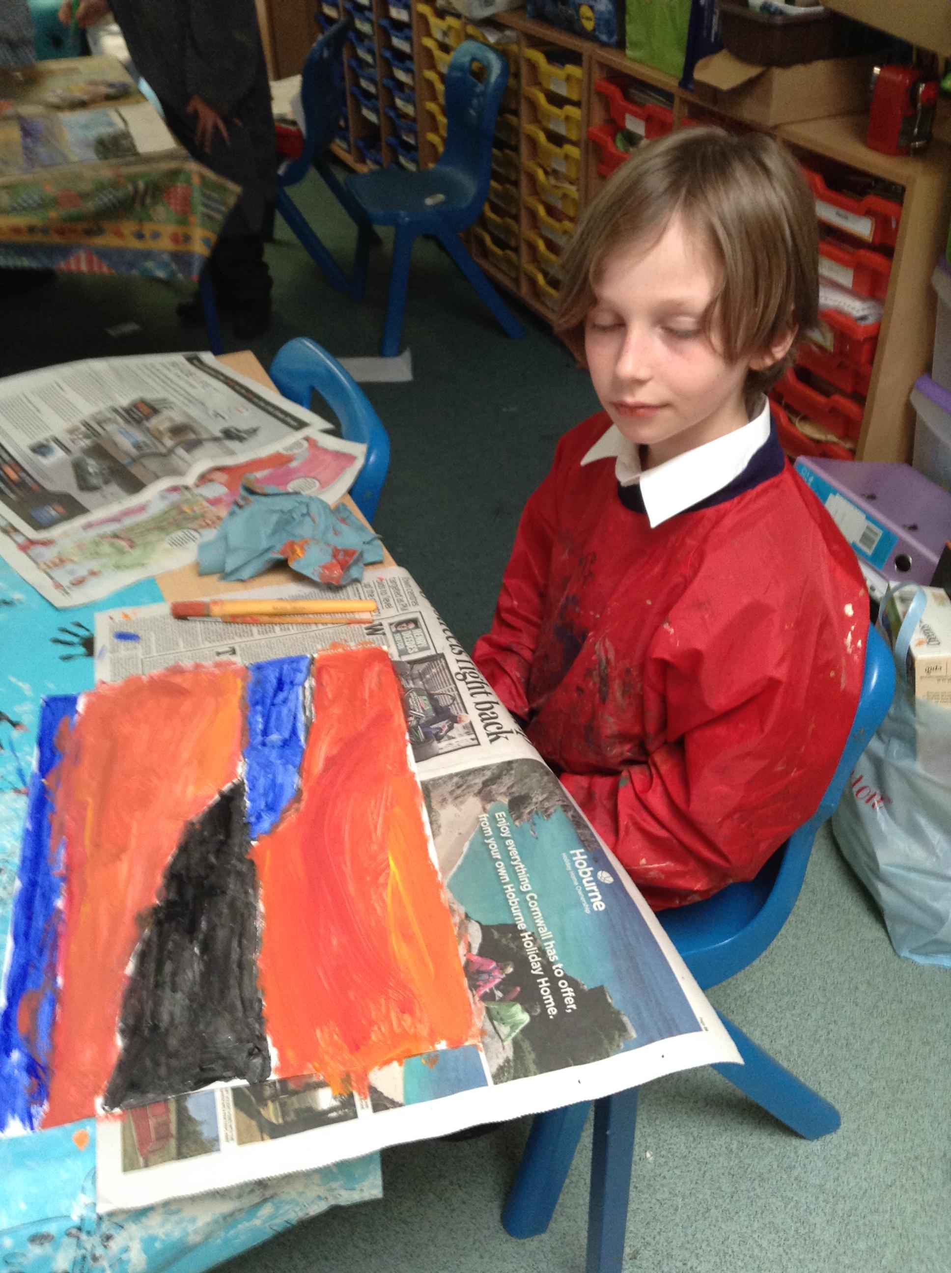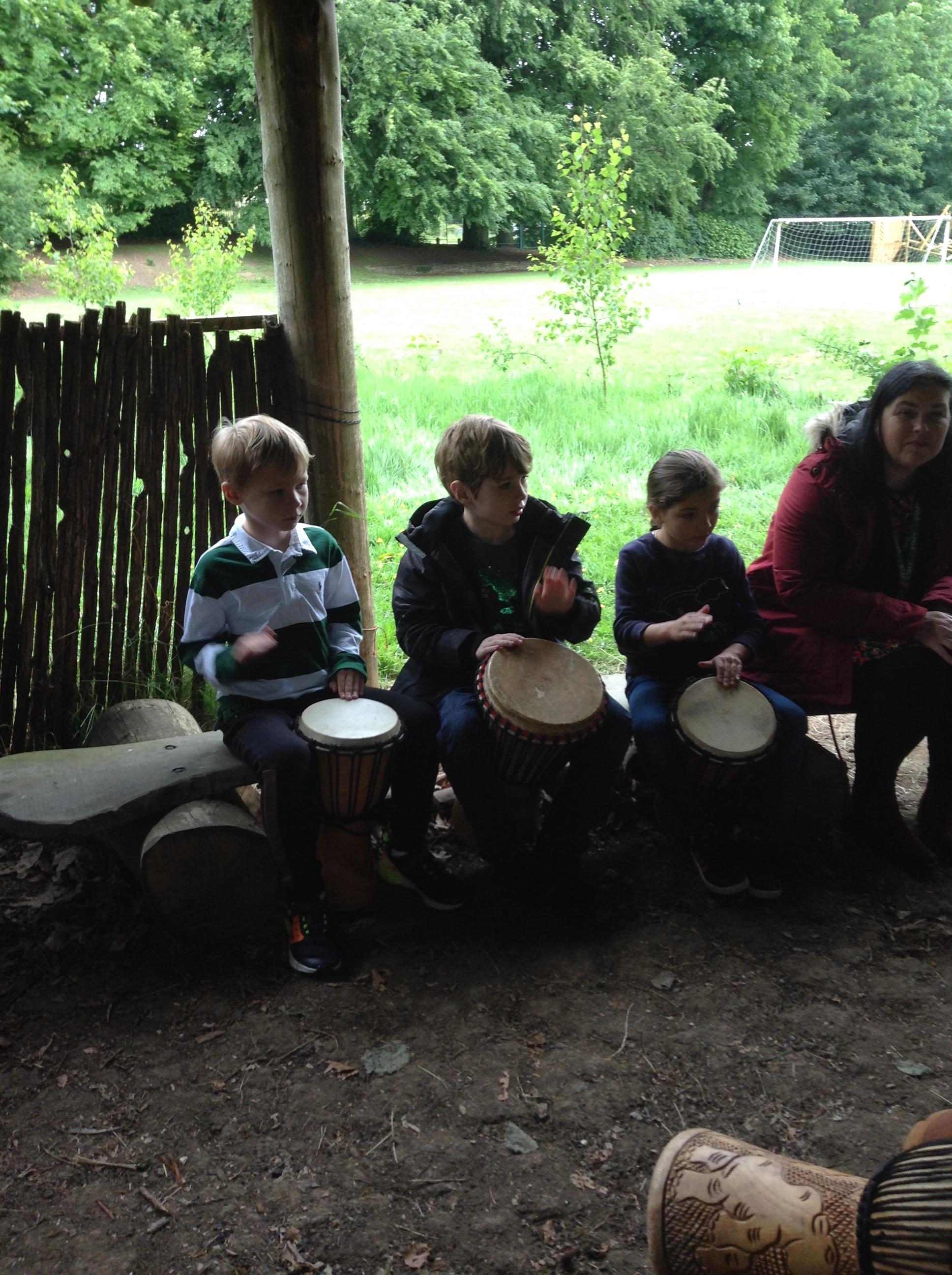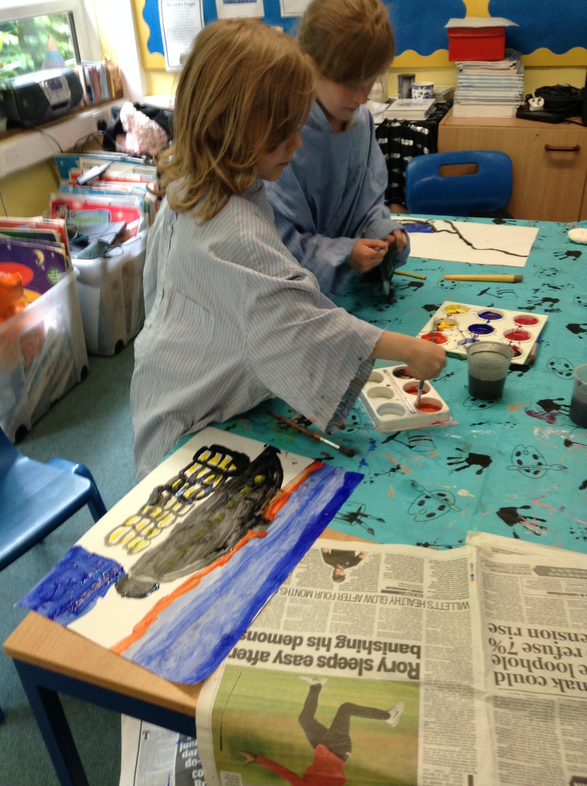 What a fun week we have had! It was SKY Arts Week, with lots of really interesting resources to download, from 2D print making to drama, dance and poetry. We were also fortunate to have Annie Begley doing pottery workshops in the Forest School hut, on Thursday and Kevin teaching the children djembe drumming and Laura teaching modern dance on Friday. On Tuesday, Shane Record painted a huge landscape mural of Sunny Sands in the hall. It was incredible to see the picture emerge before our eyes and the children and teachers were enthralled!