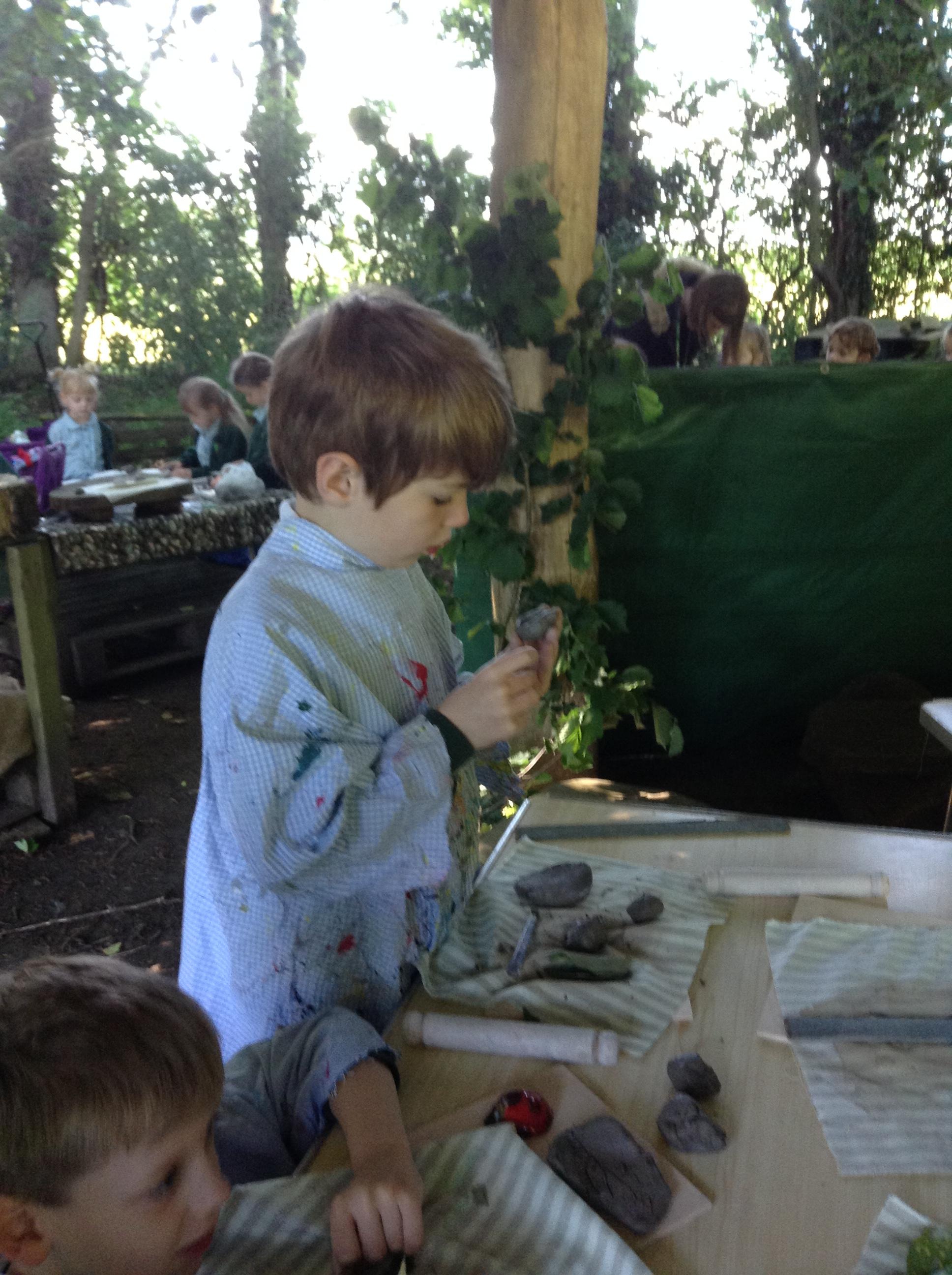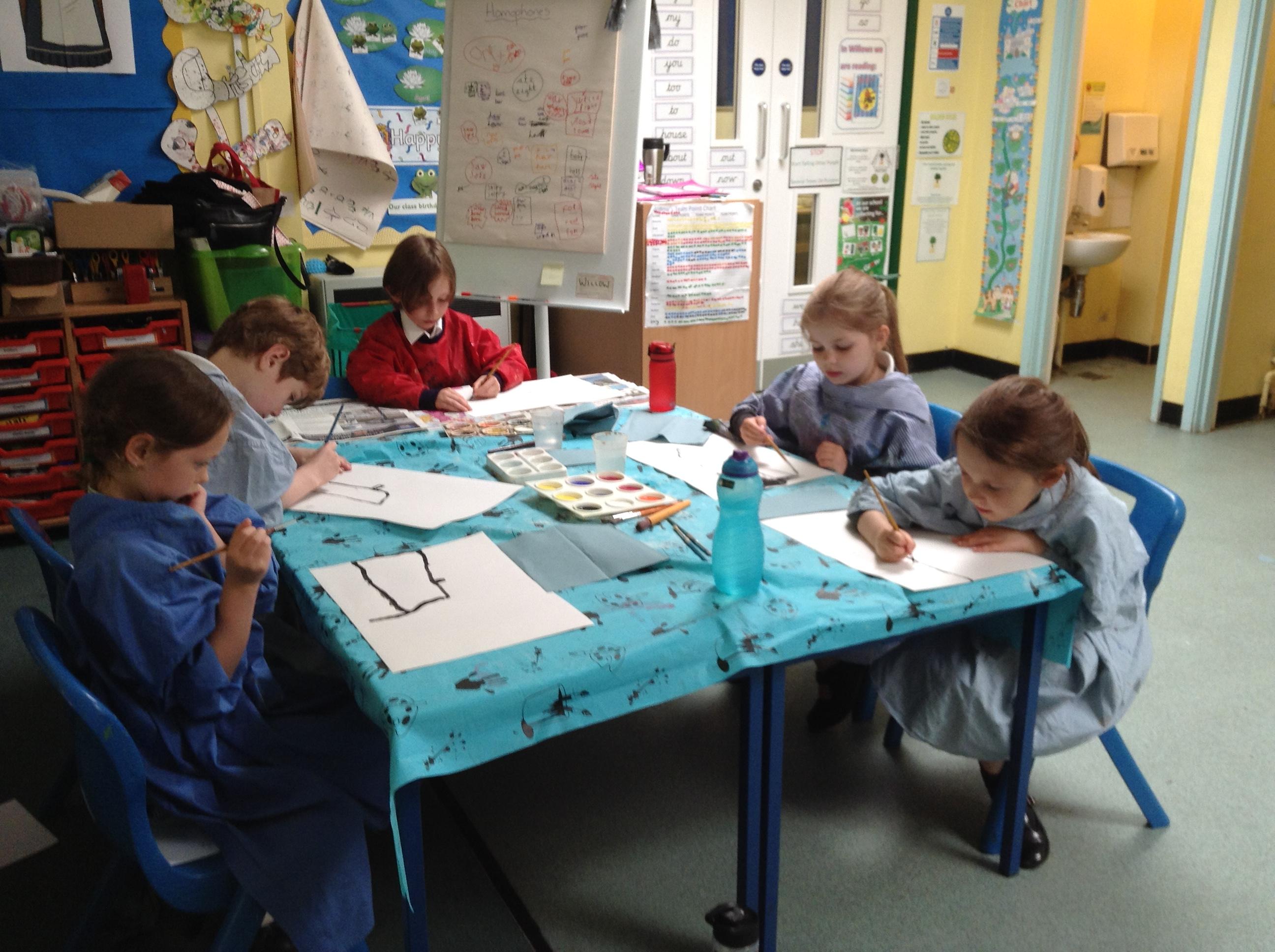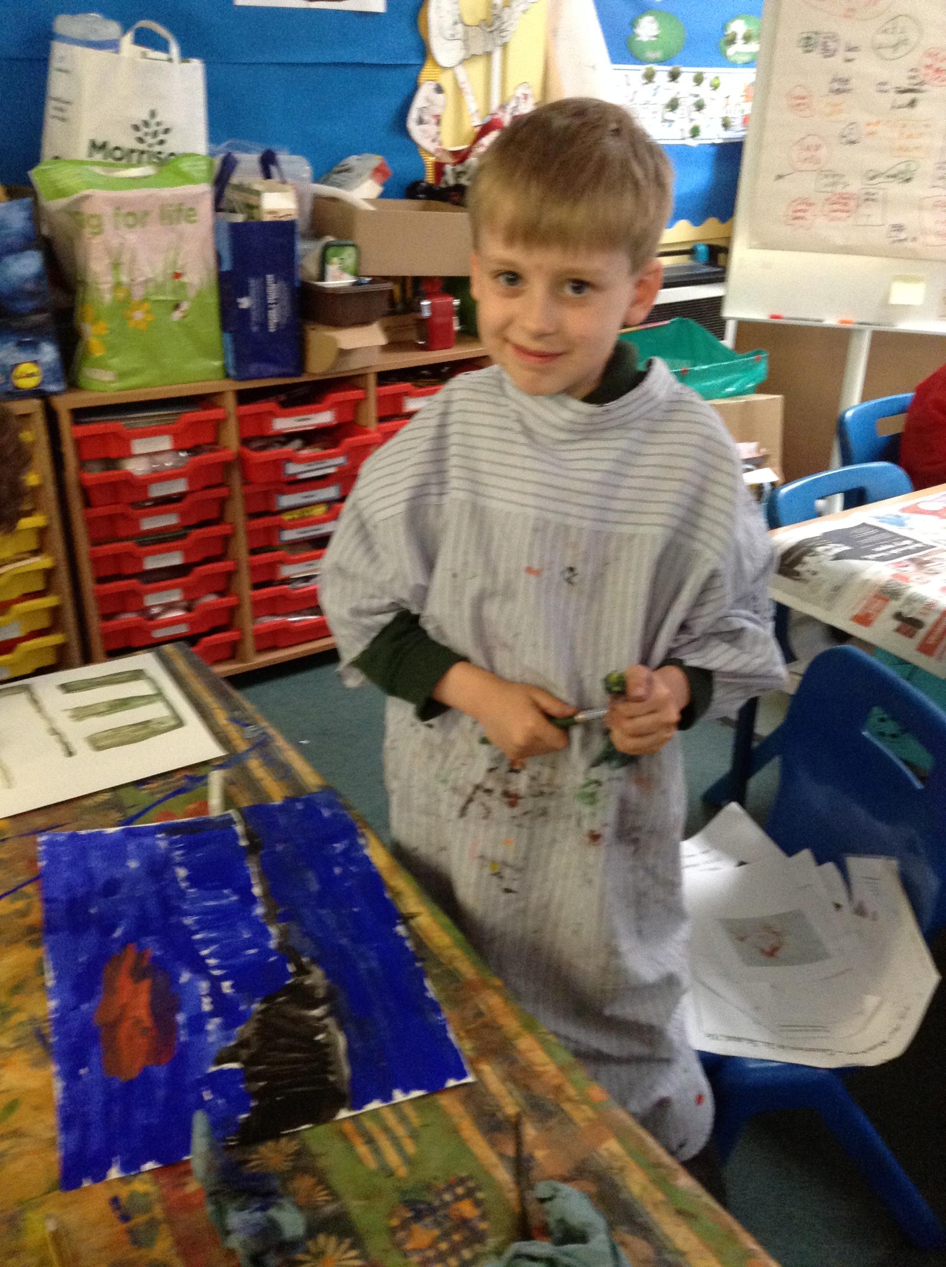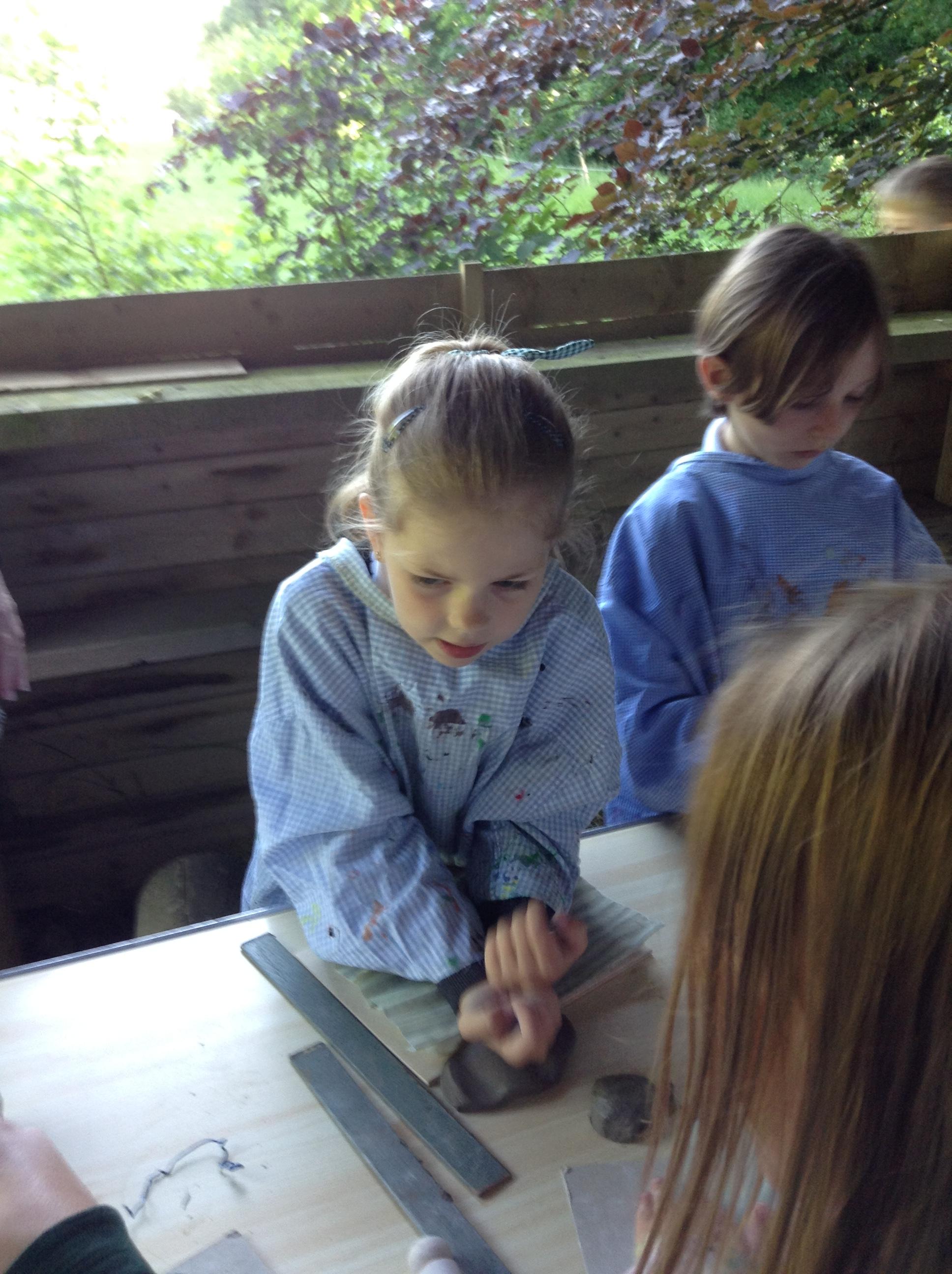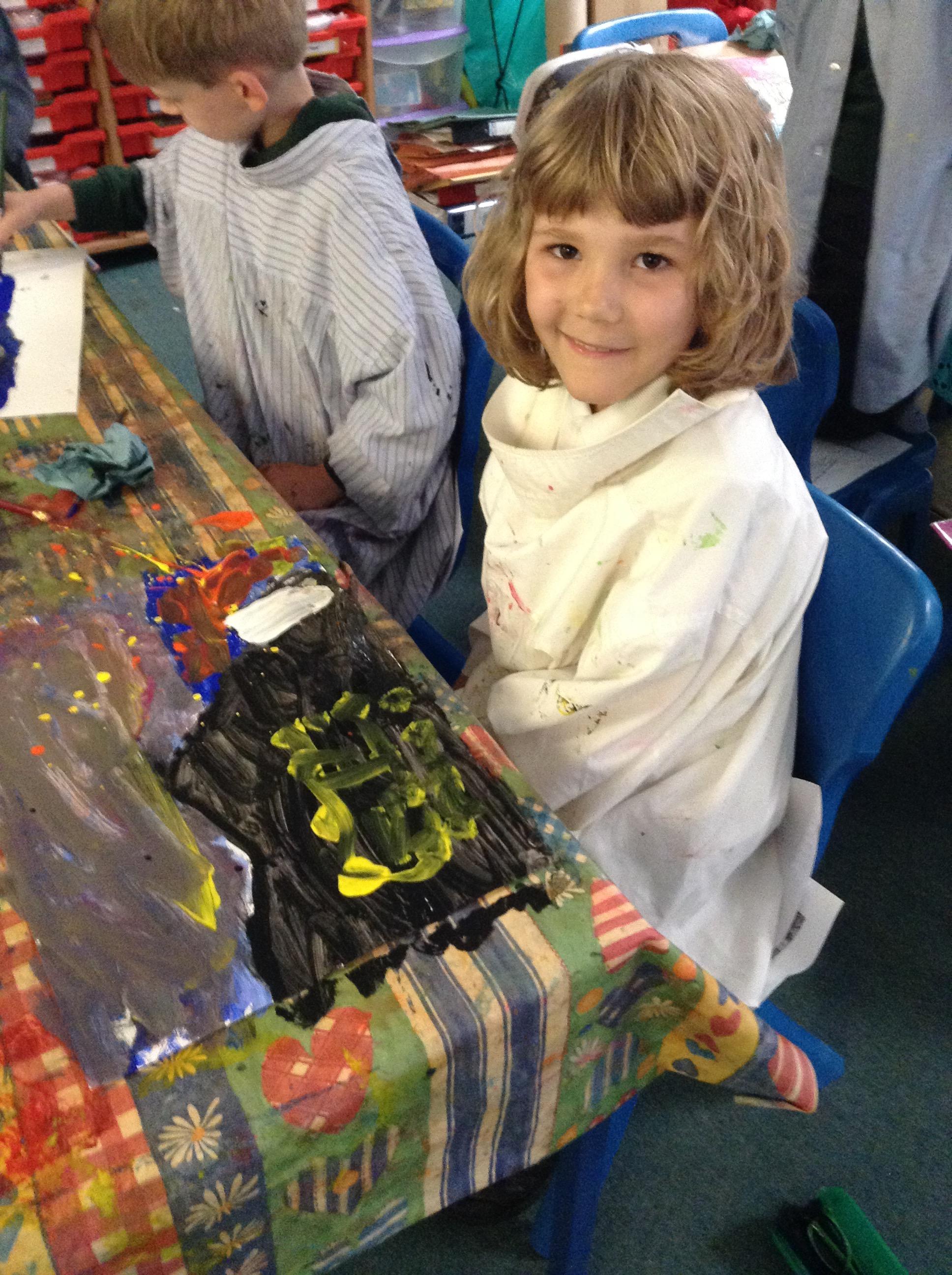 What a fun week we have had! It was SKY Arts Week, with lots of really interesting resources to download, from 2D print making to drama, dance and poetry. We were also fortunate to have Annie Begley doing pottery workshops in the Forest School hut, on Thursday and Kevin teaching the children djembe drumming and Laura teaching modern dance on Friday. On Tuesday, Shane Record painted a huge landscape mural of Sunny Sands in the hall. It was incredible to see the picture emerge before our eyes and the children and teachers were enthralled!