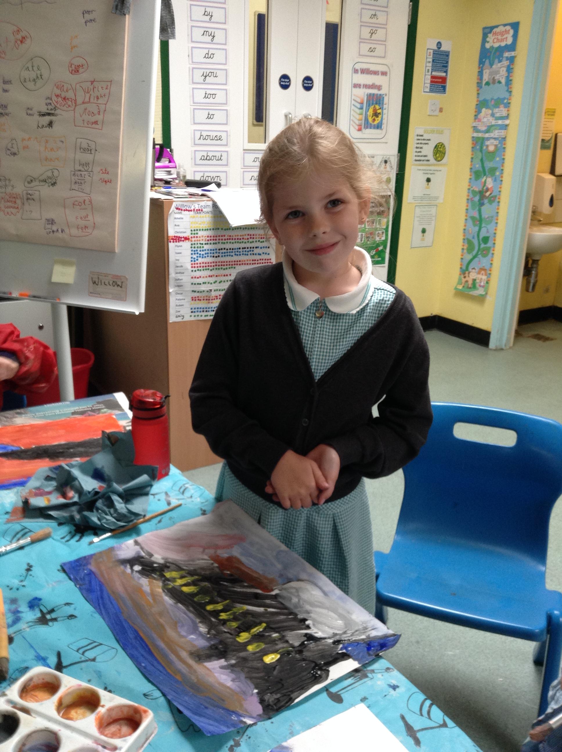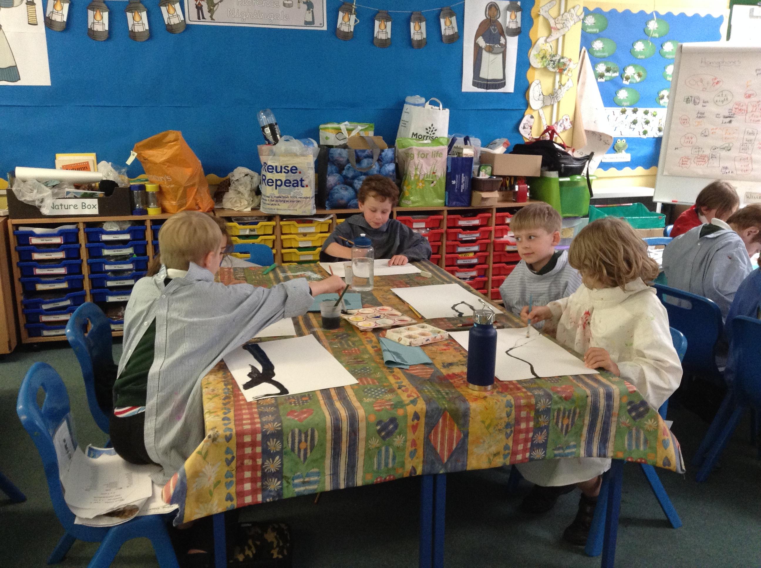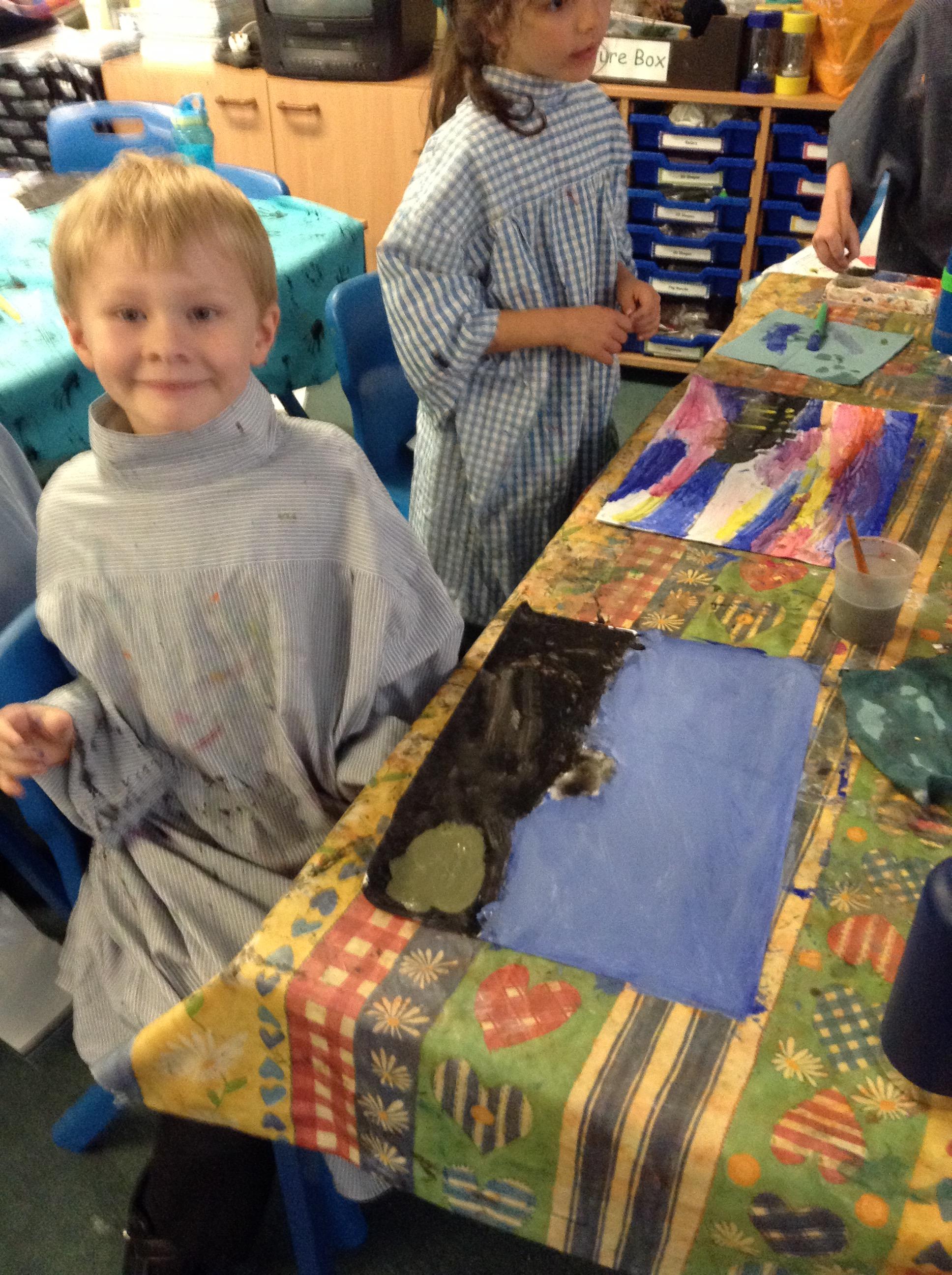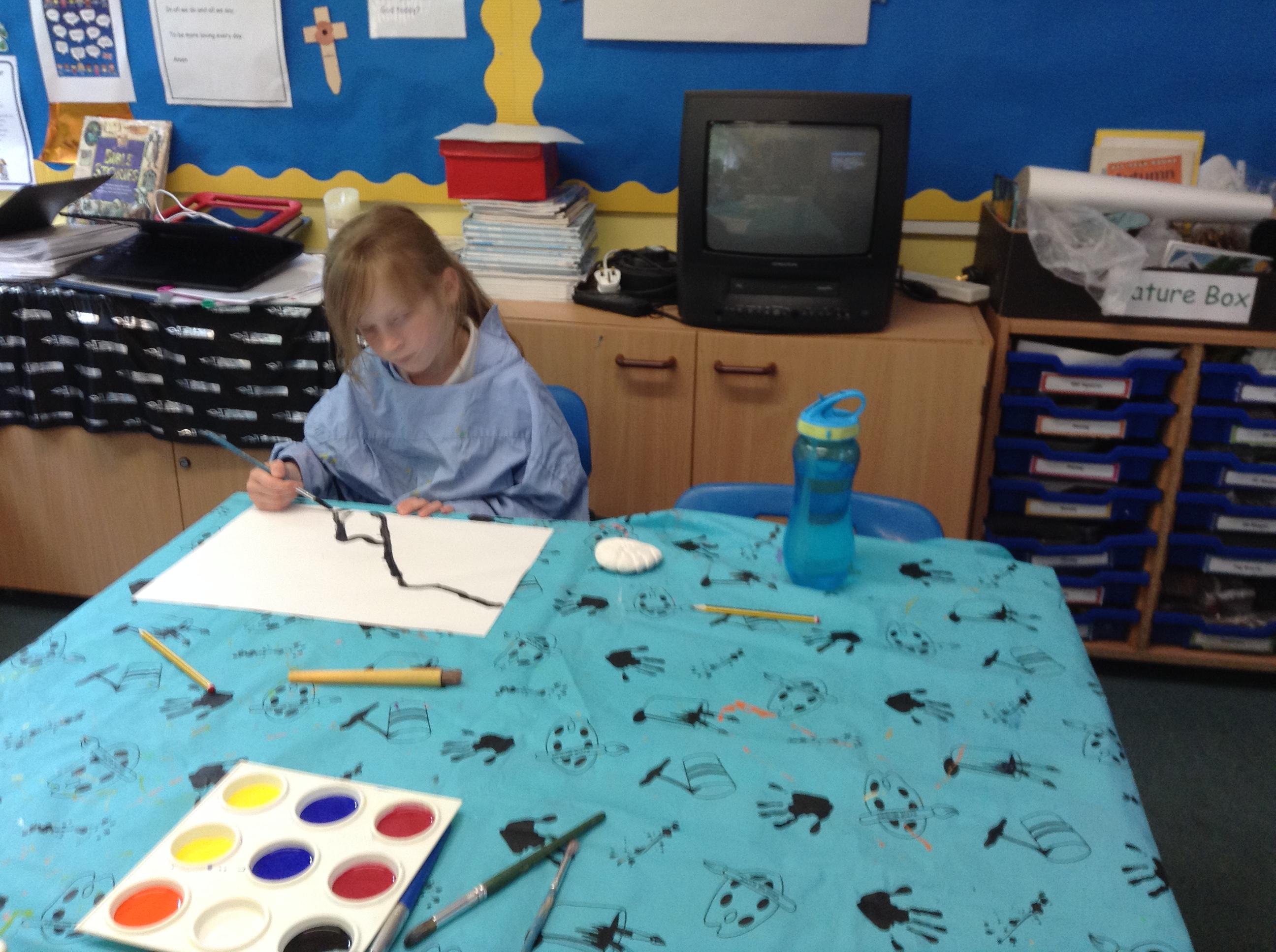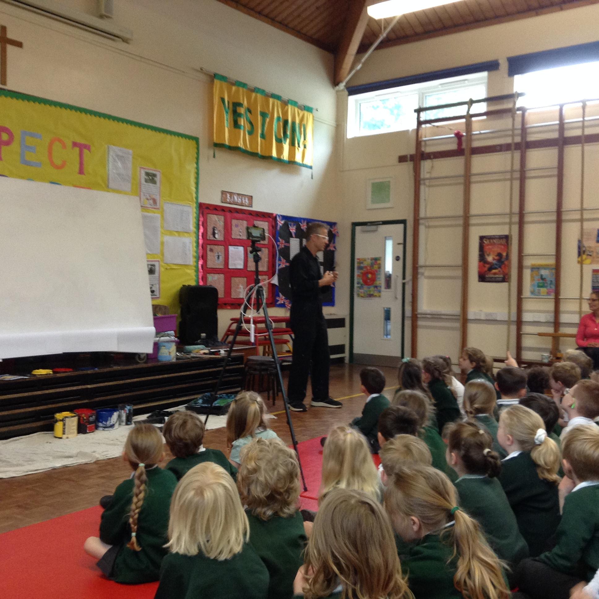What a fun week we have had! It was SKY Arts Week, with lots of really interesting resources to download, from 2D print making to drama, dance and poetry. We were also fortunate to have Annie Begley doing pottery workshops in the Forest School hut, on Thursday and Kevin teaching the children djembe drumming and Laura teaching modern dance on Friday. On Tuesday, Shane Record painted a huge landscape mural of Sunny Sands in the hall. It was incredible to see the picture emerge before our eyes and the children and teachers were enthralled!