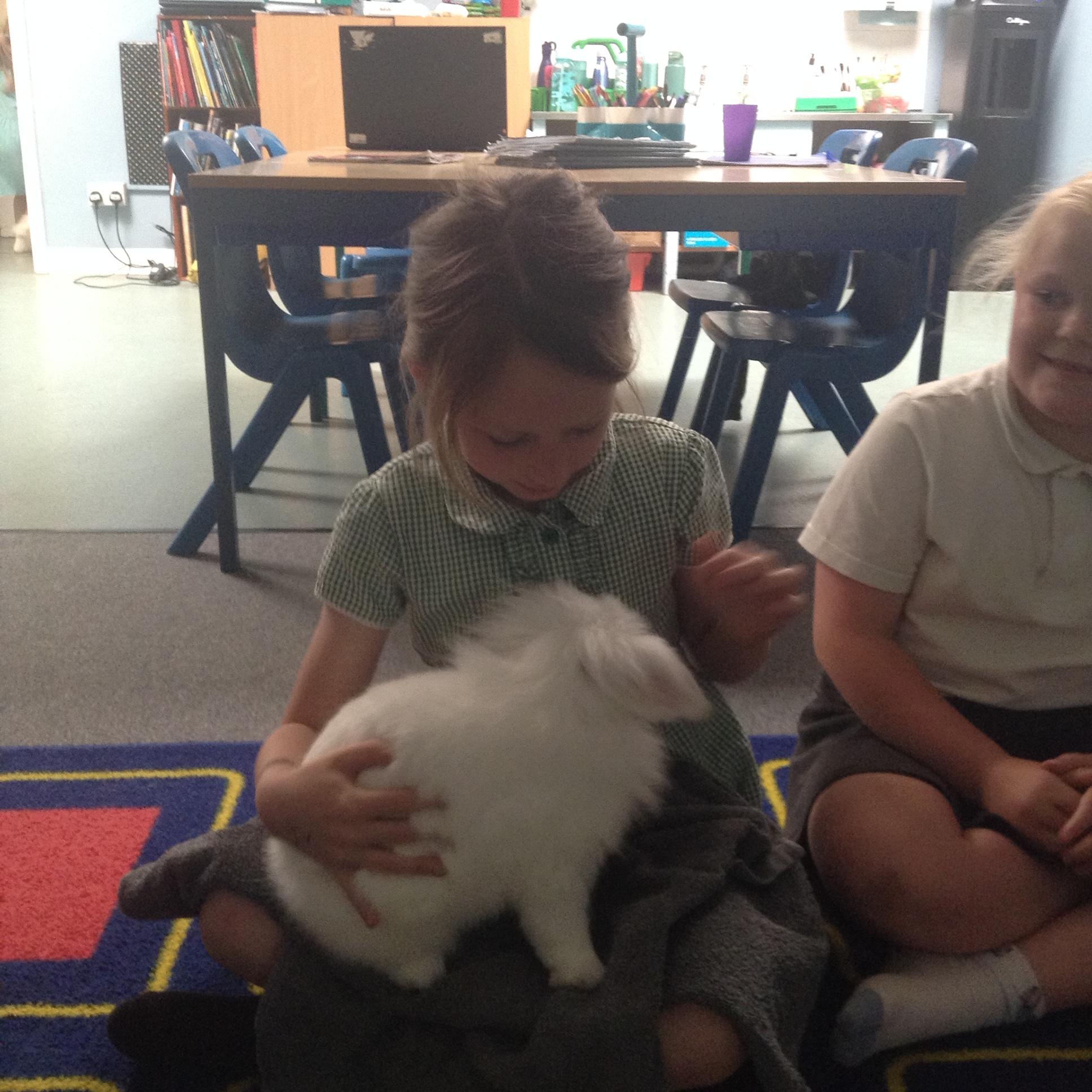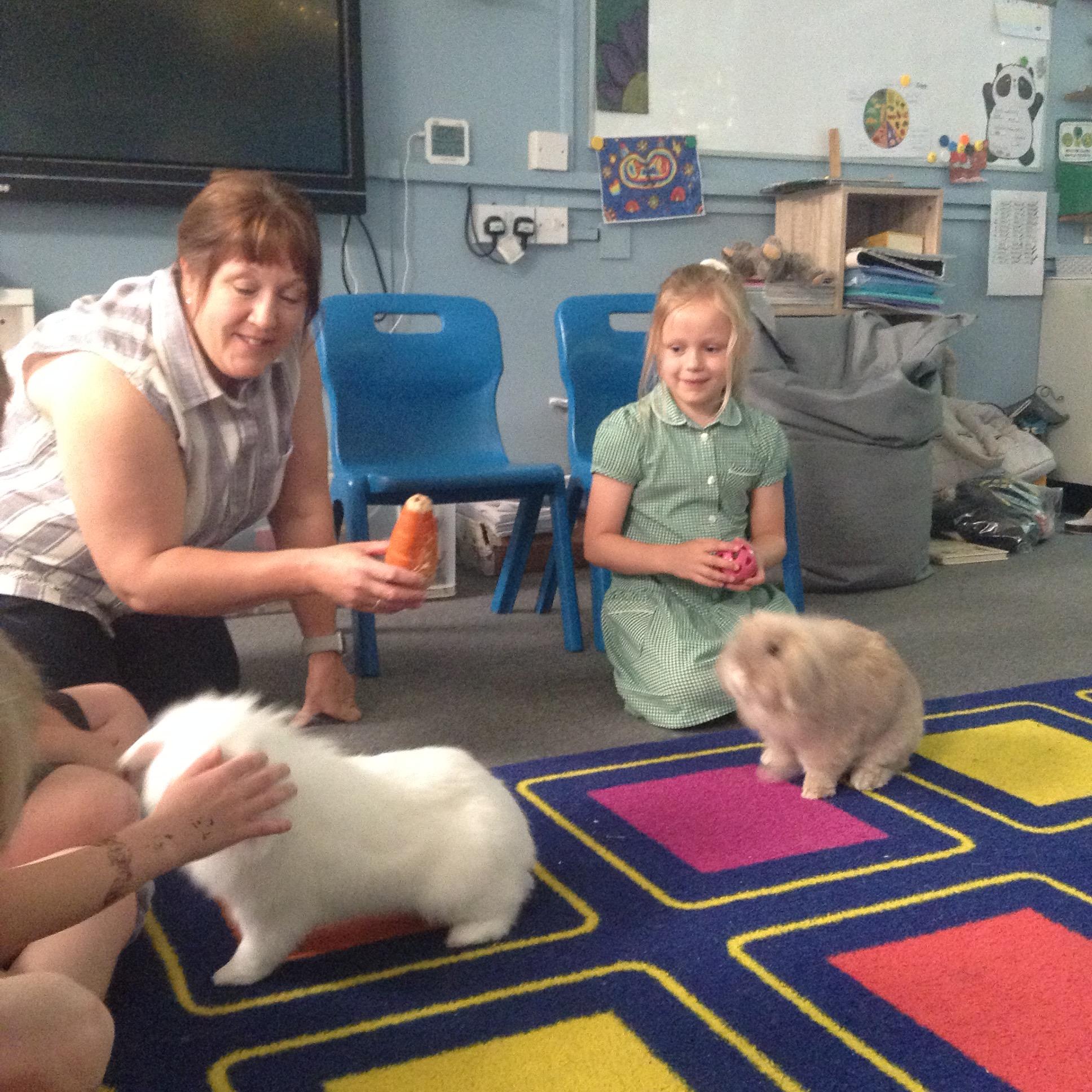 Thank you to Alice's mummy for bringing in Marshmallow and Fudge today. It was great to meet them and find out about how they look after and care for these rabbits.