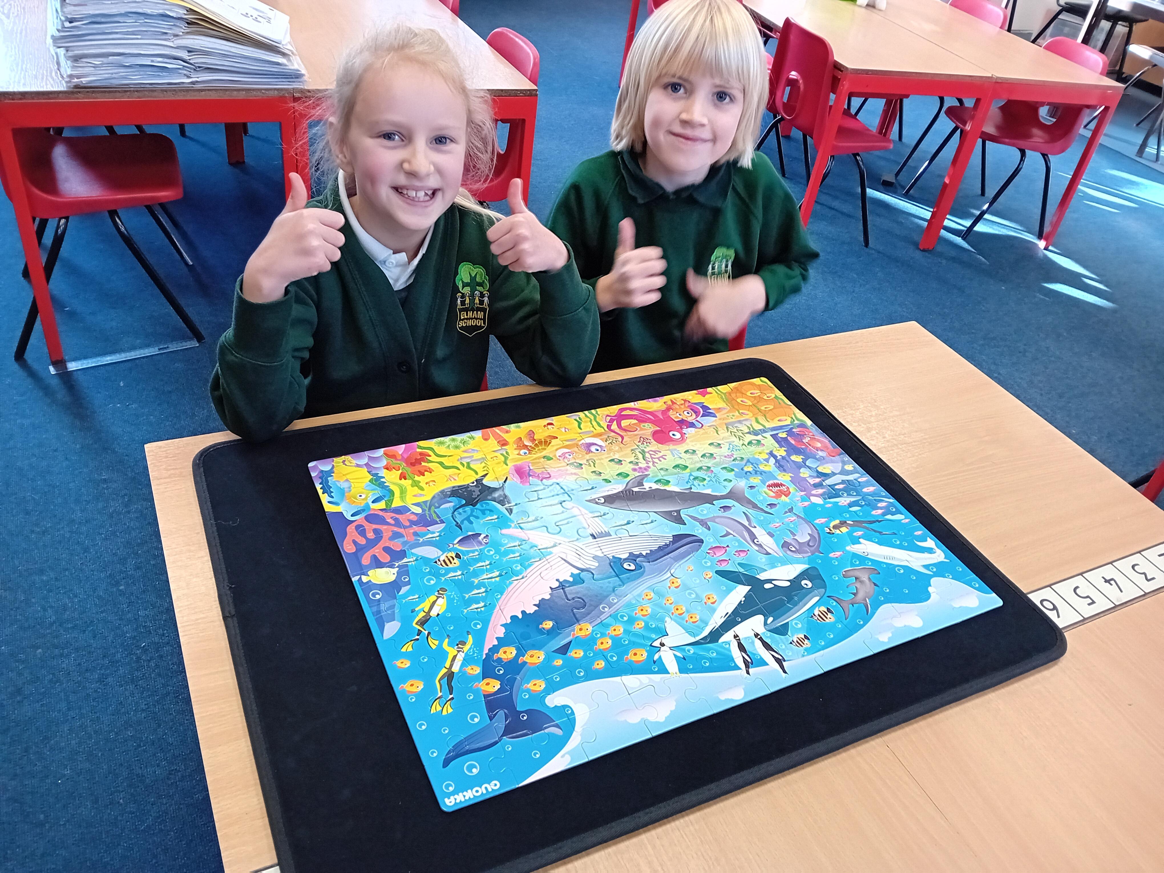 Puzzle club enjoyed completing our first 100 piece puzzle today!