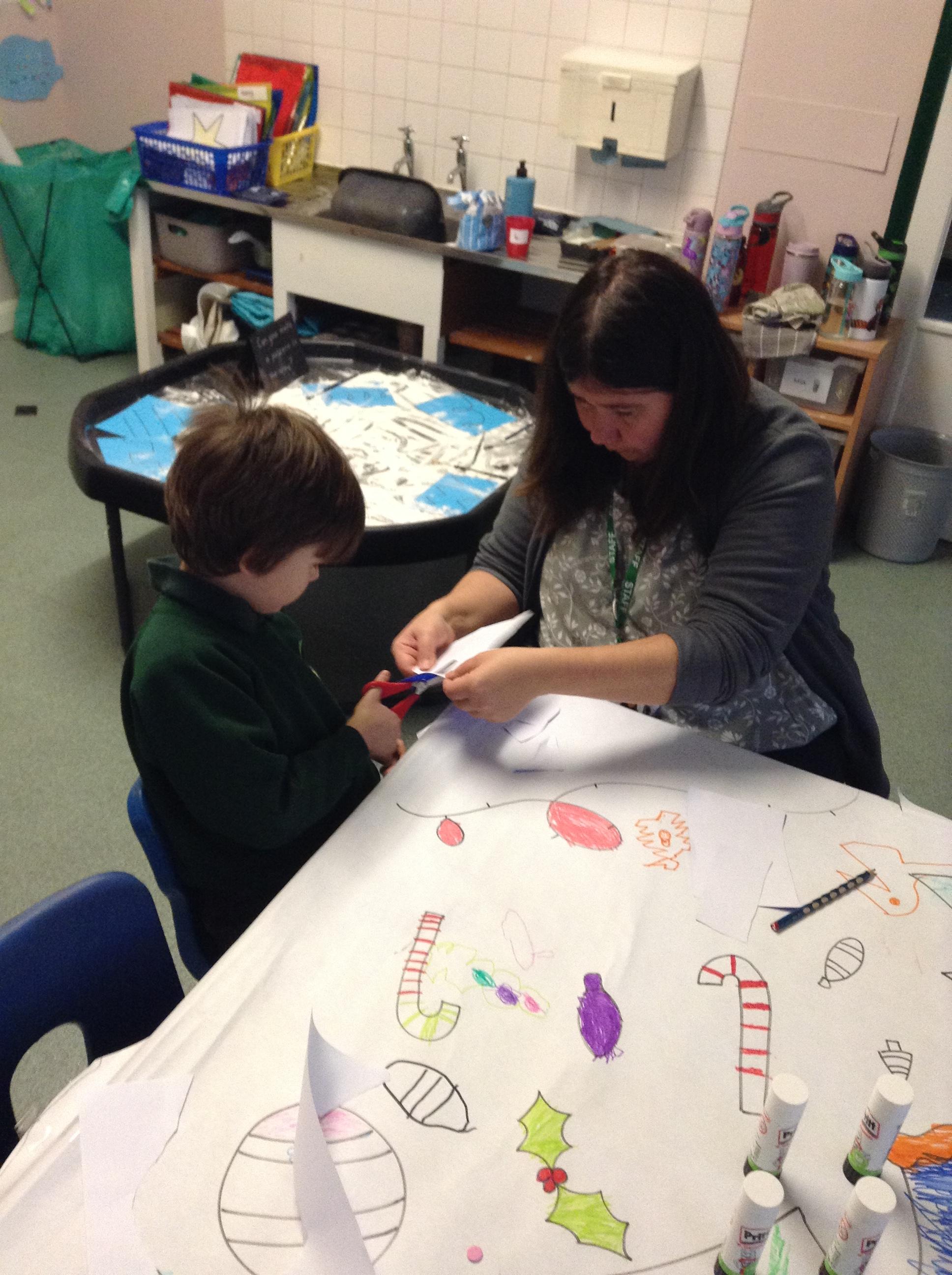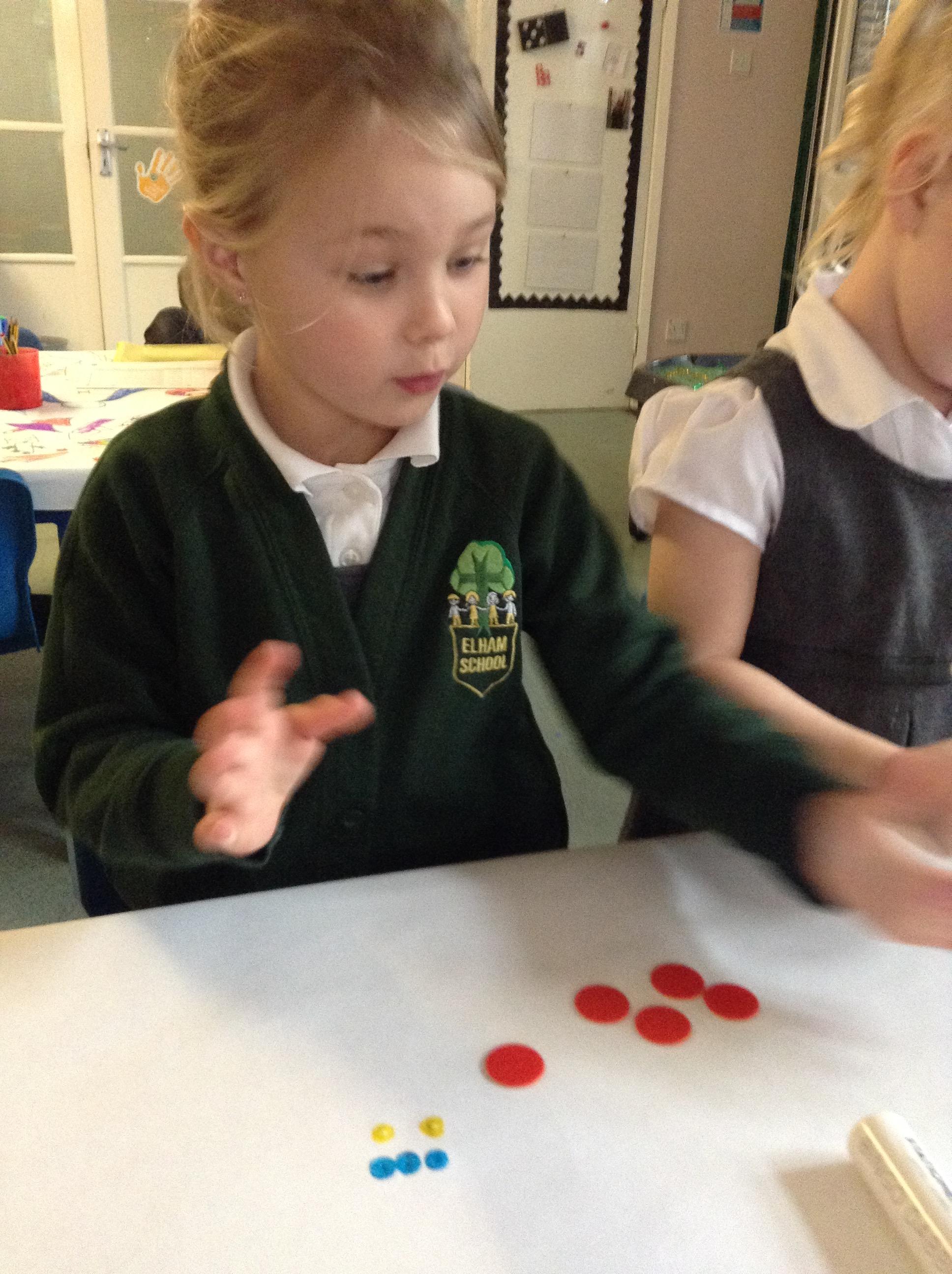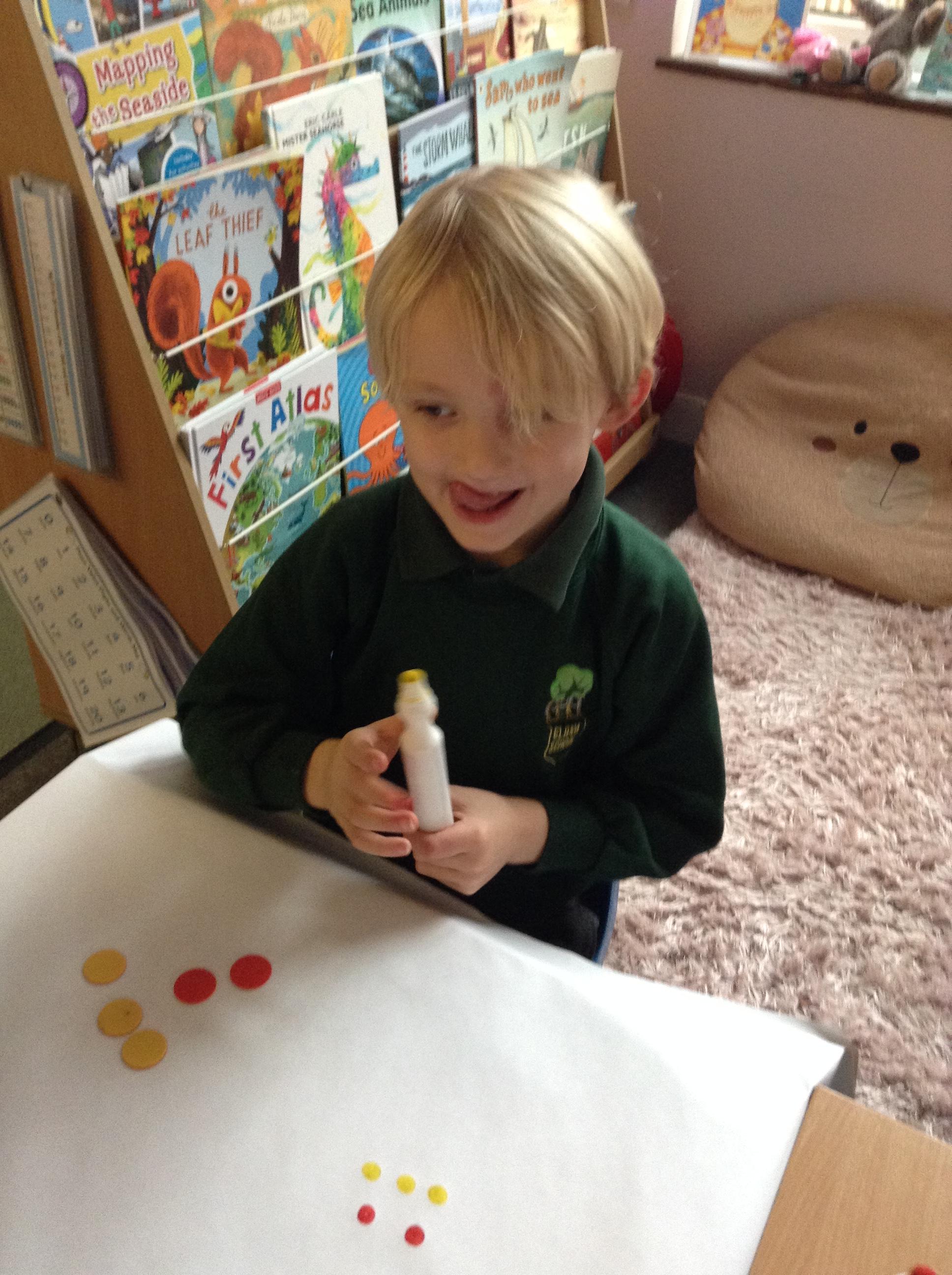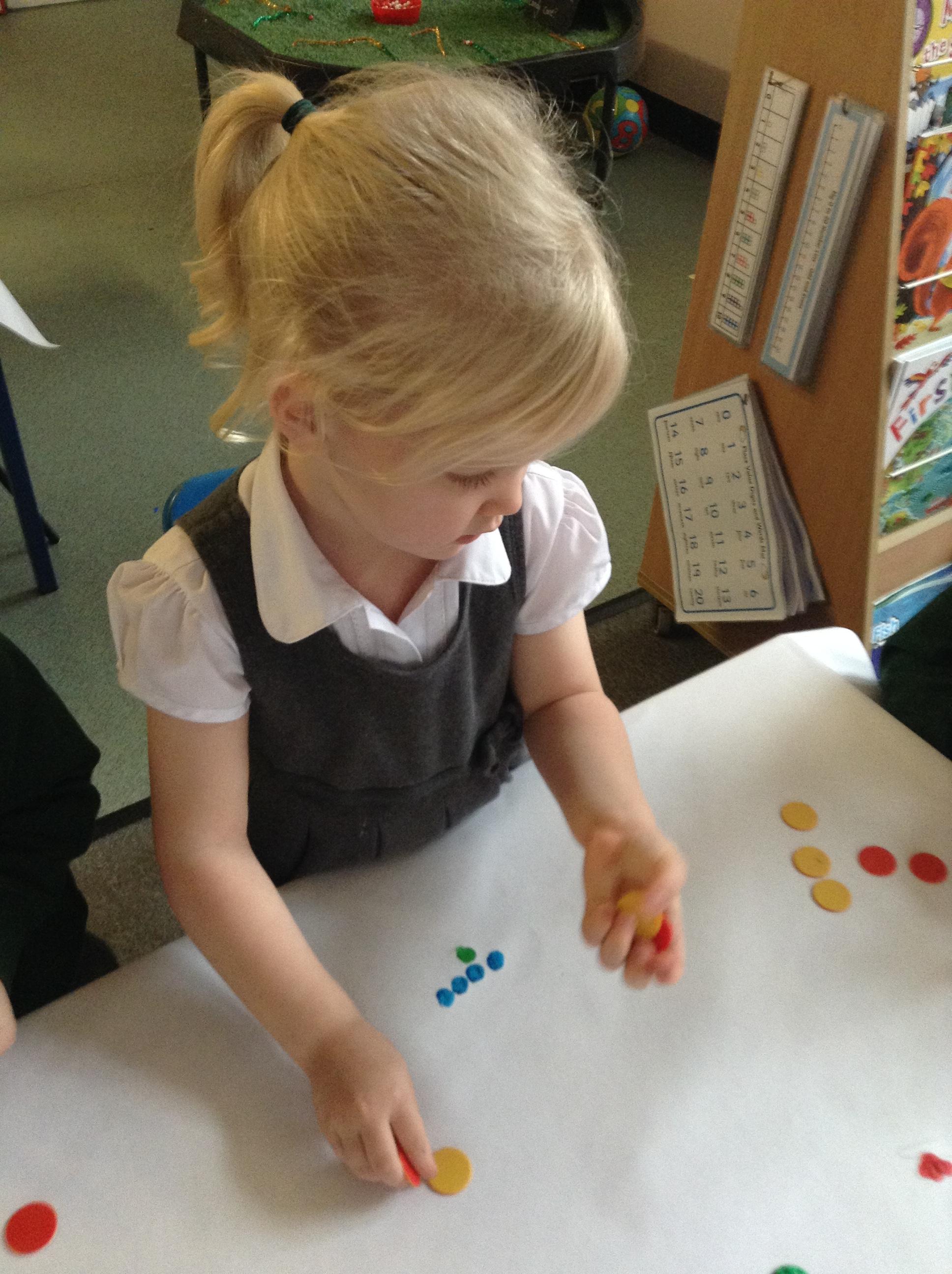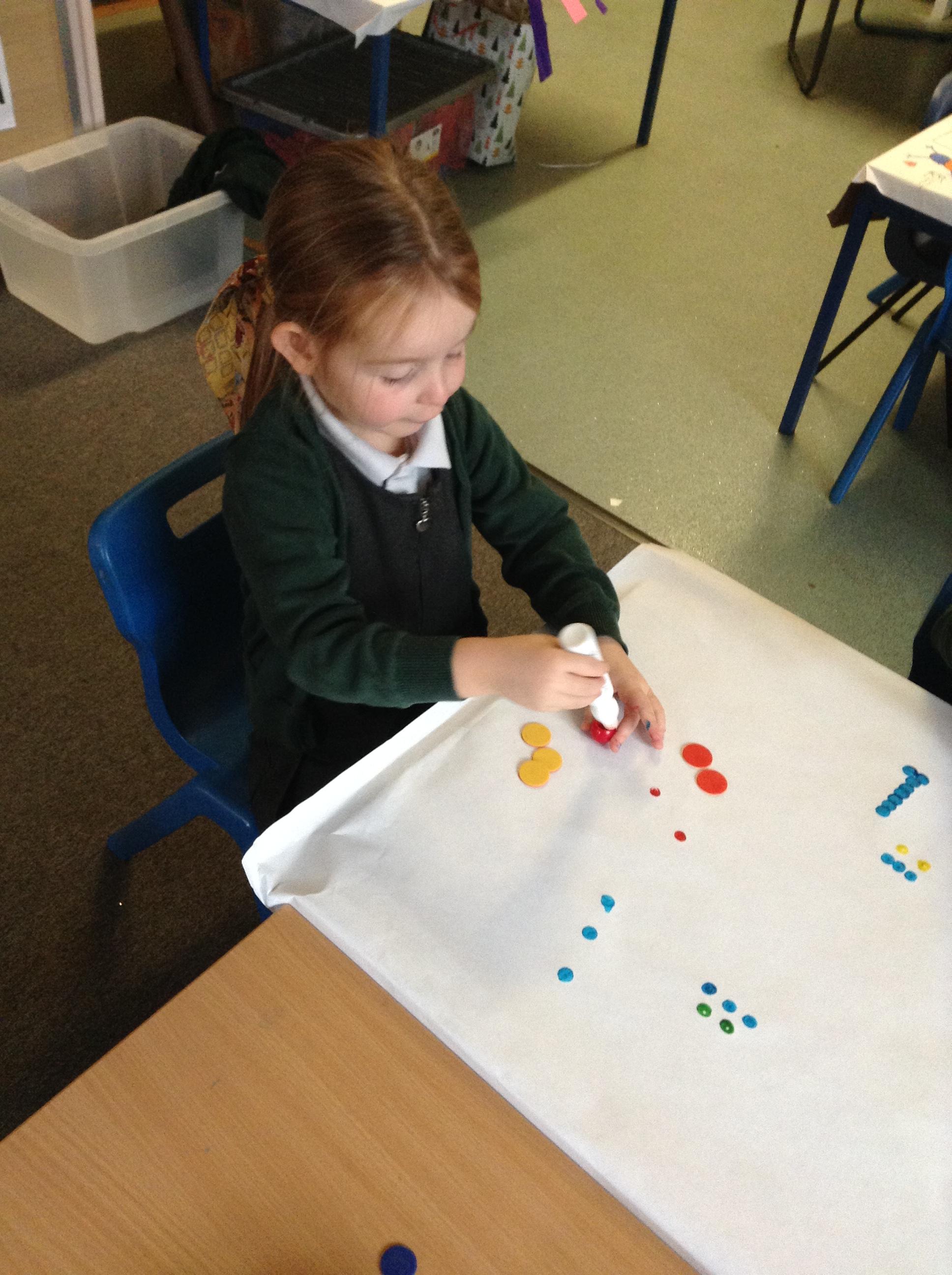 The reception children have been using bingo dabbers to represent numbers up to five in different arrangements.