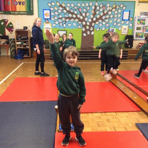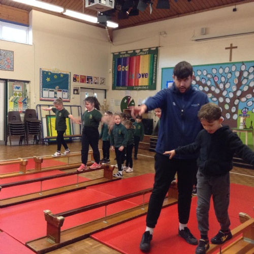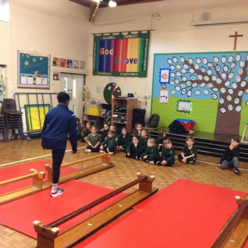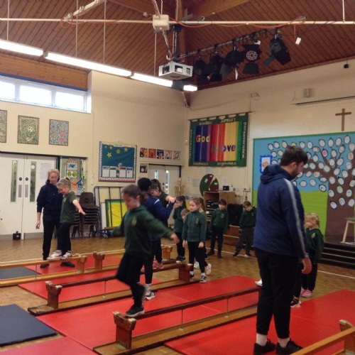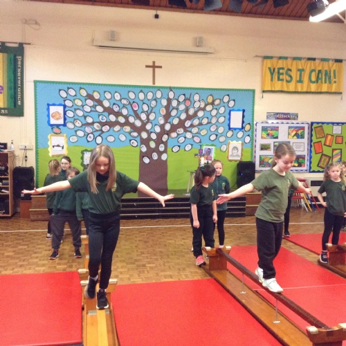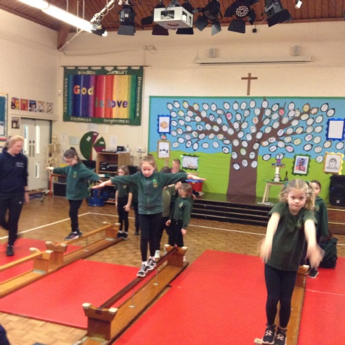 The children were walking along the beam in gymnastics today.