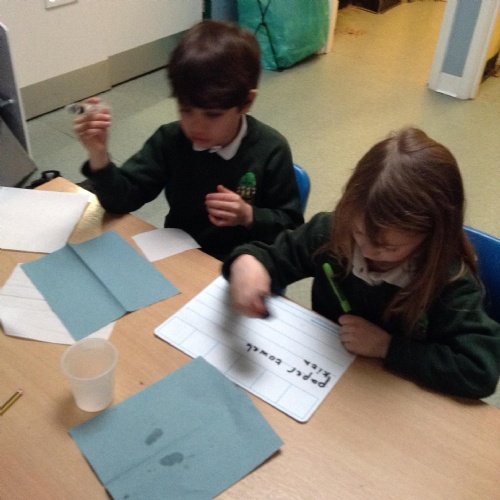 In Science this term we are learning about the uses of everday materials. Today the children have been investigating the absorbency of different paper towels and tissue.