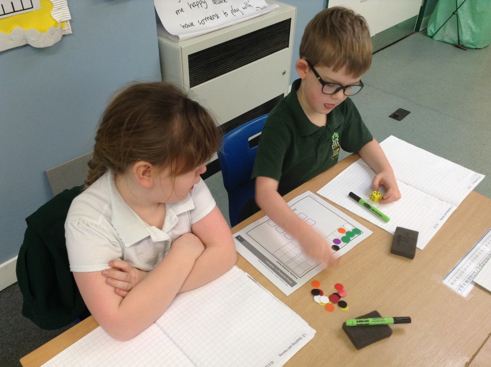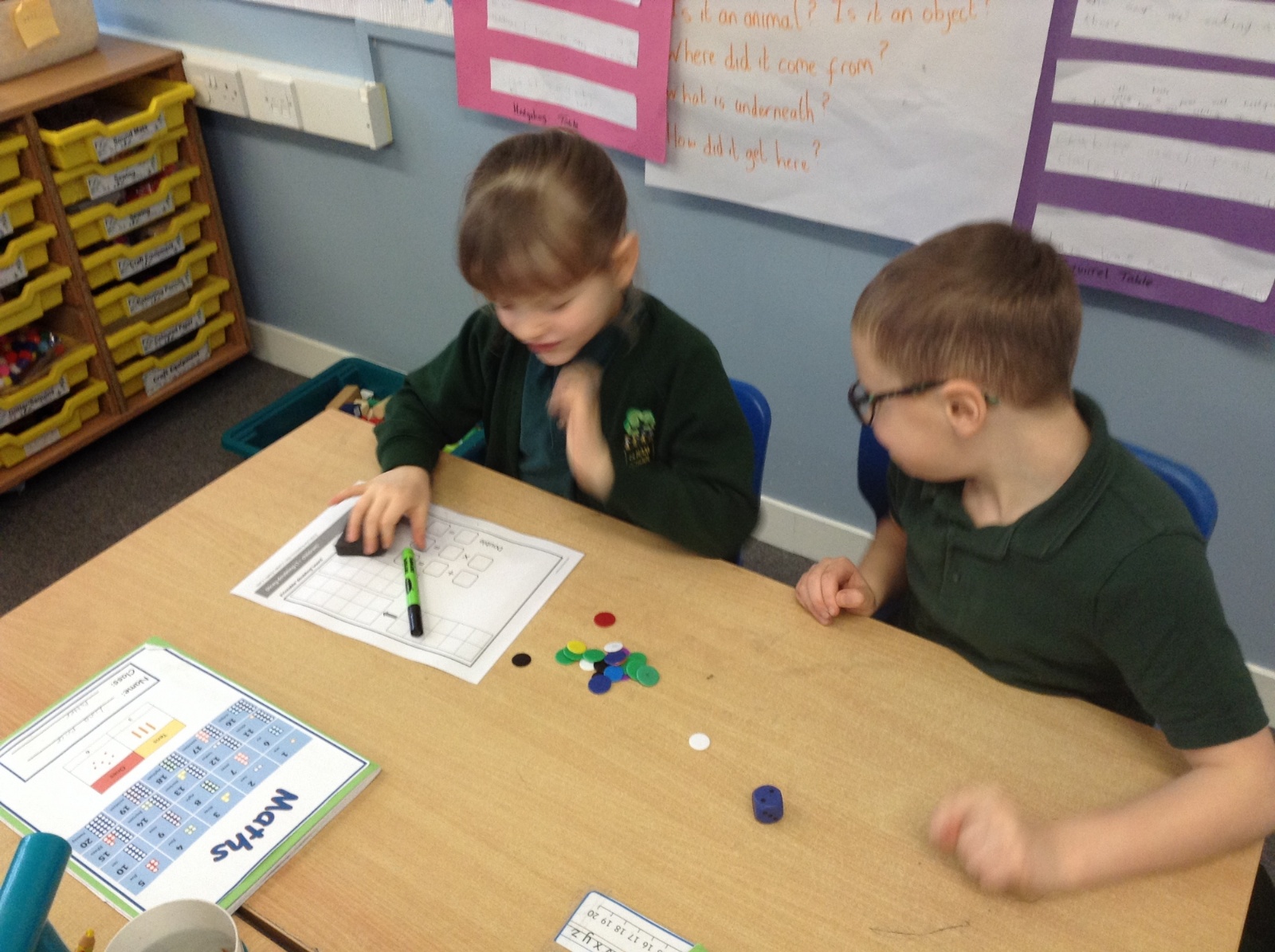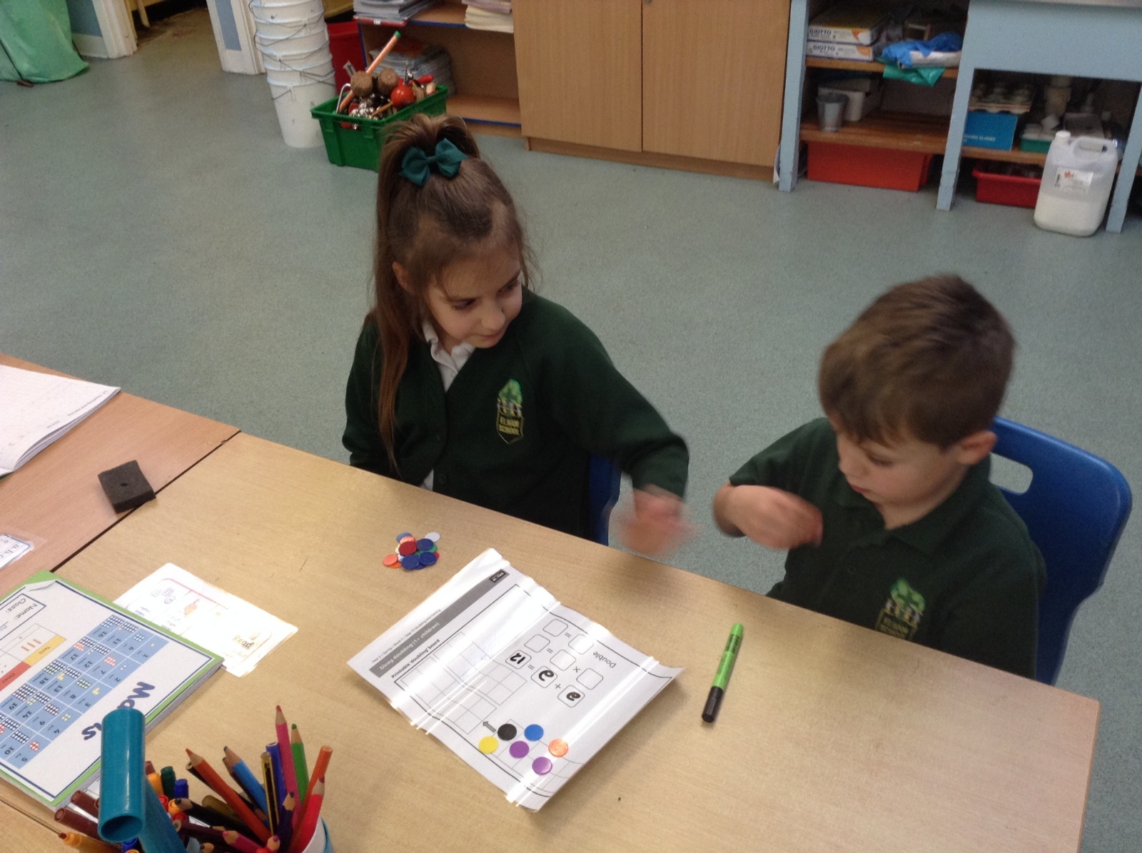 In Maths we have been multiplying and dividing by 2 and investigating doubling and halving. The children enjoyed playing a doubling game using dice and counters.