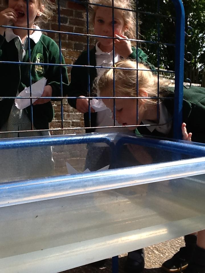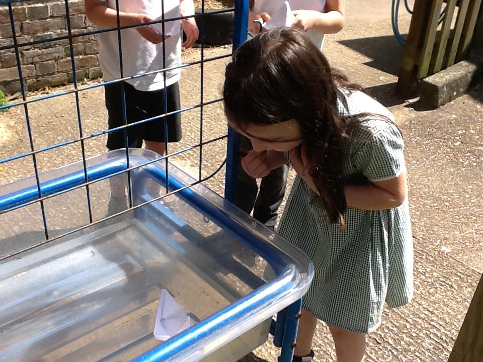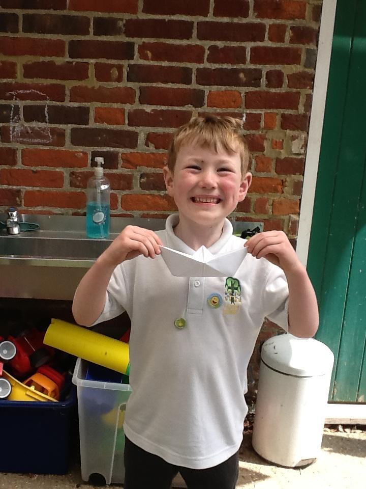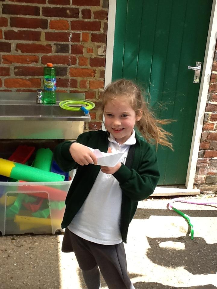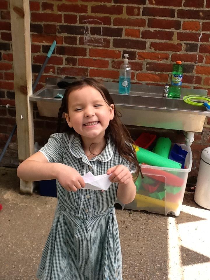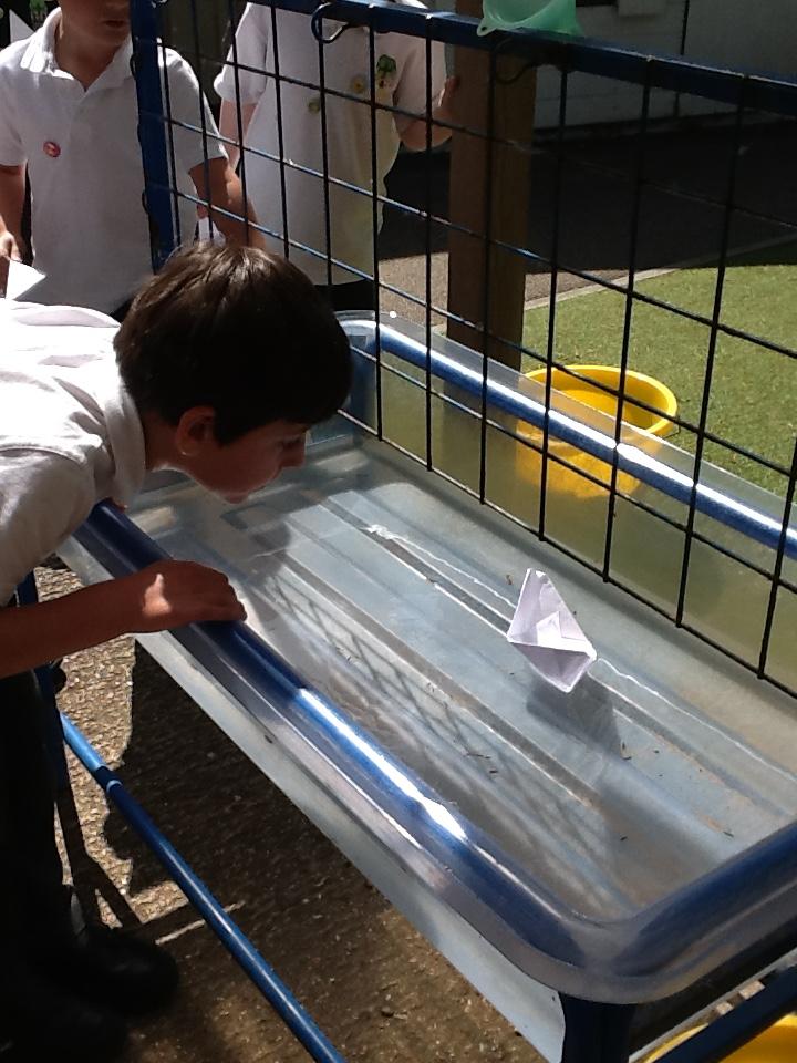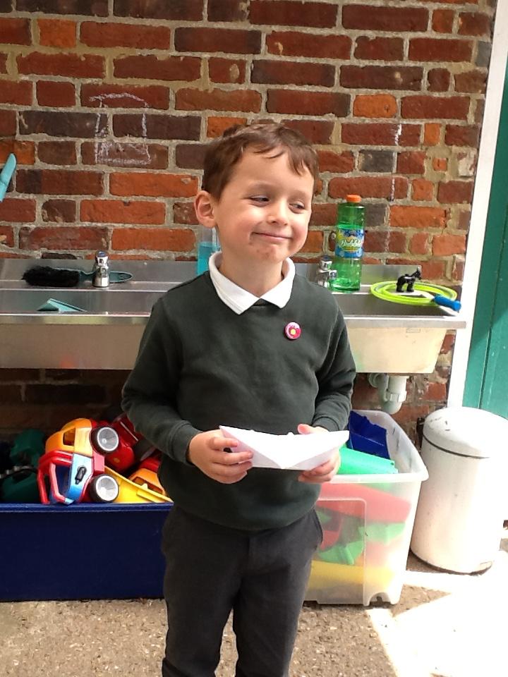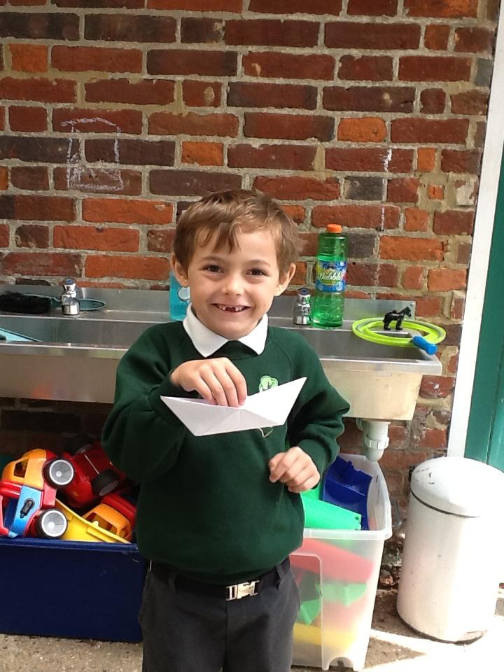 In DT today the children made Origami boats. We used this traditional art of paper-folding to create a boat without cutting, gluing or taping. The children then tested out their boat to see if it would float with their sweet passenger!