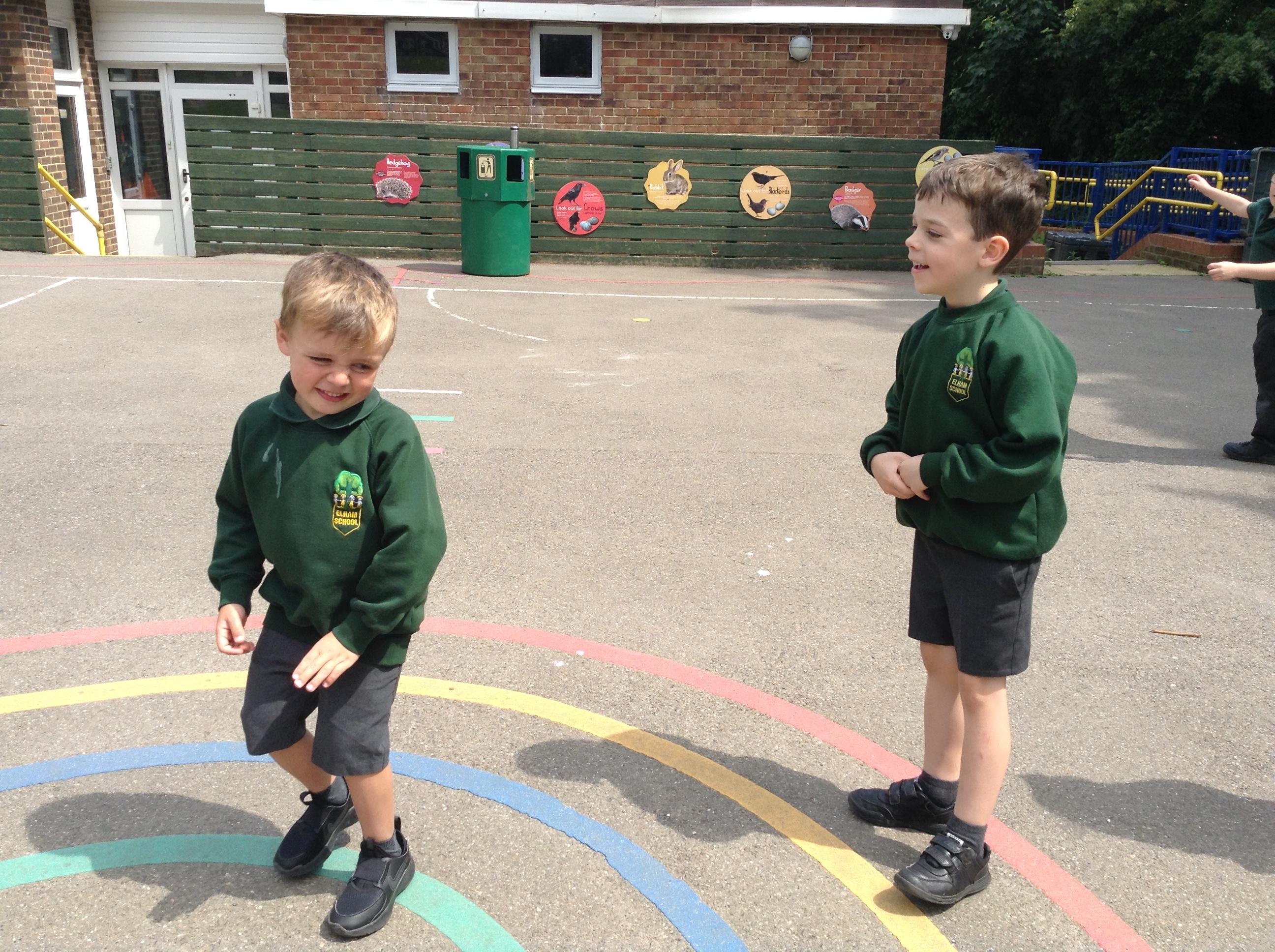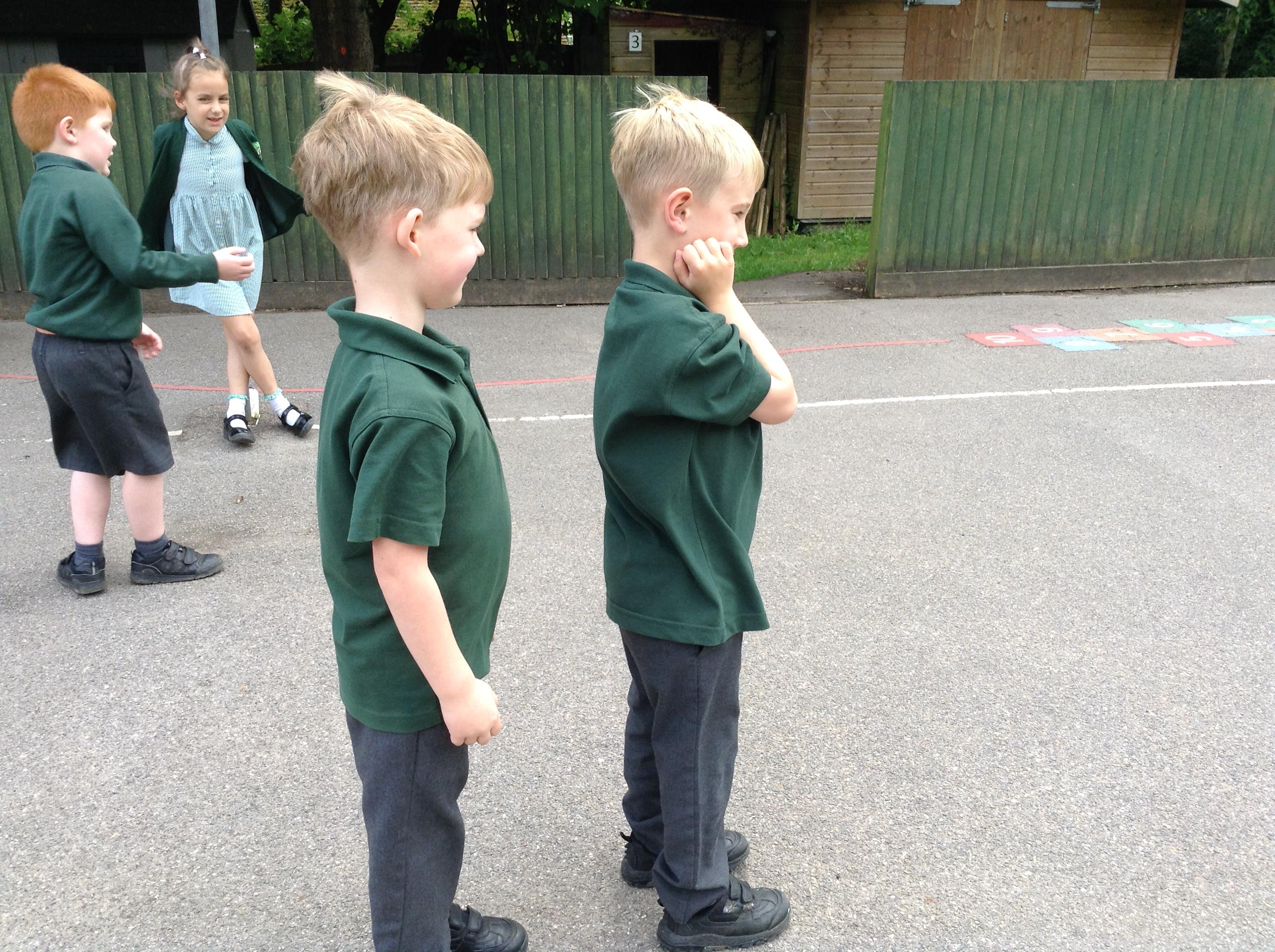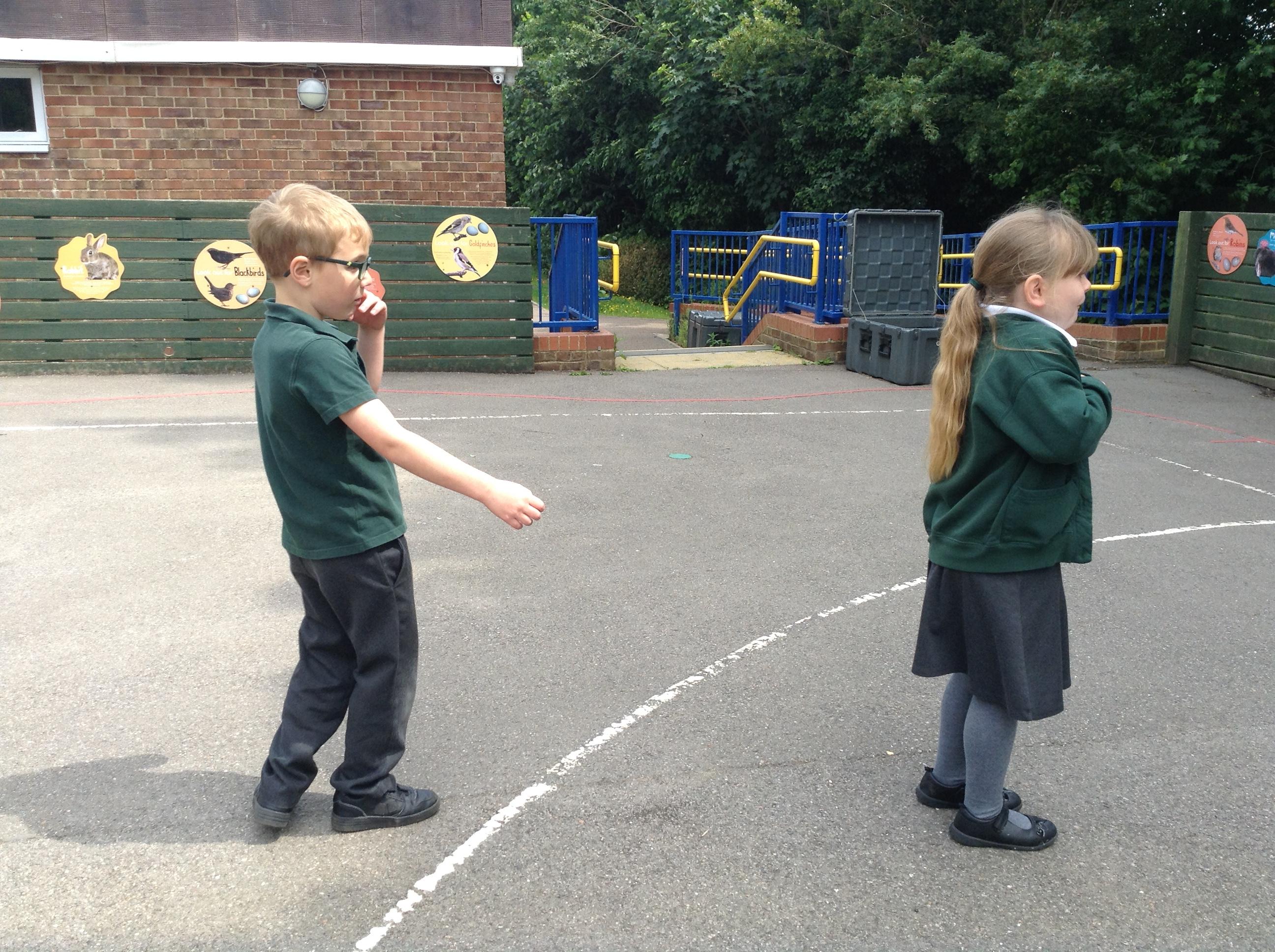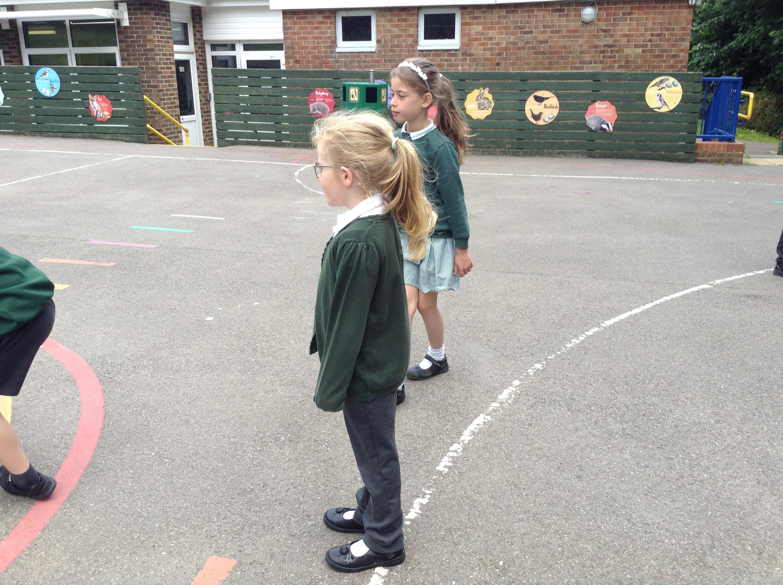 We have been practising turns in maths today. The children followed my instructions (do a quarter/half/whole/three quarters turn) and then instructed each other. They even corrected each other!