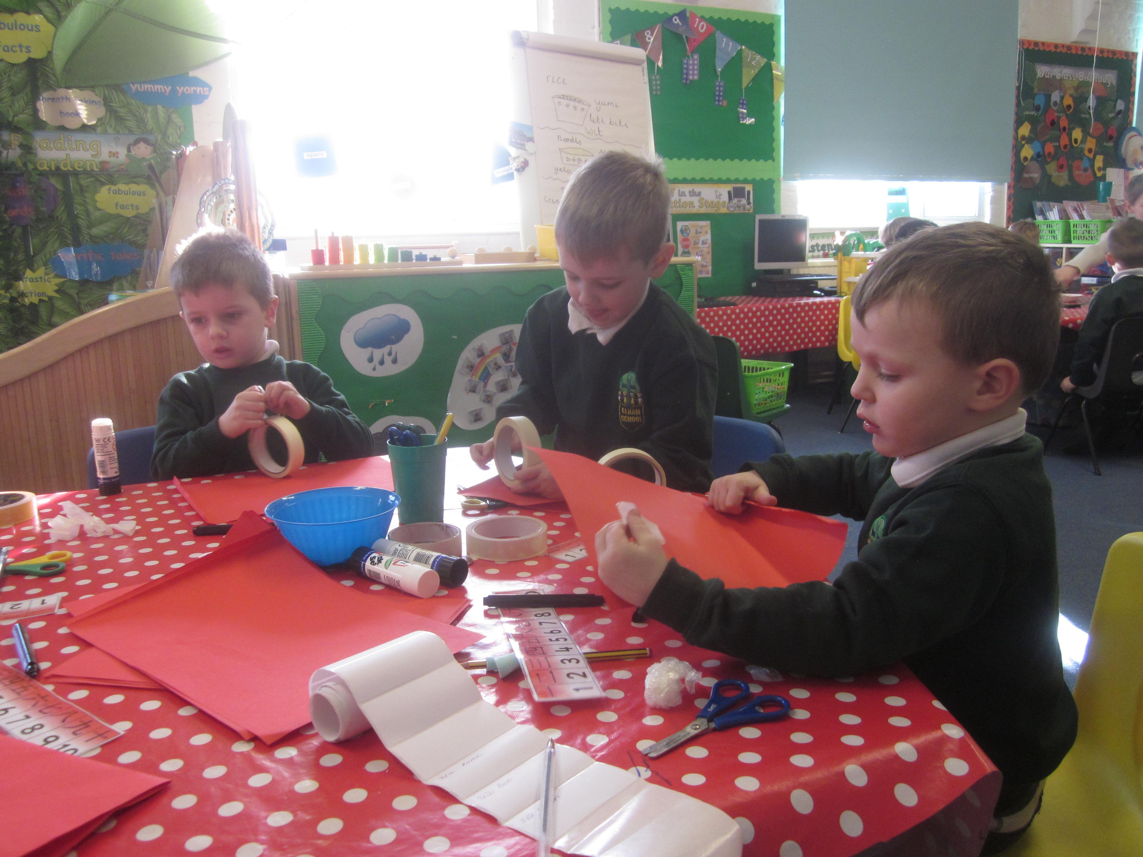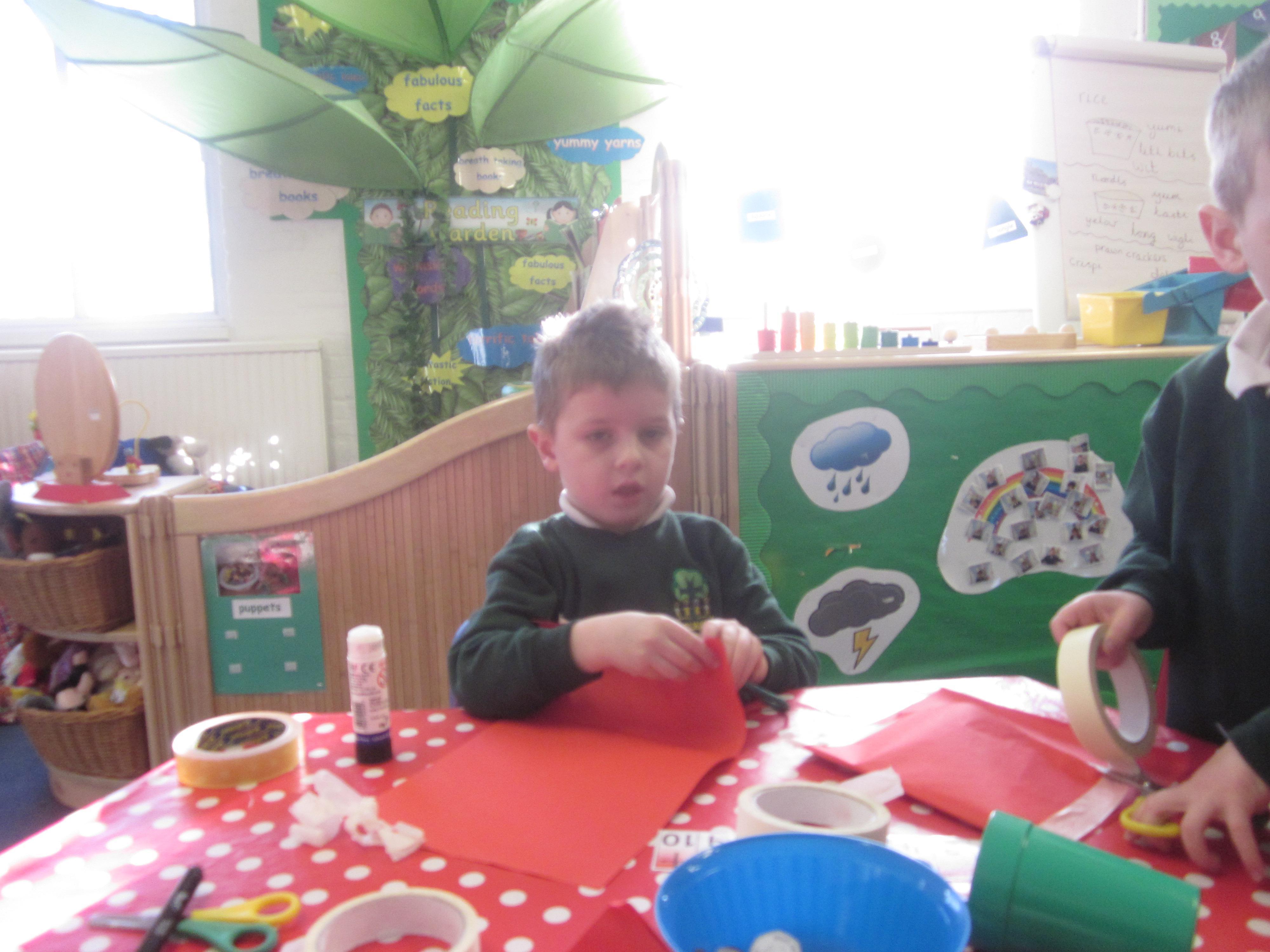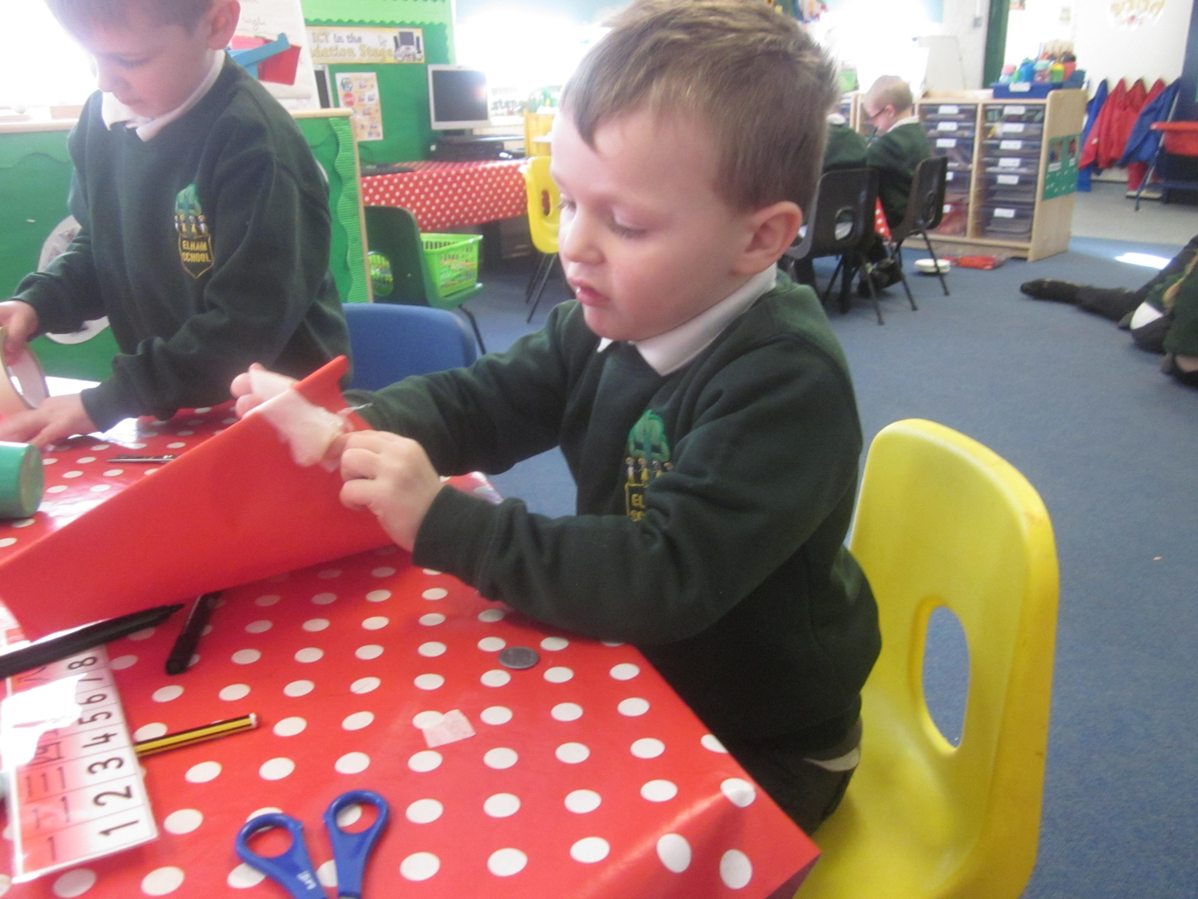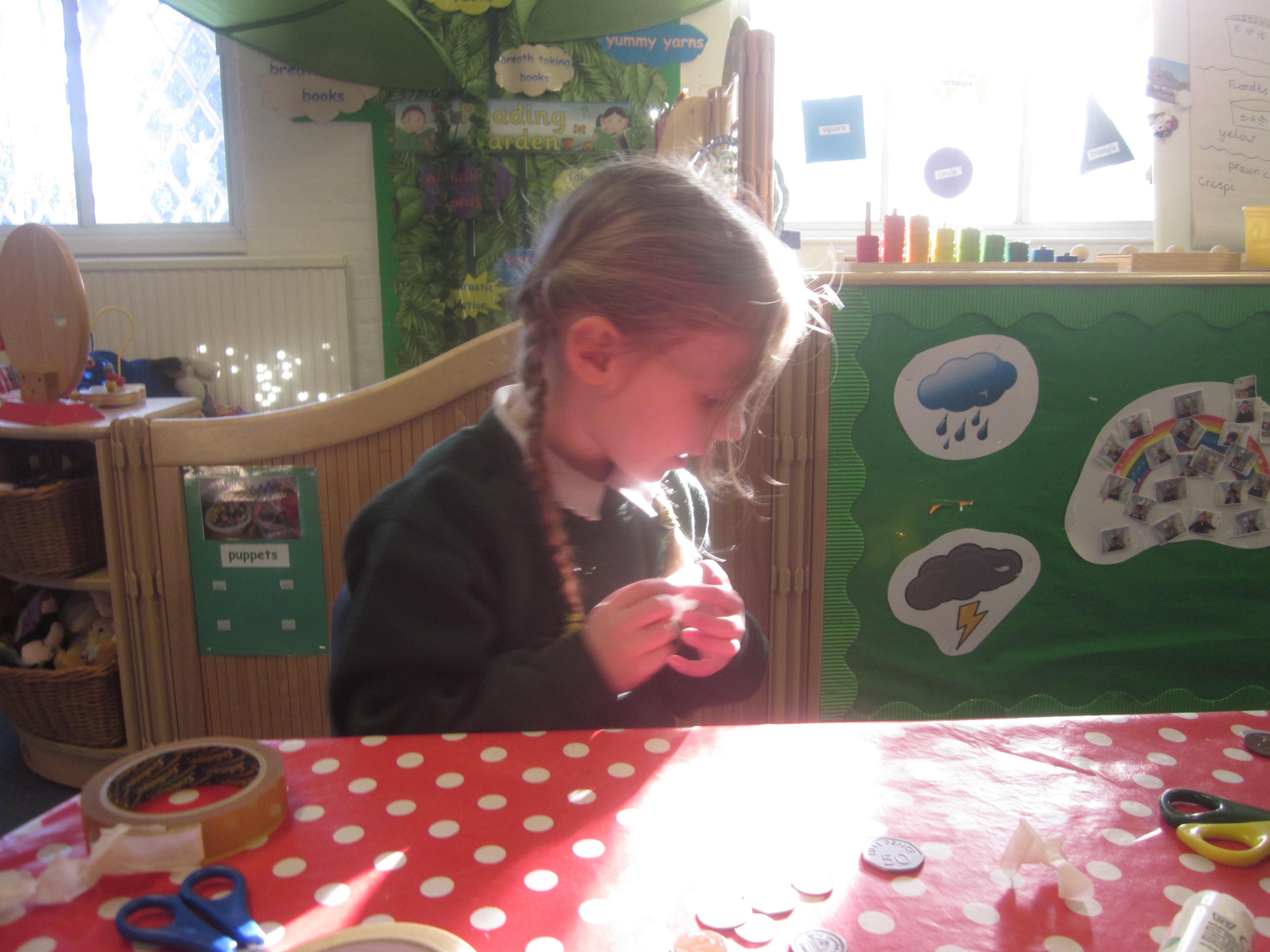 In Maths we tried some problem solving. How could we make an envelope to hold some coins? We needed to fold, measure and stick. We also started to learn about coins and what they represent.