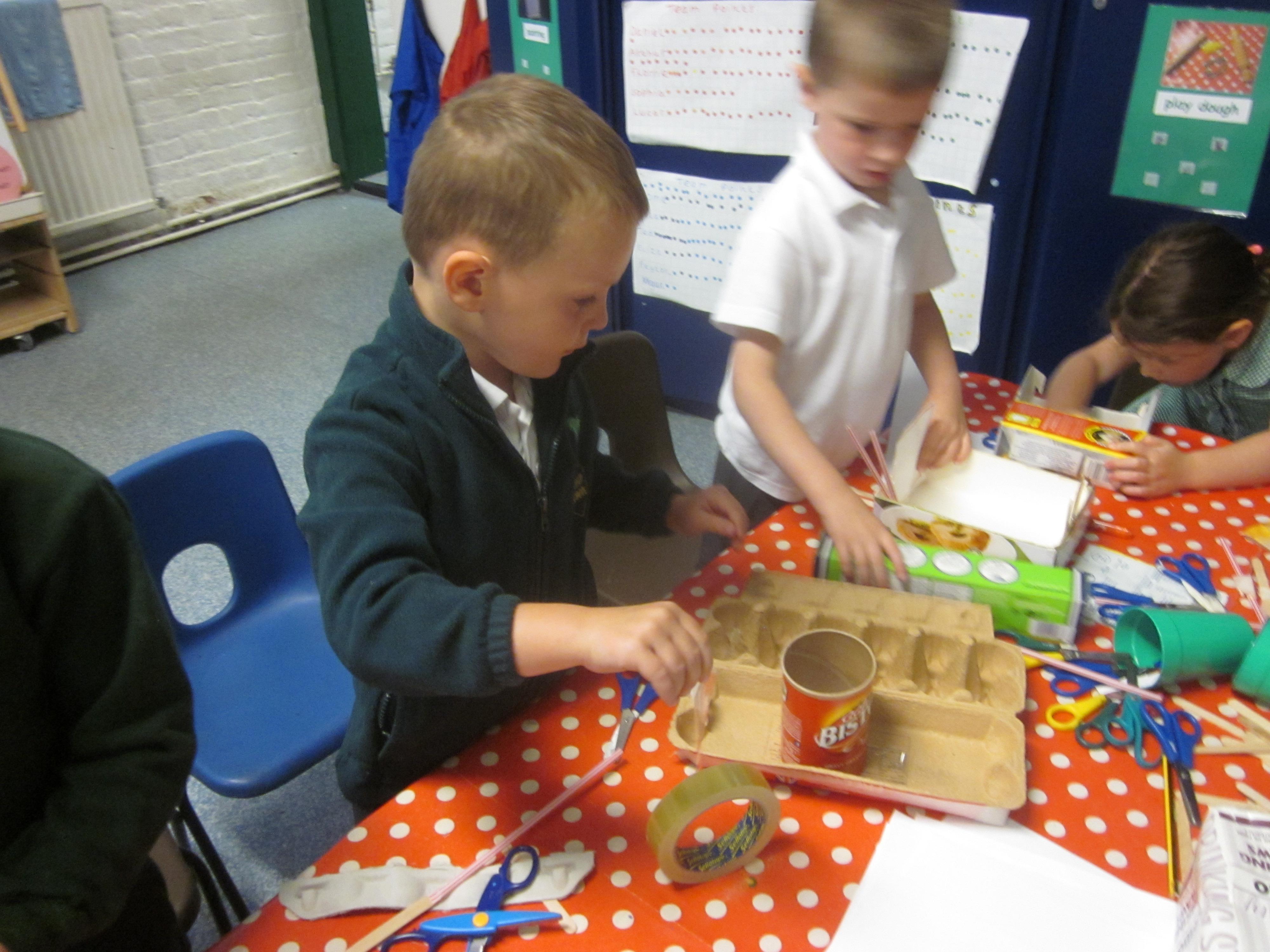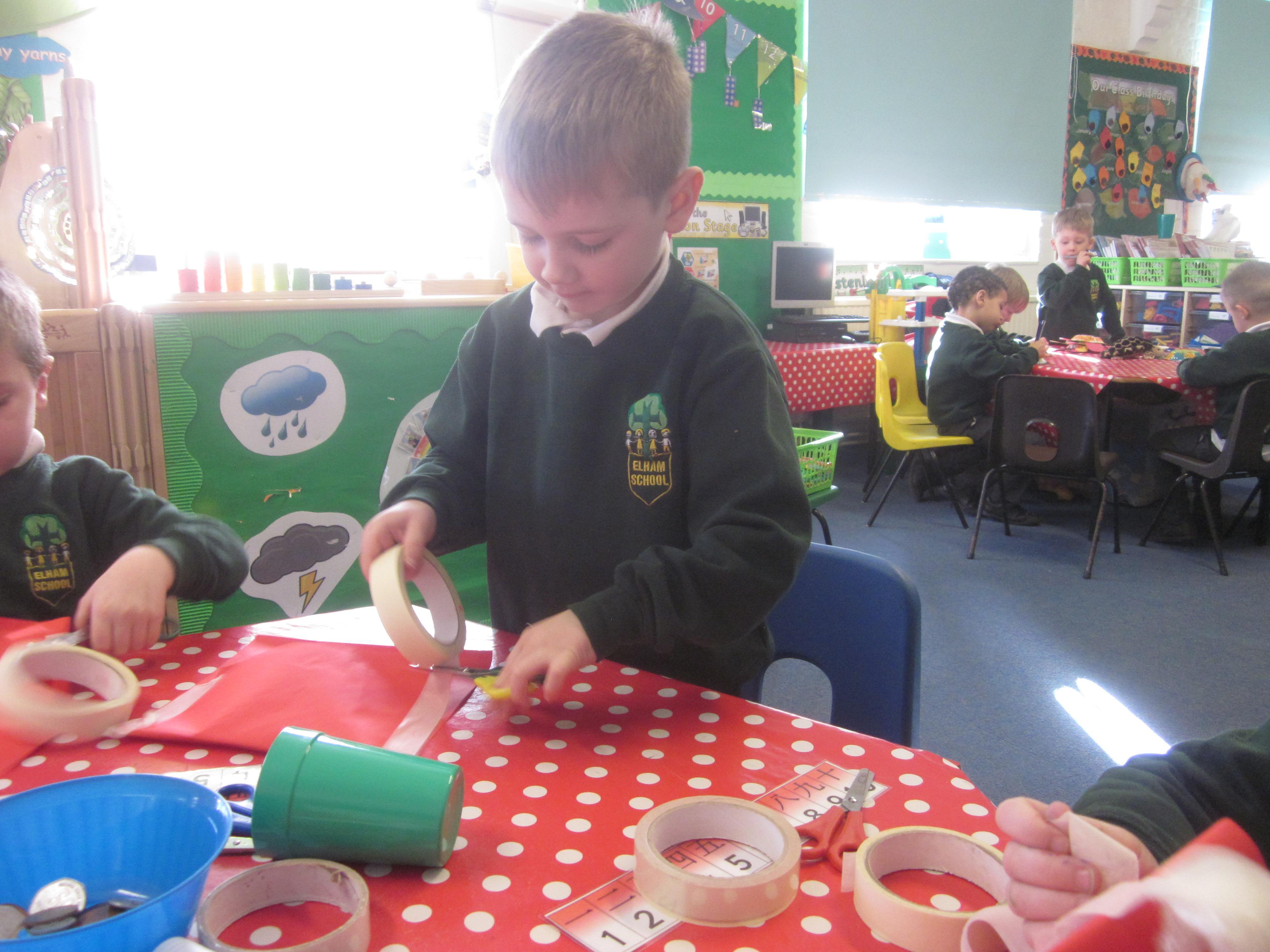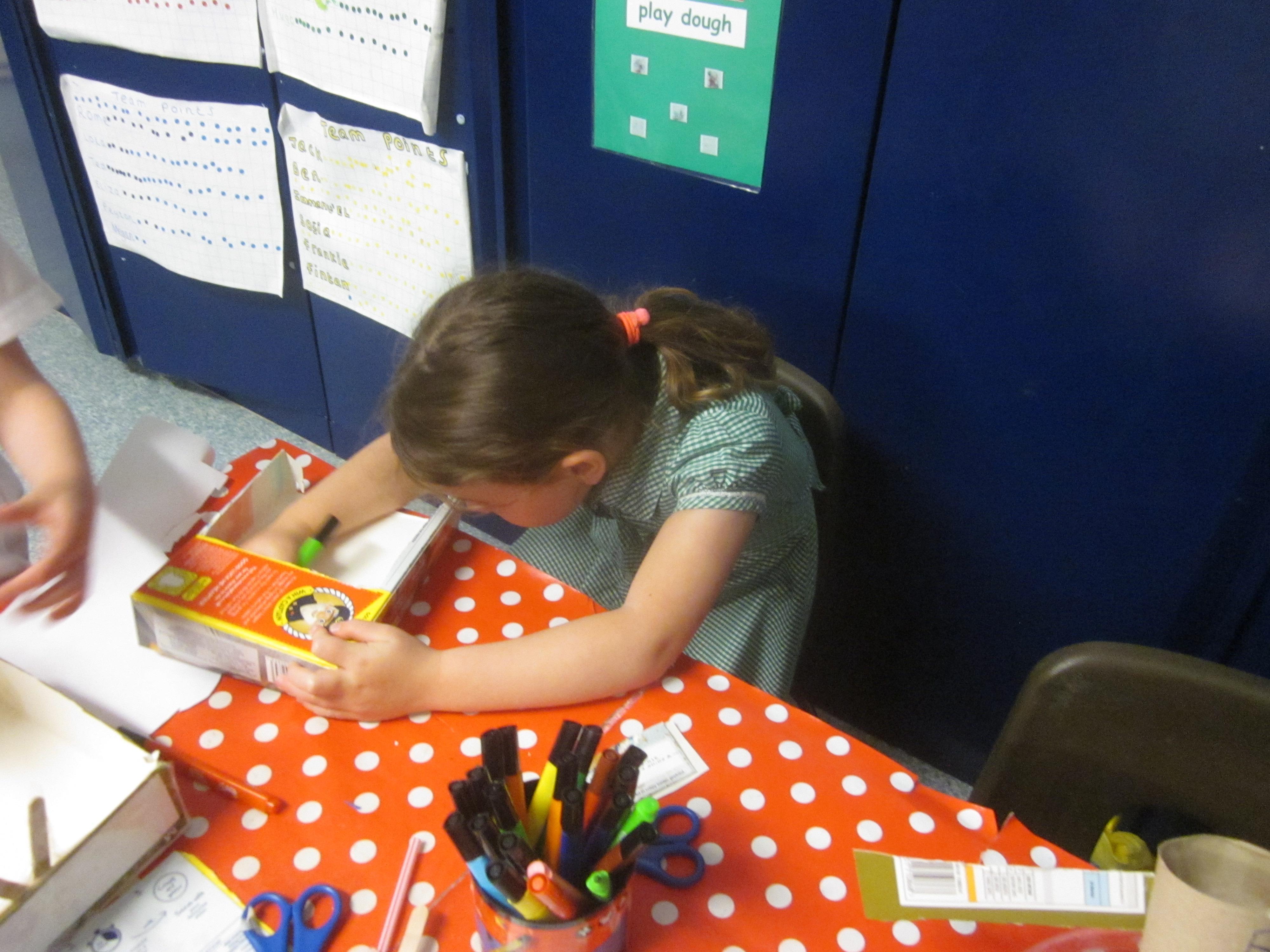 In Maths we tried some problem solving. How could we make an envelope to hold some coins? We needed to fold, measure and stick. We also started to learn about coins and what they represent.