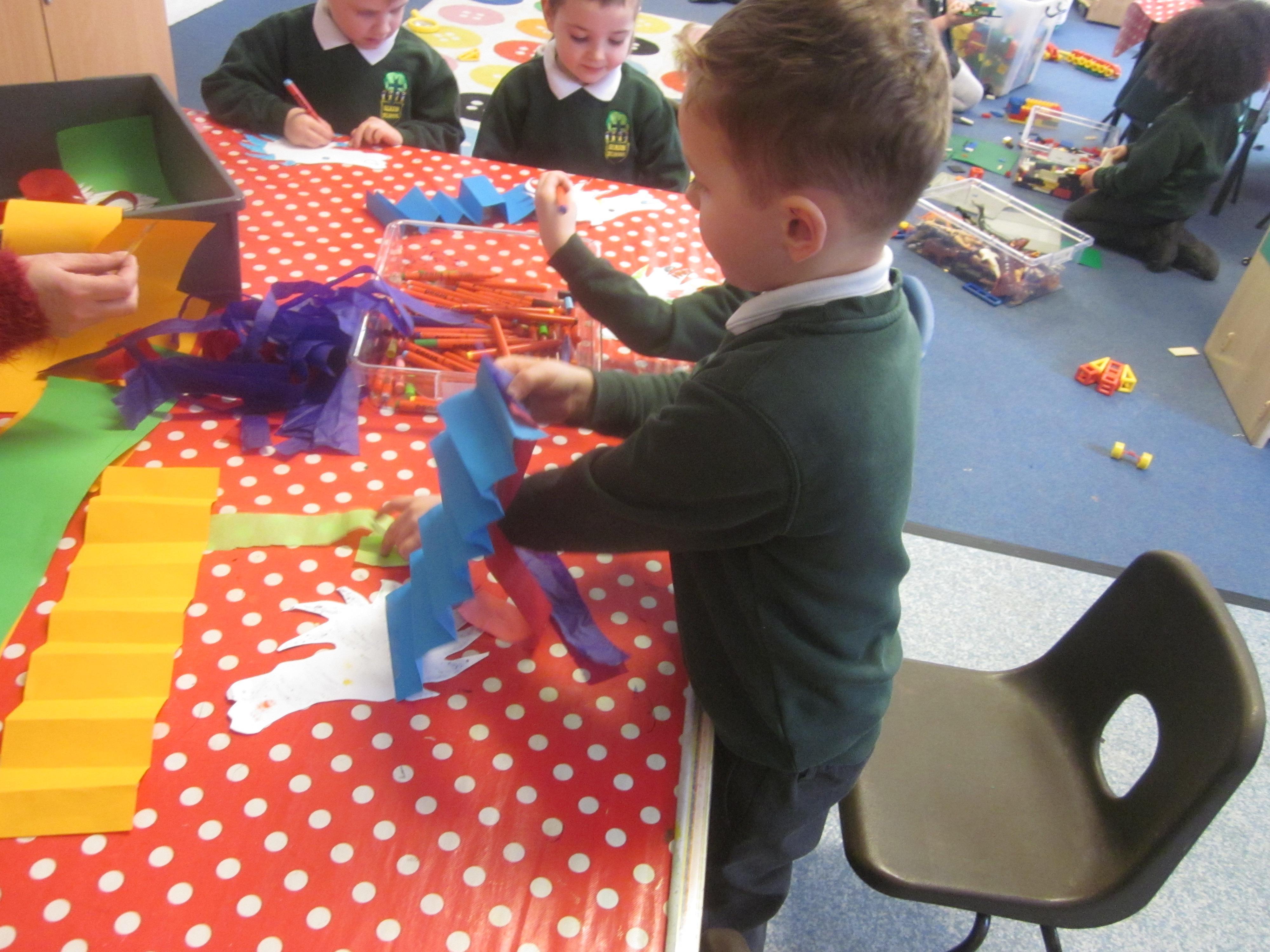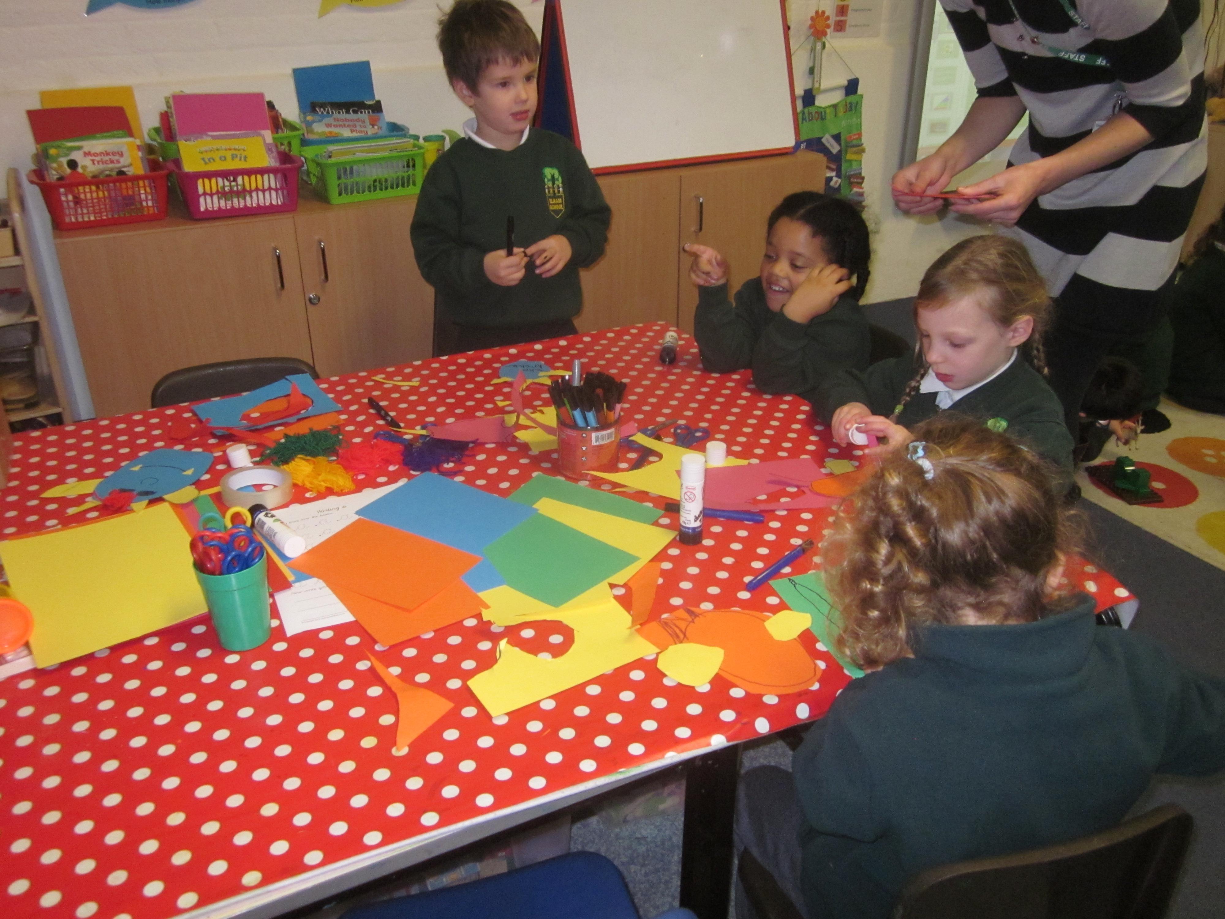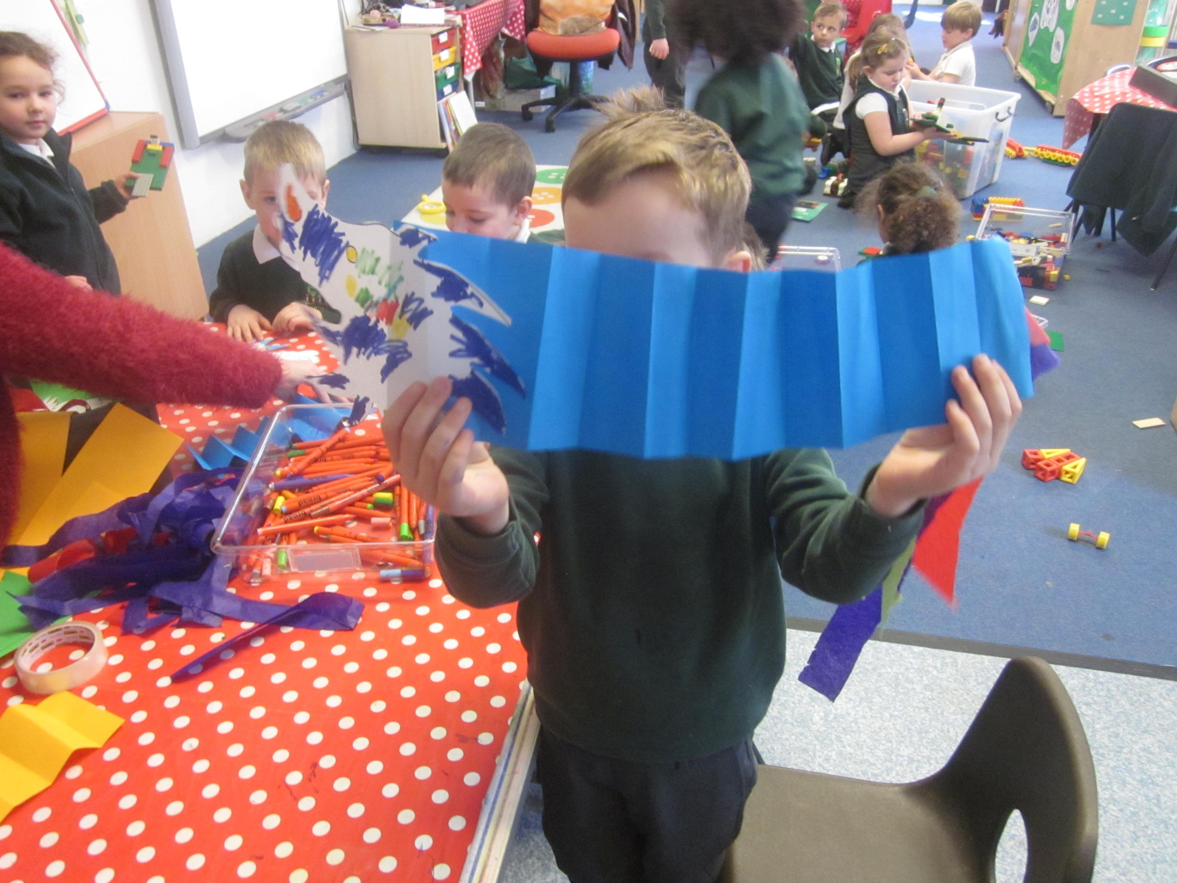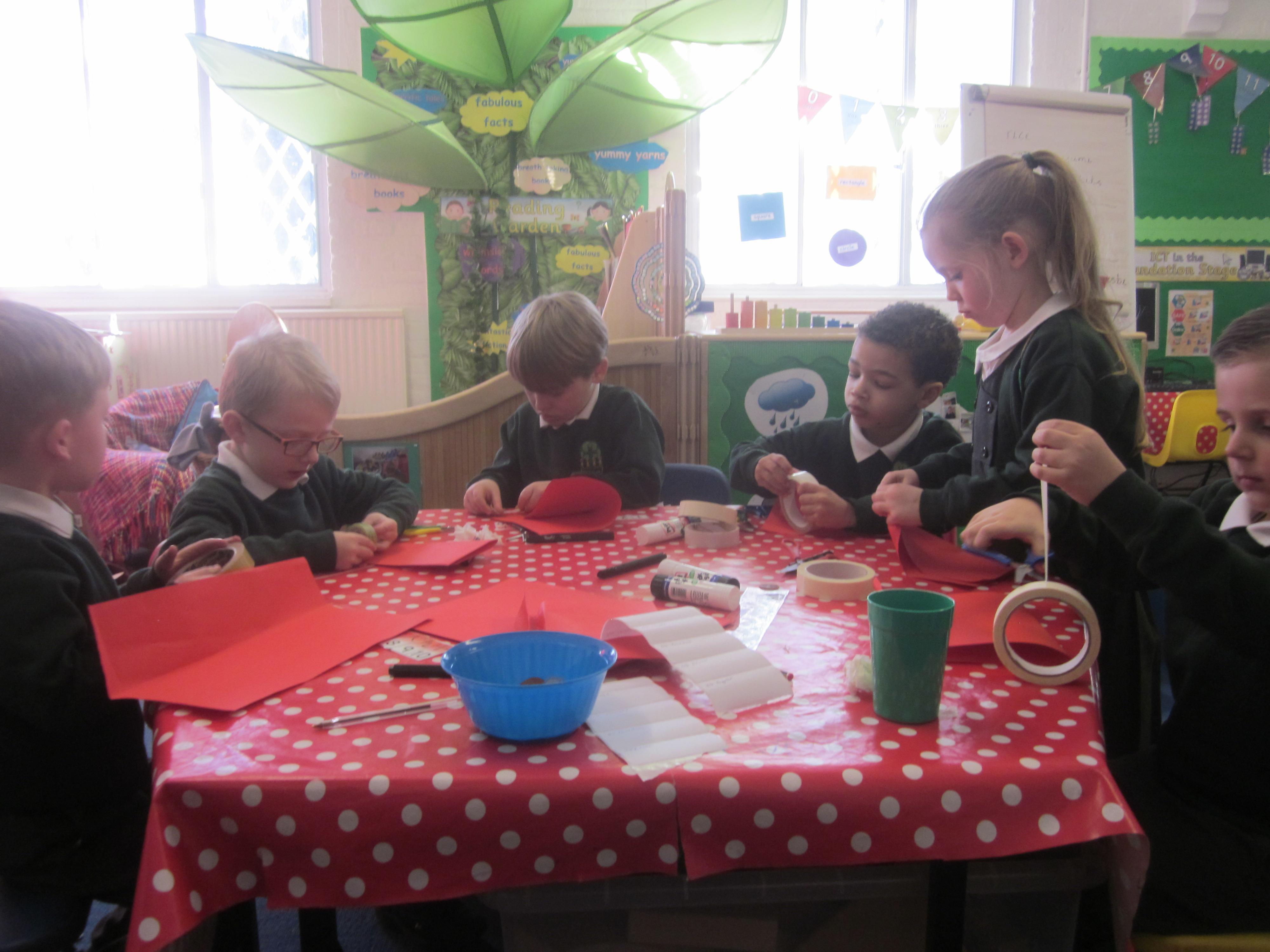 In Maths we tried some problem solving. How could we make an envelope to hold some coins? We needed to fold, measure and stick. We also started to learn about coins and what they represent.