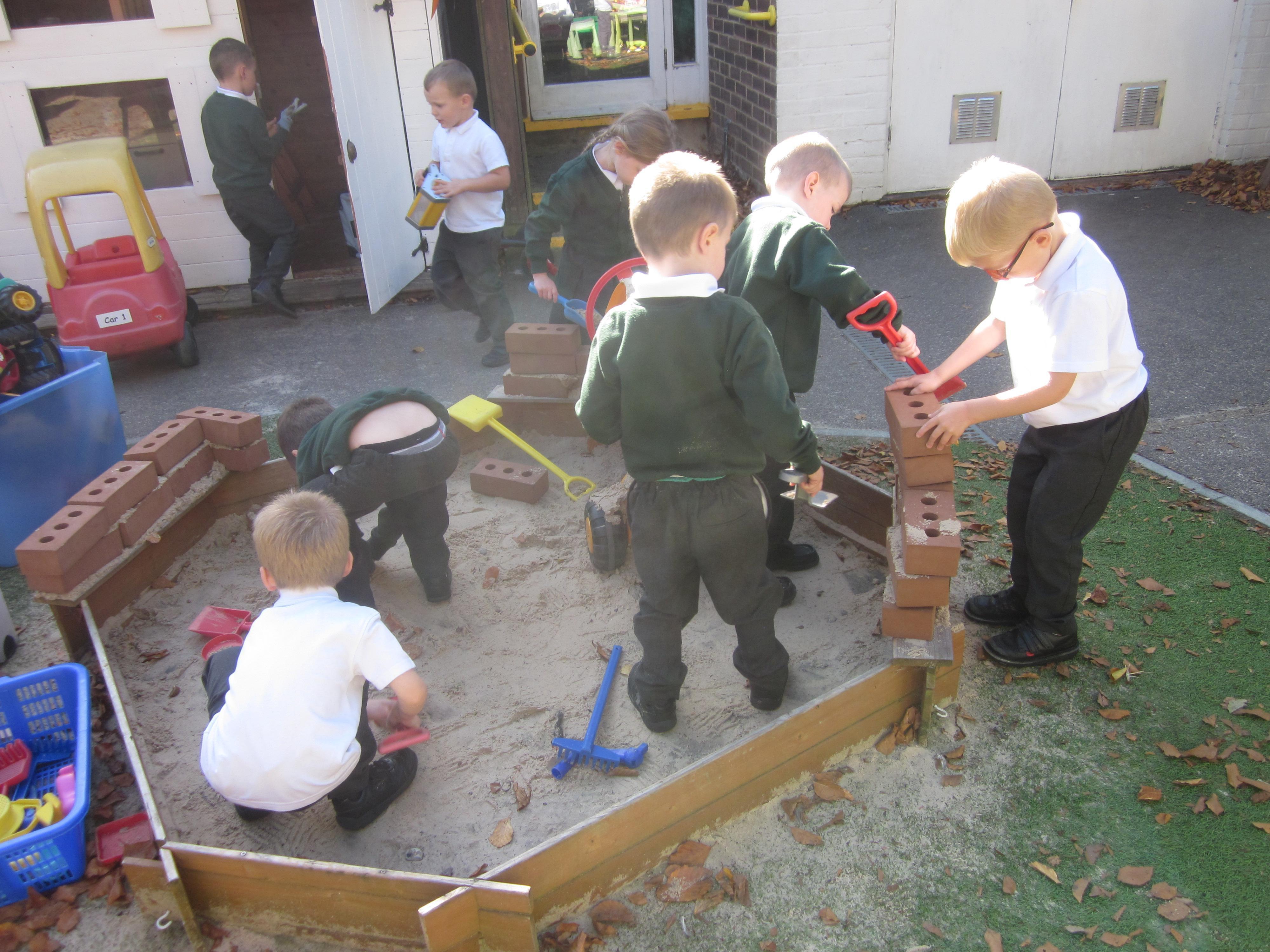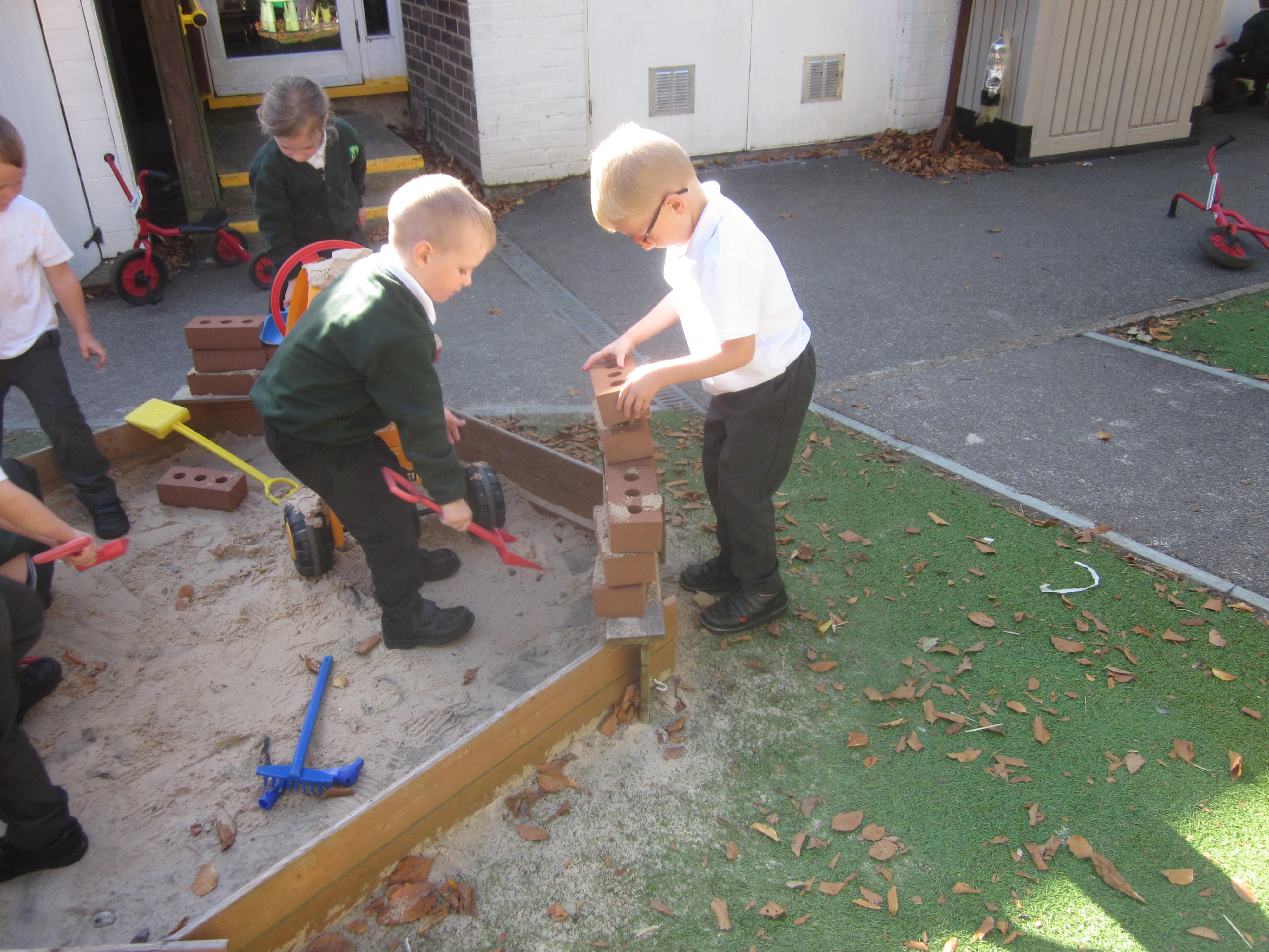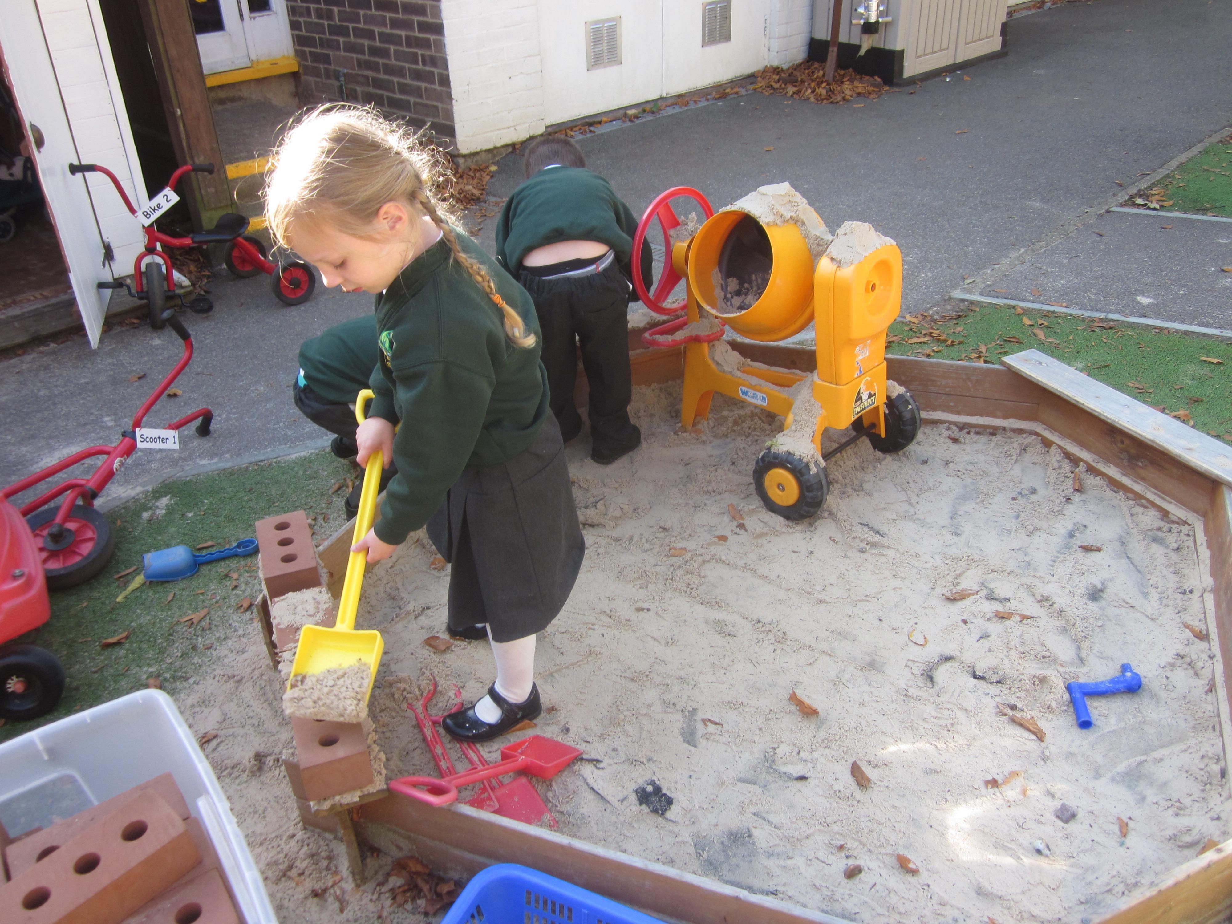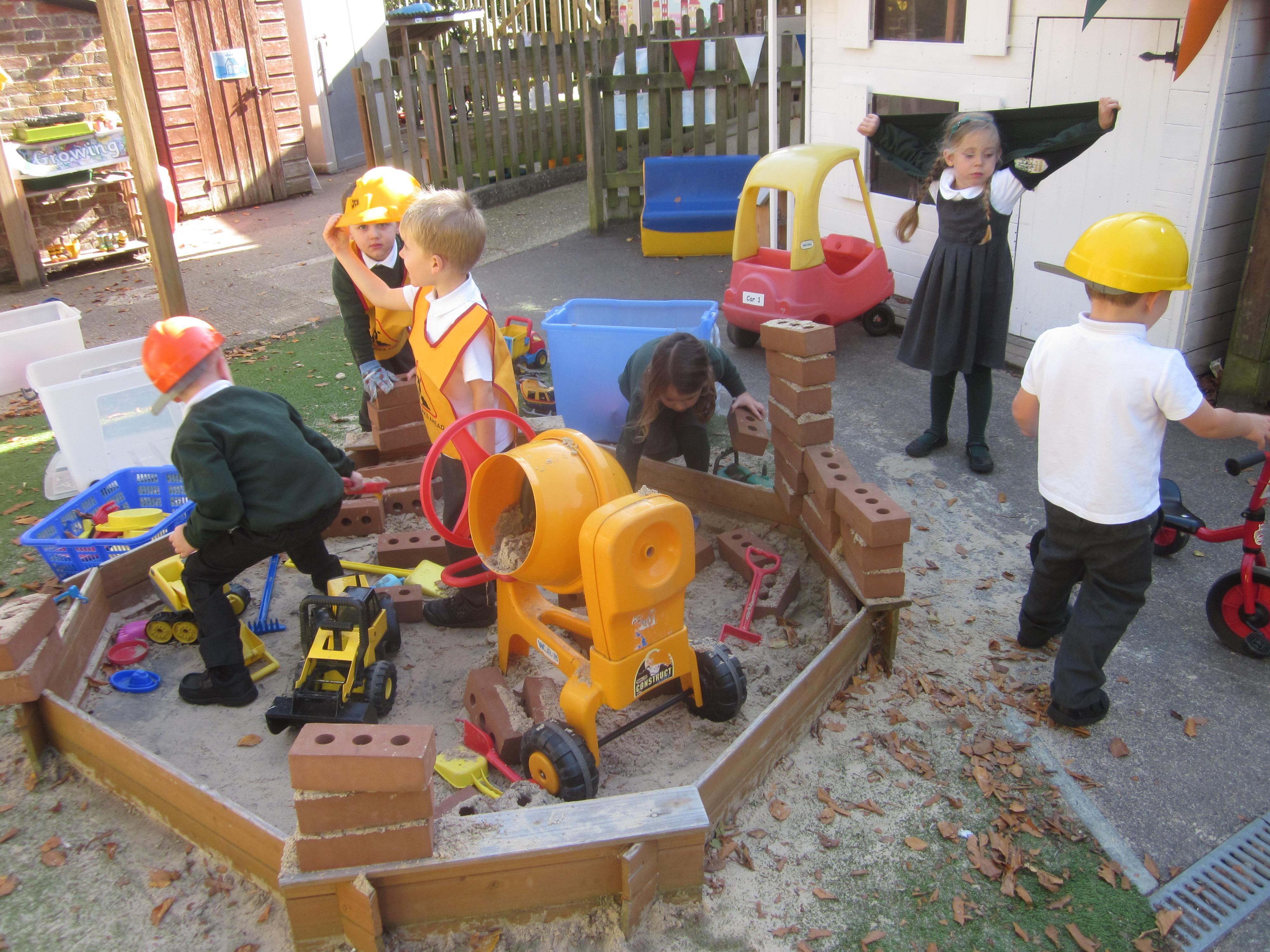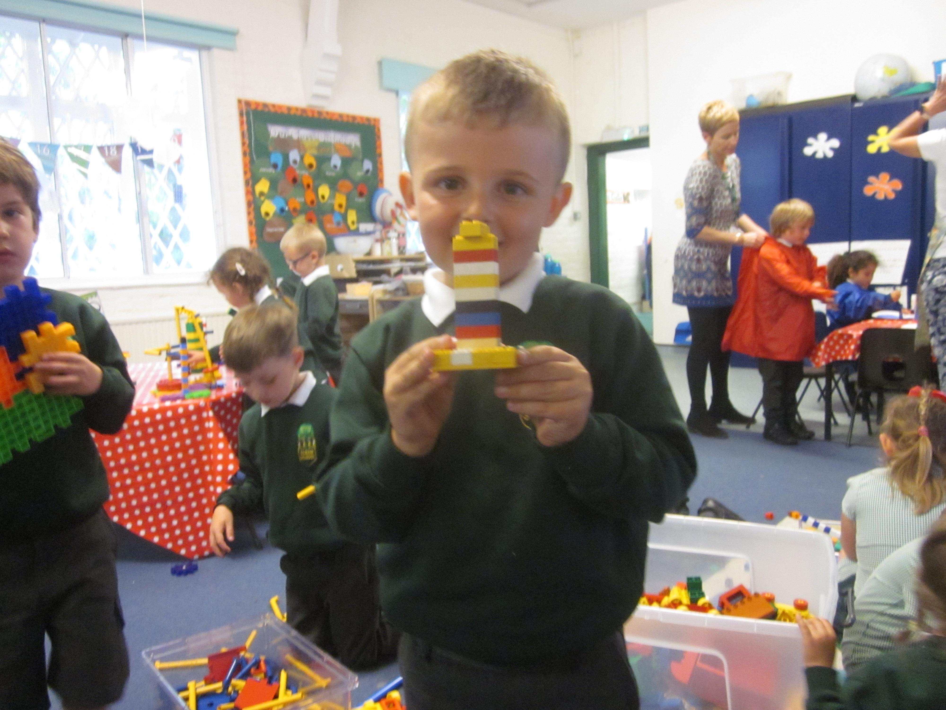 As well as lots of learning we have also had lots of fun. Check out the pictures of smiley, happy children investigating and discovering during our Child Initiated Time. Builder's is a favourite theme at the moment, with lots of wall building and mixing our 'cement' also involving lots of measuring and careful placing of bricks to make our walls really strong.