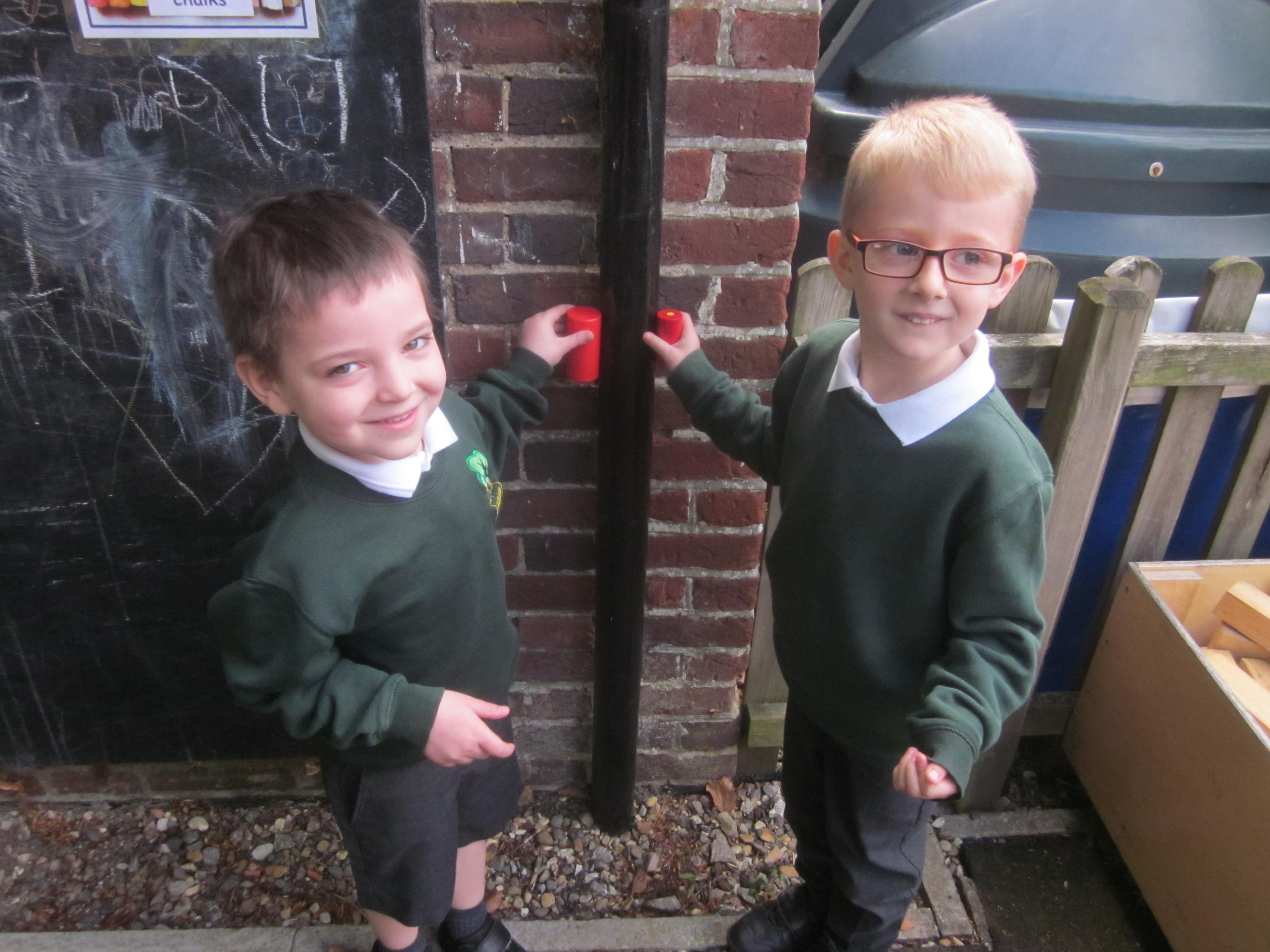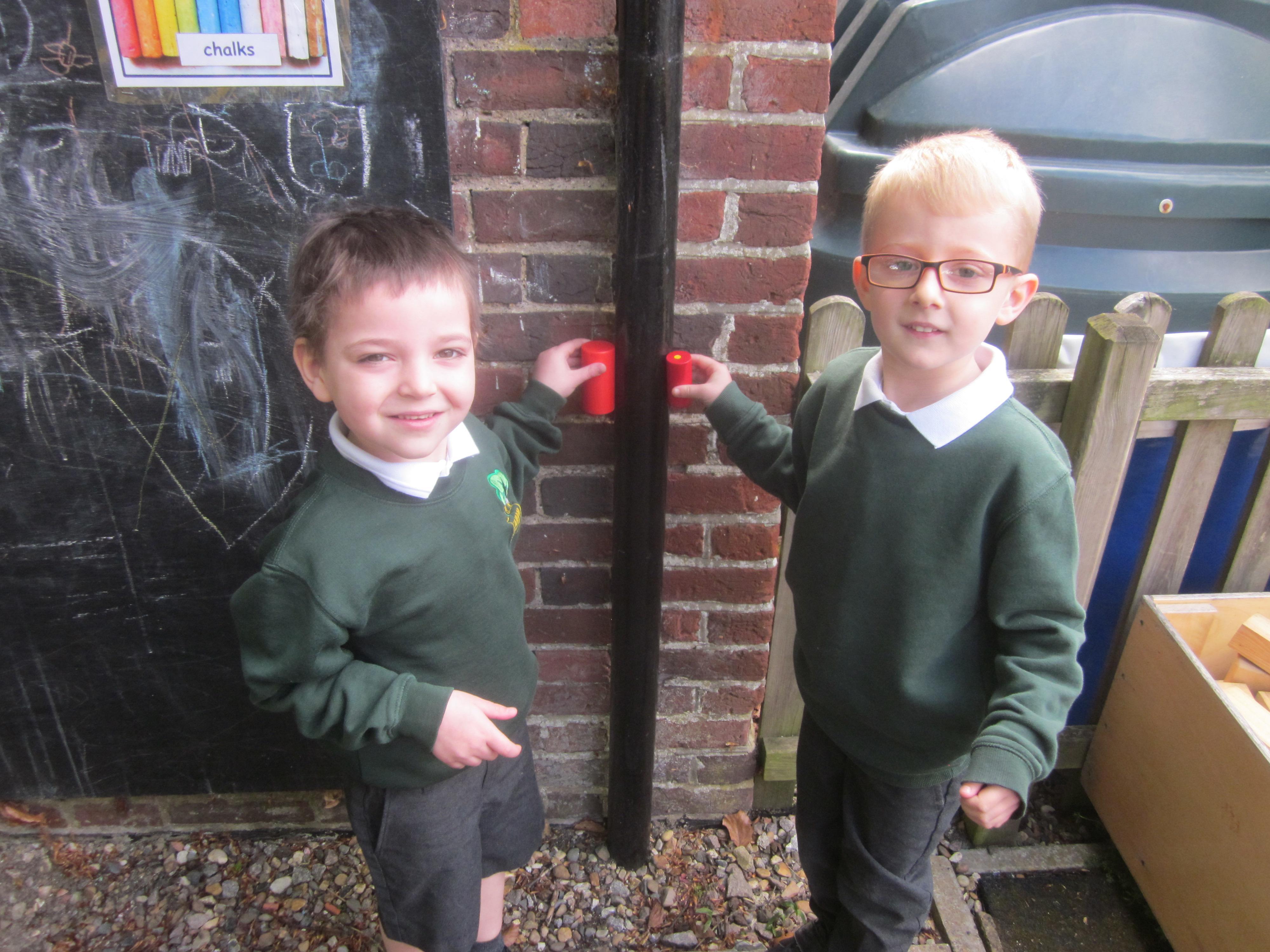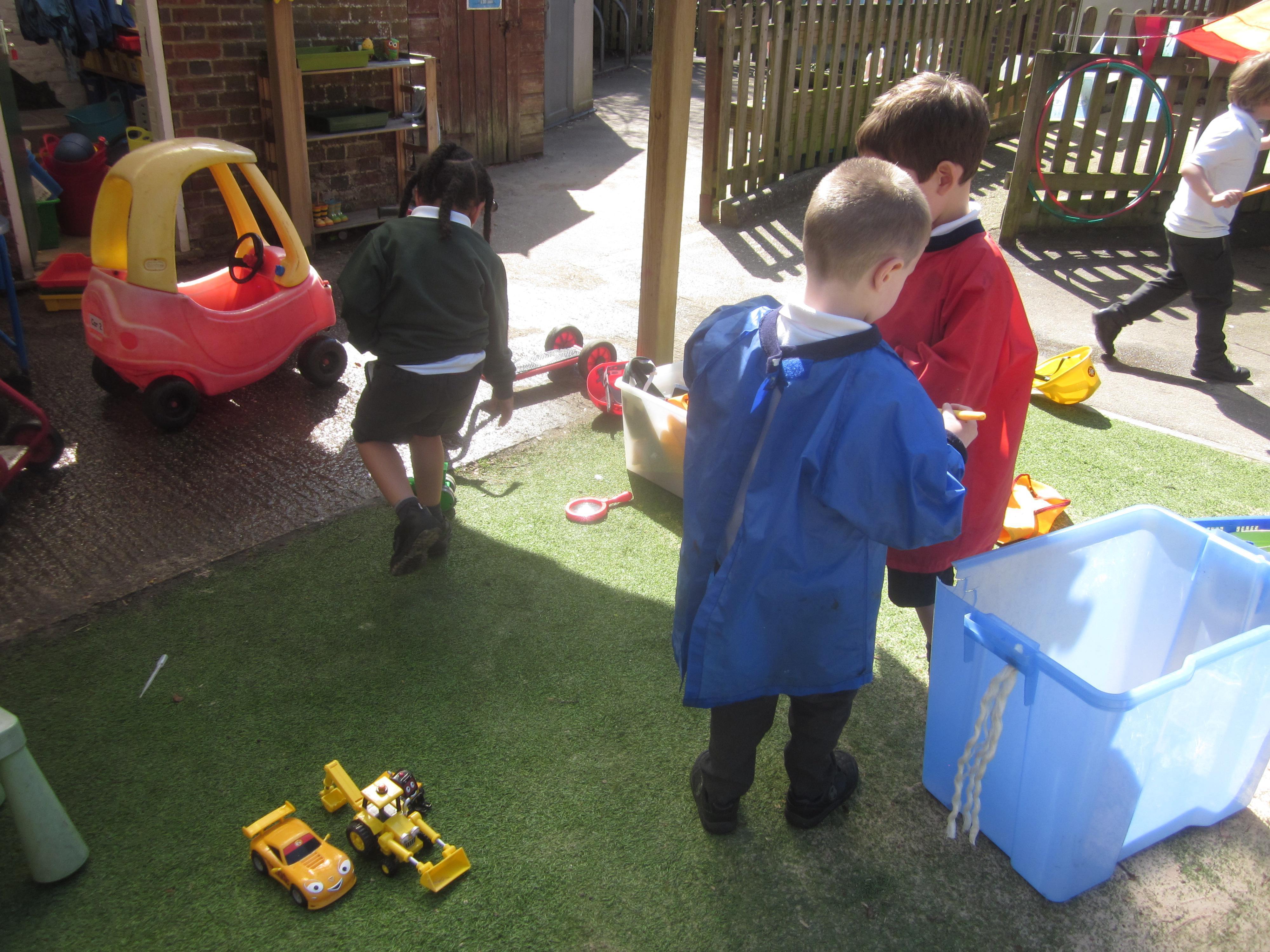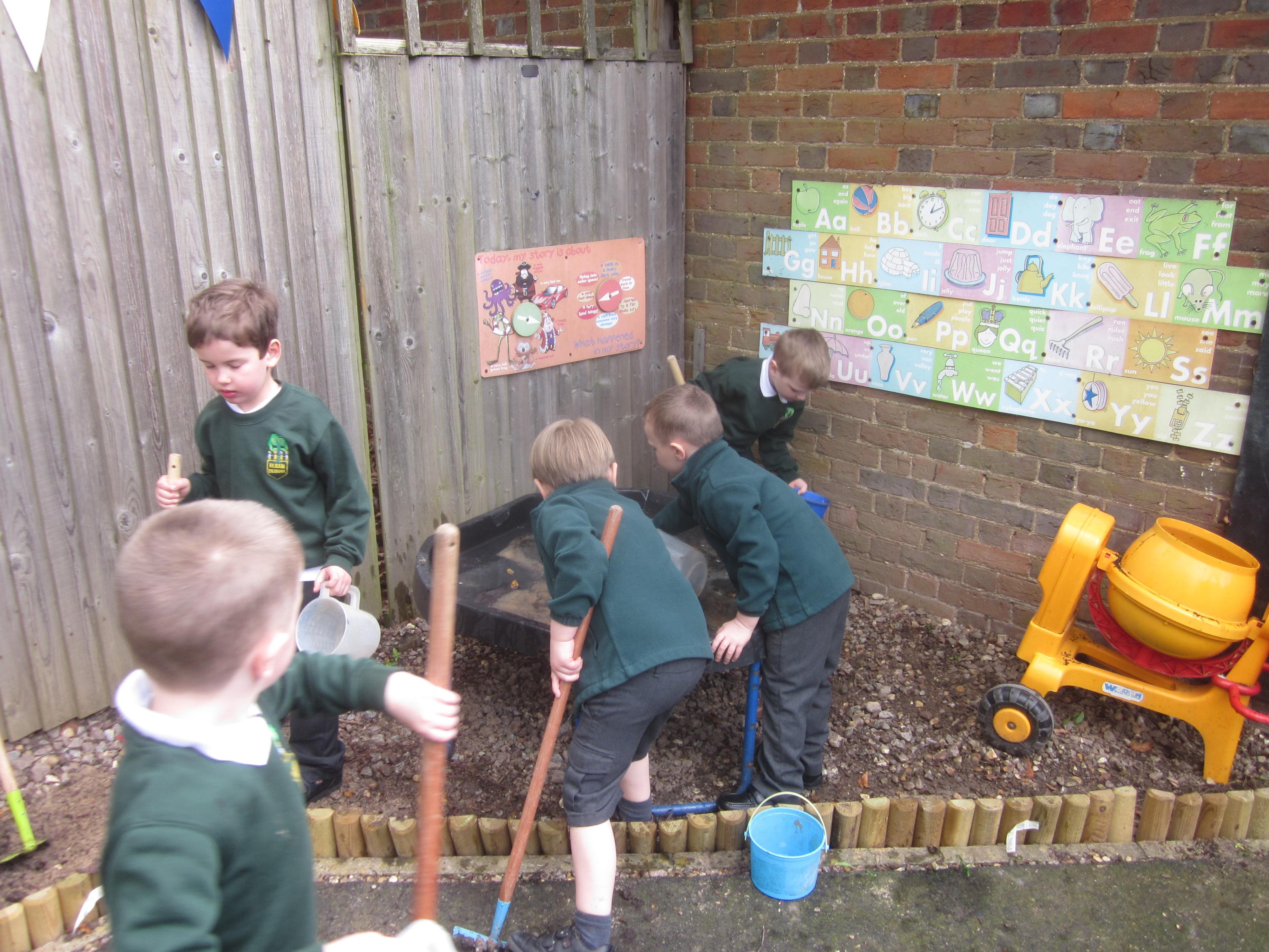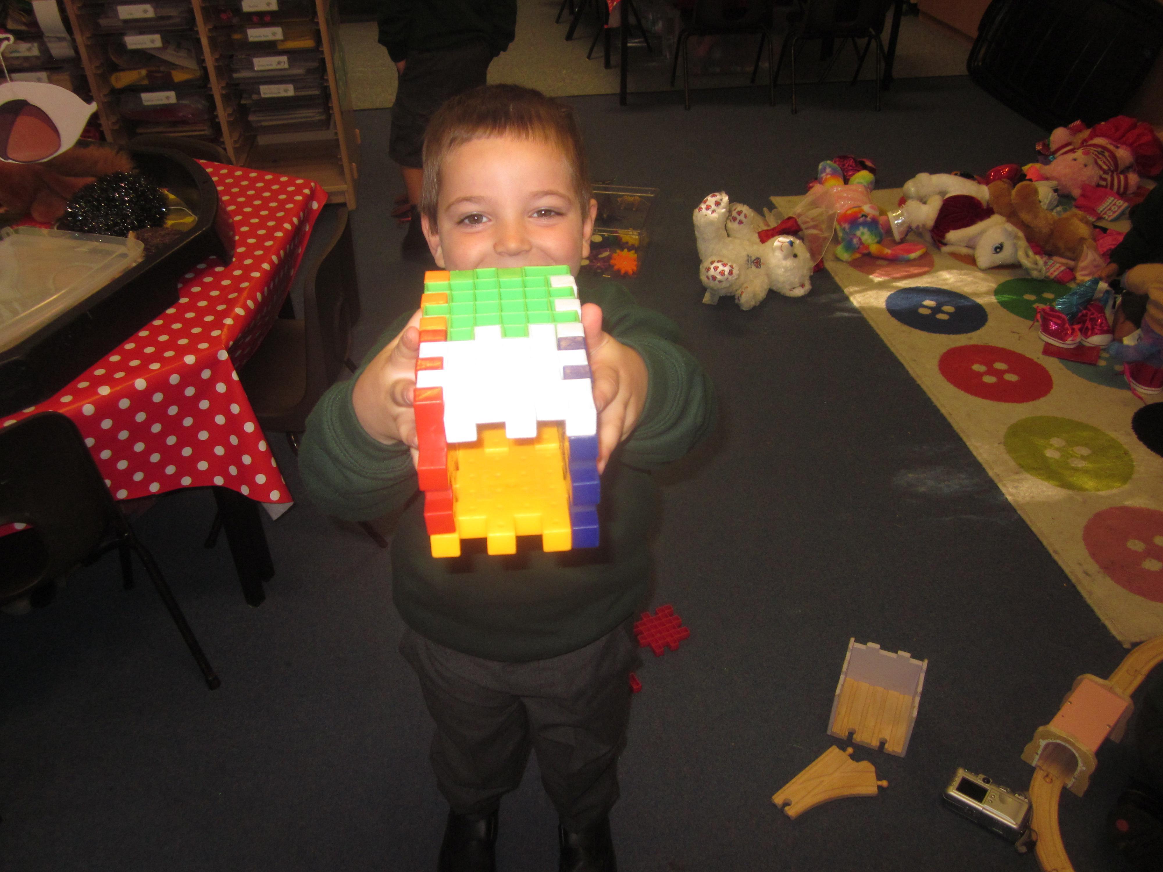 As well as lots of learning we have also had lots of fun. Check out the pictures of smiley, happy children investigating and discovering during our Child Initiated Time. Builder's is a favourite theme at the moment, with lots of wall building and mixing our 'cement' also involving lots of measuring and careful placing of bricks to make our walls really strong.