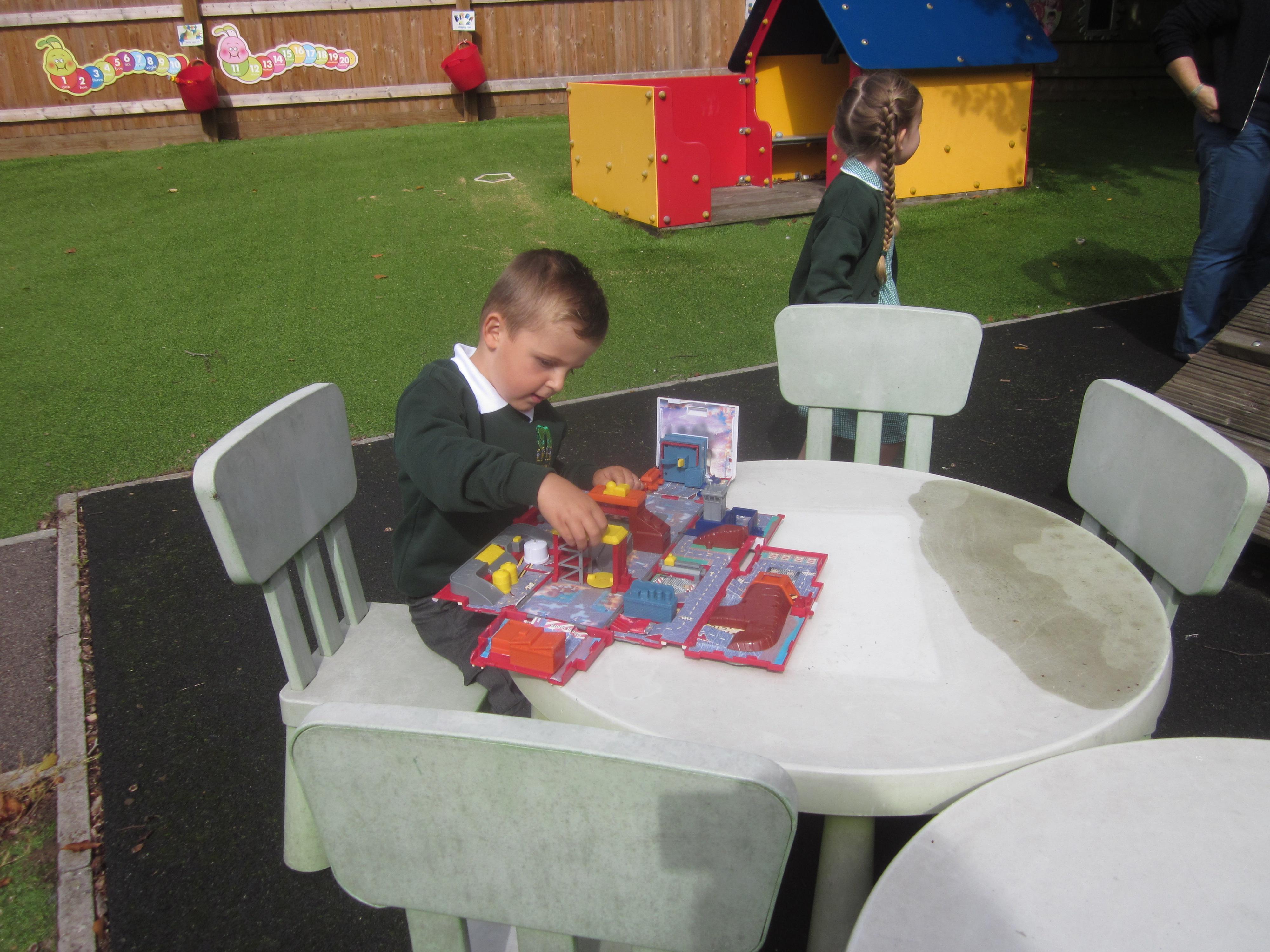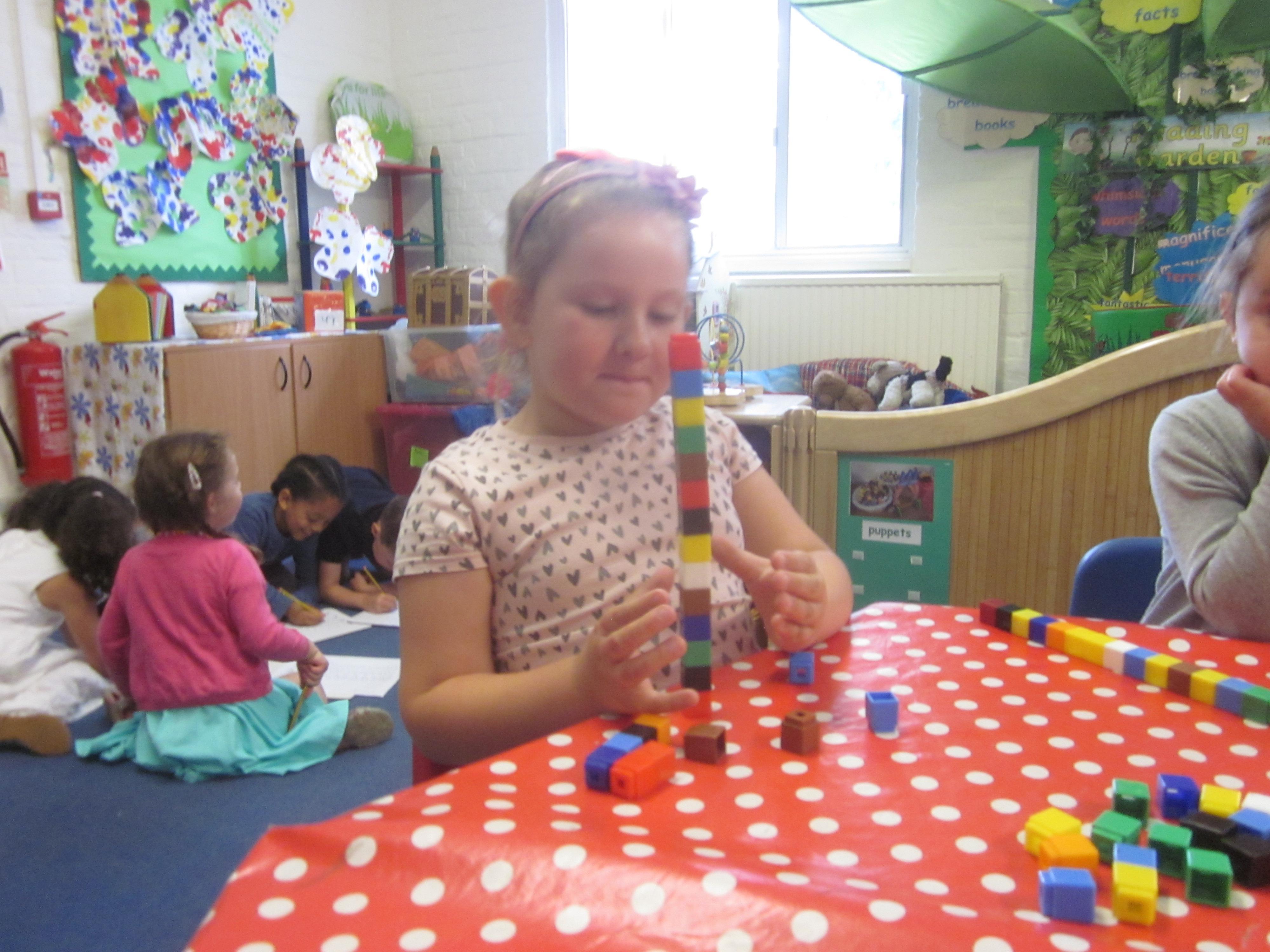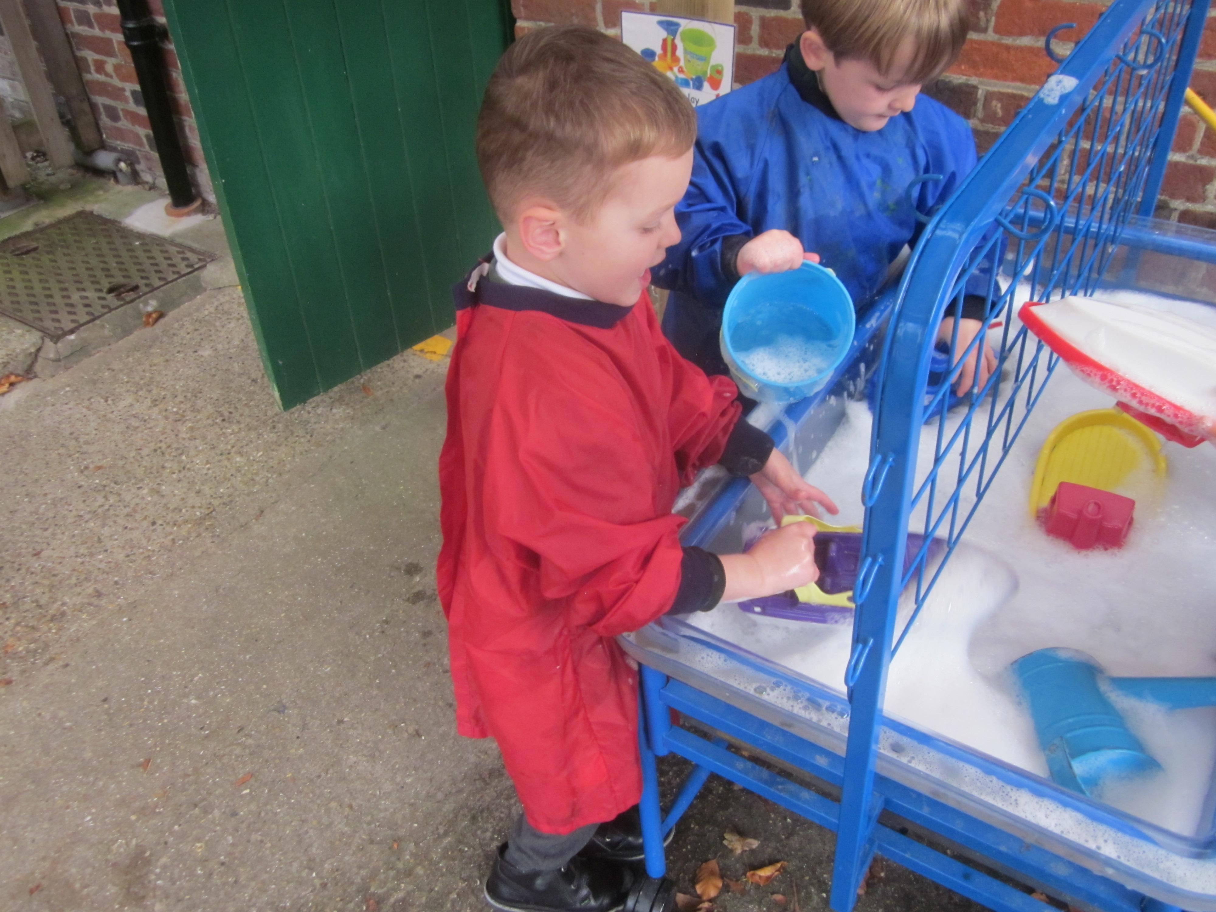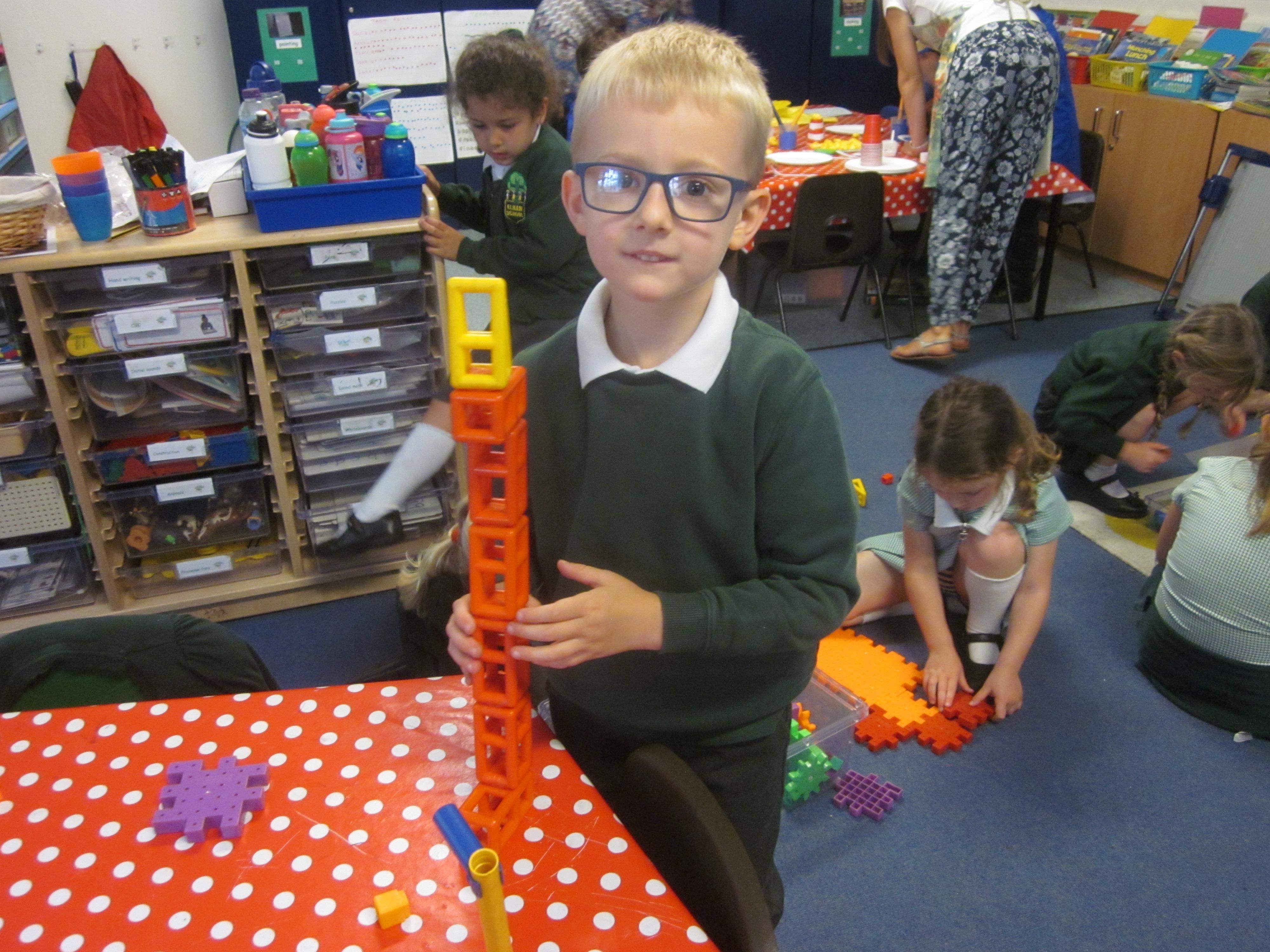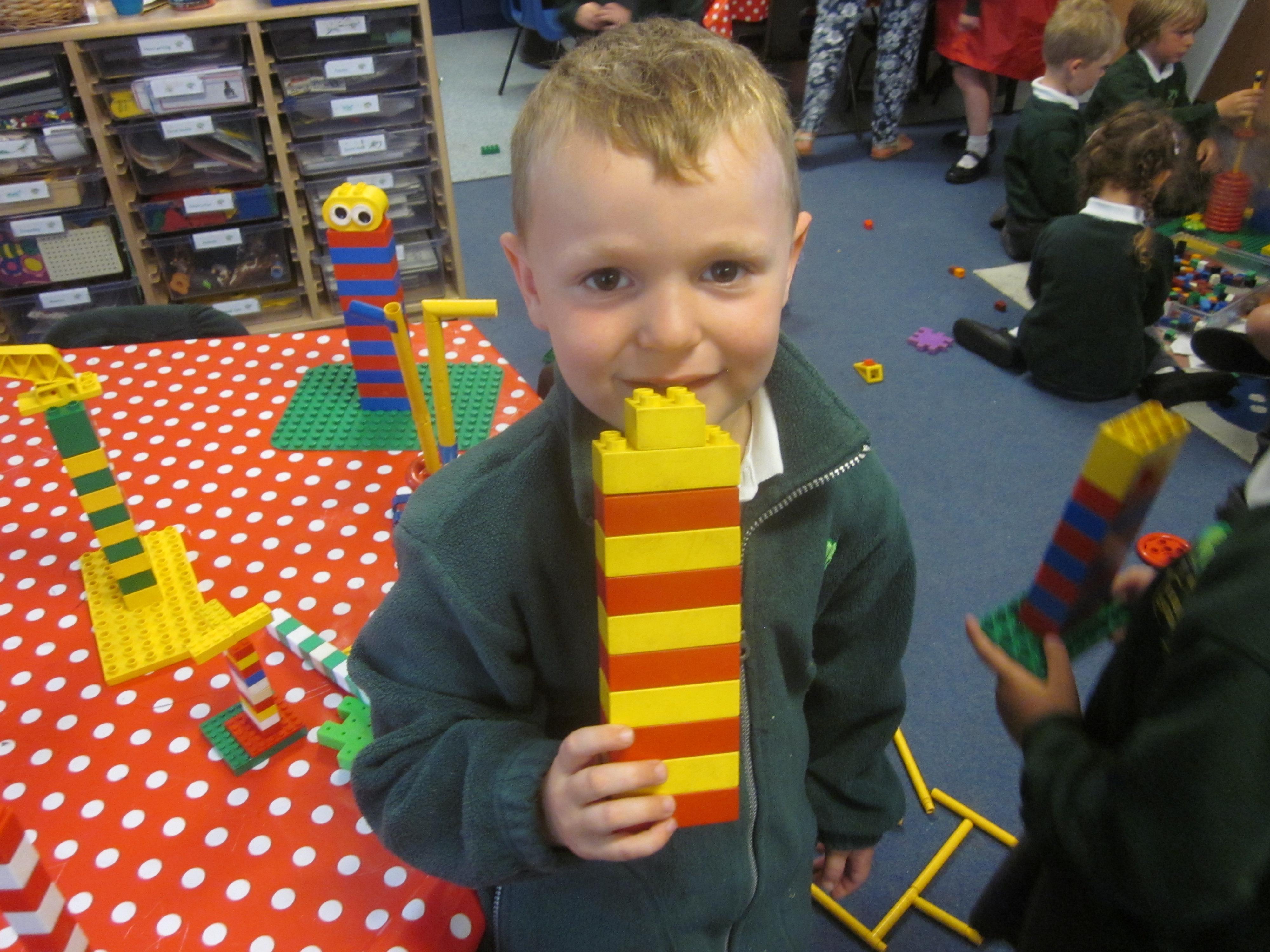 As well as lots of learning we have also had lots of fun. Check out the pictures of smiley, happy children investigating and discovering during our Child Initiated Time. Builder's is a favourite theme at the moment, with lots of wall building and mixing our 'cement' also involving lots of measuring and careful placing of bricks to make our walls really strong.