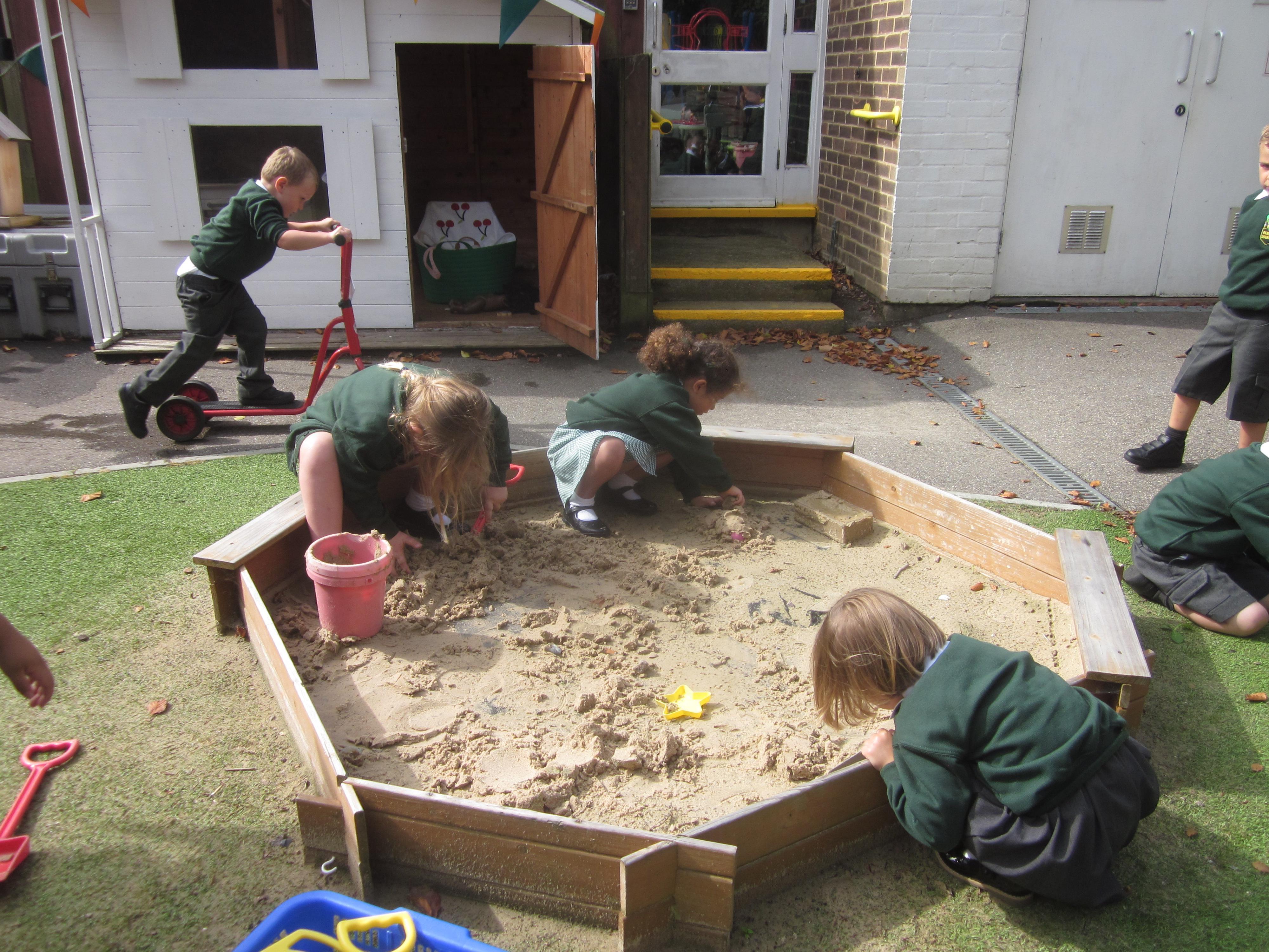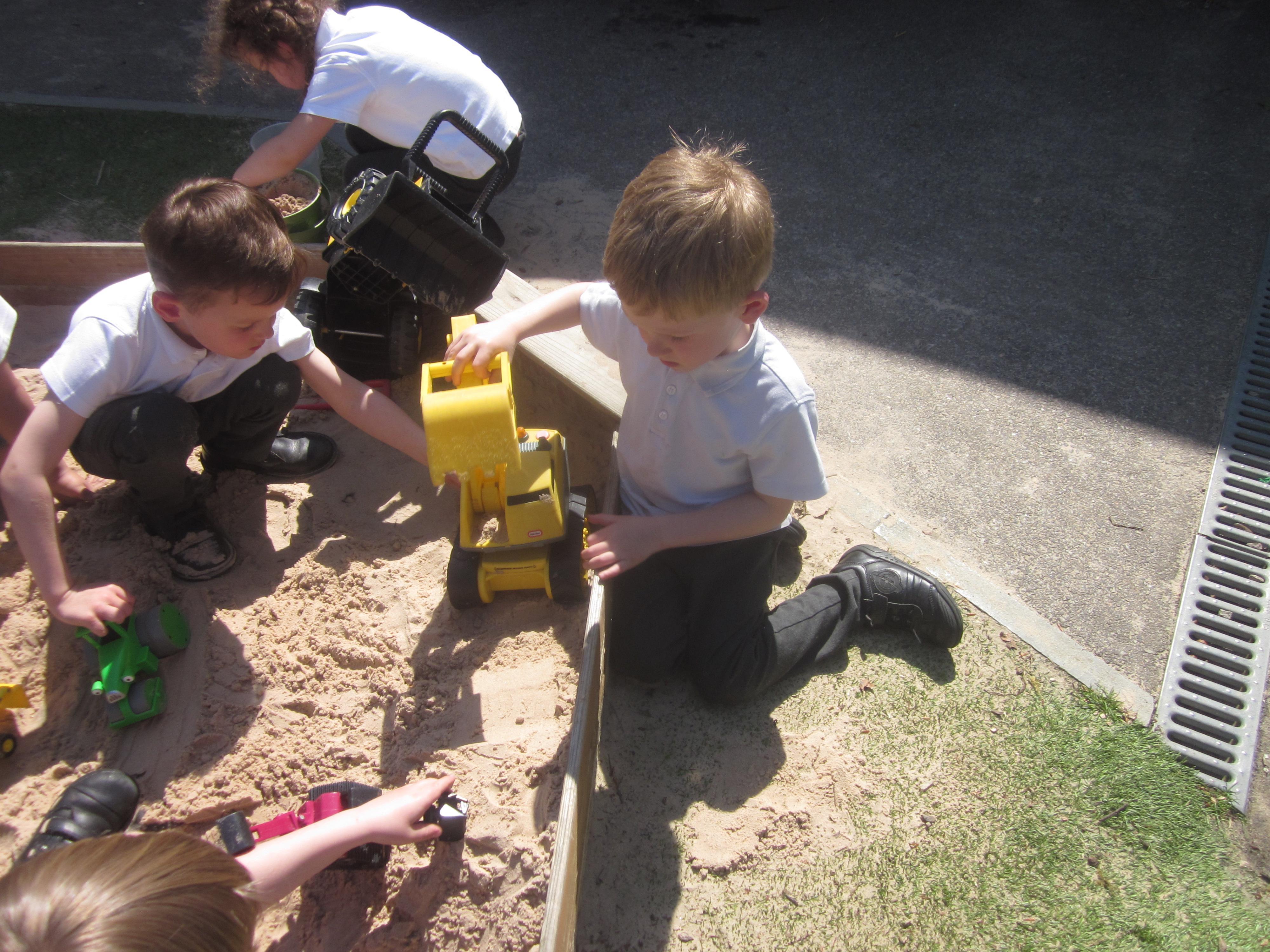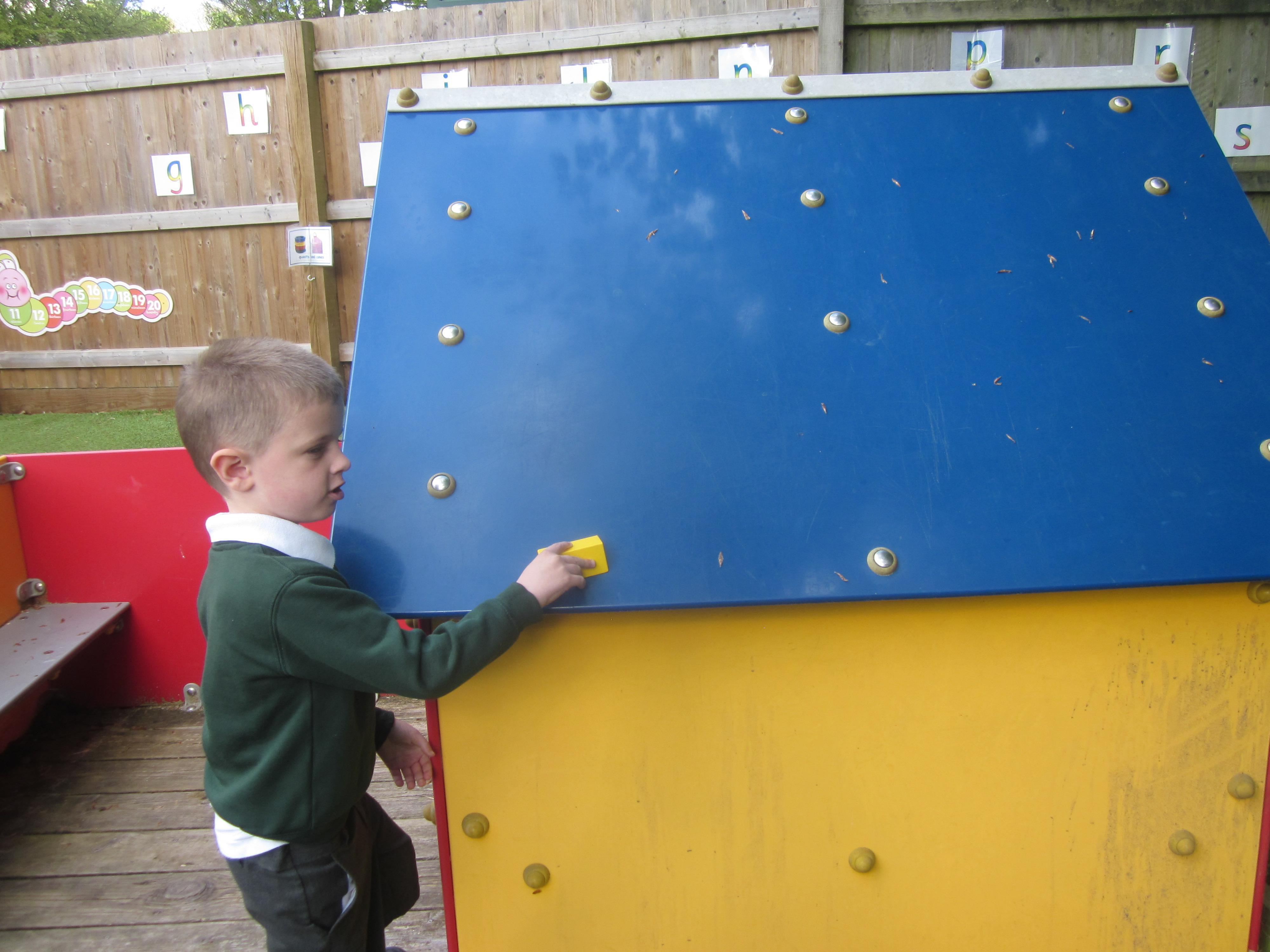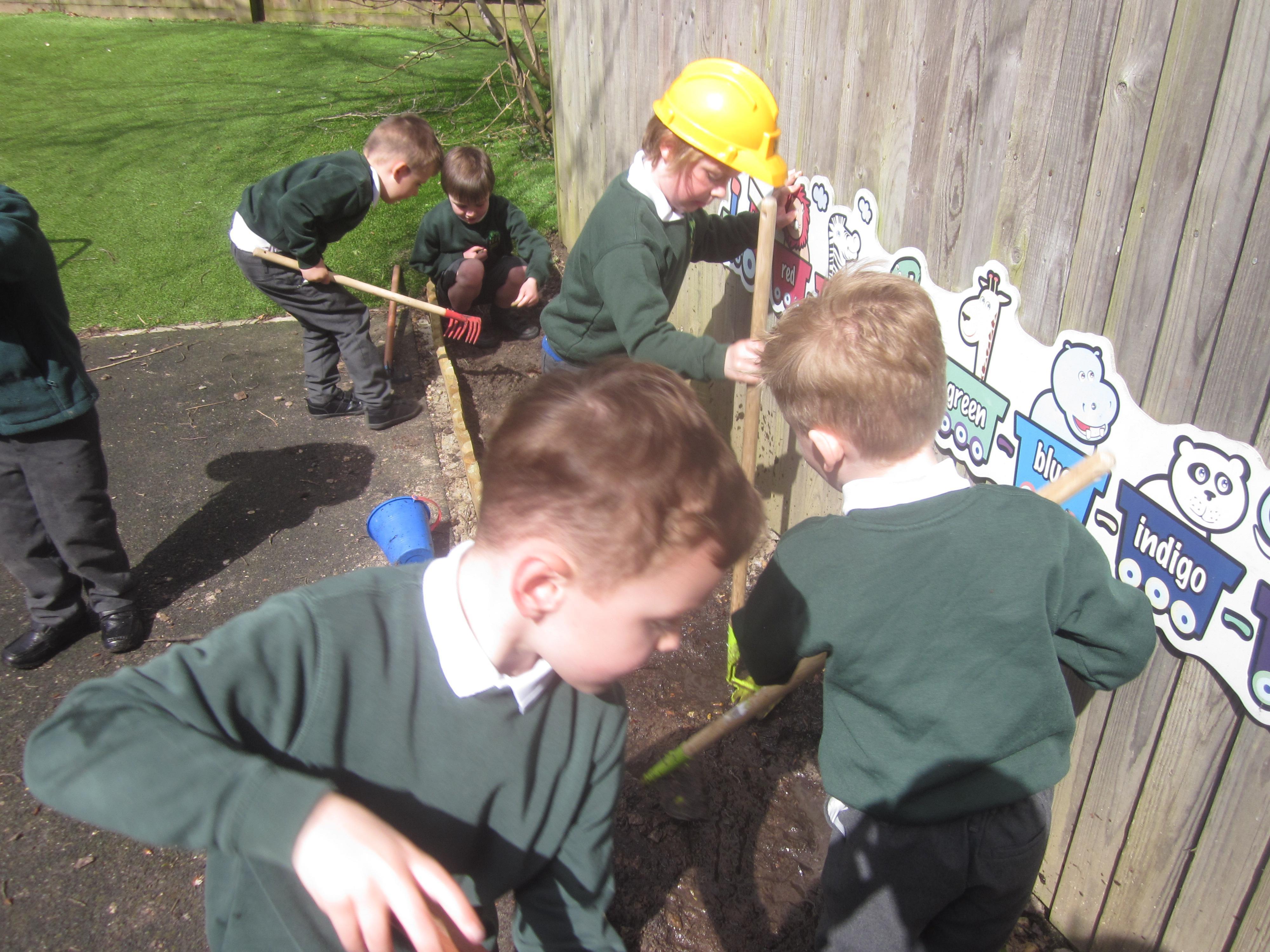 As well as lots of learning we have also had lots of fun. Check out the pictures of smiley, happy children investigating and discovering during our Child Initiated Time. Builder's is a favourite theme at the moment, with lots of wall building and mixing our 'cement' also involving lots of measuring and careful placing of bricks to make our walls really strong.