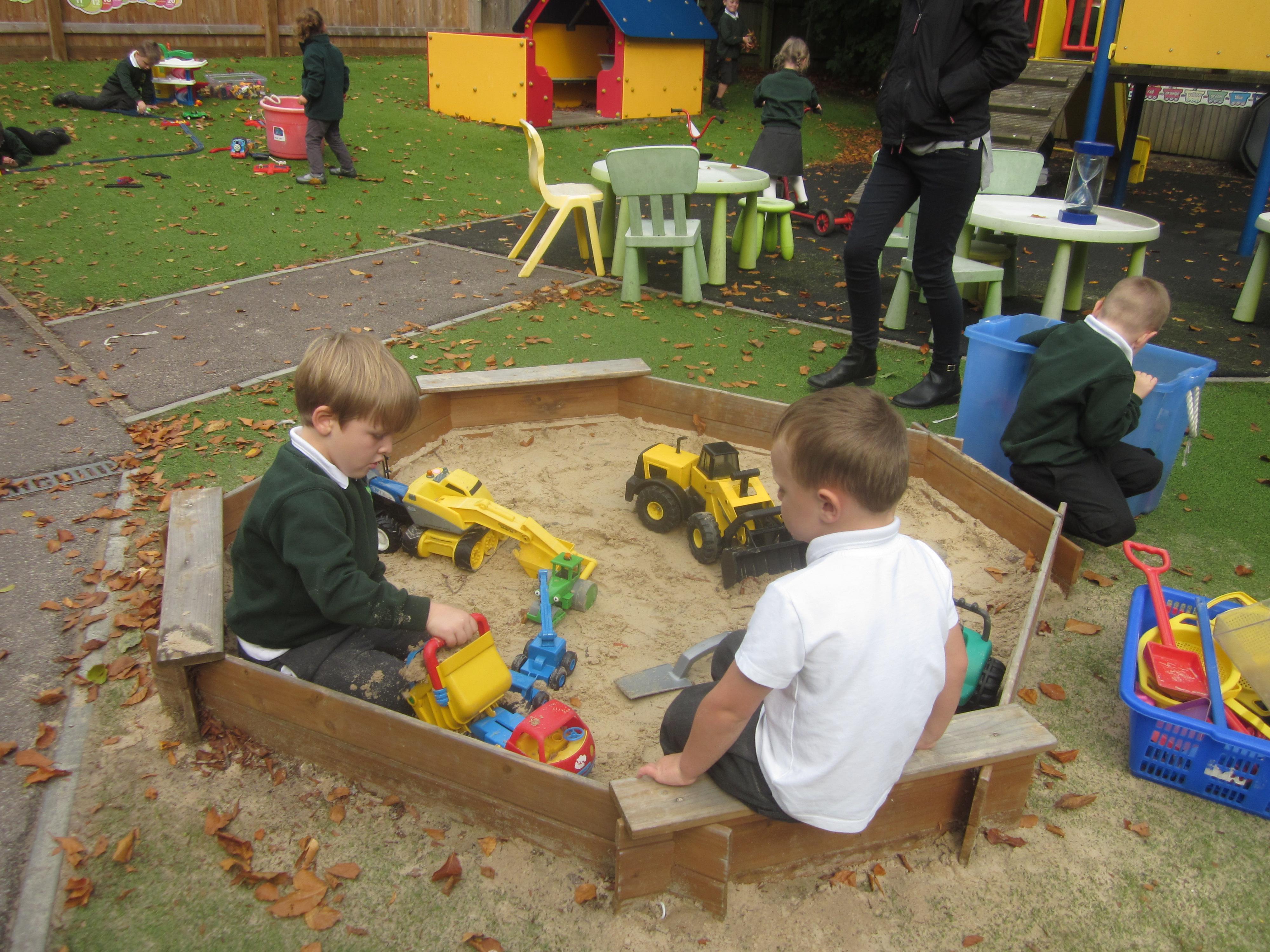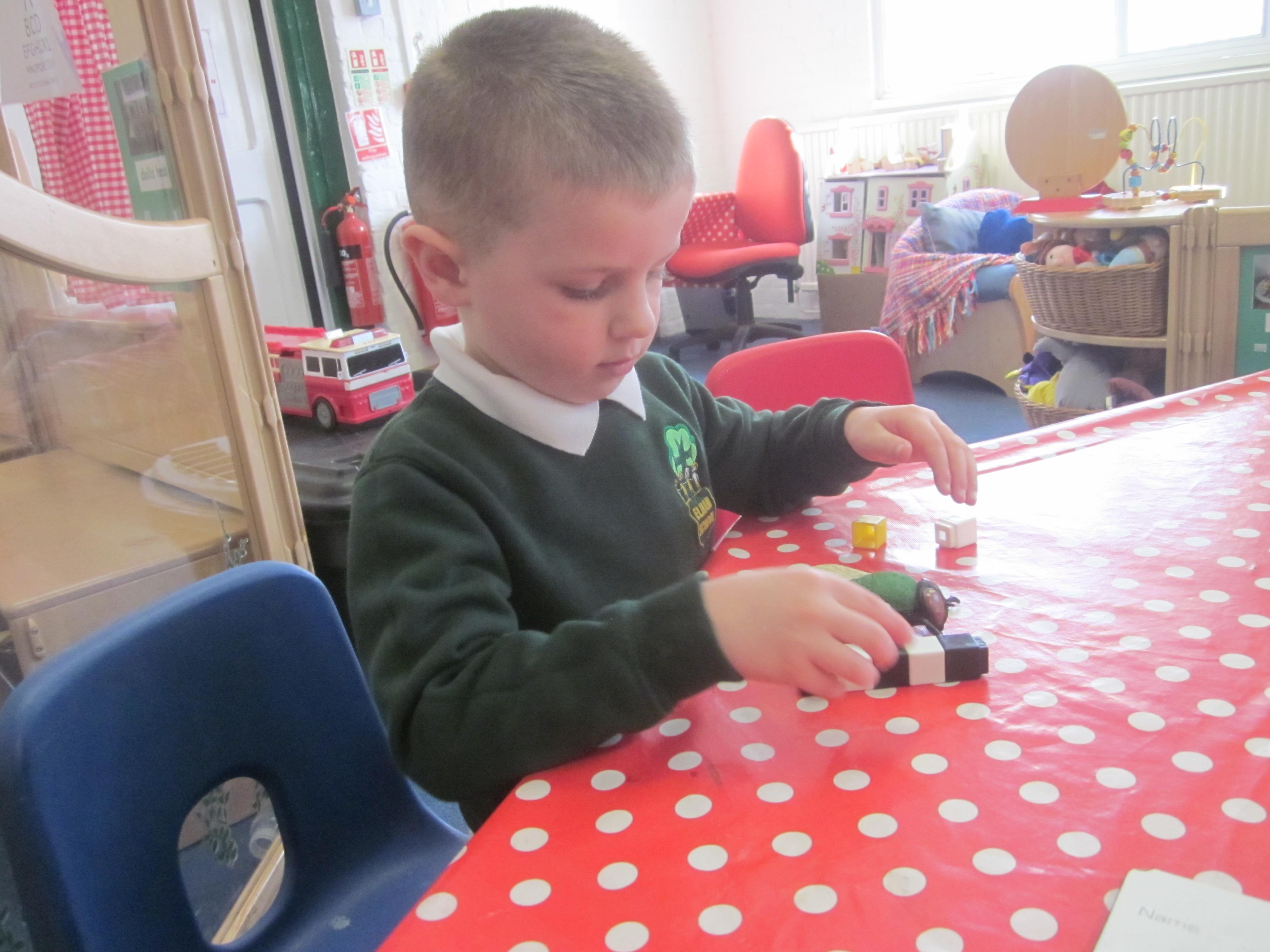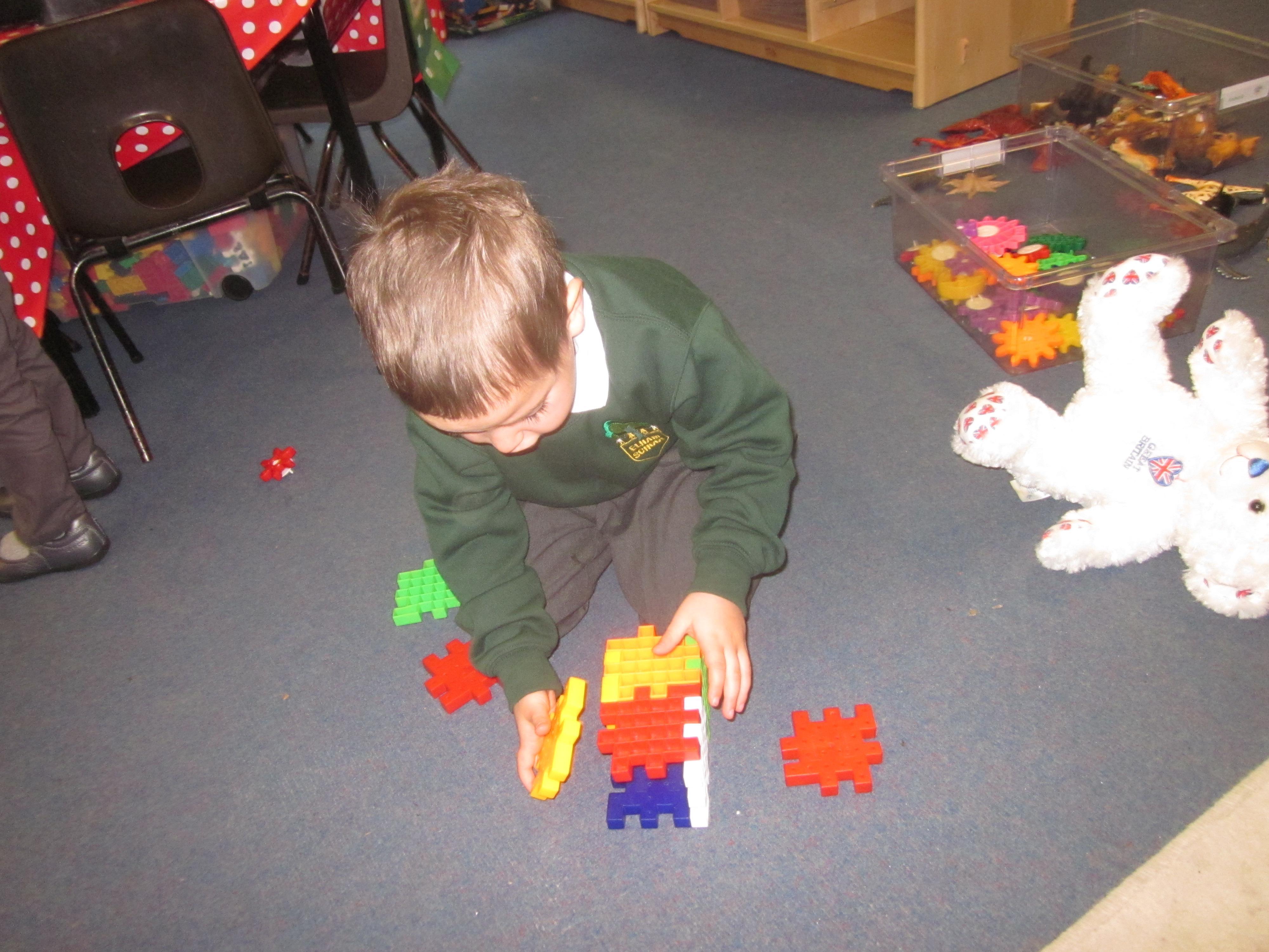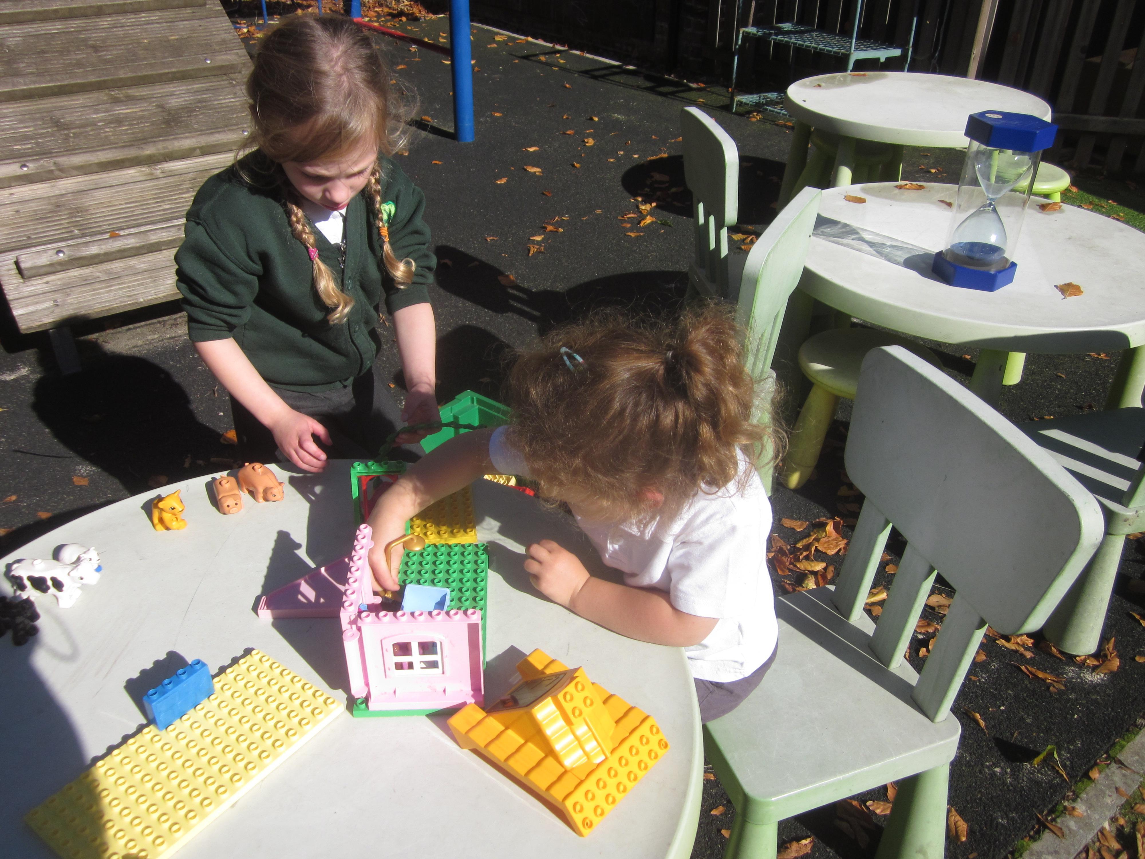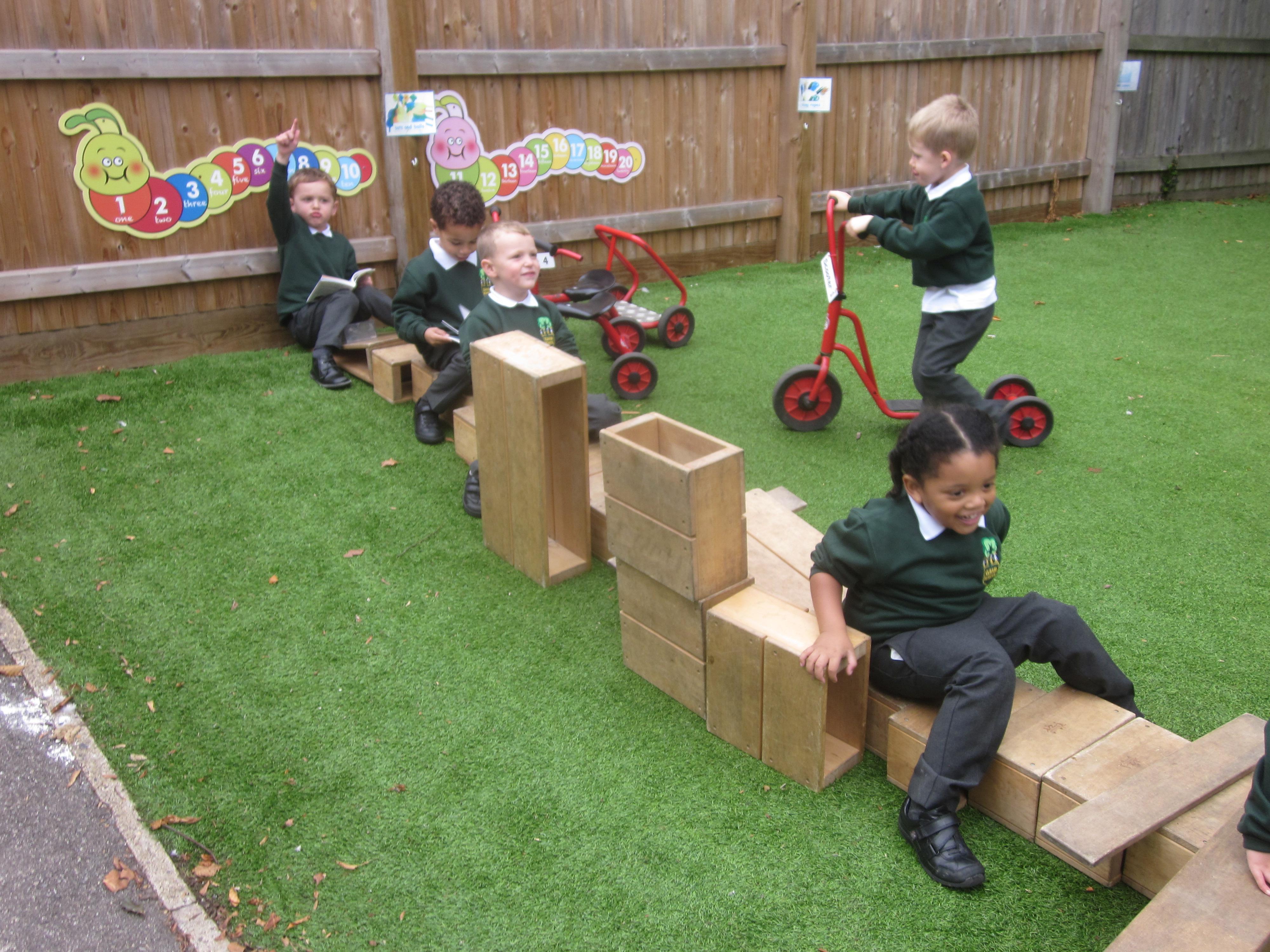As well as lots of learning we have also had lots of fun. Check out the pictures of smiley, happy children investigating and discovering during our Child Initiated Time. Builder's is a favourite theme at the moment, with lots of wall building and mixing our 'cement' also involving lots of measuring and careful placing of bricks to make our walls really strong.