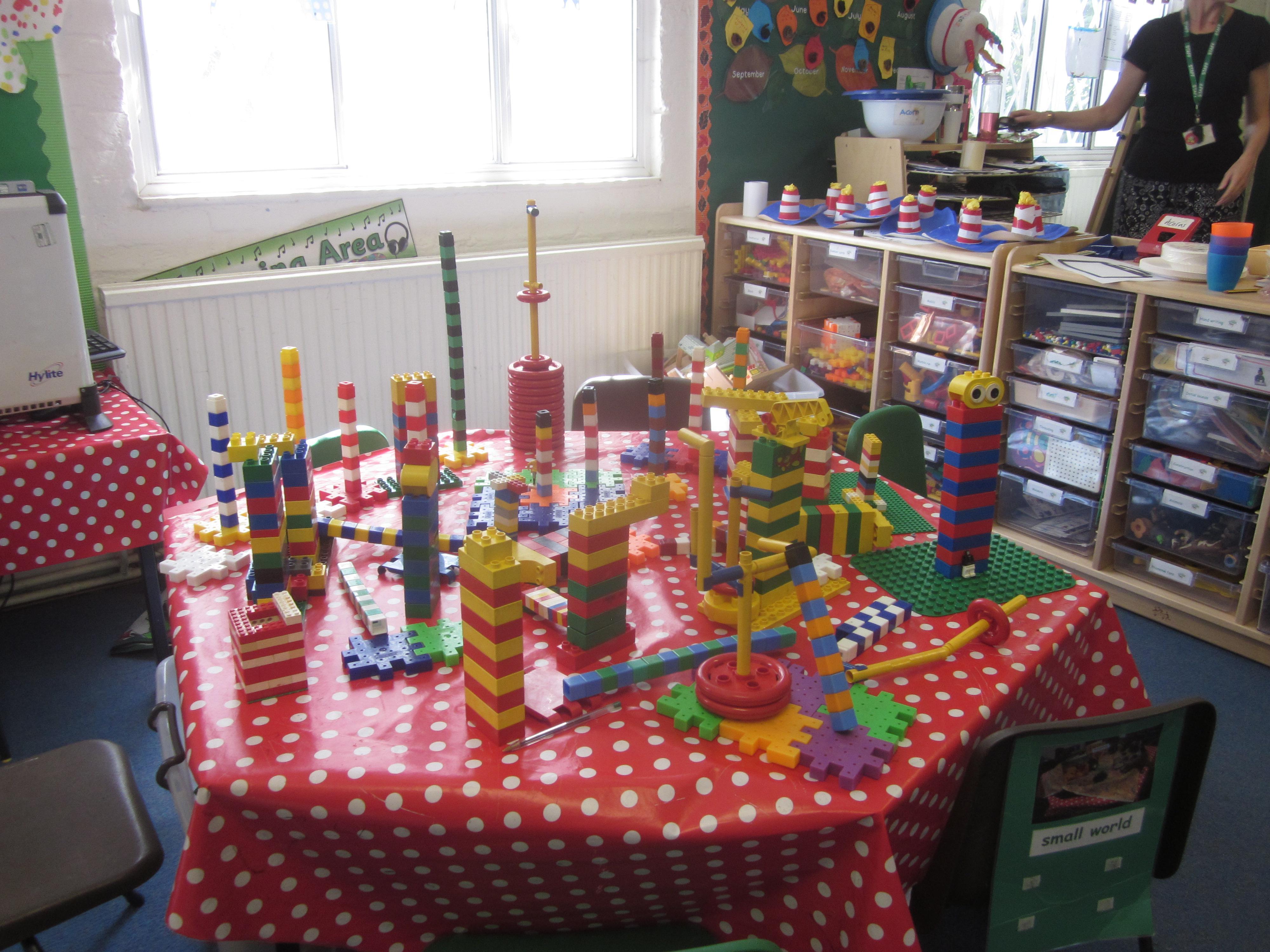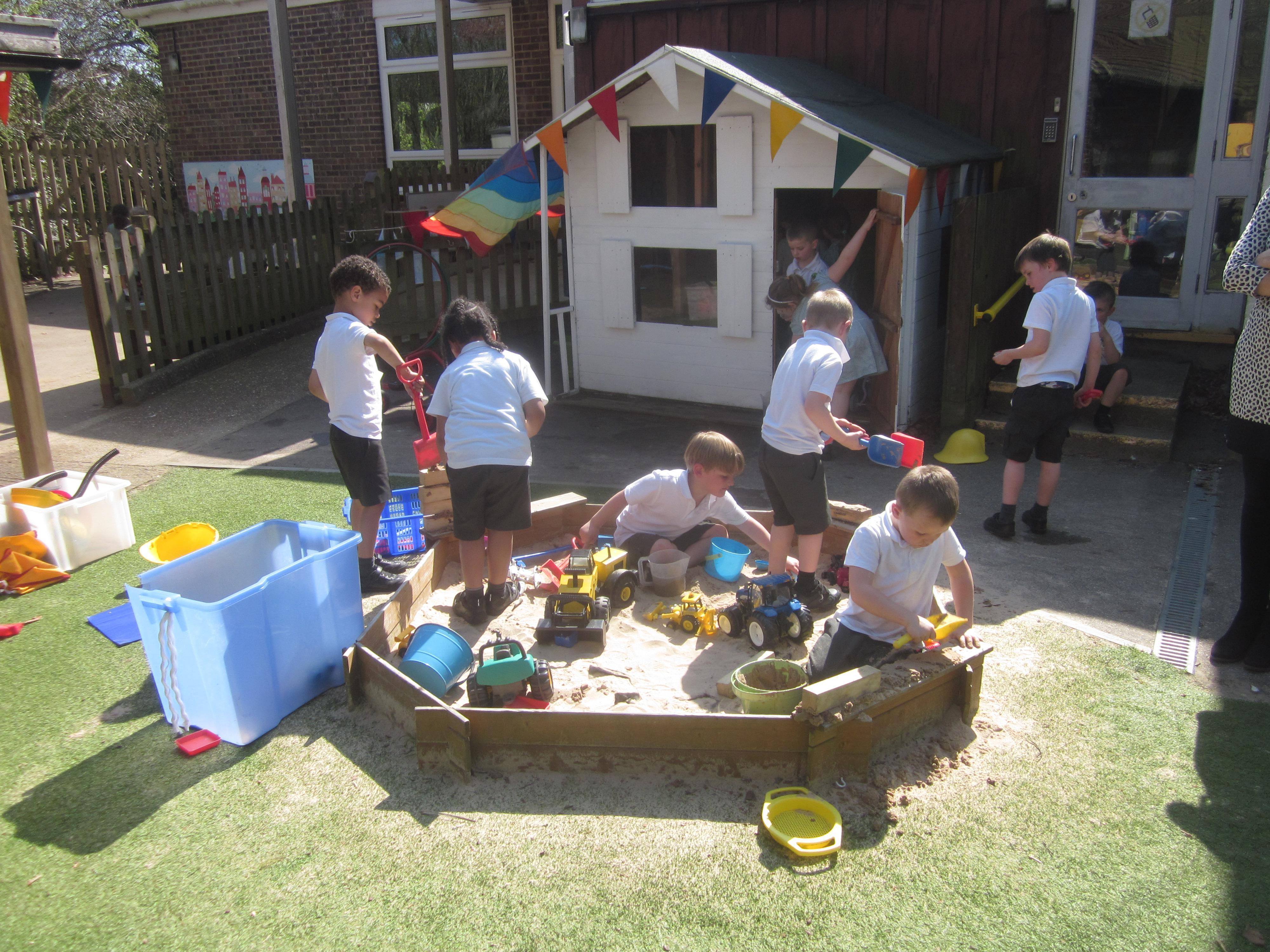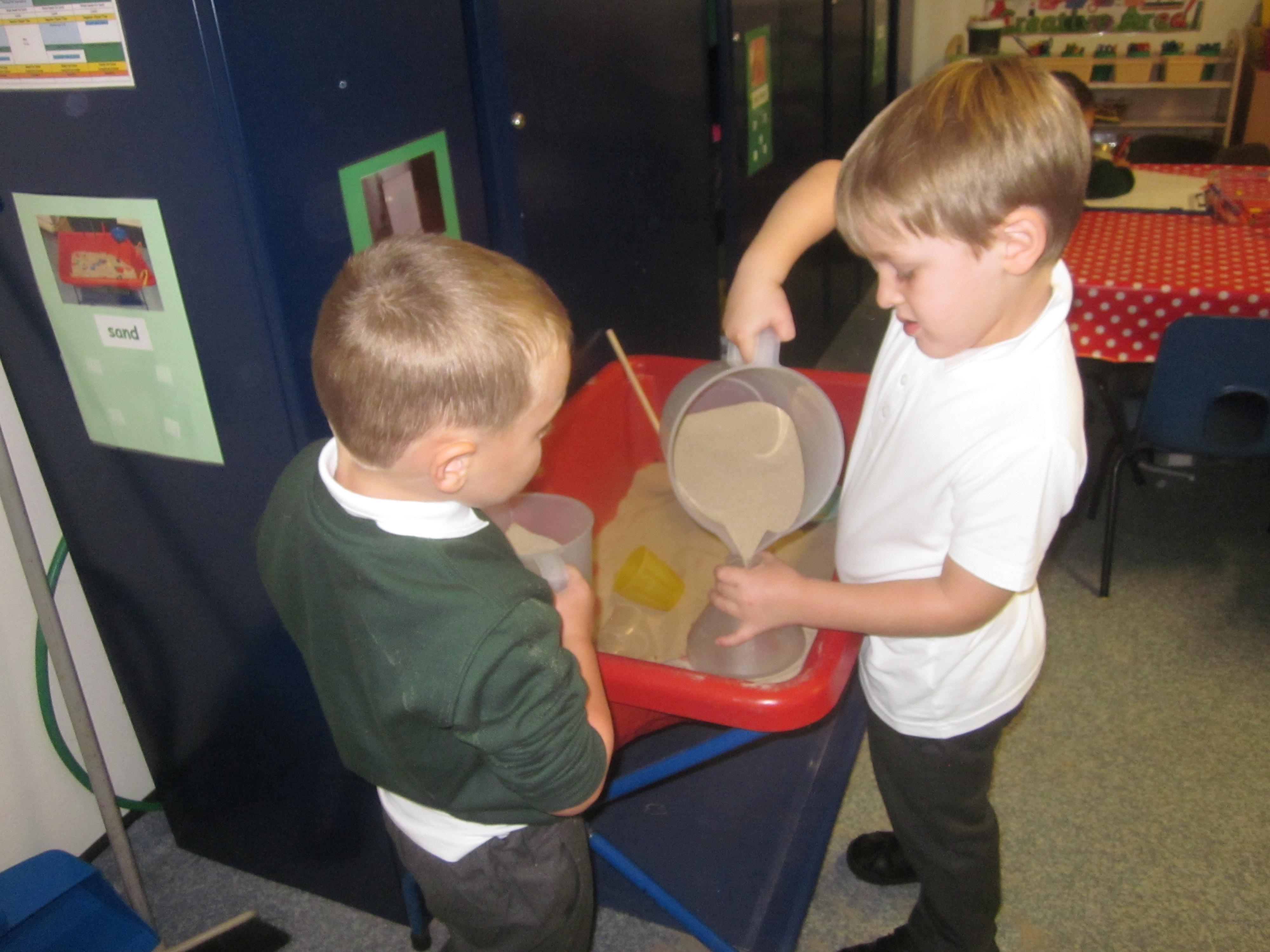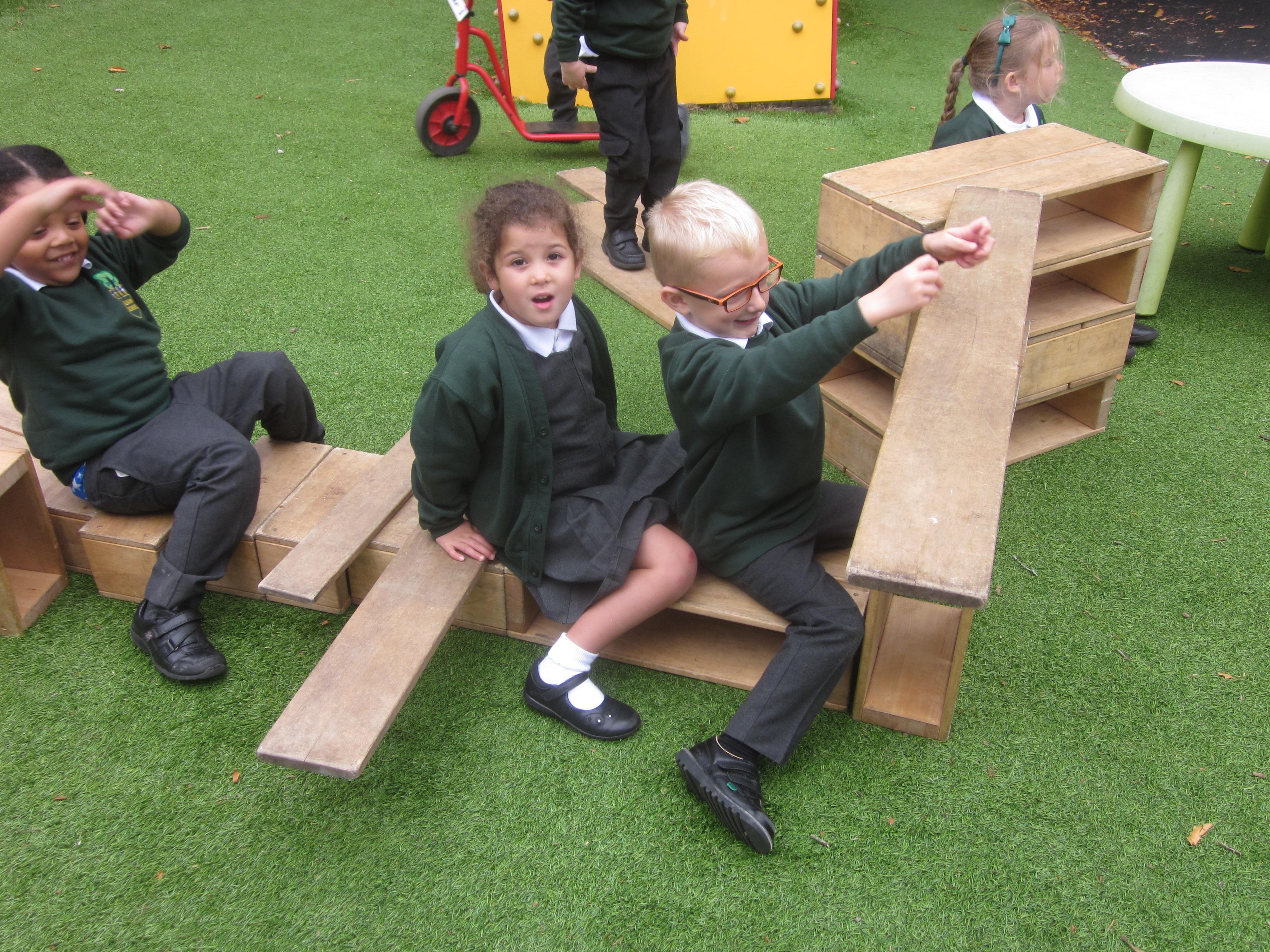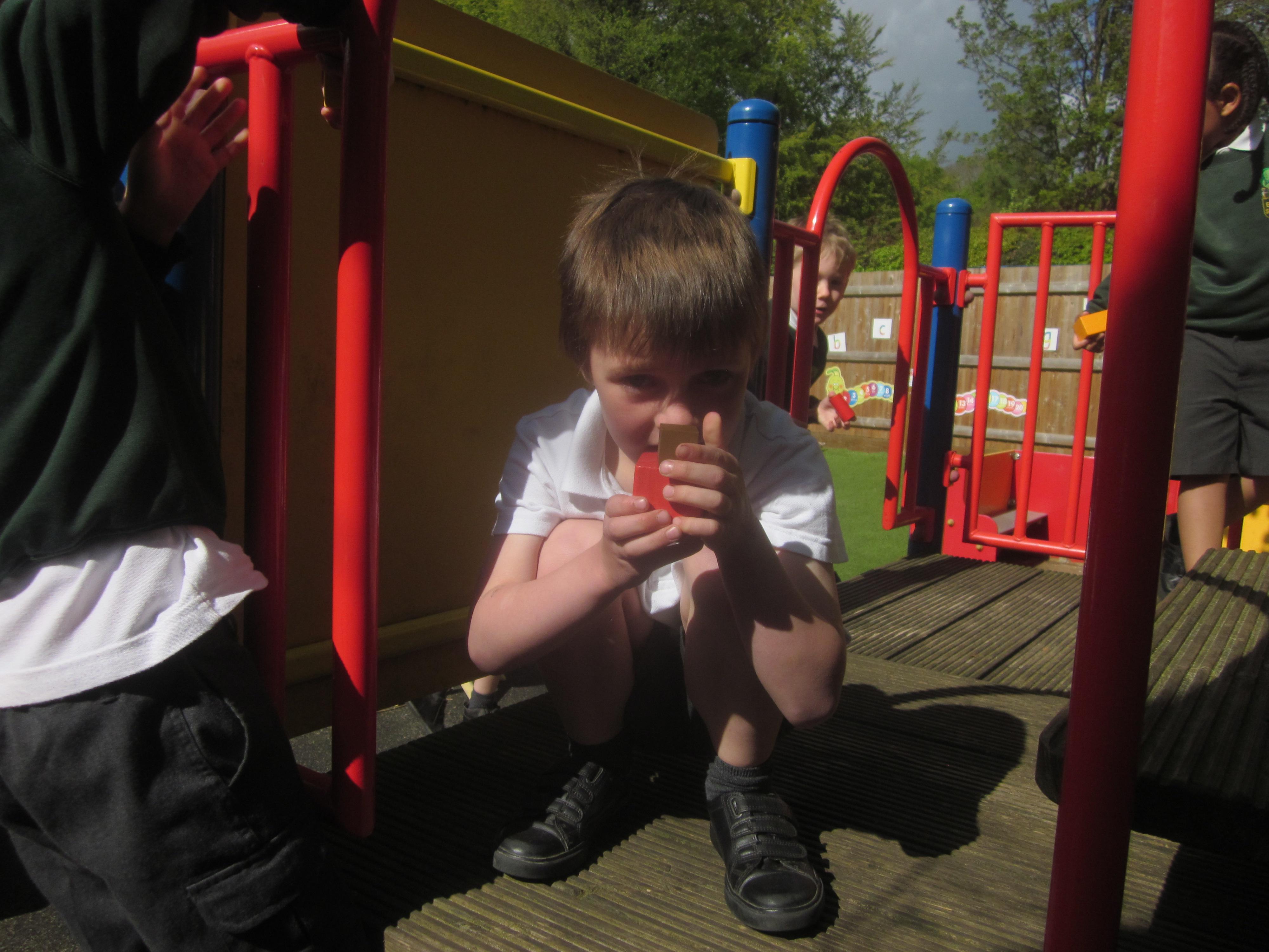 As well as lots of learning we have also had lots of fun. Check out the pictures of smiley, happy children investigating and discovering during our Child Initiated Time. Builder's is a favourite theme at the moment, with lots of wall building and mixing our 'cement' also involving lots of measuring and careful placing of bricks to make our walls really strong.