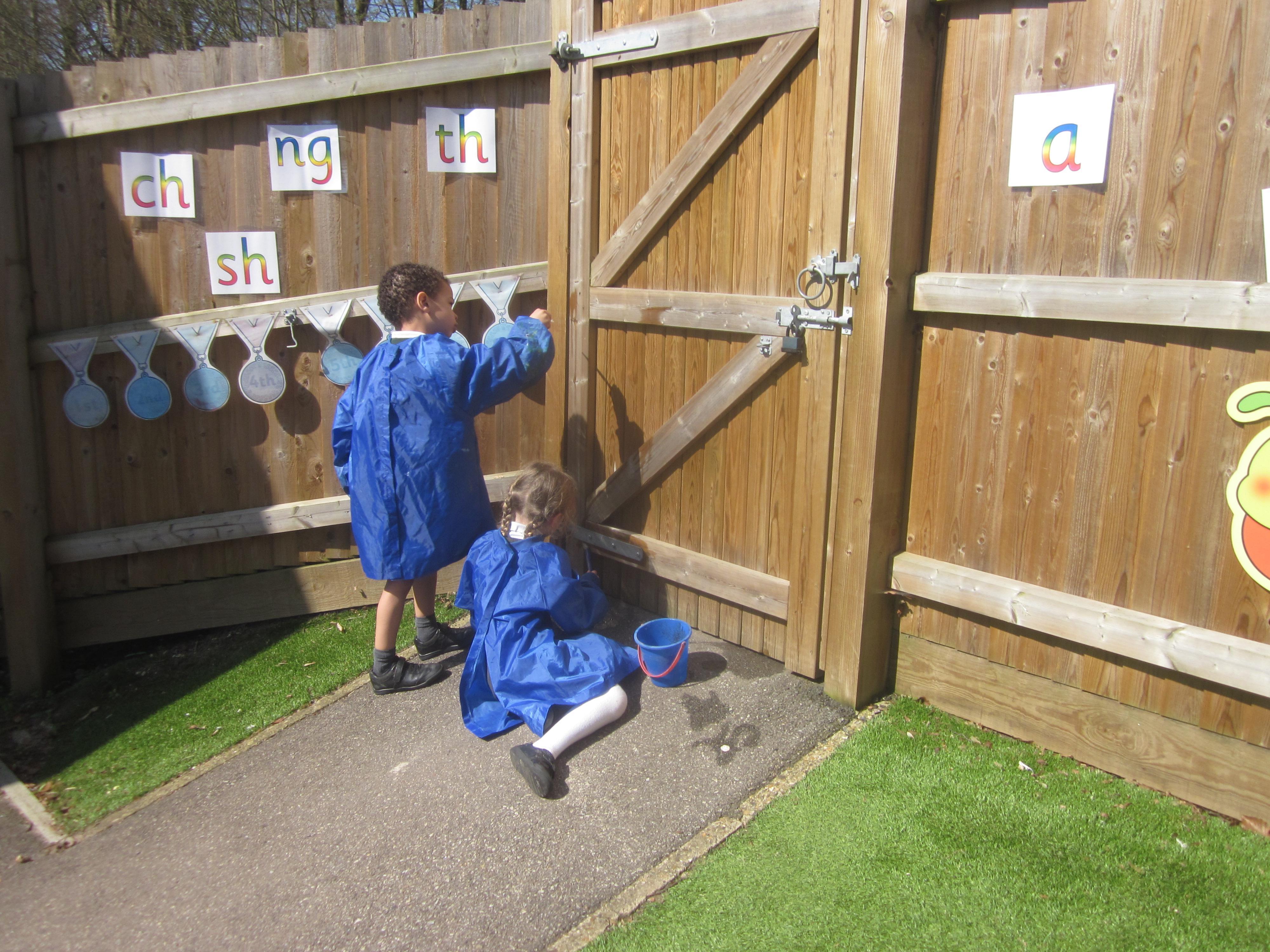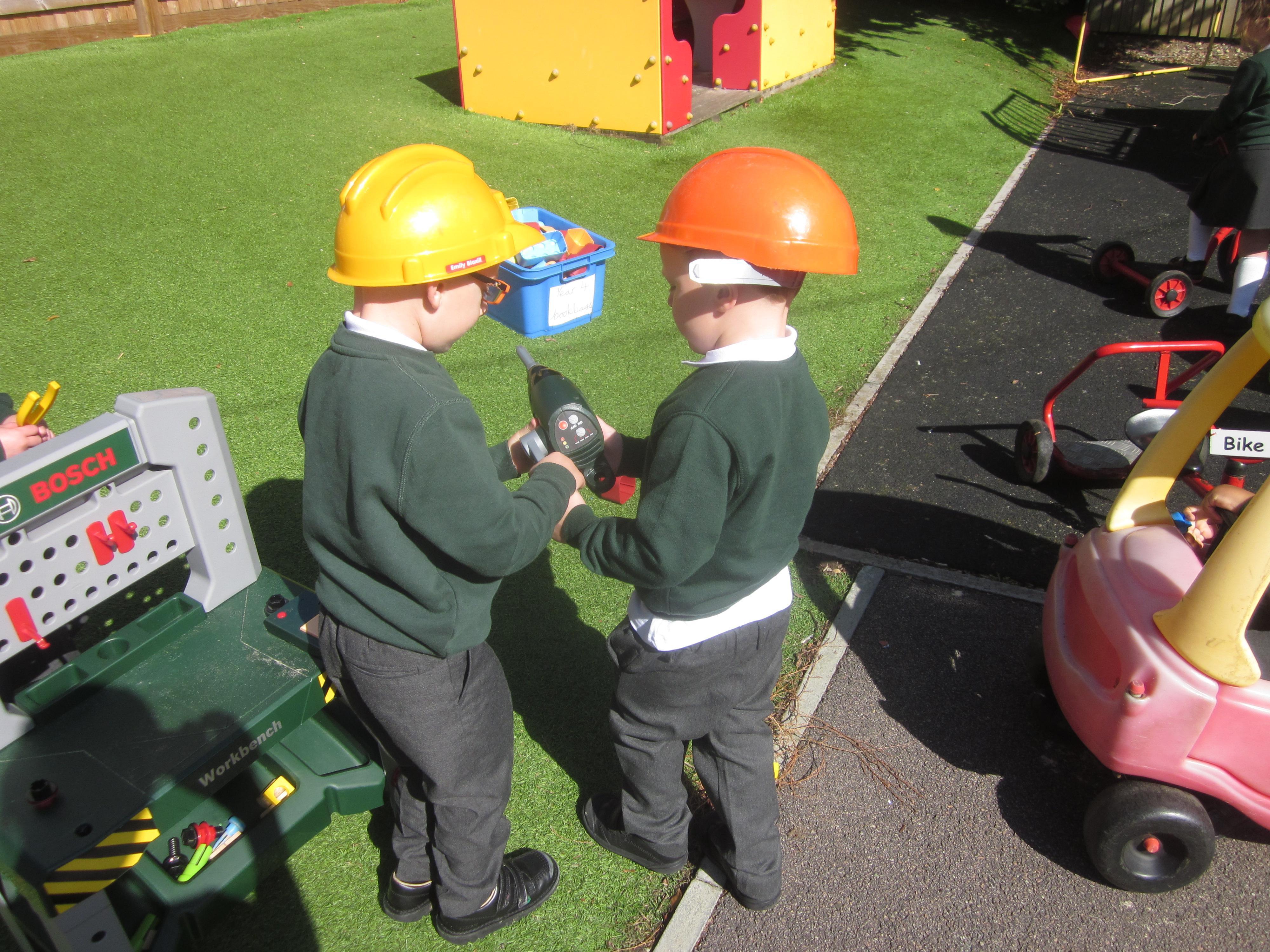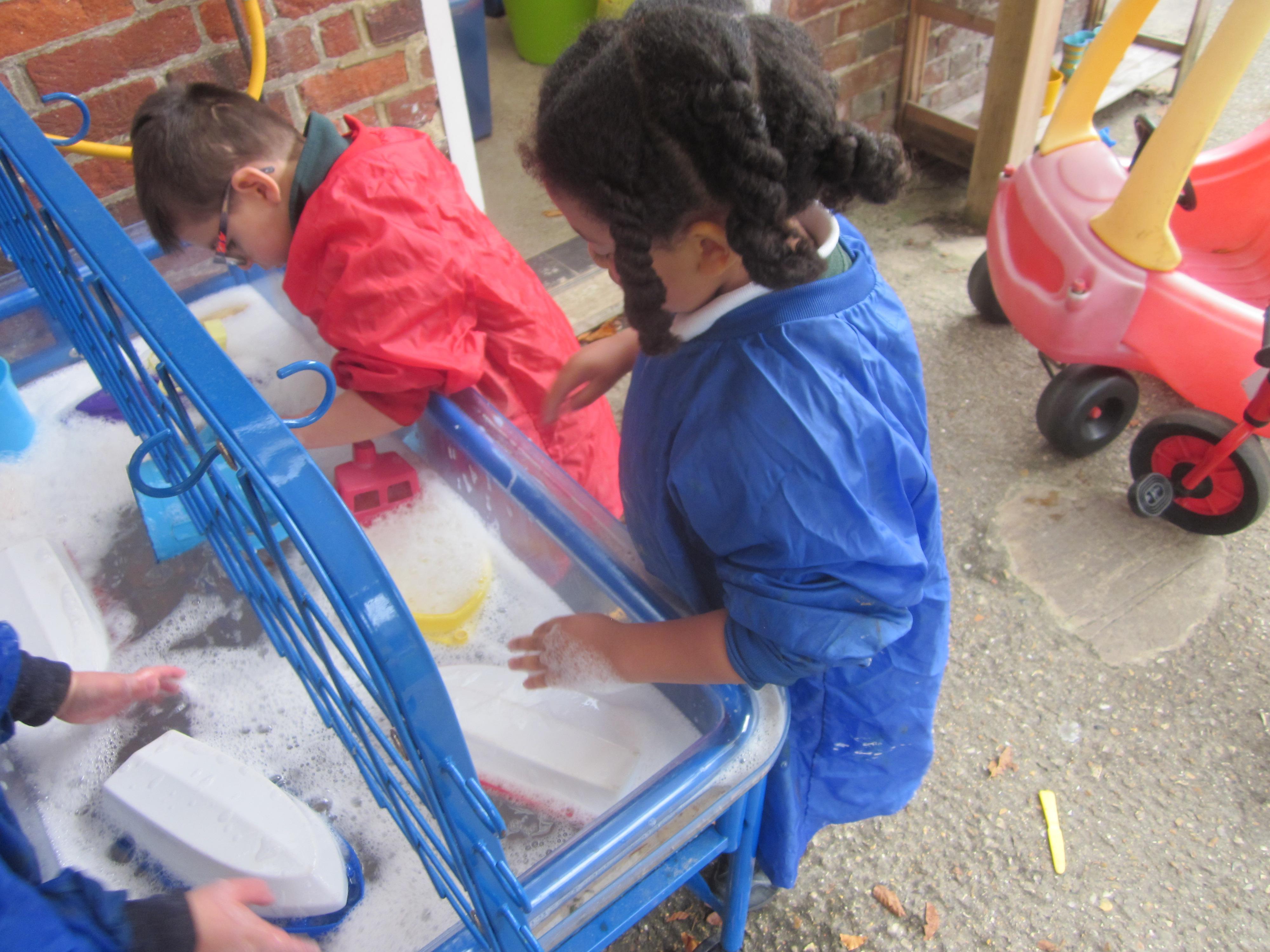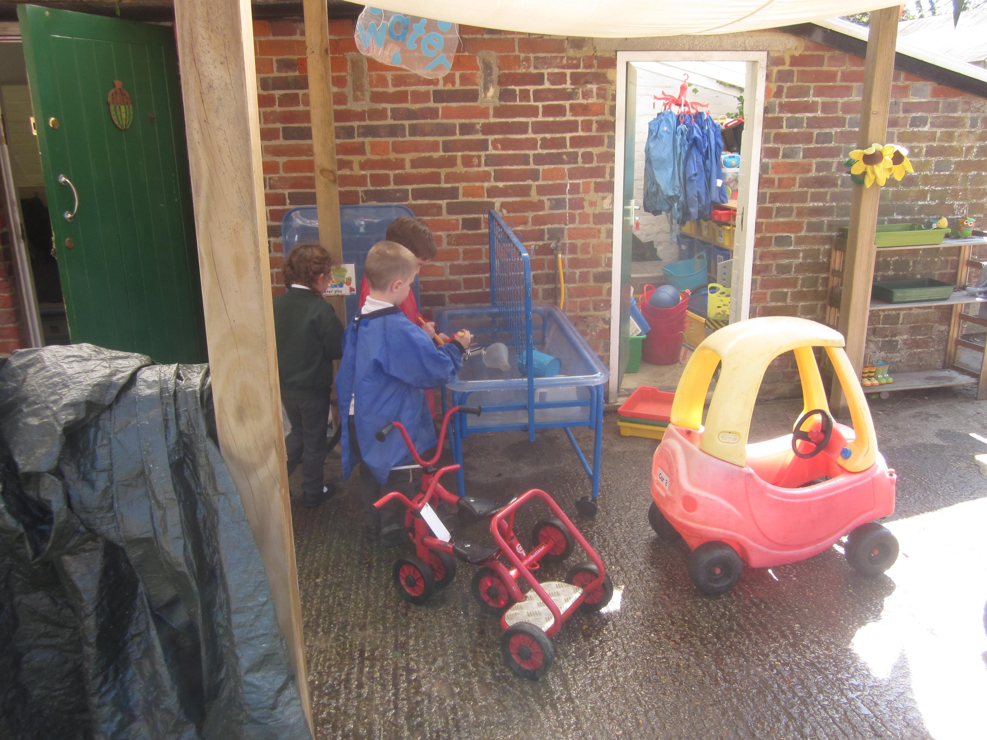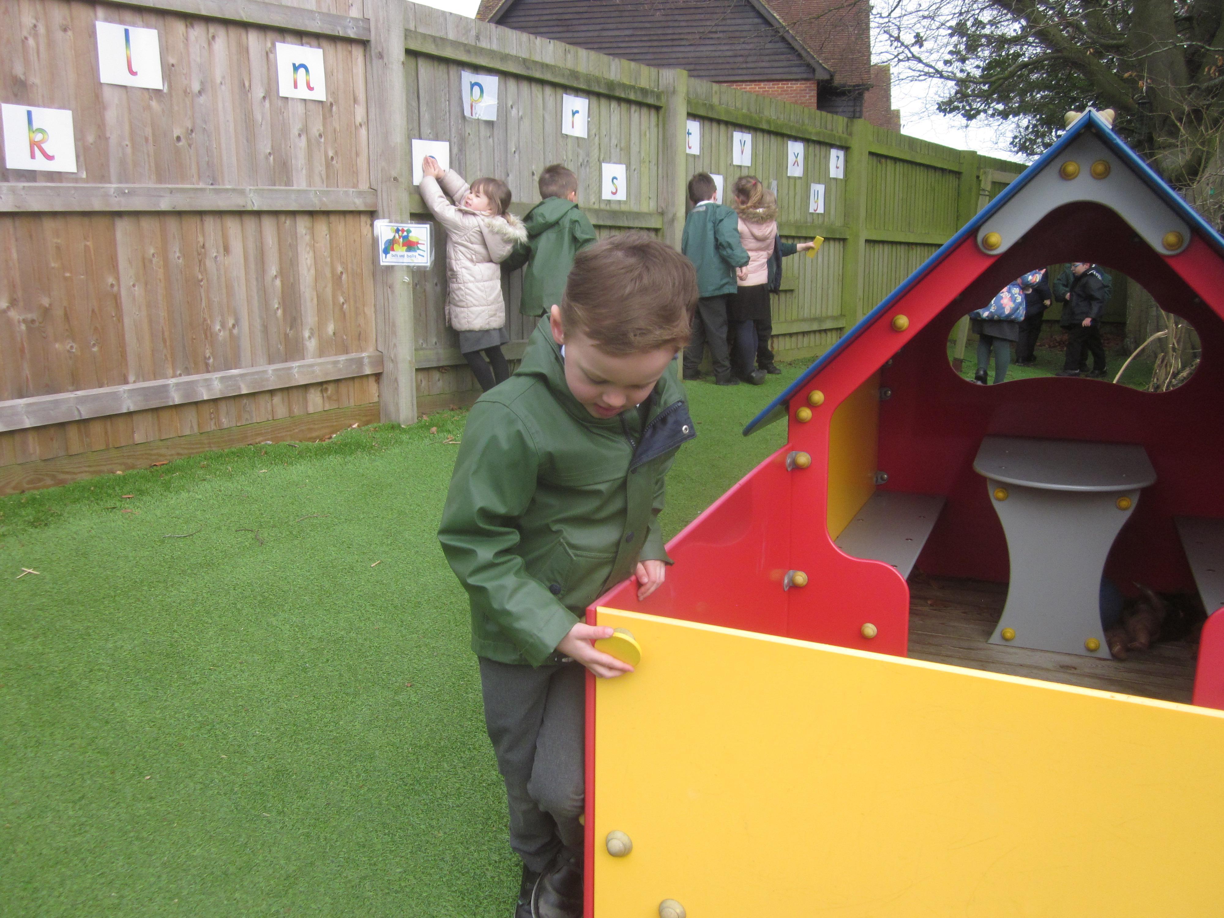 As well as lots of learning we have also had lots of fun. Check out the pictures of smiley, happy children investigating and discovering during our Child Initiated Time. Builder's is a favourite theme at the moment, with lots of wall building and mixing our 'cement' also involving lots of measuring and careful placing of bricks to make our walls really strong.