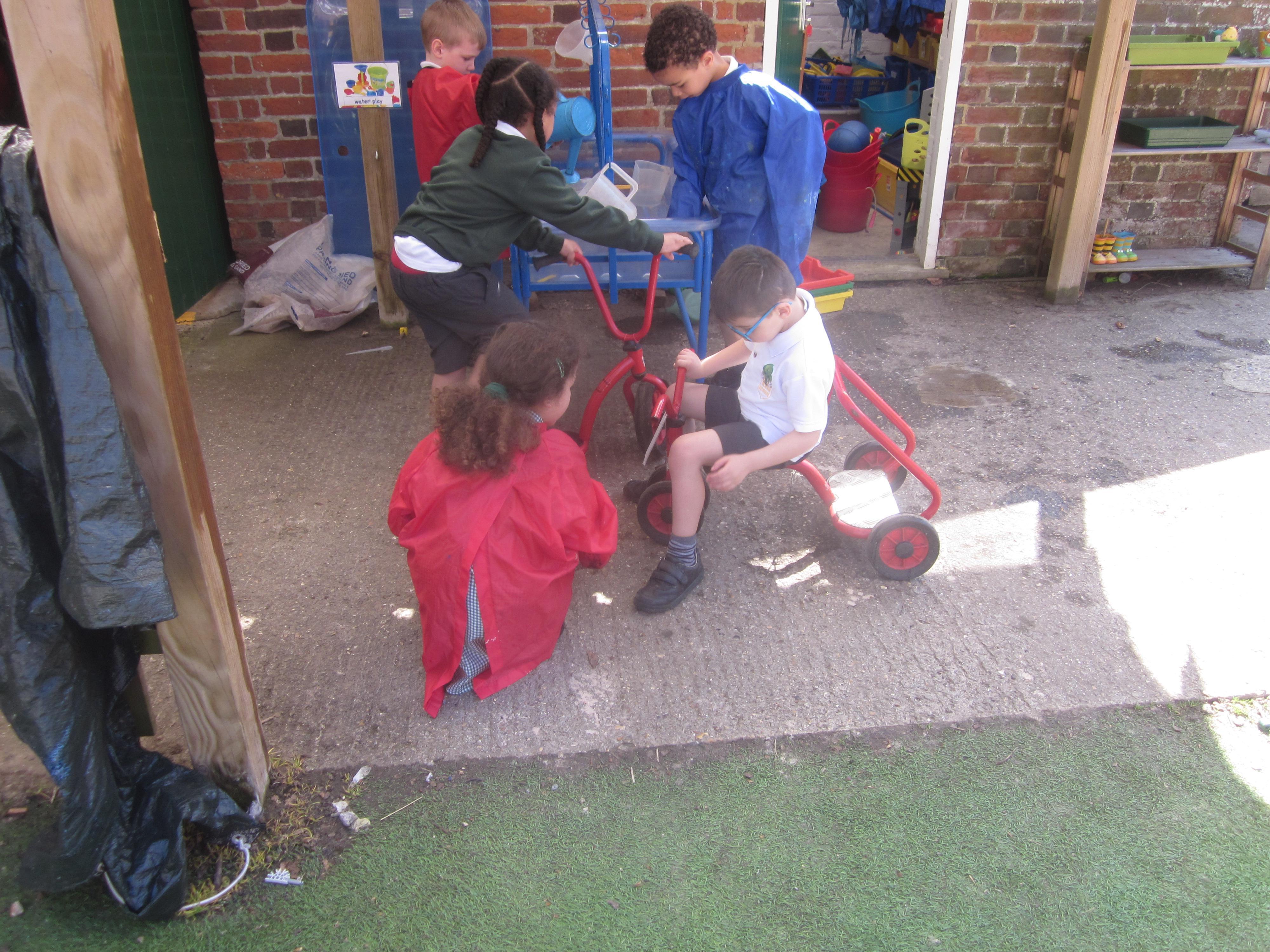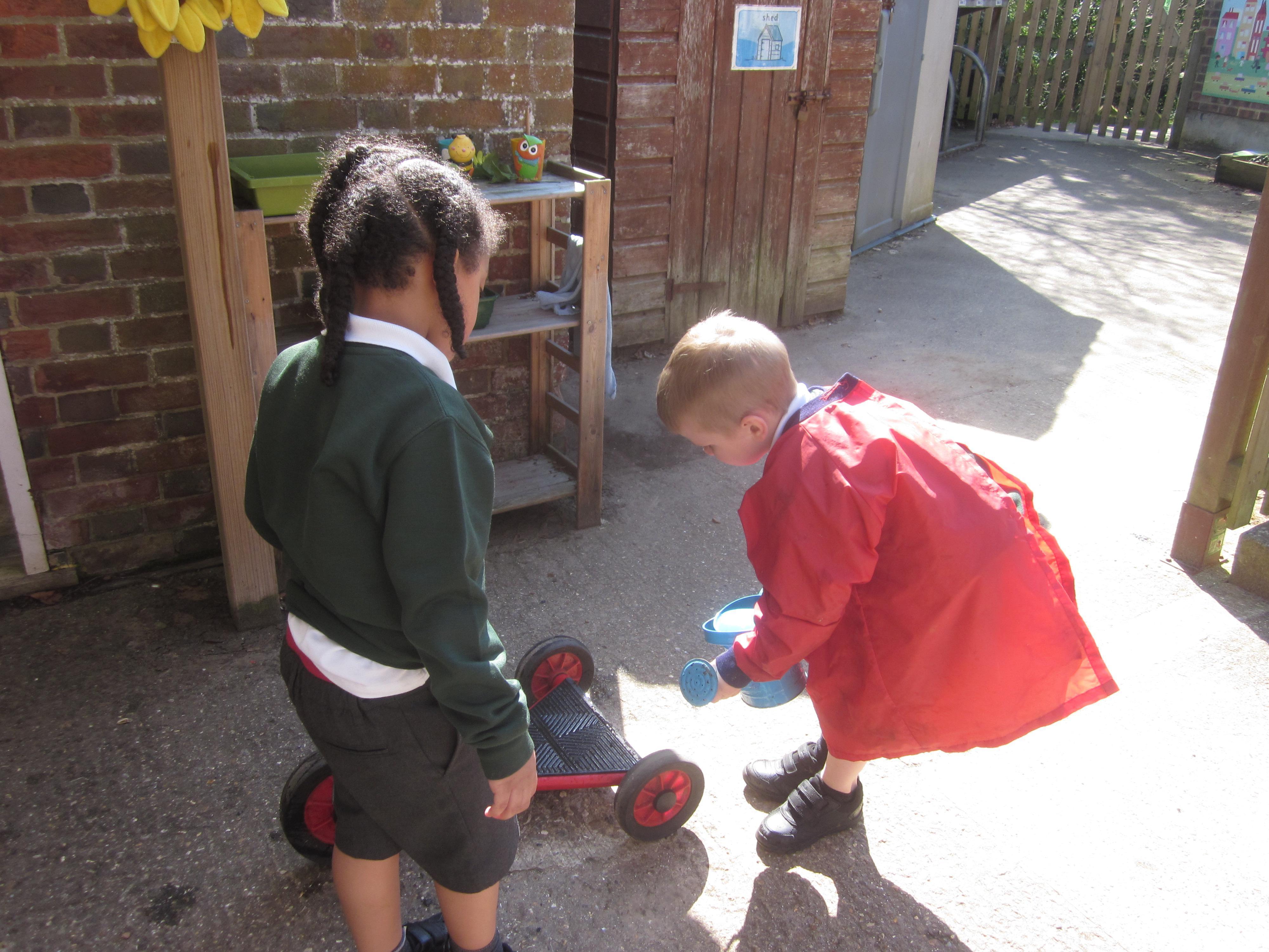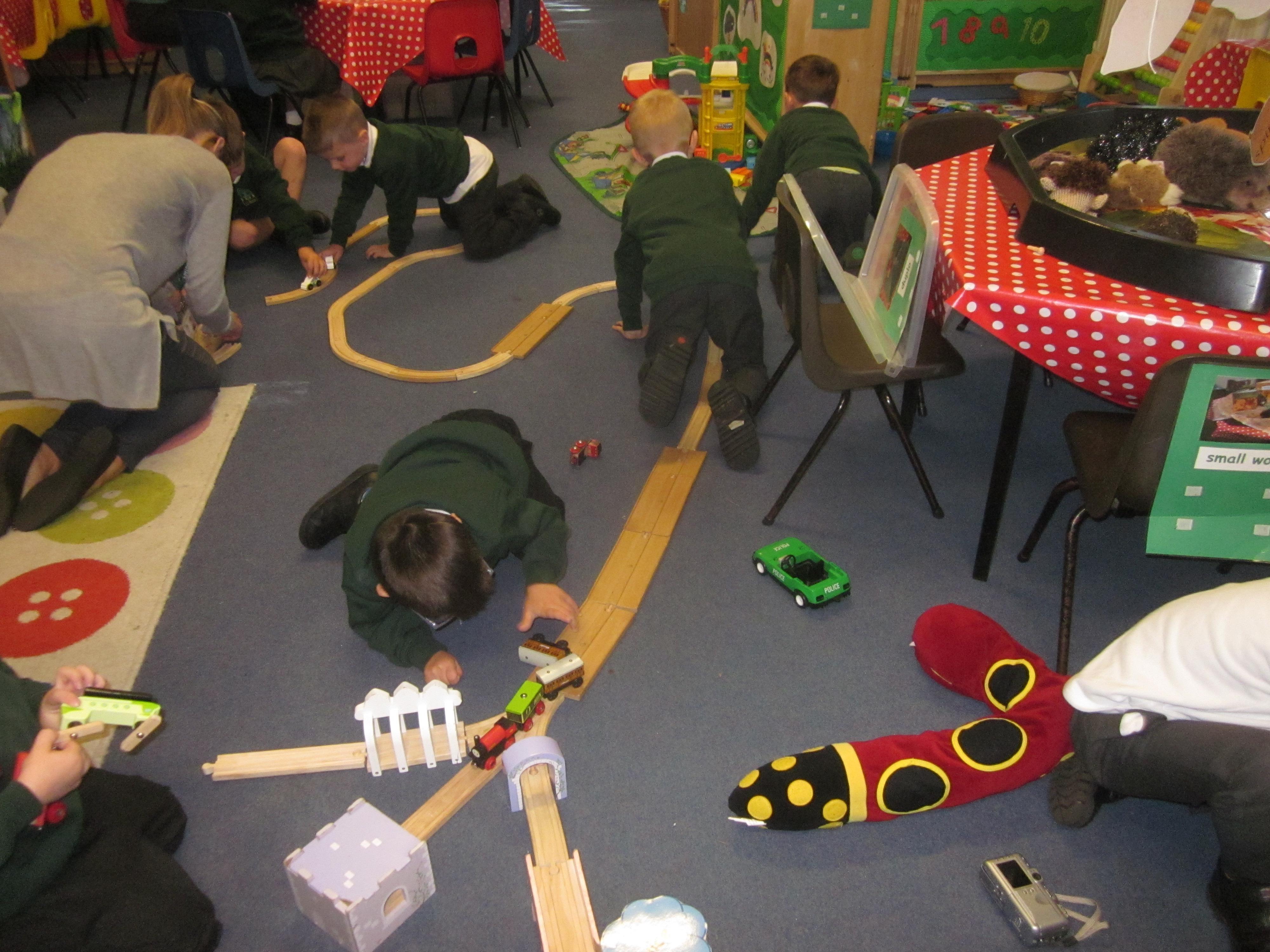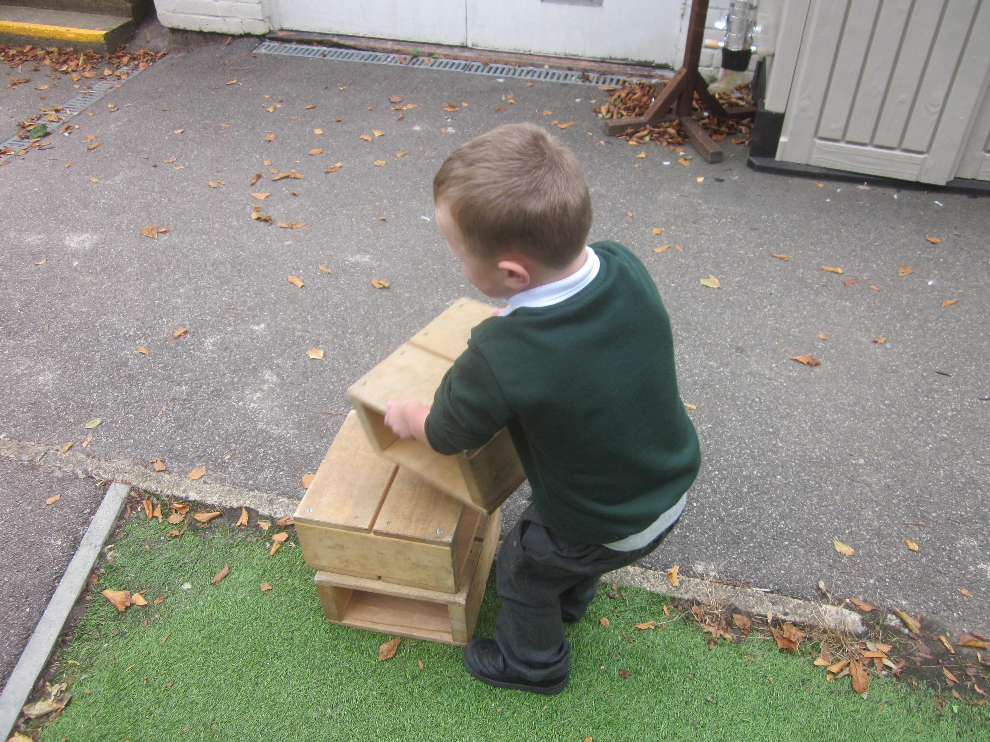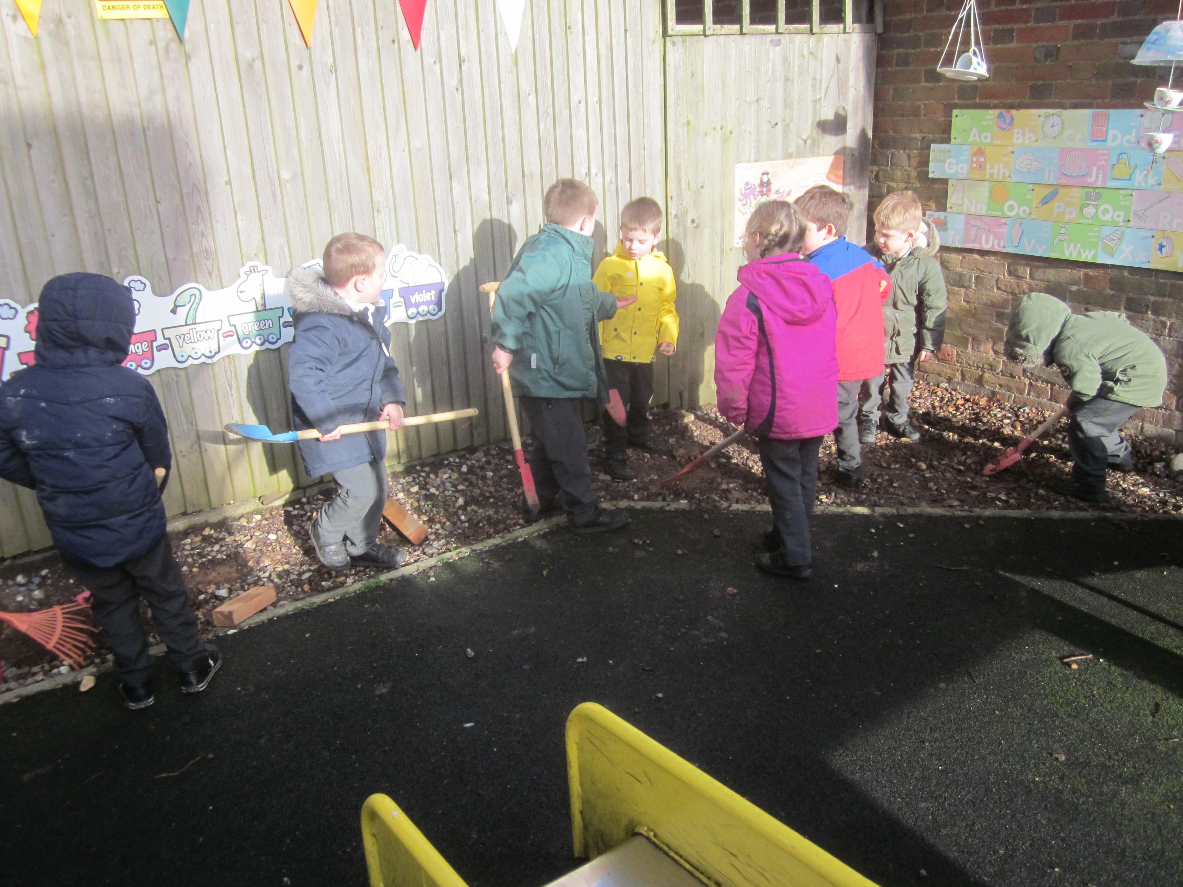 As well as lots of learning we have also had lots of fun. Check out the pictures of smiley, happy children investigating and discovering during our Child Initiated Time. Builder's is a favourite theme at the moment, with lots of wall building and mixing our 'cement' also involving lots of measuring and careful placing of bricks to make our walls really strong.