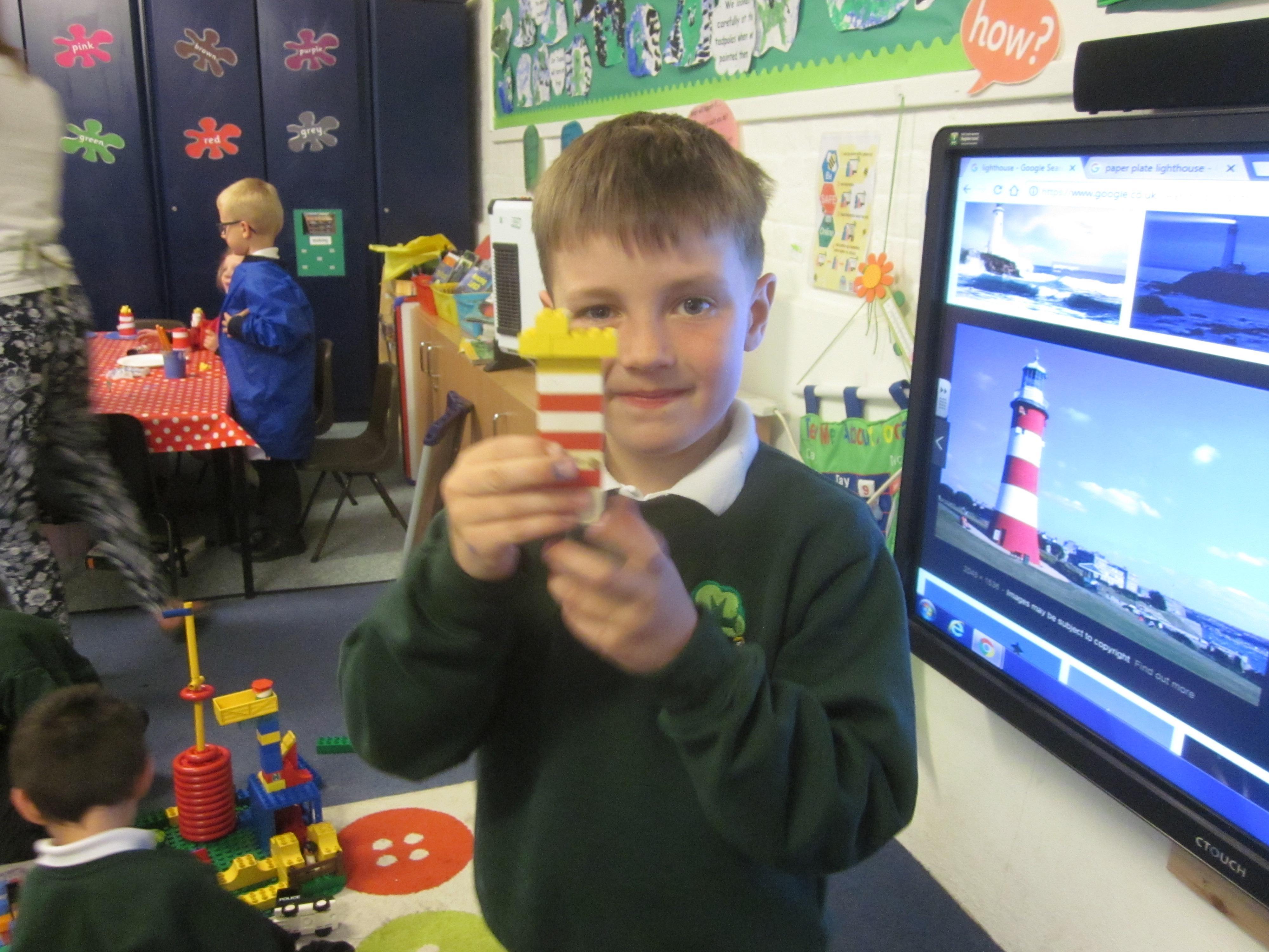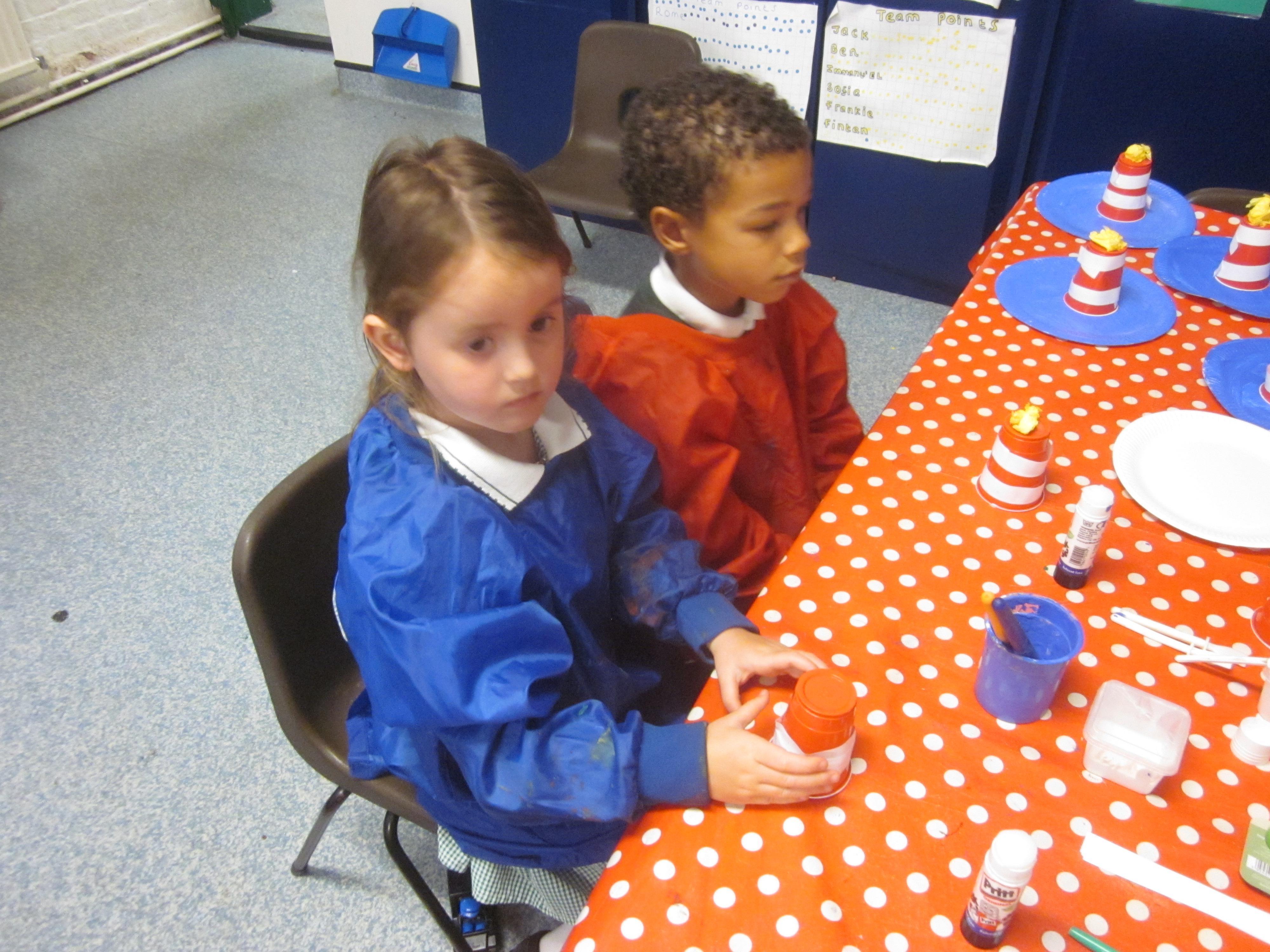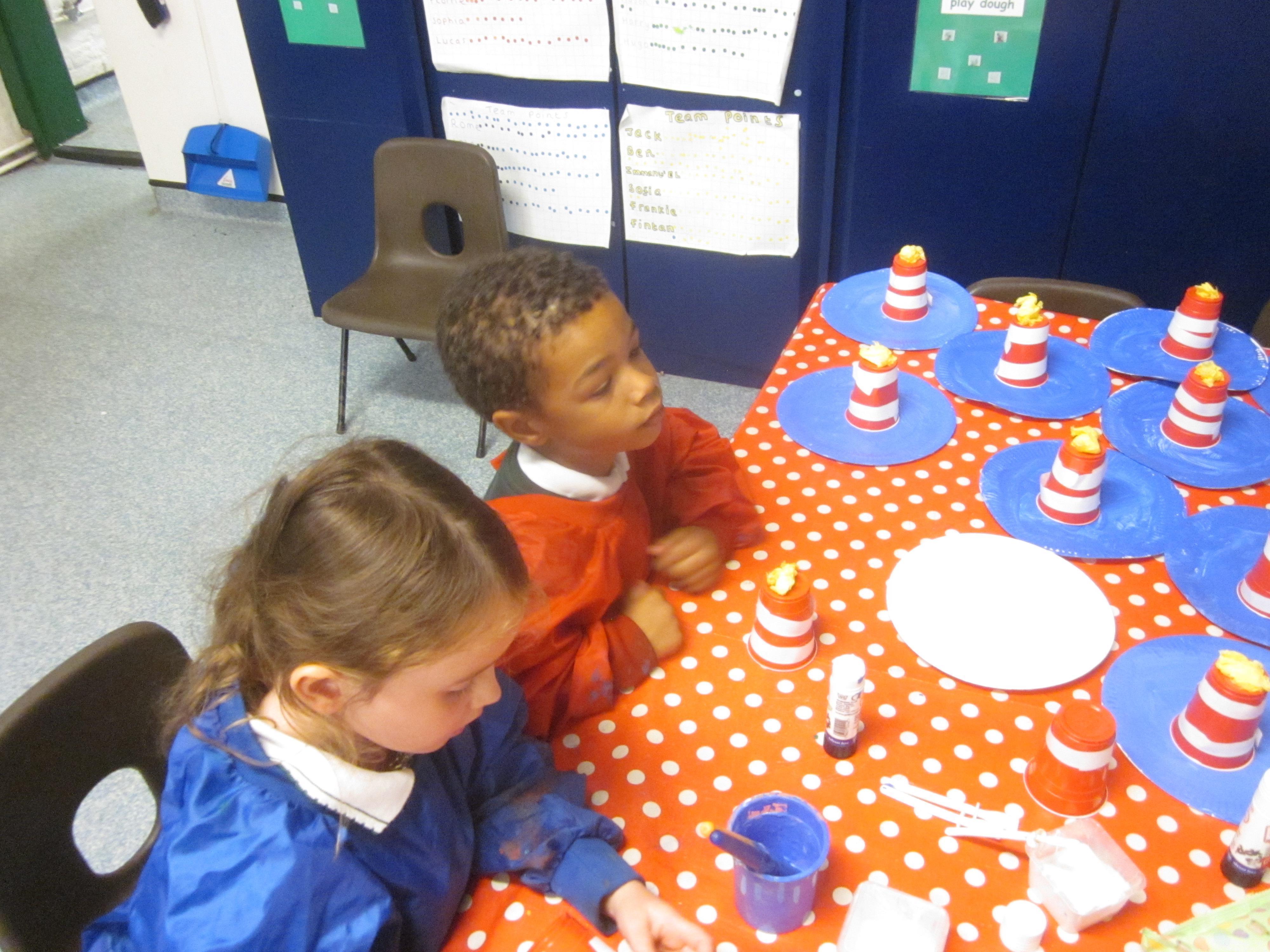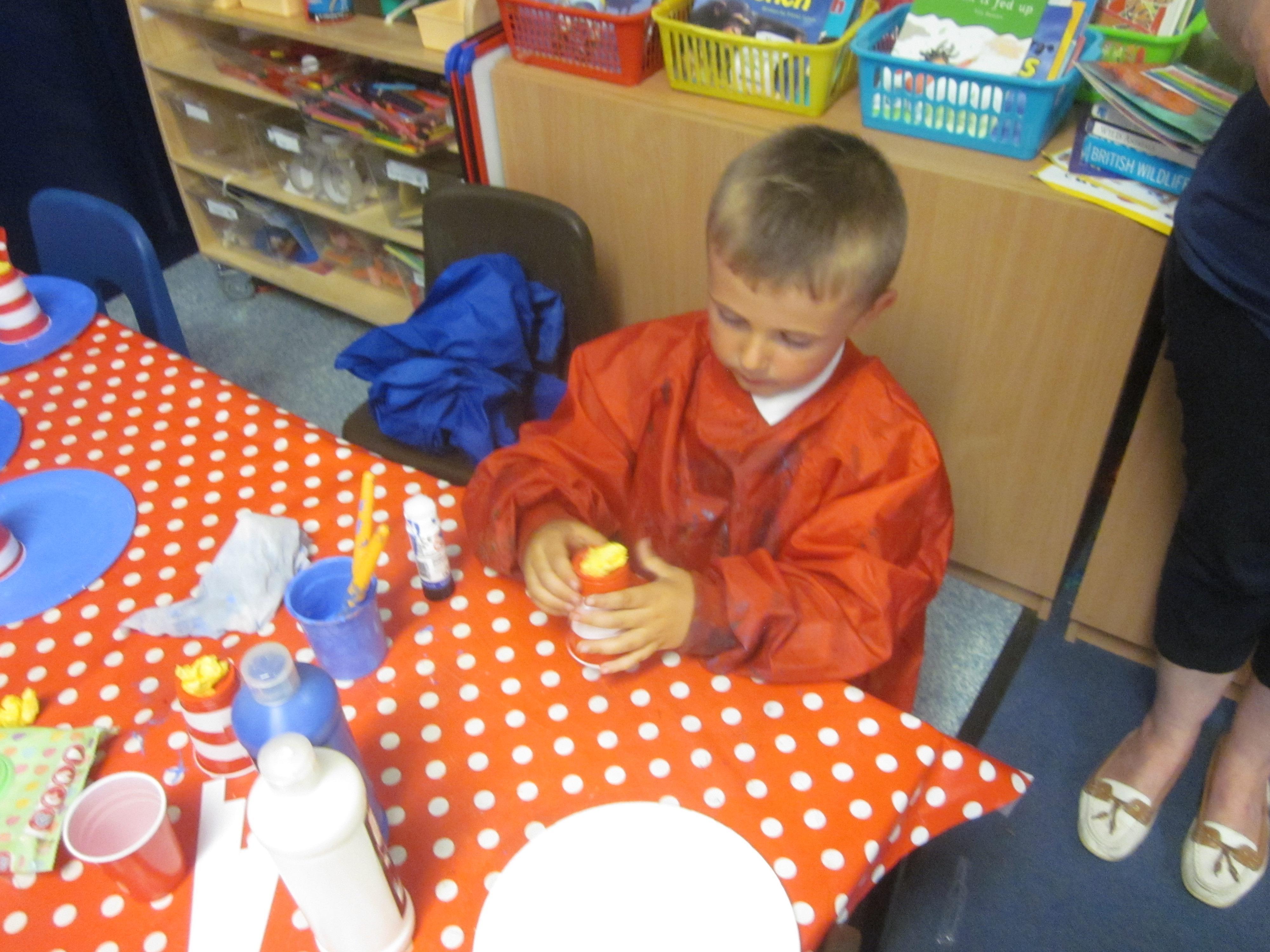 Our learning this week has been connected to the story ‘The Lighthouse Keeper’s Lunch’. We learnt all about Mr Grinling and his lovely lunches. We thought about our favourite foods to put in a healthy lunch box. In maths we are really trying to consolidate our numbers within 20, lots of the children can count to 20, but counting out to a given number and knowing 1 more or less is proving a bit of a challenge. It was all hands on deck when it came to making lighthouses. We made them using a given criteria, our lighthouses needed to be tall and with a repeating pattern. We did very well.