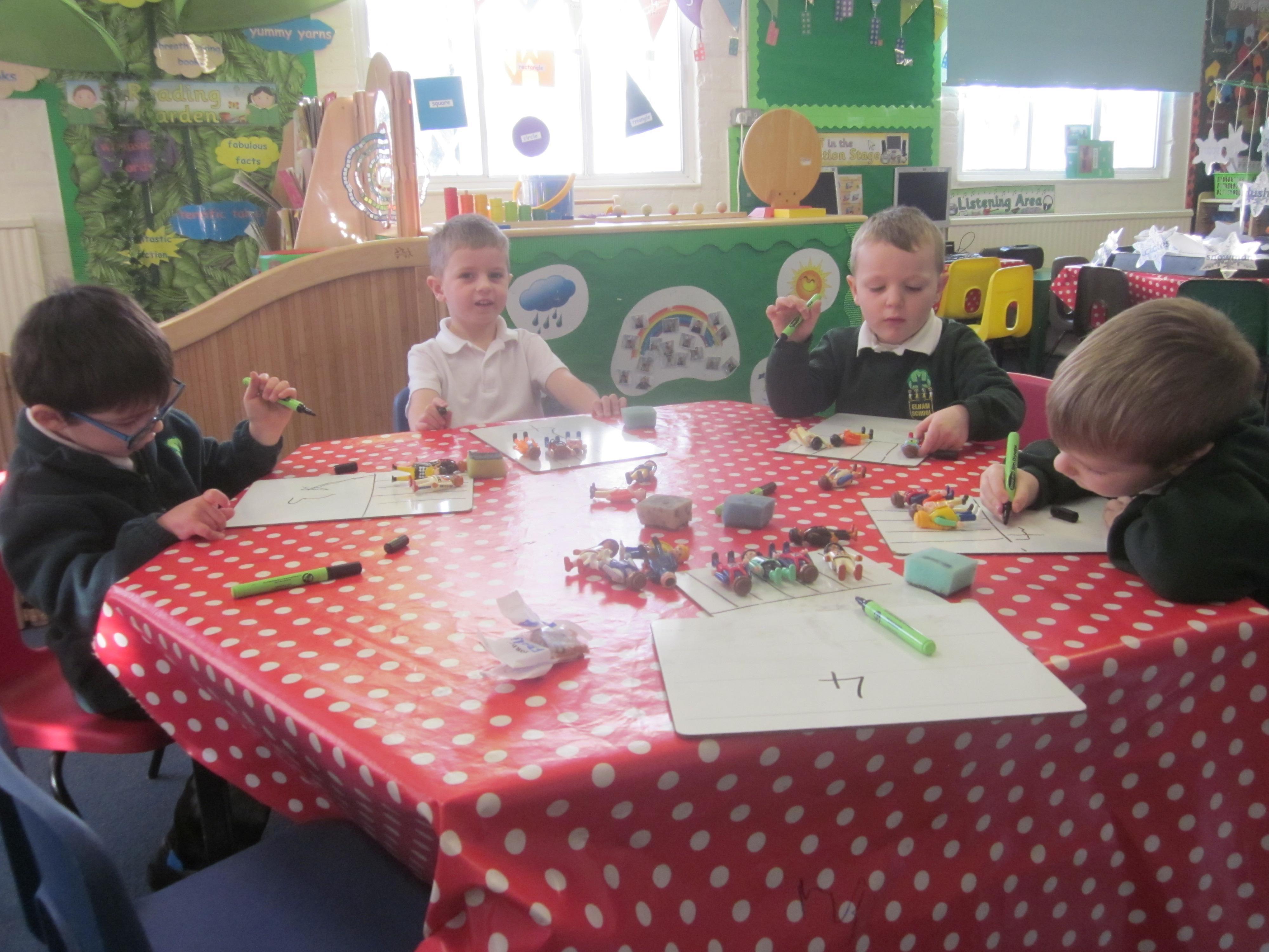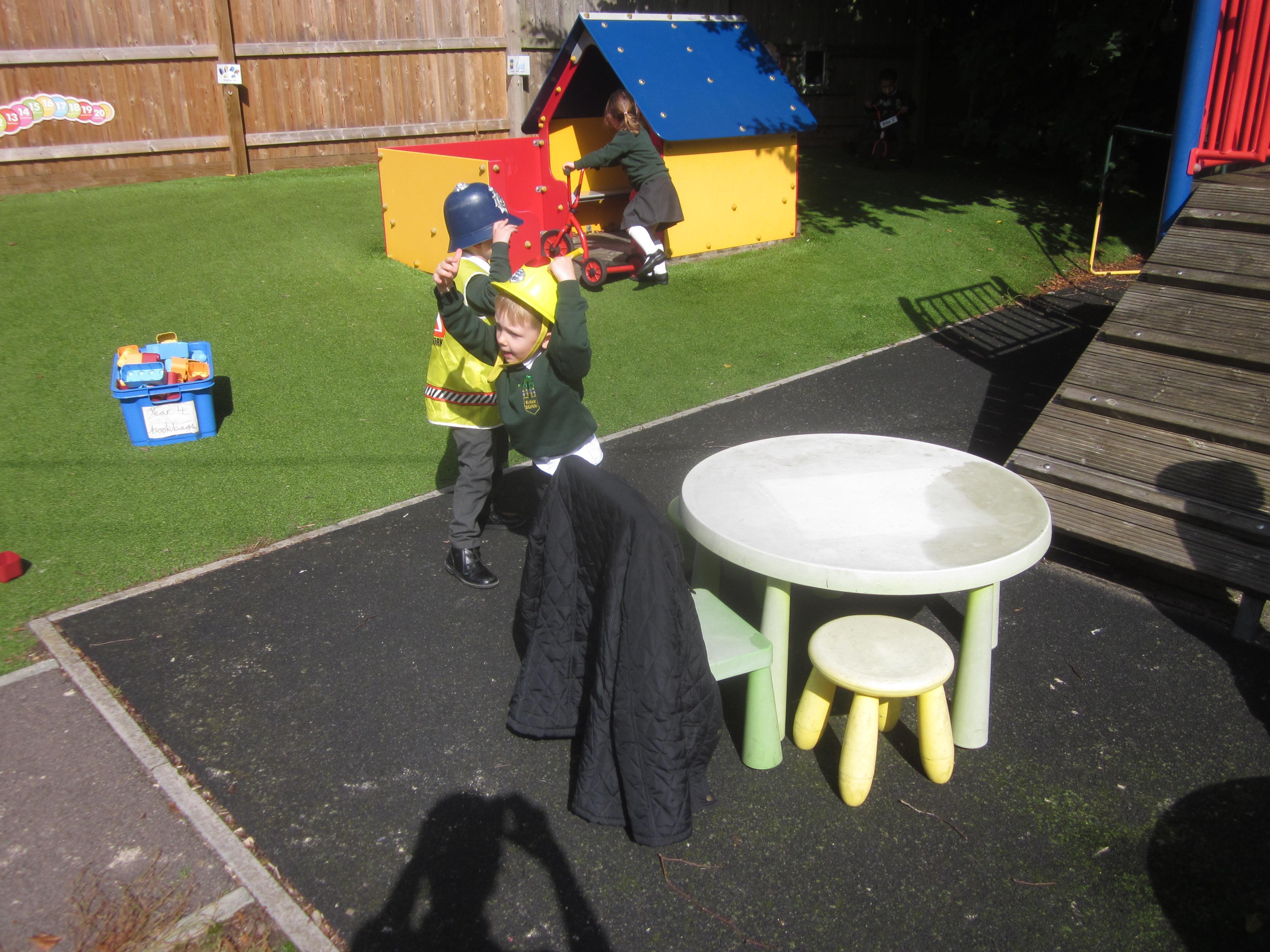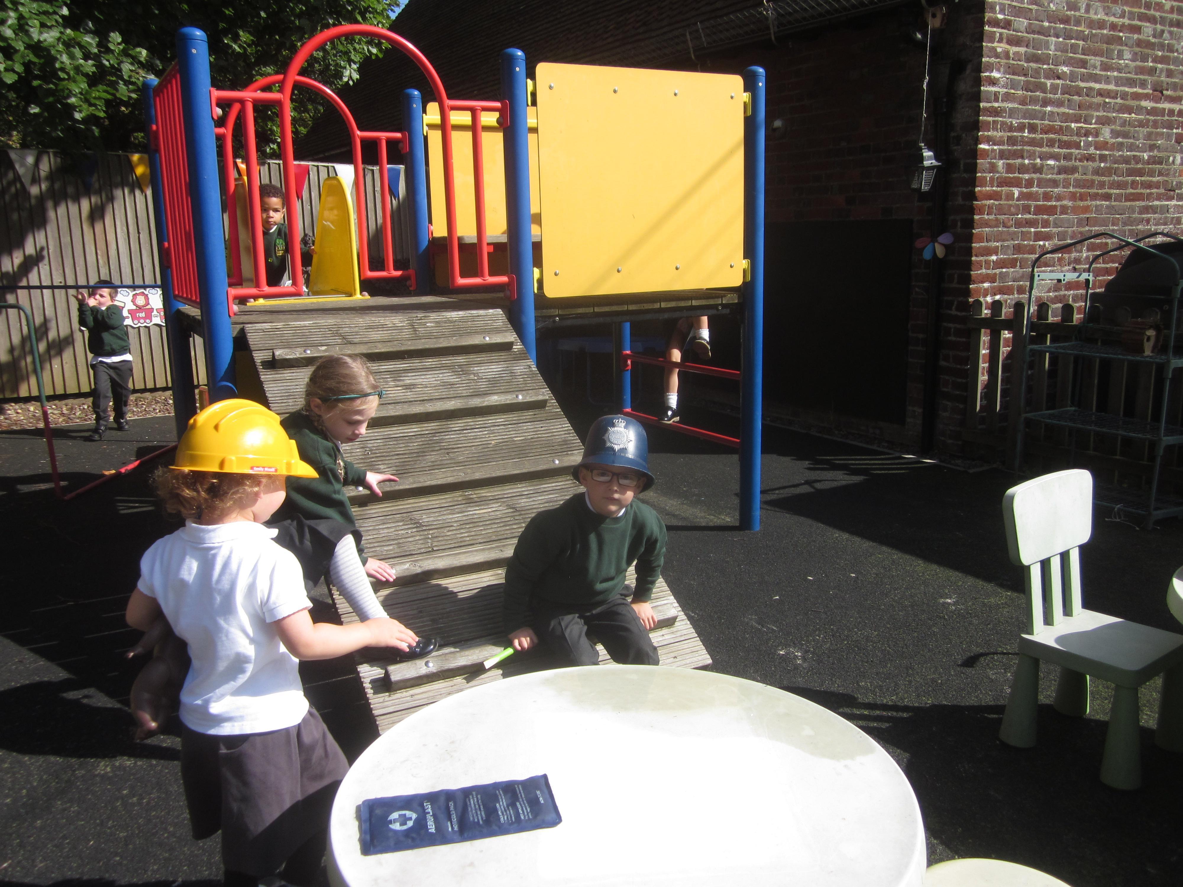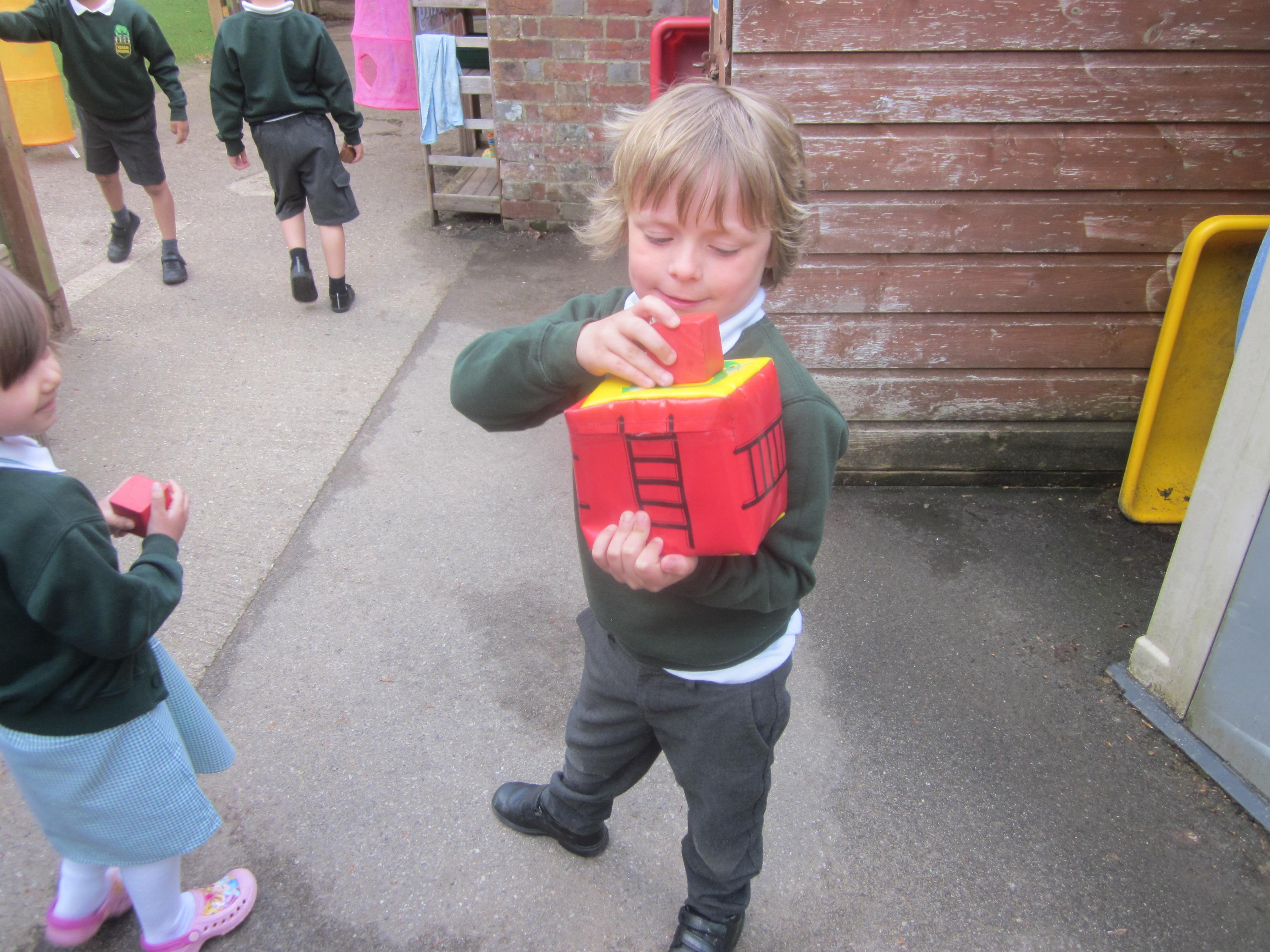We have learnt about the fire service this week and thought about the good work they do. We had a practice fire drill so that the children know what to do when we have a real fire drill. They were all very sensible. In Maths we added one more using a fireman's ladder and in English we wrote about what the fire service do.