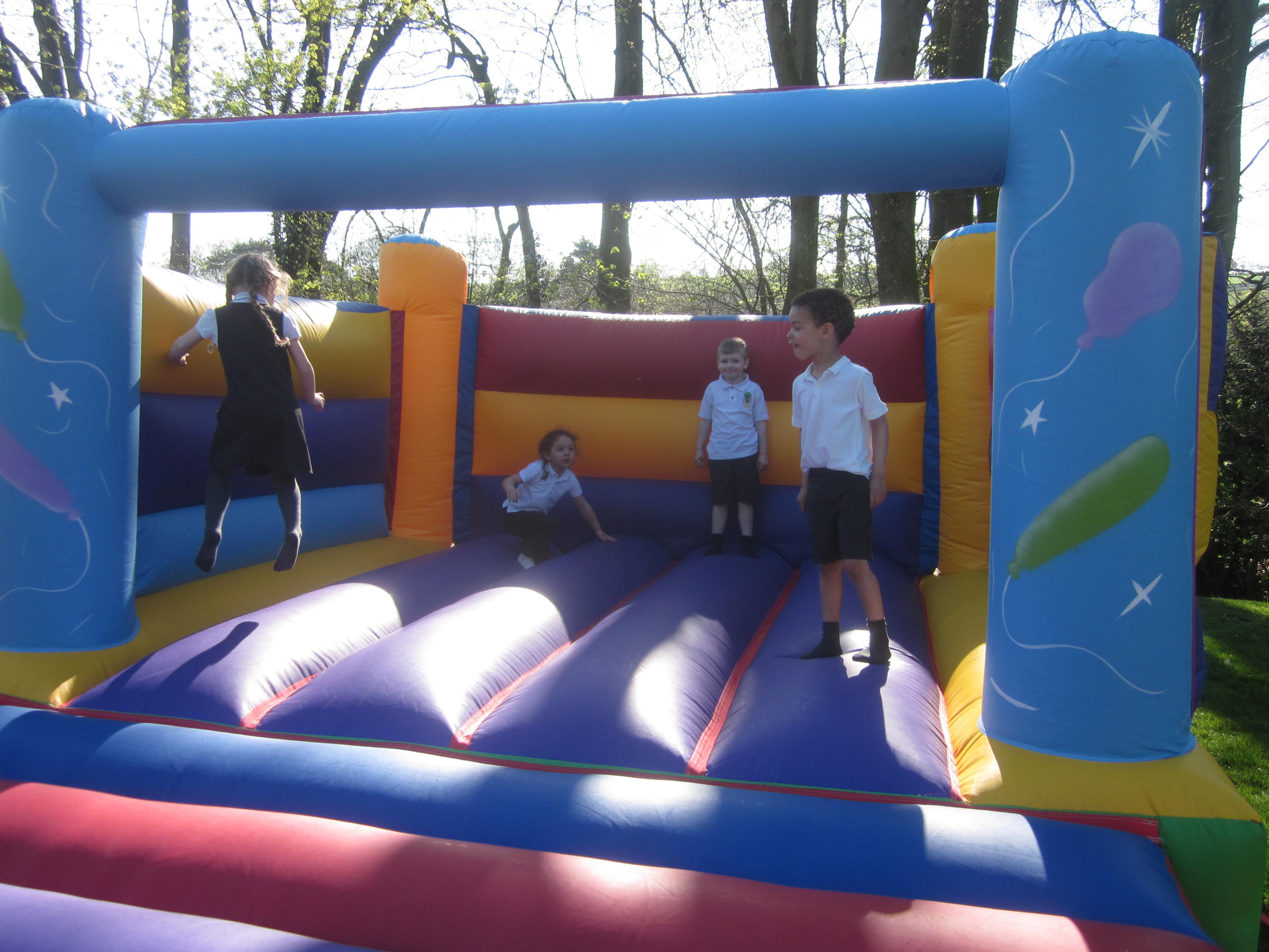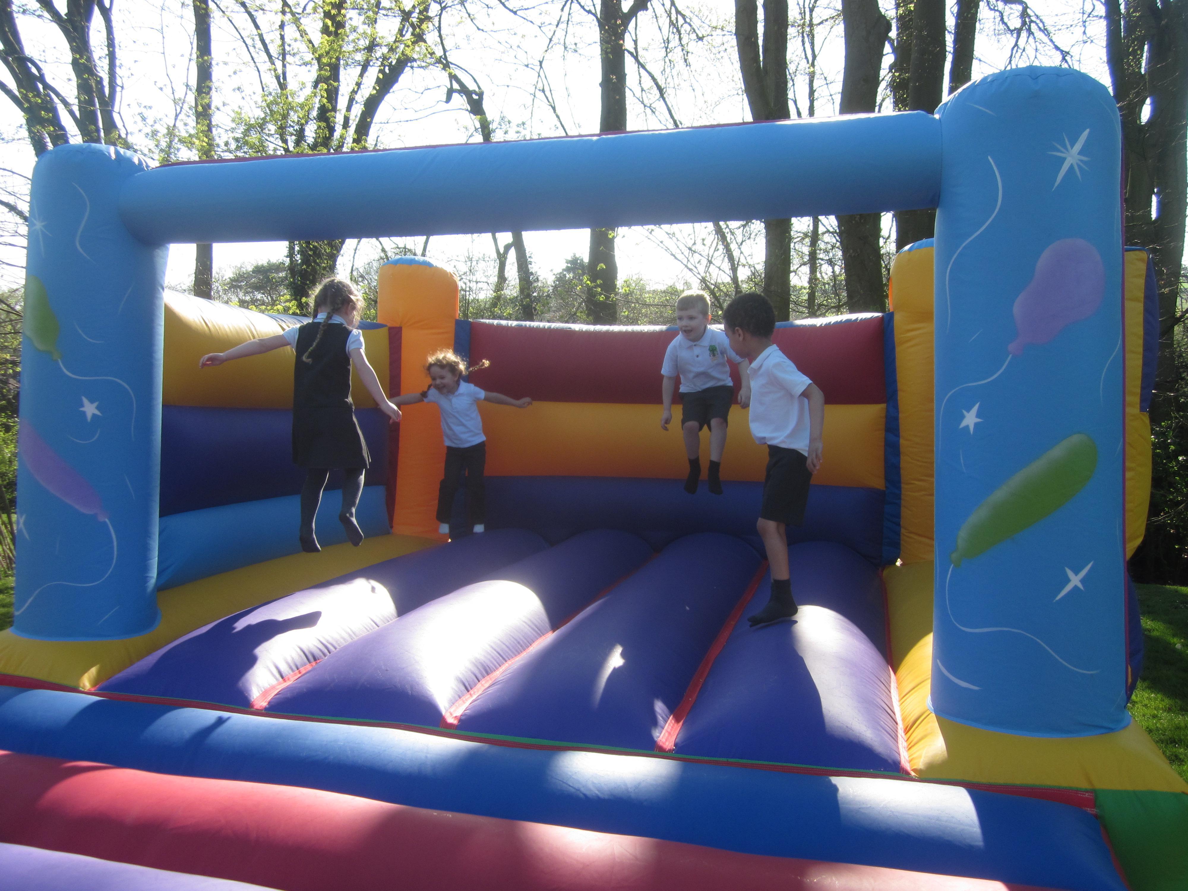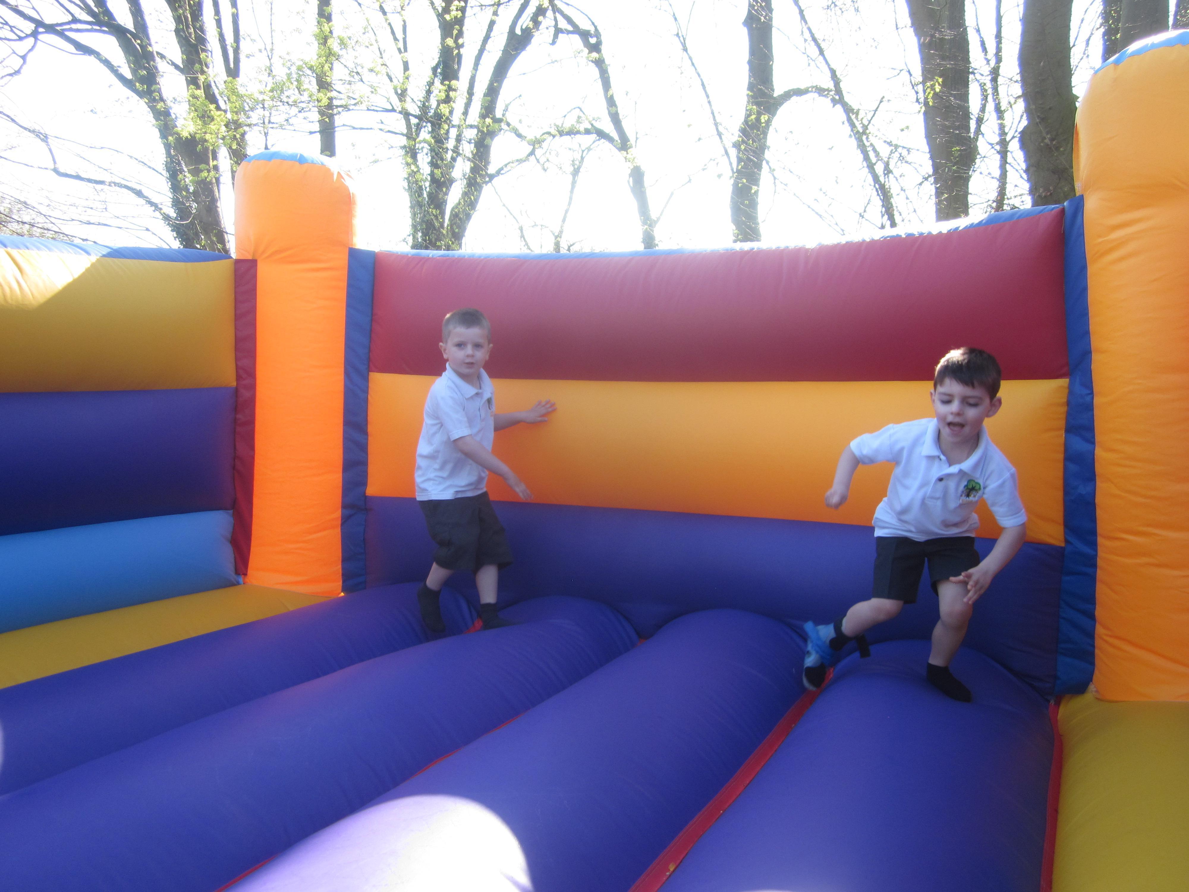 Welcome back to all of the children for term 5. This term our learning will be mostly about growth and change. We have started off the term learning about the season of Spring. We went for a walk around the school grounds, ask your child if they can tell you what we saw and heard. It has been lovely to get outside and as you can see from the pictures we have been learning through our play. Painting with water is great for fine motor skills and digging and riding bikes is good for our balance and gross motor skills. We are trying to make sure we know our numbers to 20 now. Counting, ordering and recognising are what we will be concentrating on this term as well as writing a sentence on our own. We all had a super time taking part in the sponsored bounce.