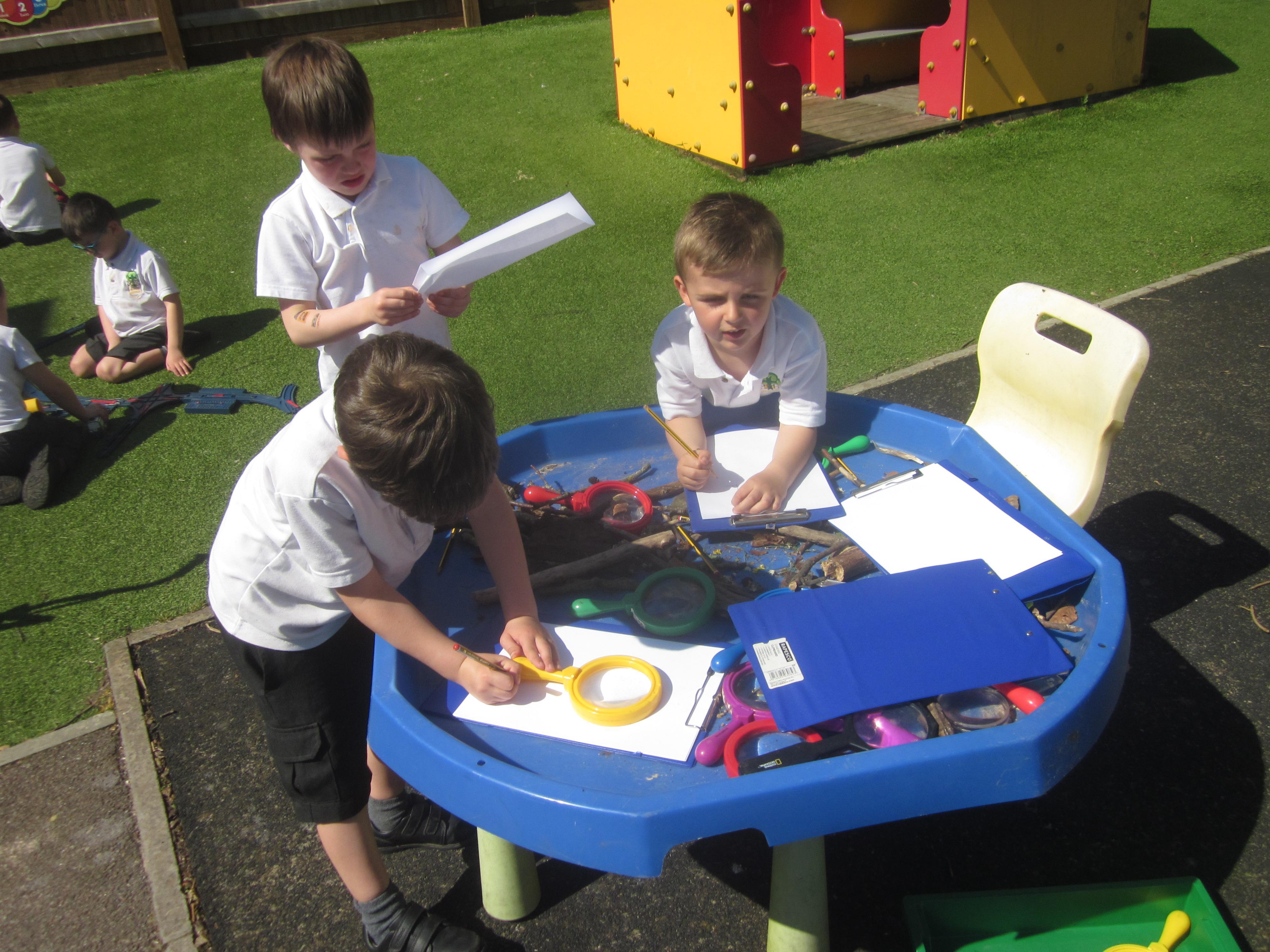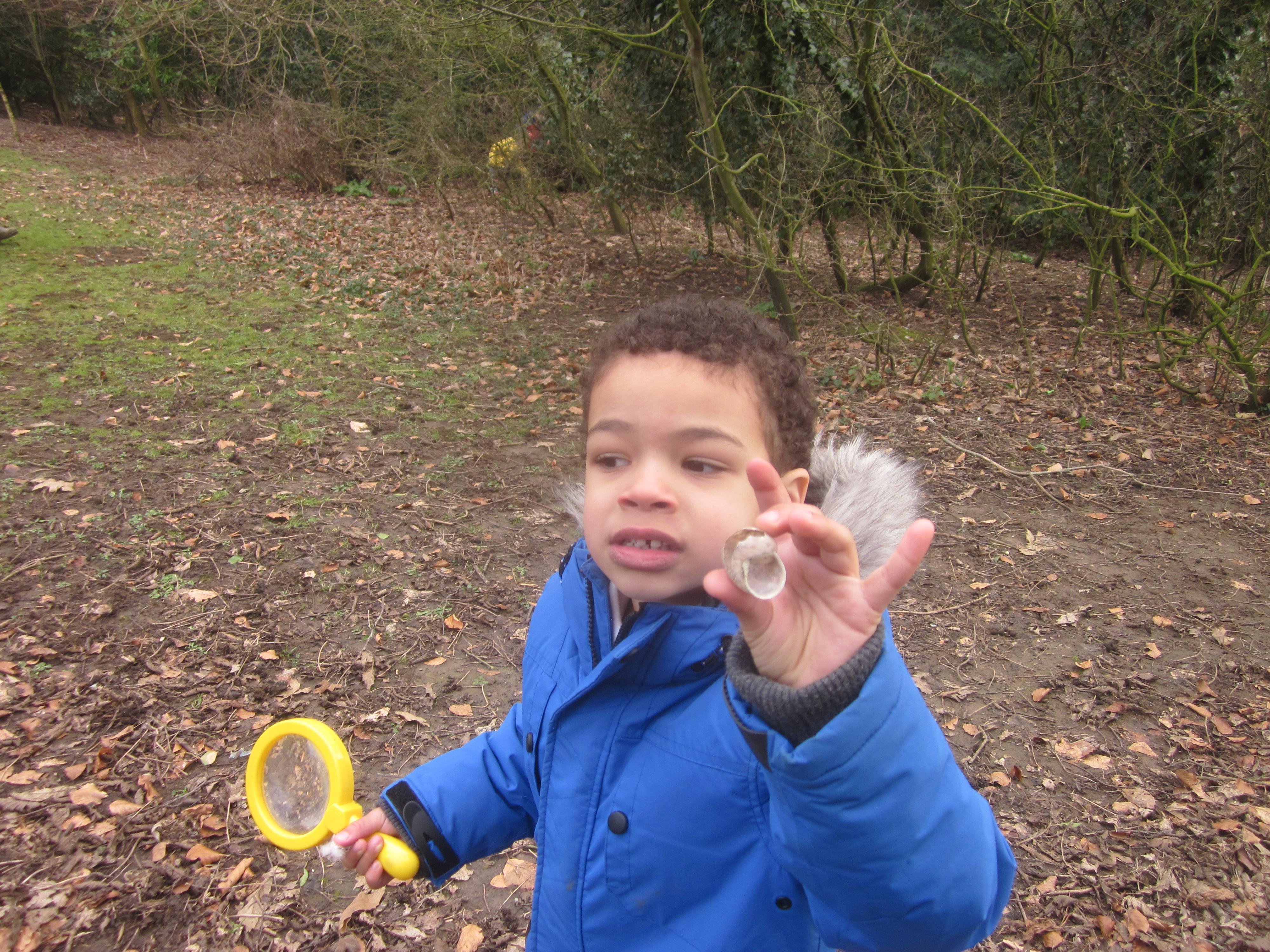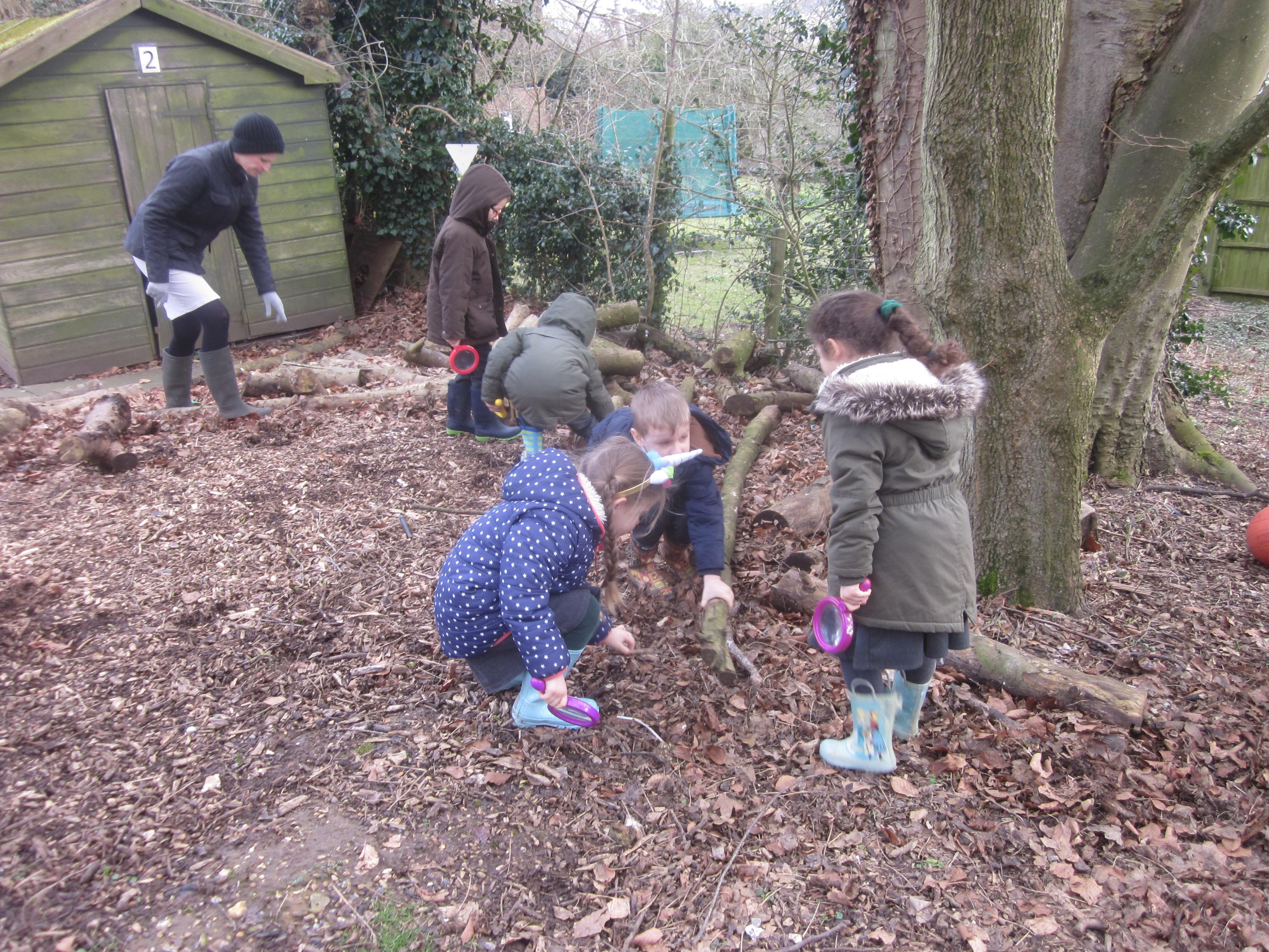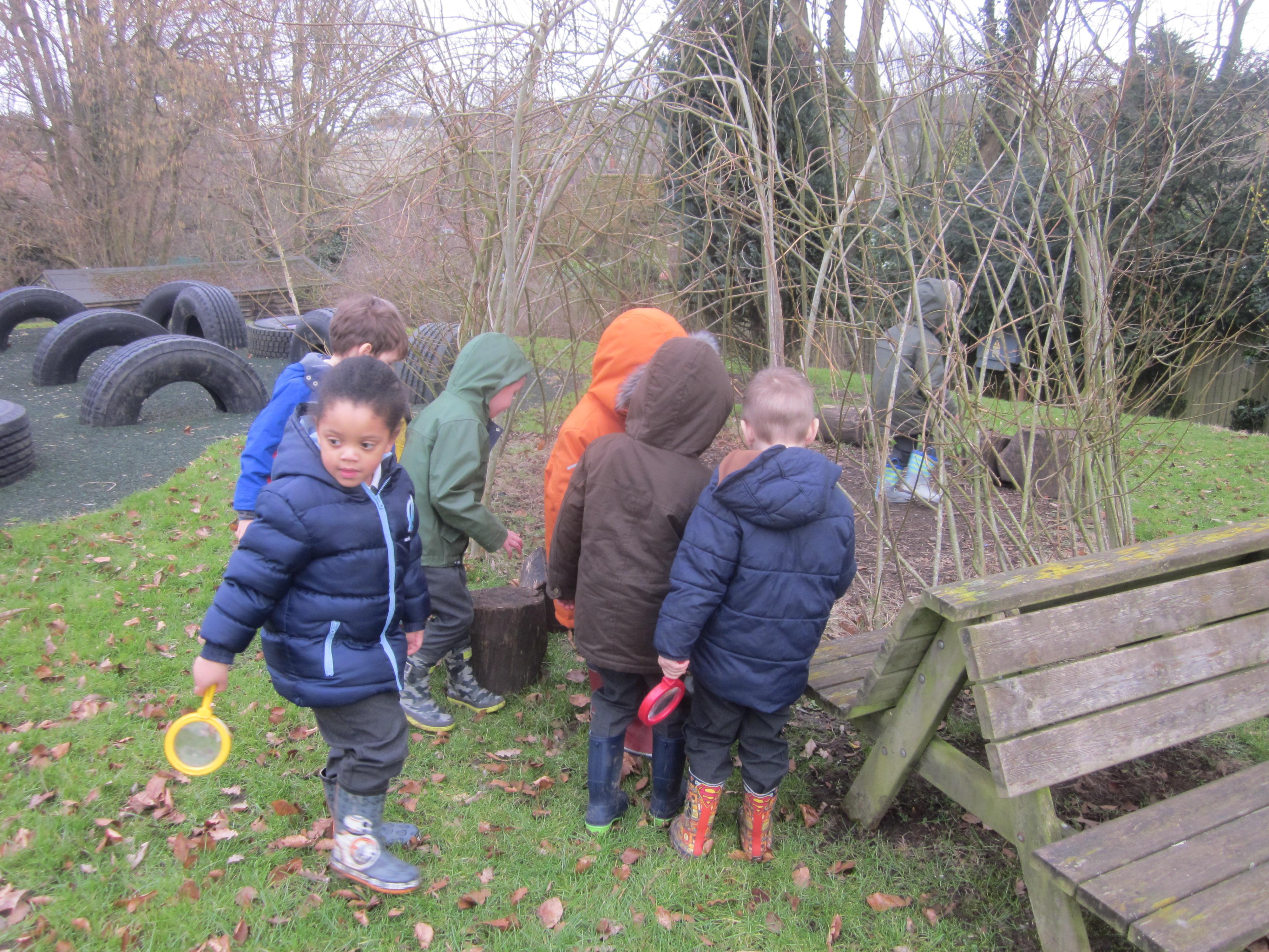 We spent a lovely morning on Friday discovering our new Forest School area. The children used a variety of resources investigating and identifying plants and creatures.