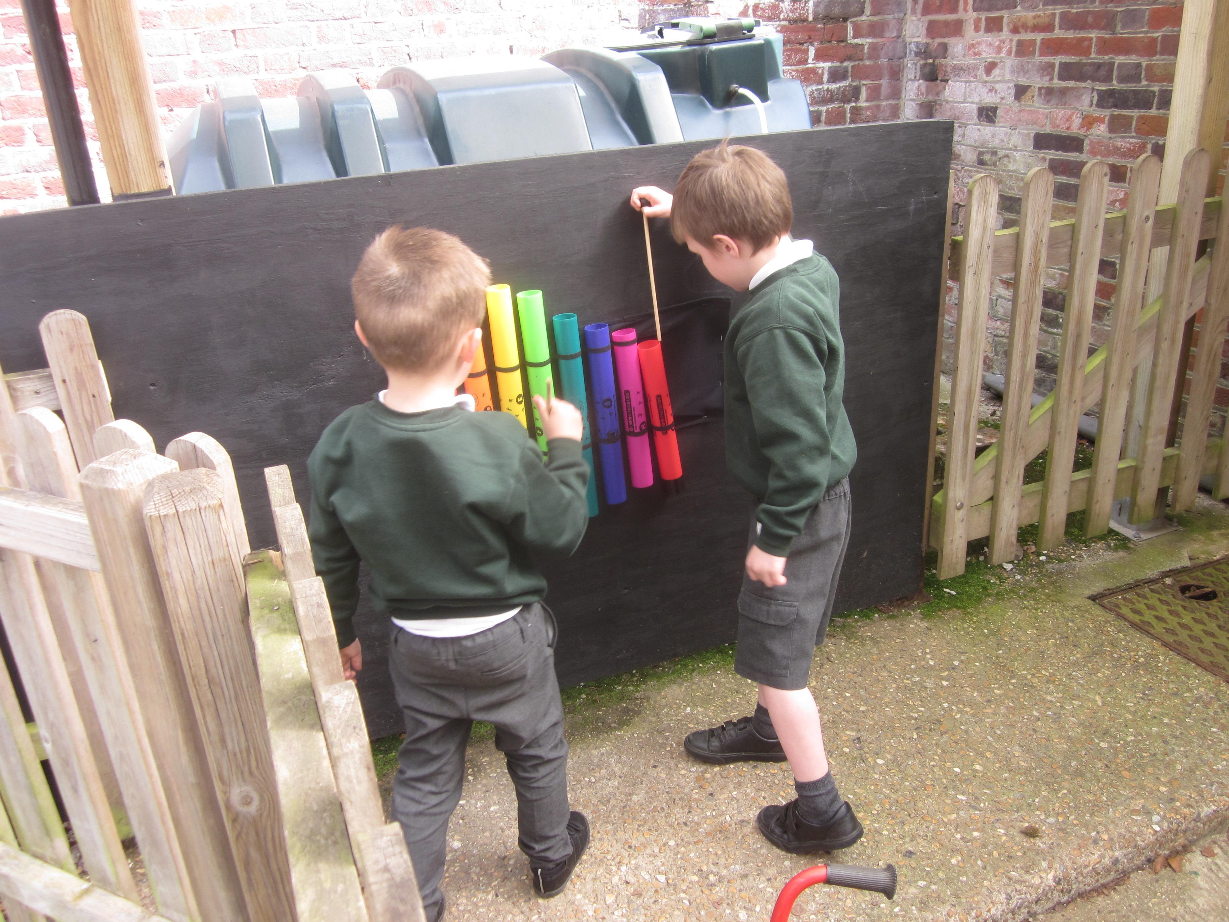 We are learning to use our listening skills. We listened to our class instruments and matched them to the sounds they made.
