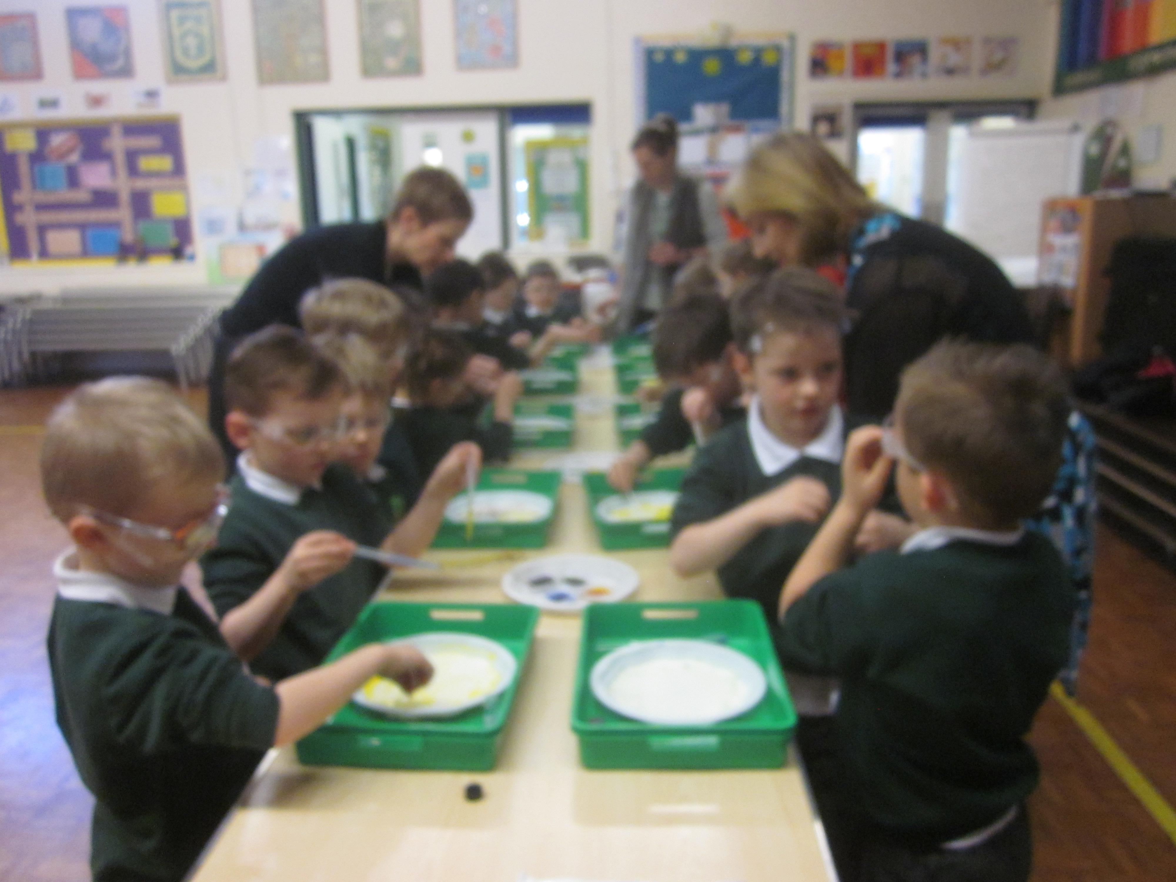 What a busy week! We have been lucky enough to have been involved in Science week this week. On Monday we did lots of experiments to do with animals. Tuesday we learnt about electricity, Wednesday we experimented with colour changing milk.