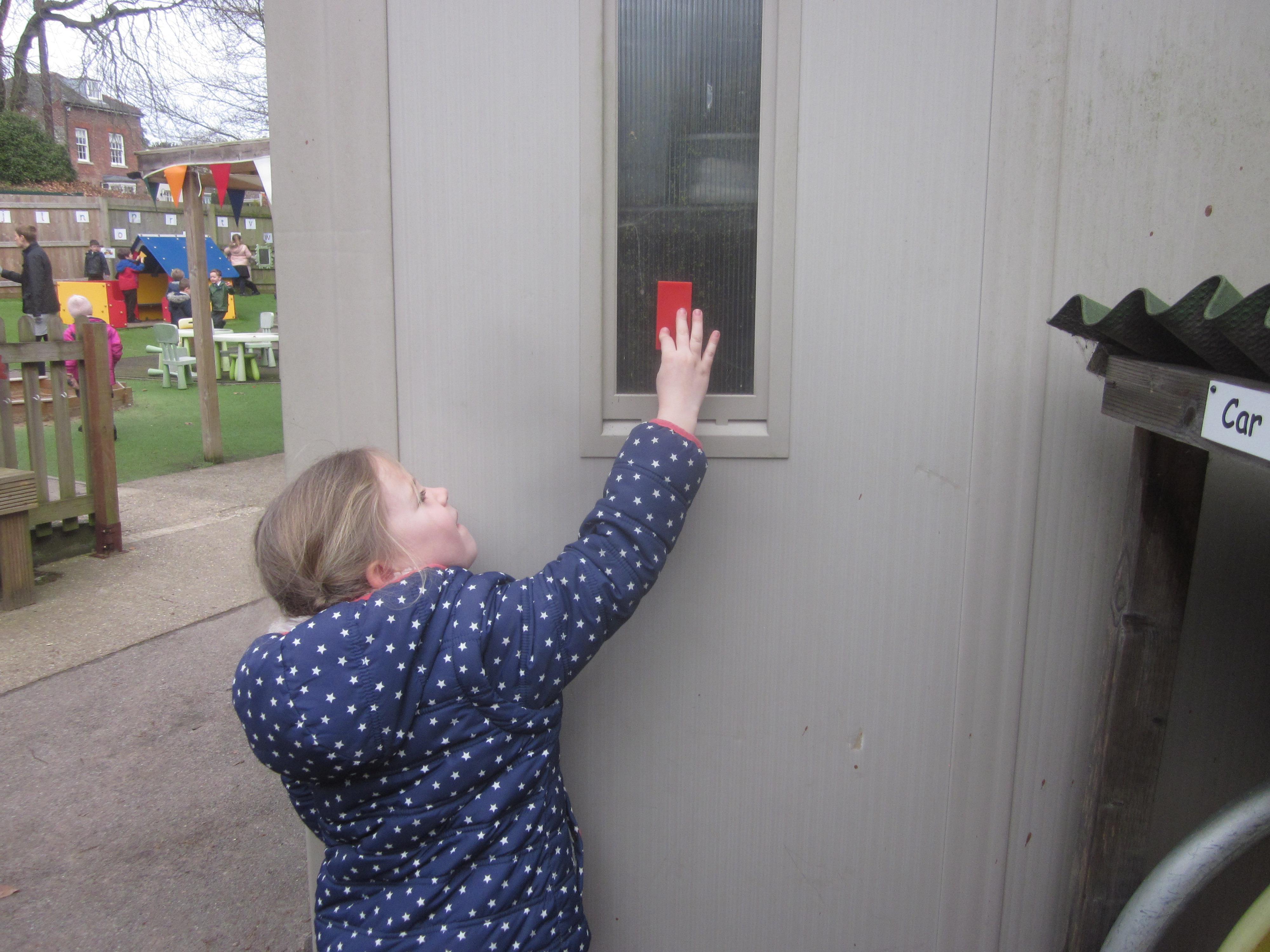 We looked at shape this week for our maths. We found shapes in the school environment. See if your child can find a circle, square, triangle, or rectangle if you are out over the weekend. How many sides and corners do they have? What other shapes can they find?
