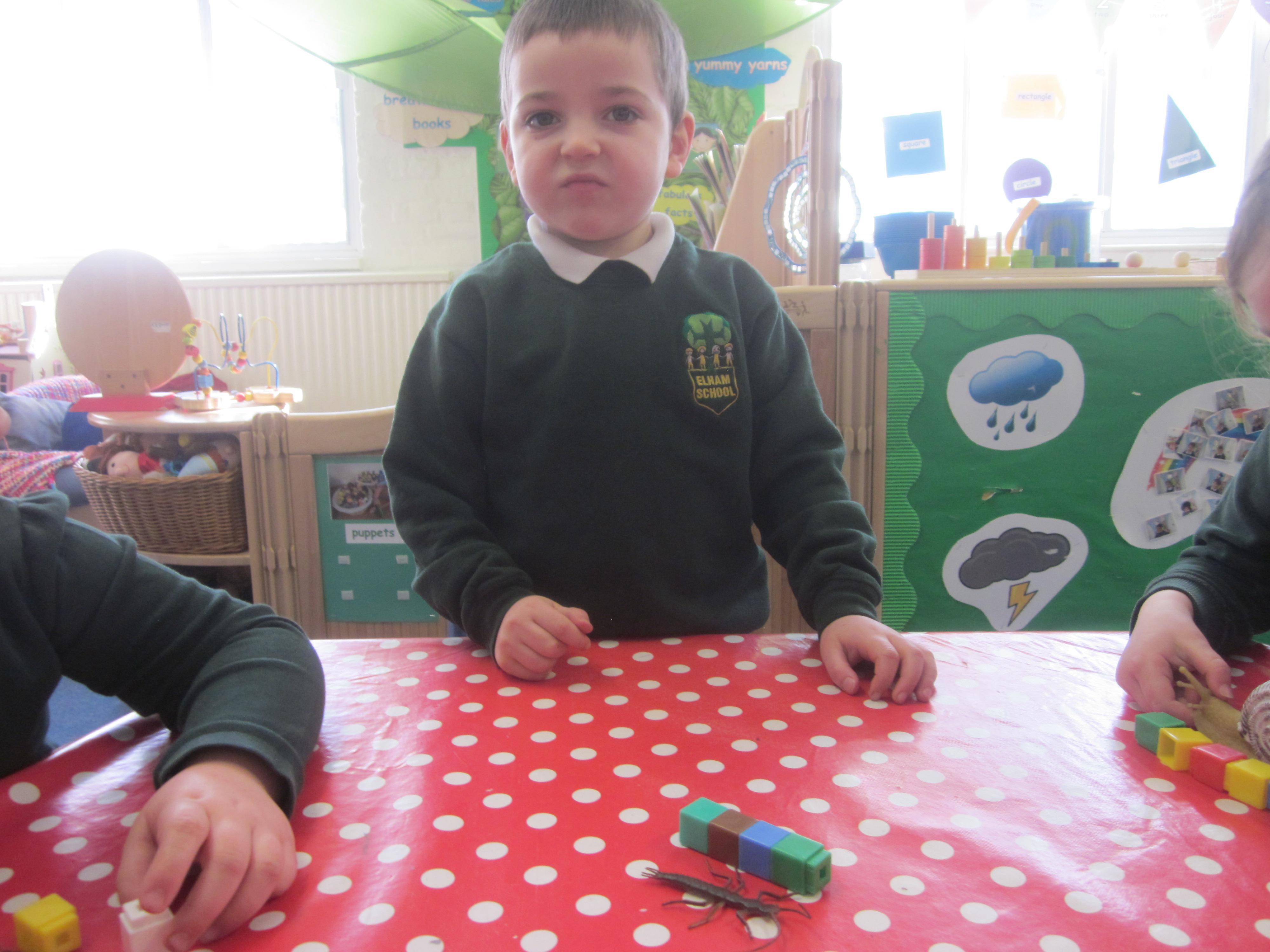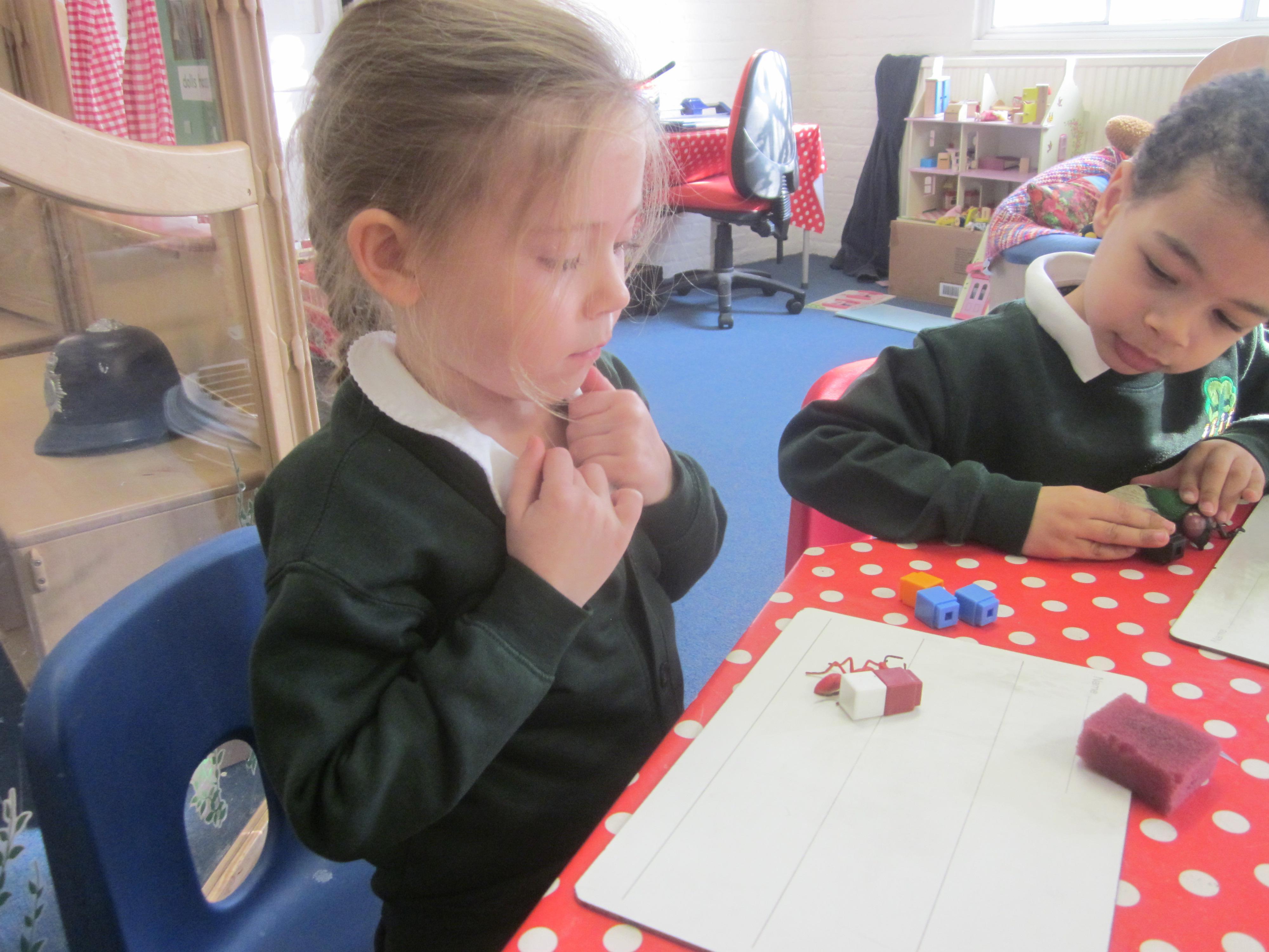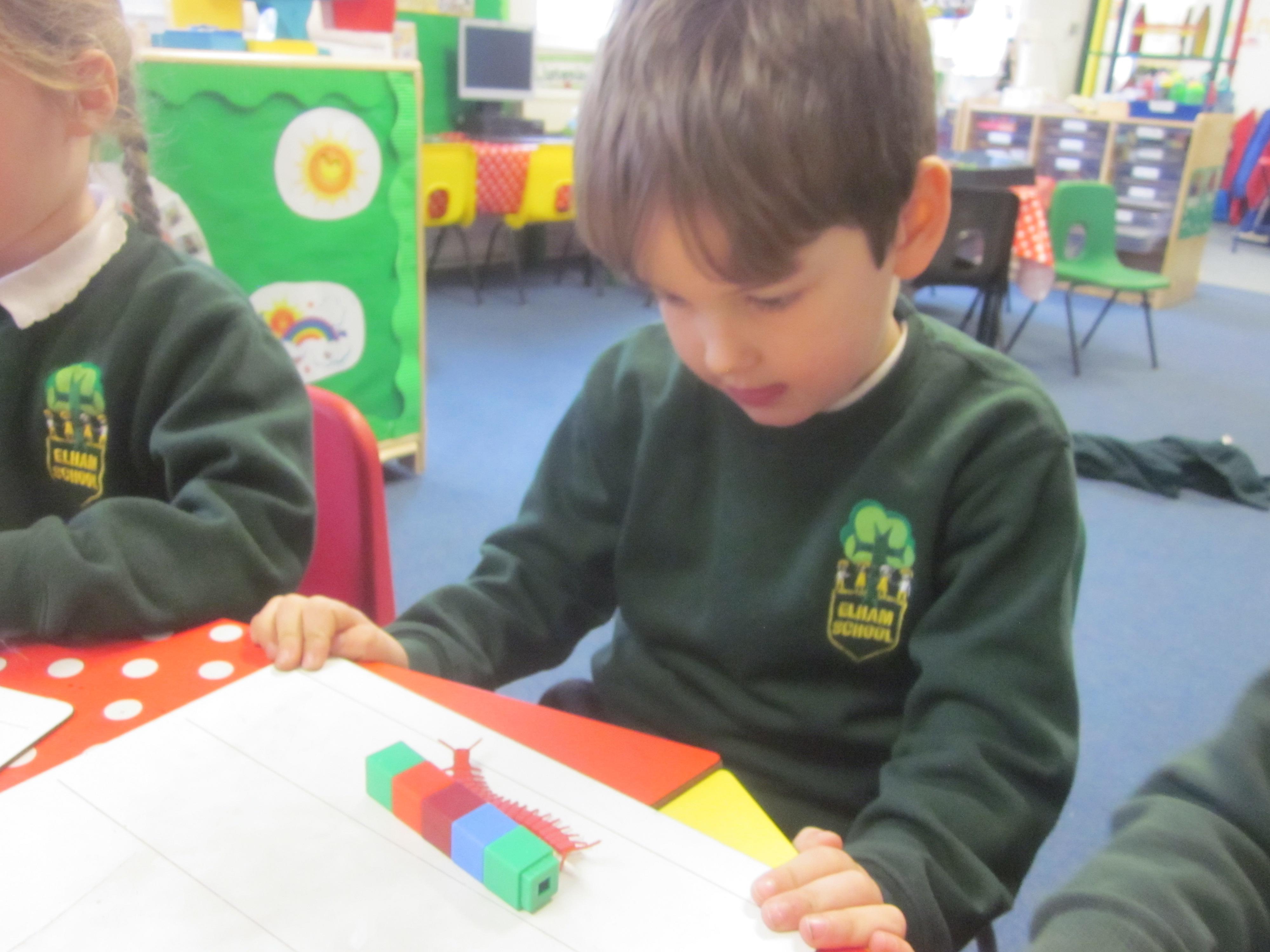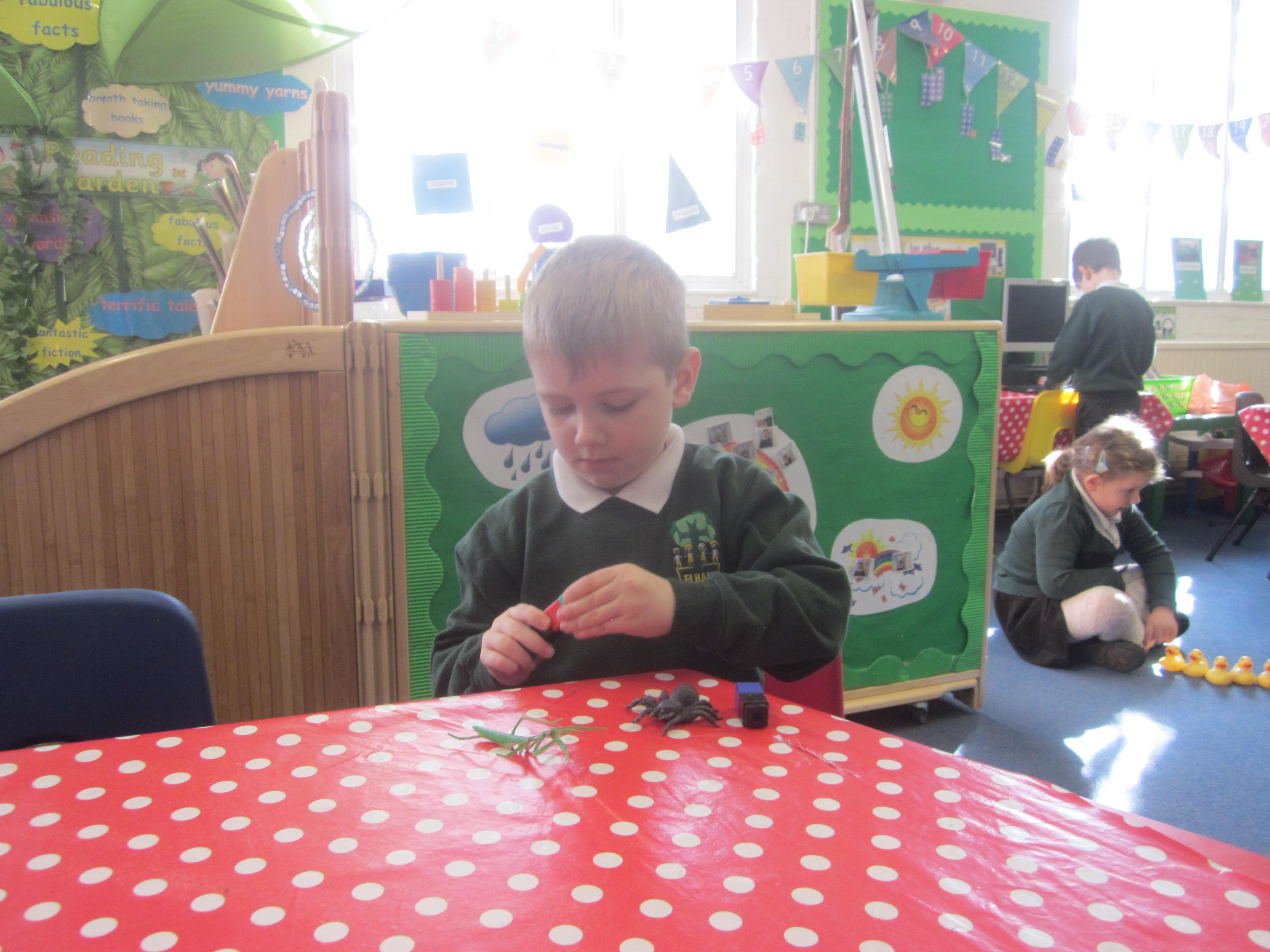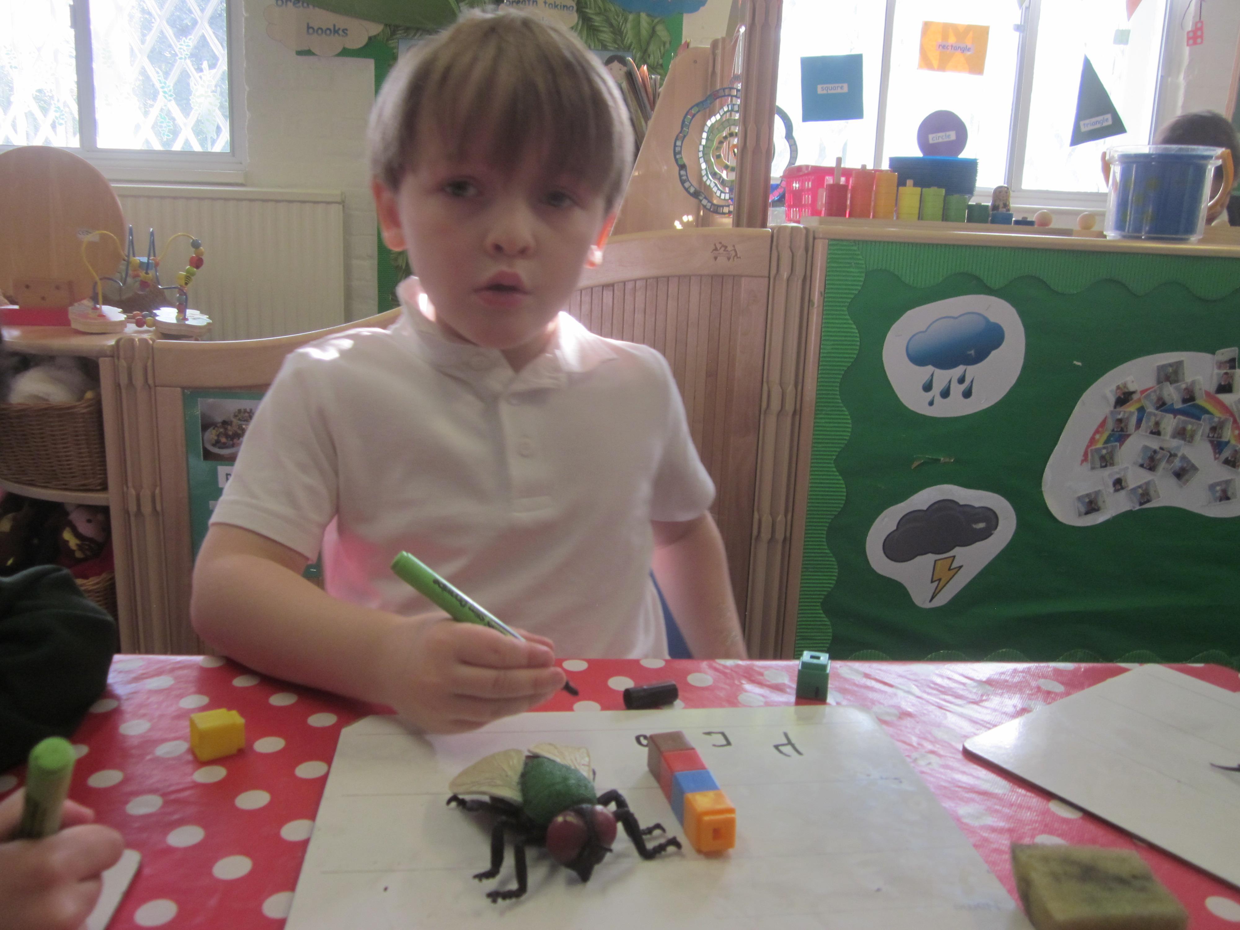 Our learning this week has been all about mini beasts. We started off the week with our English learning and thought about words to describe mini beasts, adjectives or as we like to say in Acorn Class WOW! words. These have made our writing more interesting and when looking at mini beasts we have been able to say they have 'long legs' or 'hard shell. Our maths learning was all about measuring and using the language longer and shorter. We also learnt that to measure accurately we needed to use a standard unit of measure. We began to record our findings on whiteboards. Our favourite activity was our mini beast hunt, although we didn't find many. Maybe it was a bit cold. We are going to try again in a couple of months and compare our findings.