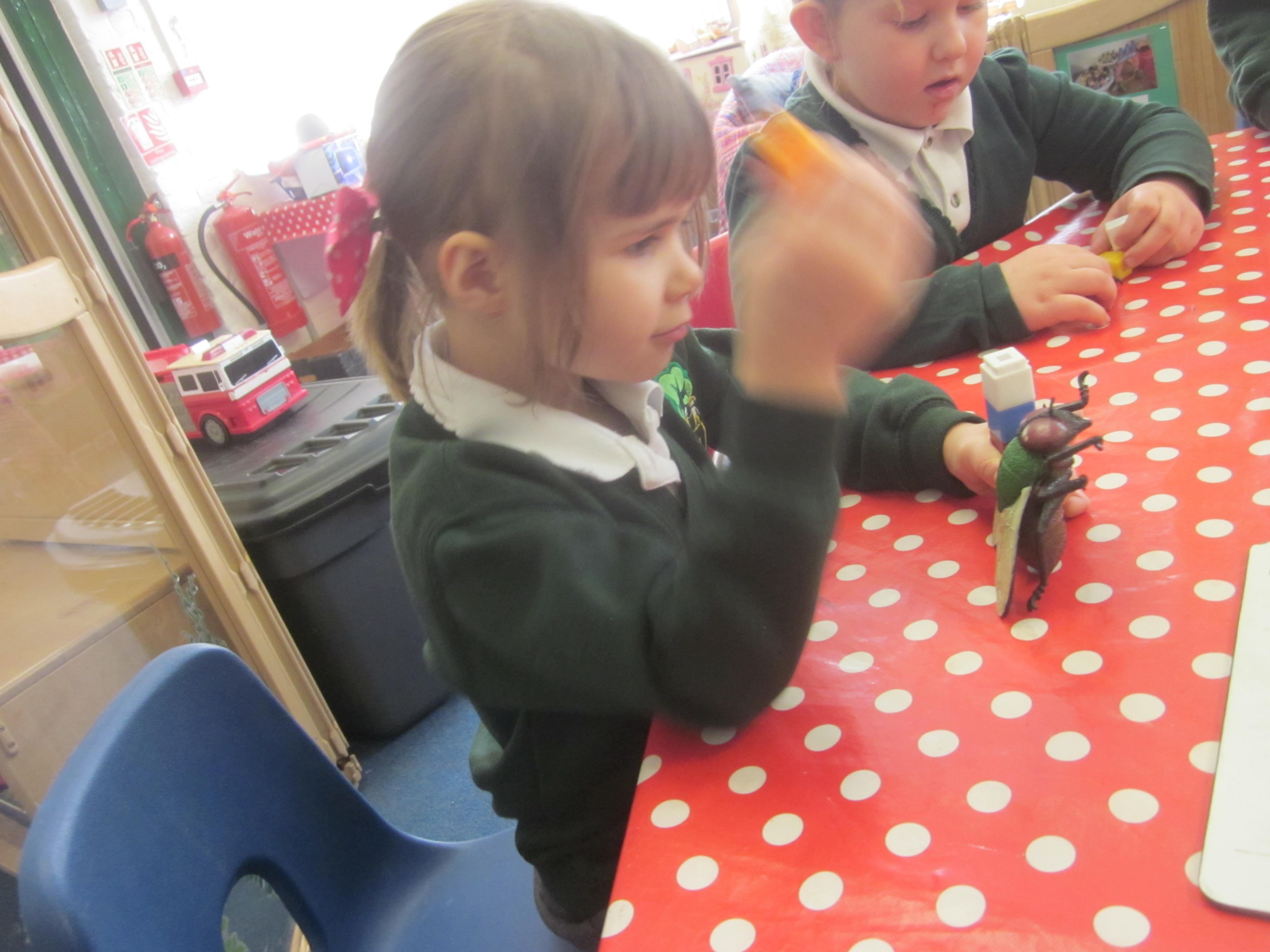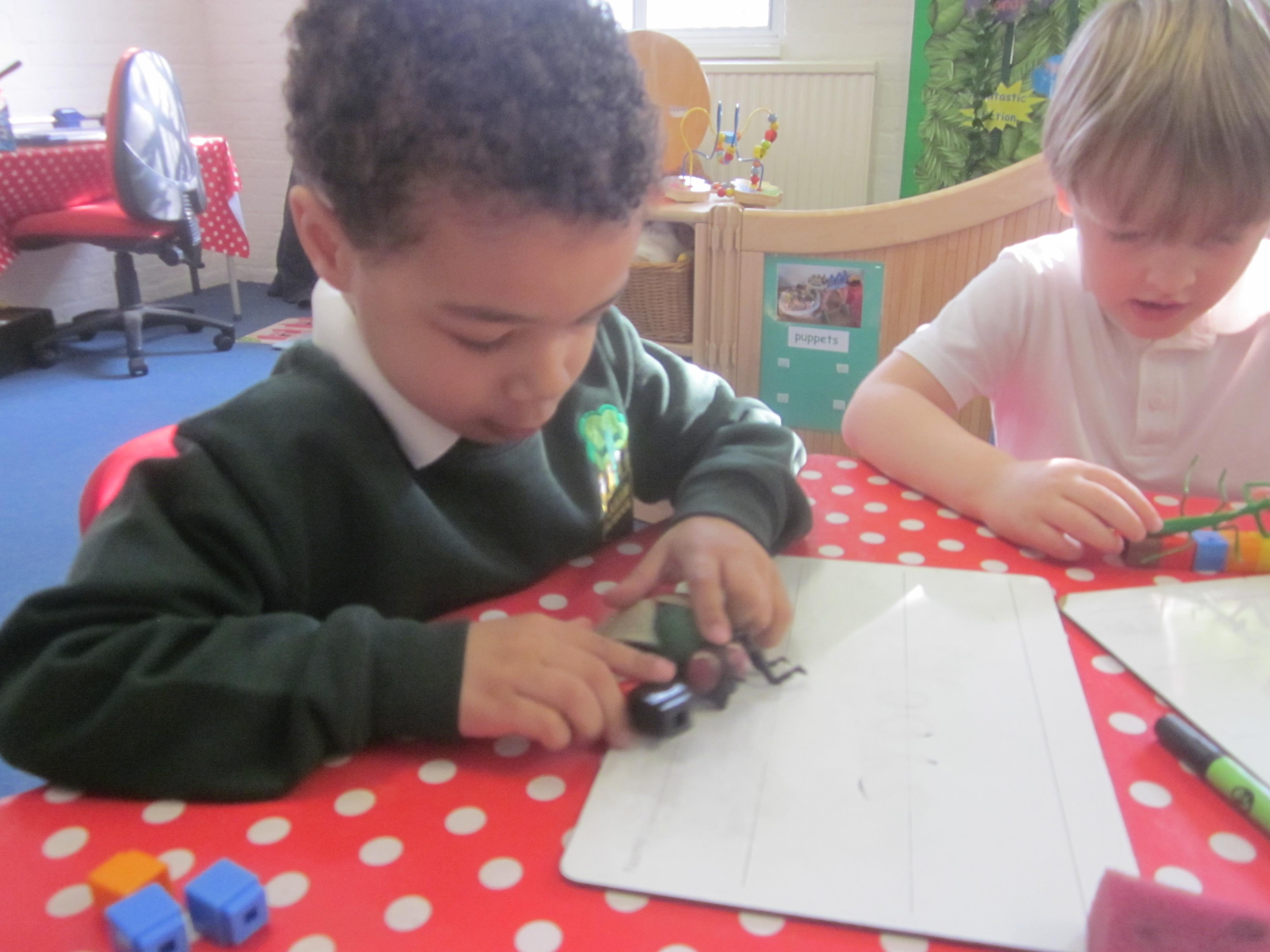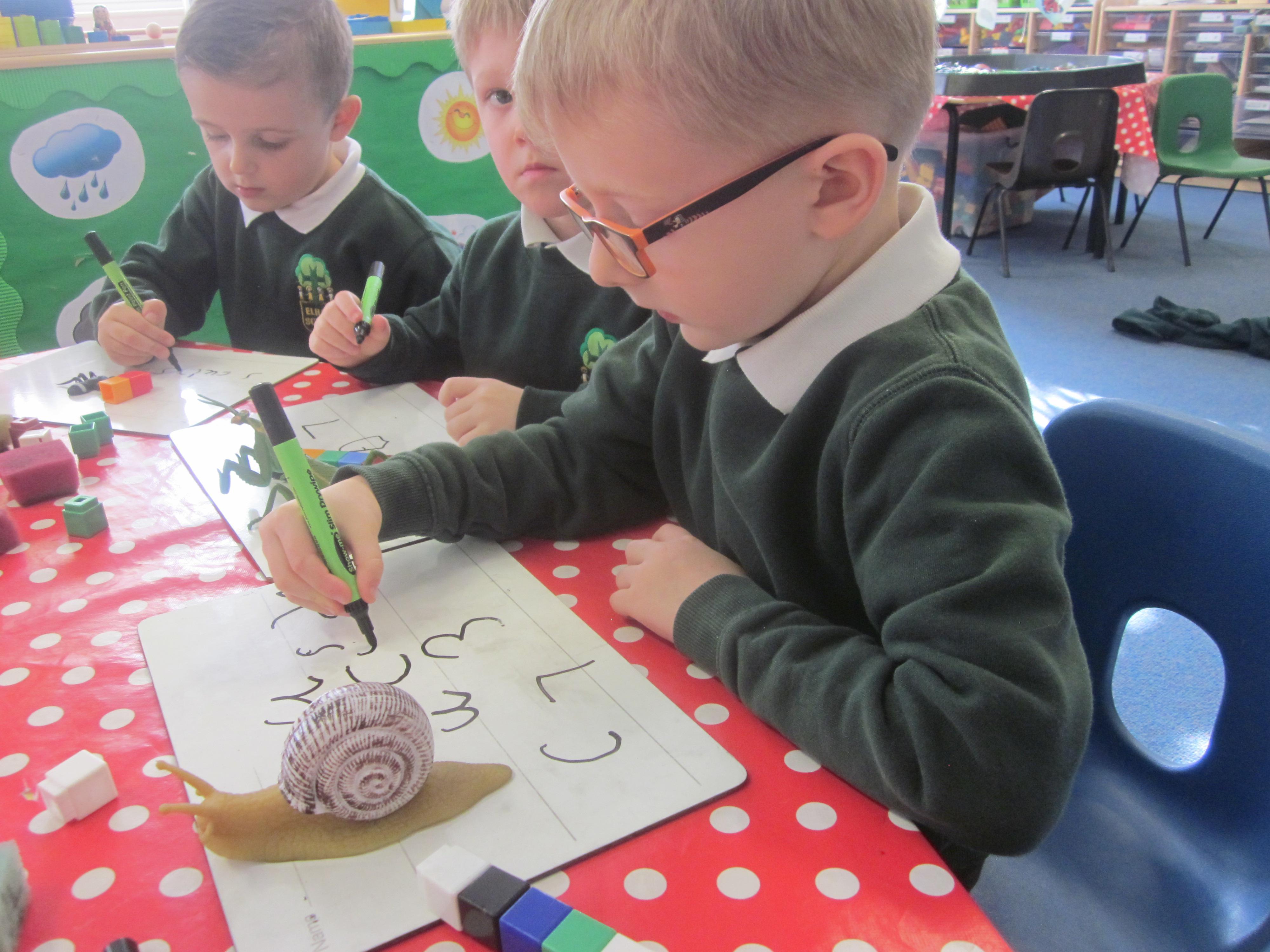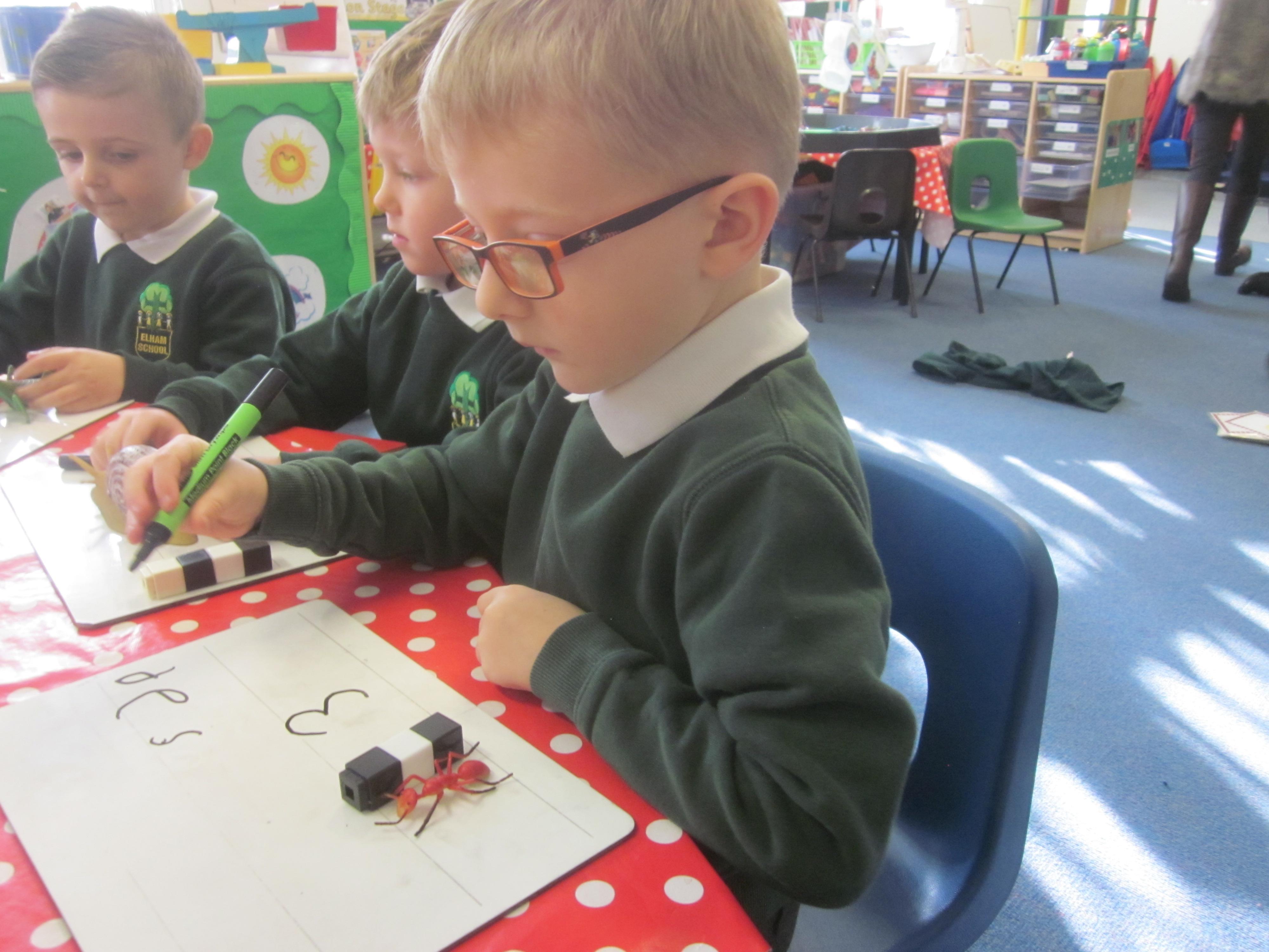 Our learning this week has been all about mini beasts. We started off the week with our English learning and thought about words to describe mini beasts, adjectives or as we like to say in Acorn Class WOW! words. These have made our writing more interesting and when looking at mini beasts we have been able to say they have 'long legs' or 'hard shell. Our maths learning was all about measuring and using the language longer and shorter. We also learnt that to measure accurately we needed to use a standard unit of measure. We began to record our findings on whiteboards. Our favourite activity was our mini beast hunt, although we didn't find many. Maybe it was a bit cold. We are going to try again in a couple of months and compare our findings.