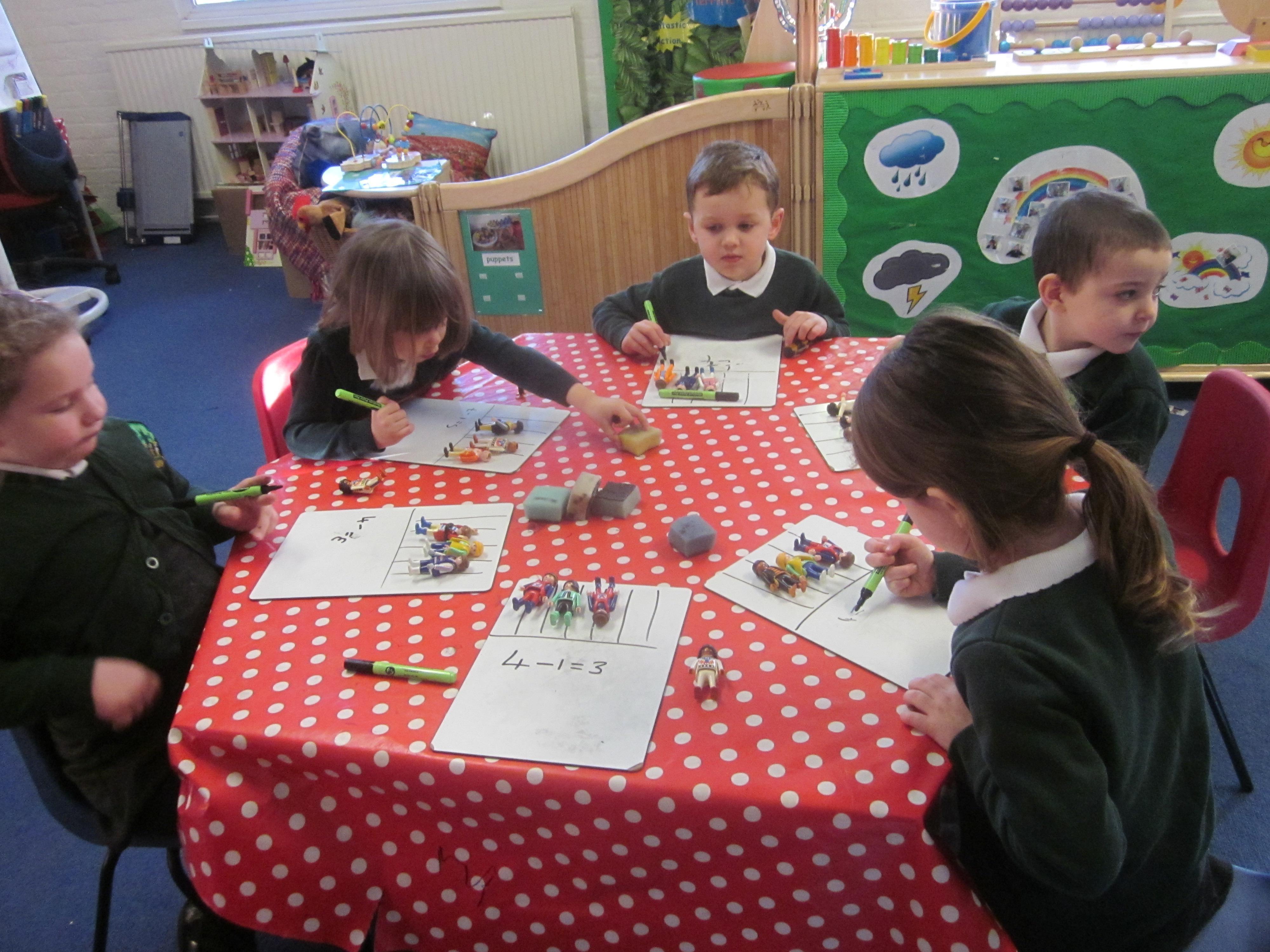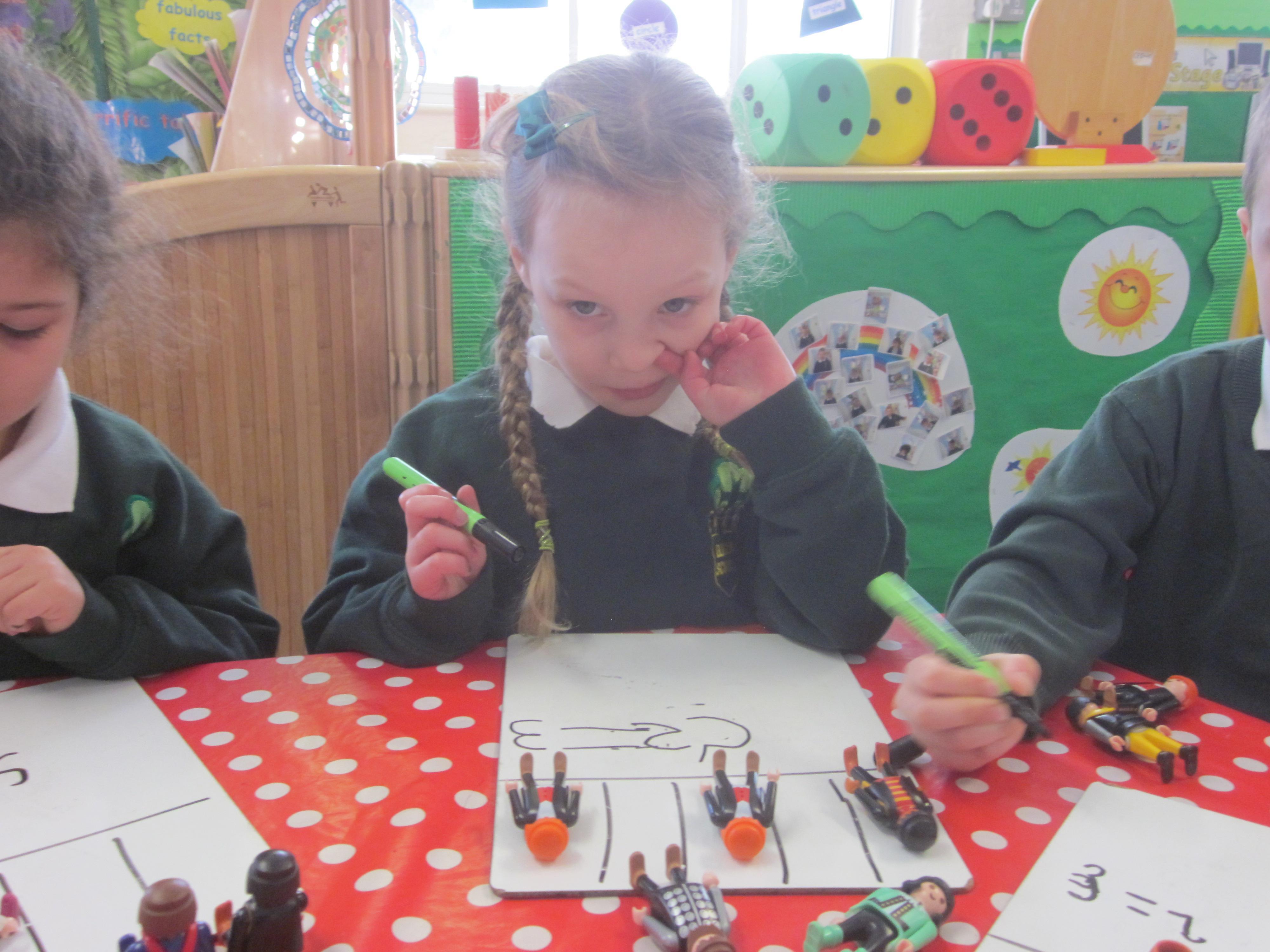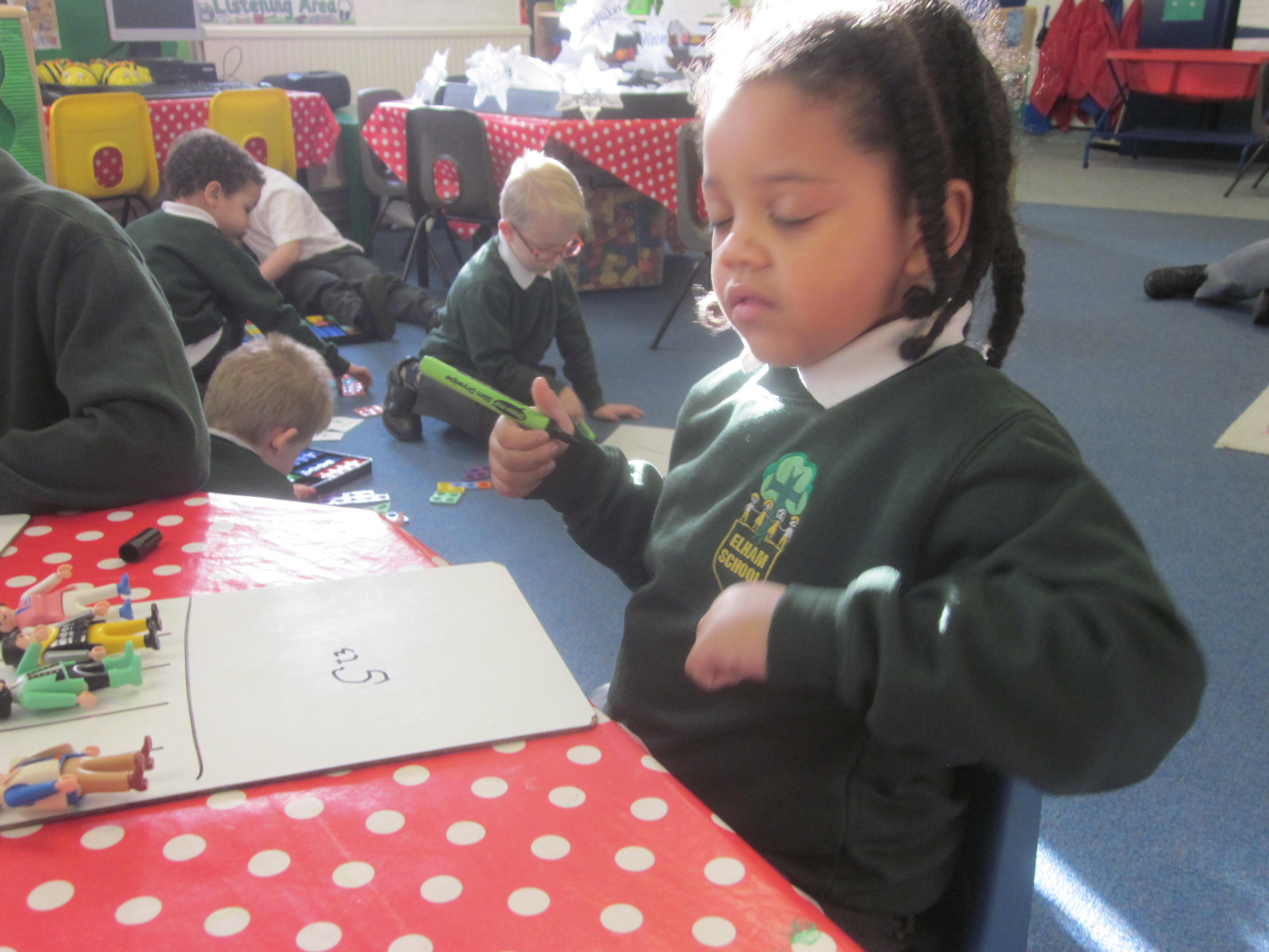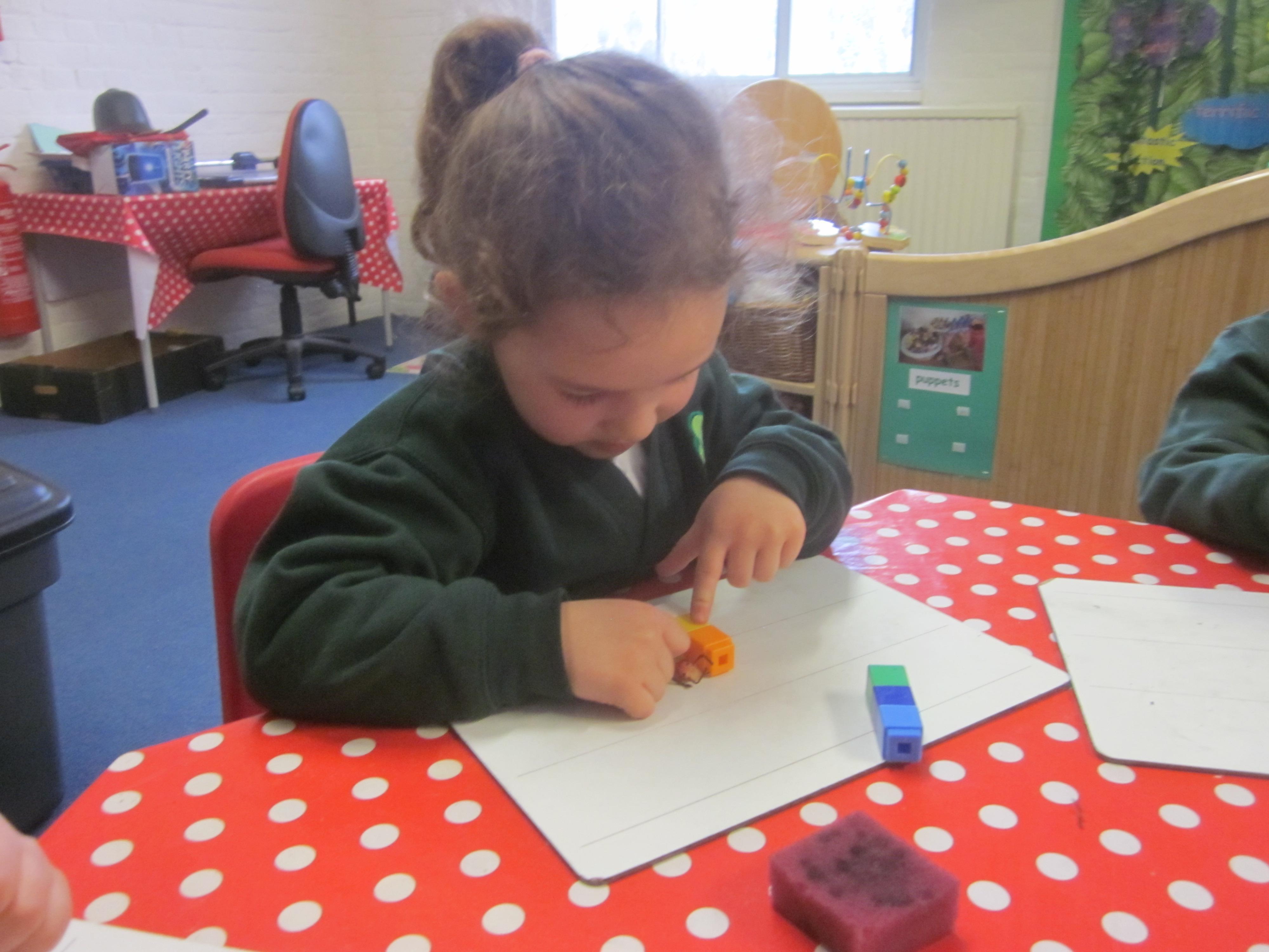 This week our learning has been about the police. We have labelled a police officer, sounding out and writing words such as 'hat, belt and badge' and caught lots of robbers. With our maths this week we took away the robbers from the jail and used Numicon to work out our answers. Even though it has been a bit cold the Acorn's still love to play outside. Its always great to see the children follow up their learning in their play, Willow and Lola knew nearly all of their sounds and played a super game together taking turns in being the 'teacher'. Well done Ted with carrying on his subtraction number sentences during his DD (discovering and doing time) Its great to see such focus and enthusiasm to learn.