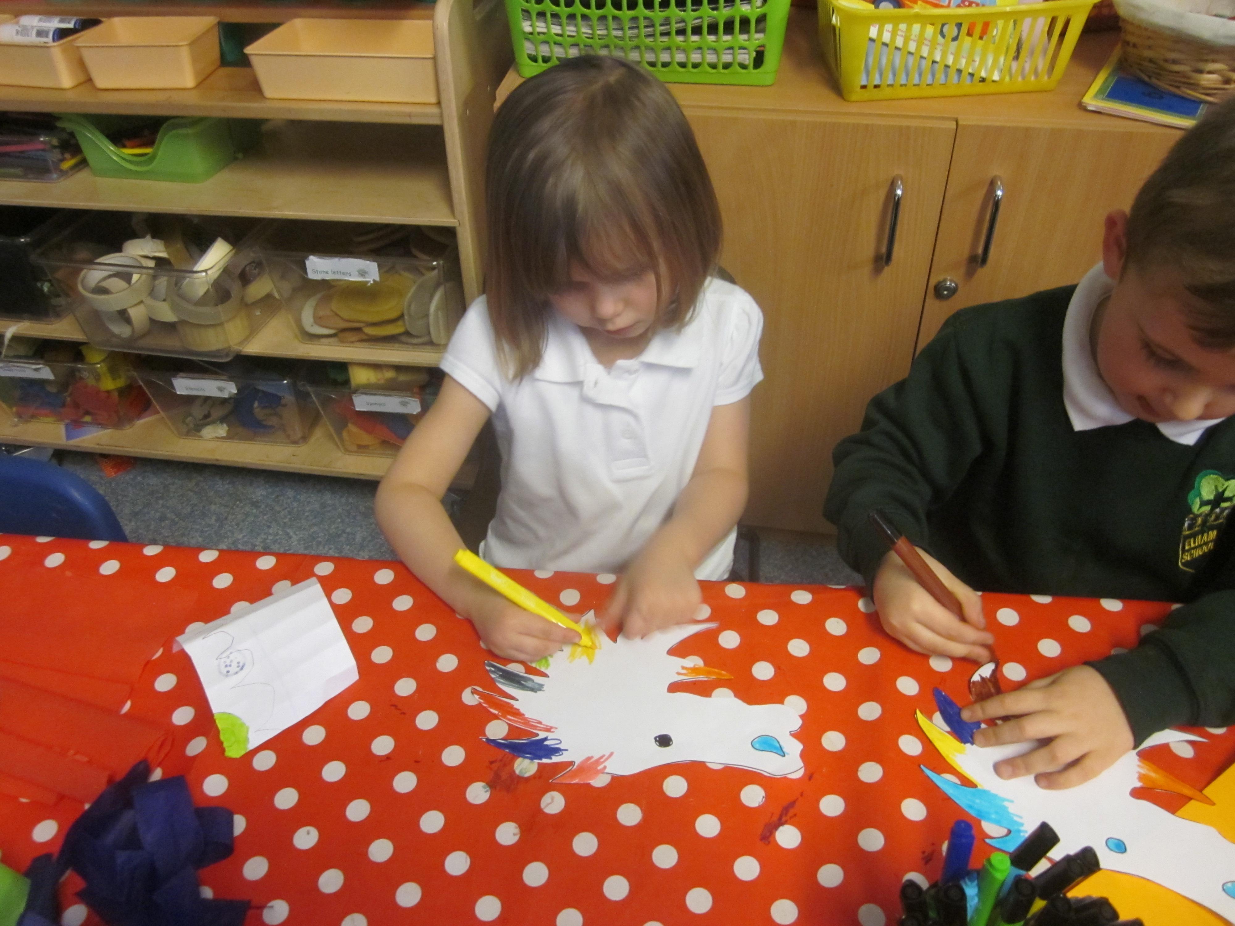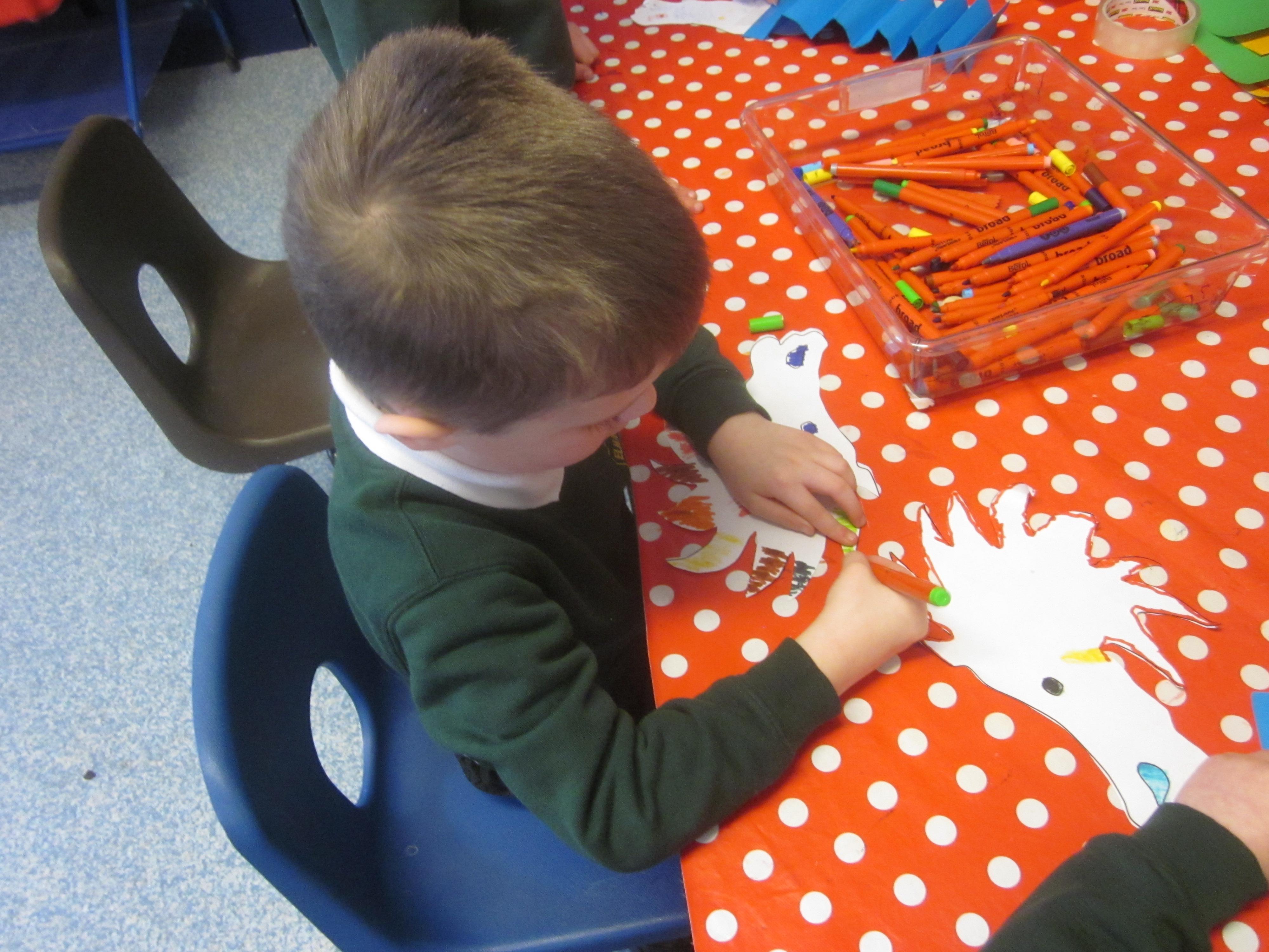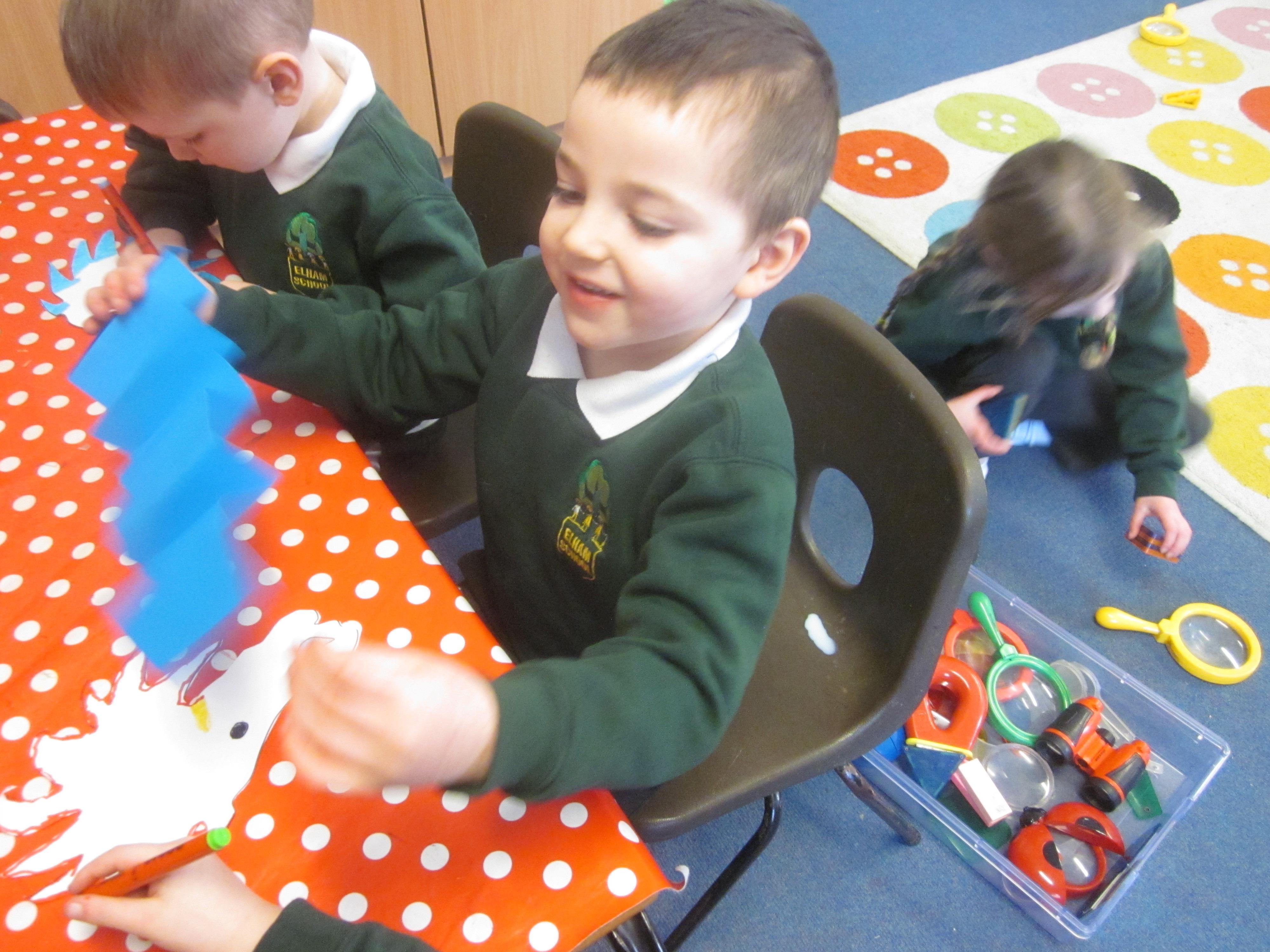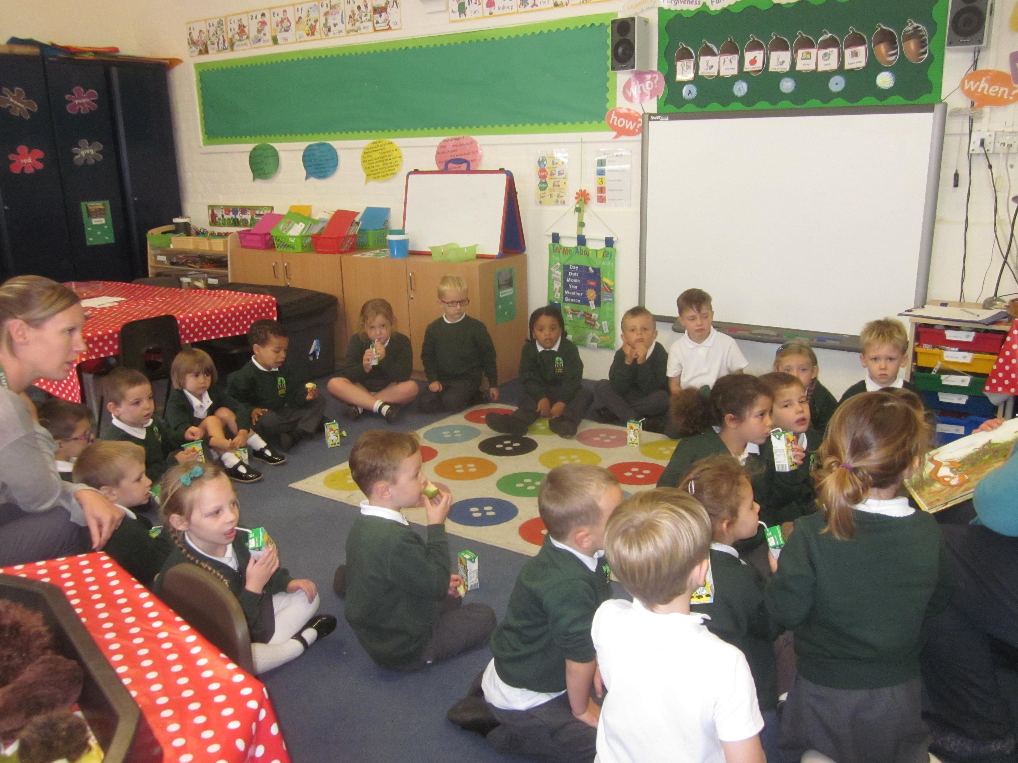 The children have begun to settle in to school and are learning lots of new routines. We have already been out on to the playground with all of the other children and everyone played happily, some were so excited to see their older siblings. We have made our own labels for our pegs and have drawn a self-portrait for the front of our books. Our favourite story this week has been Little Lumpty, we are all so pleased when he is safe!