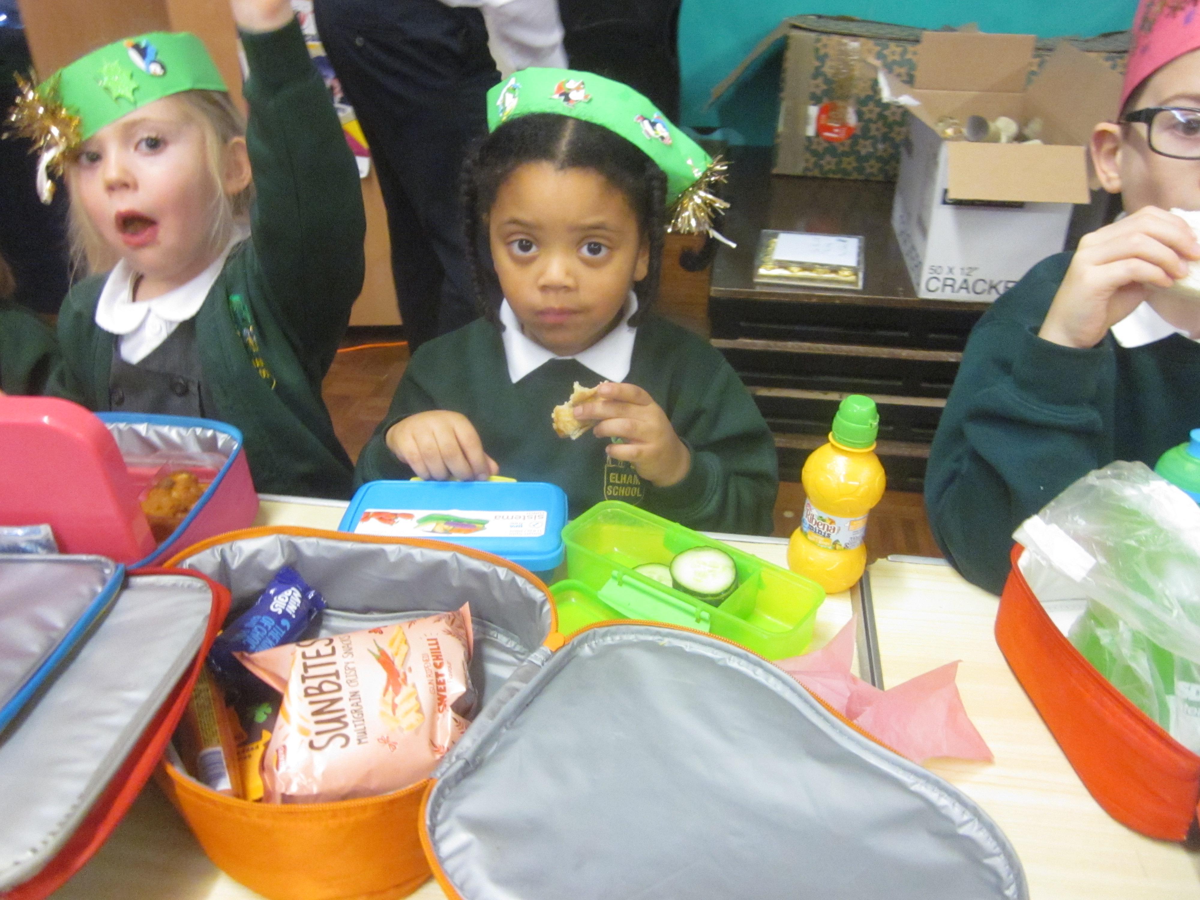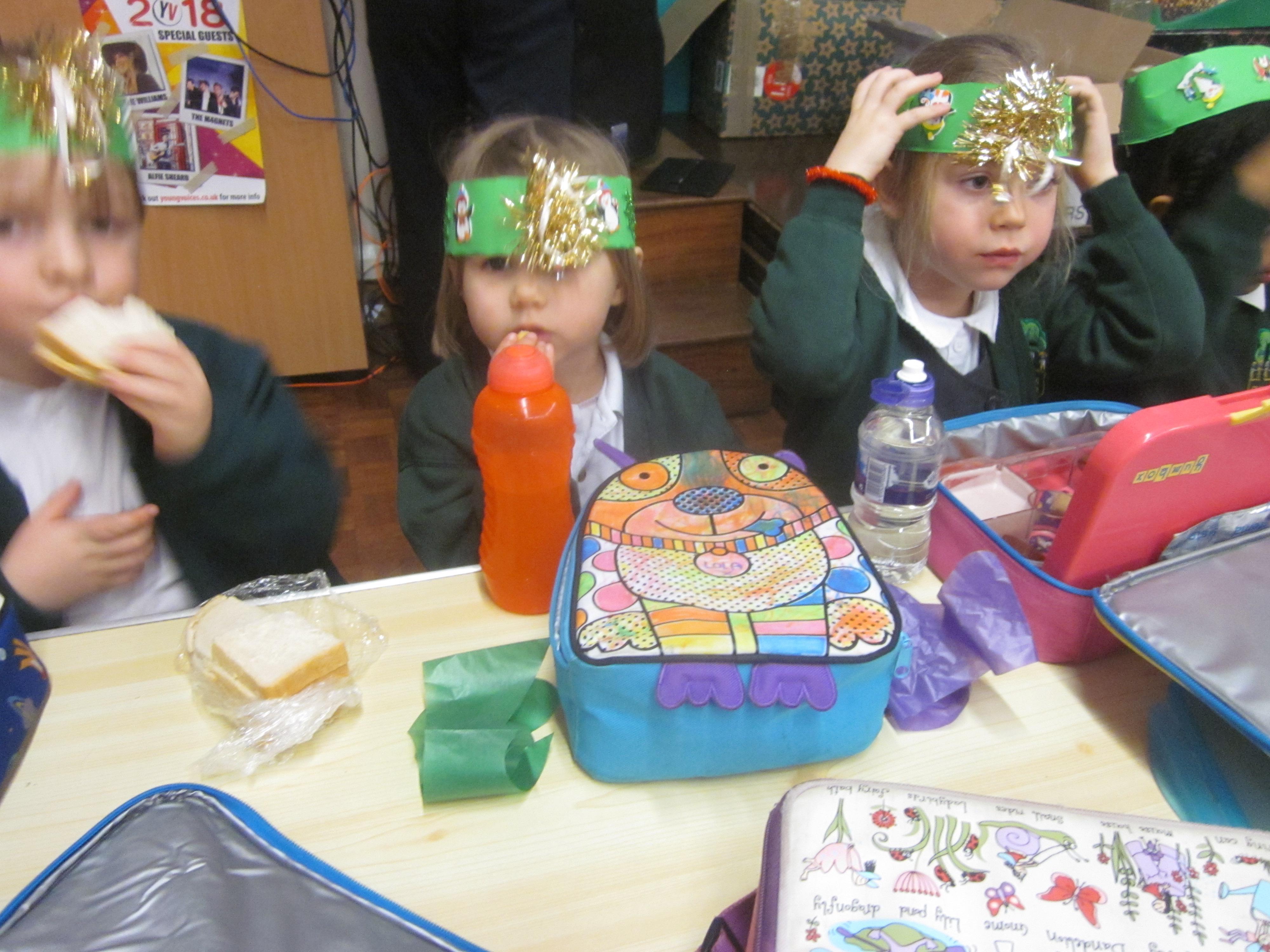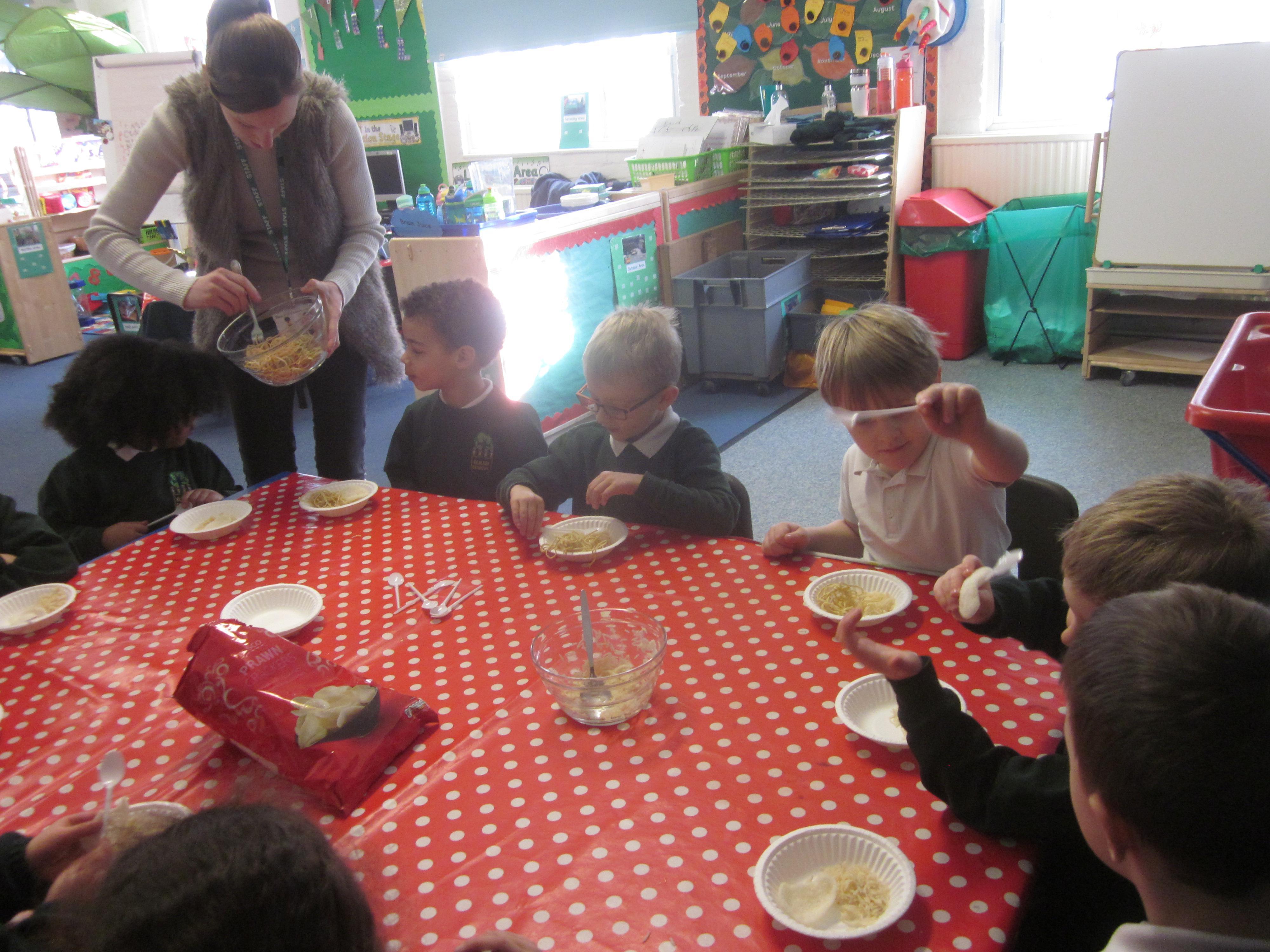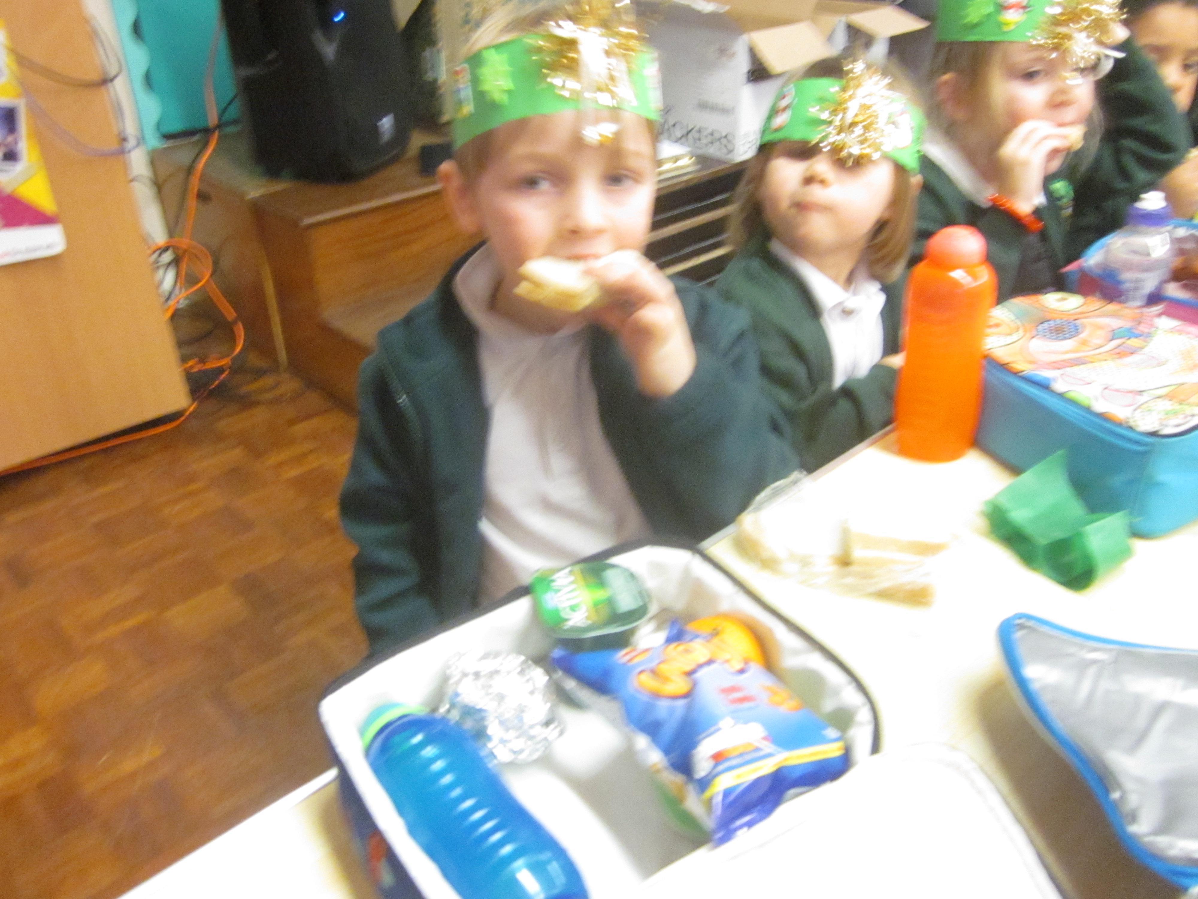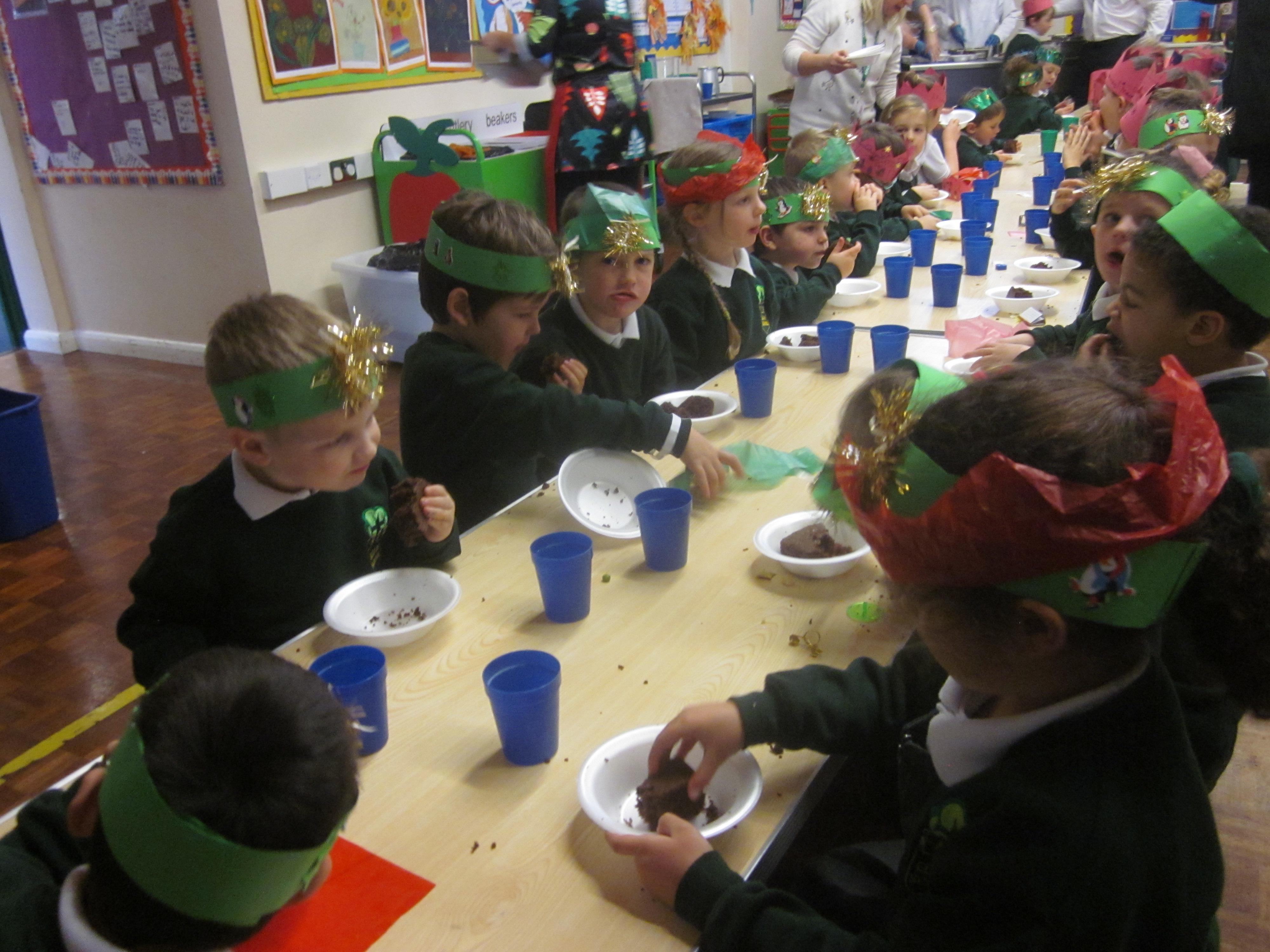 We had our first school dinners this week, which were very yummy! All of the children behaved well and ate their dinners really nicely. We all tried hard to use our knives and forks. Thanks to the Year 6 buddies who were on hand to help.